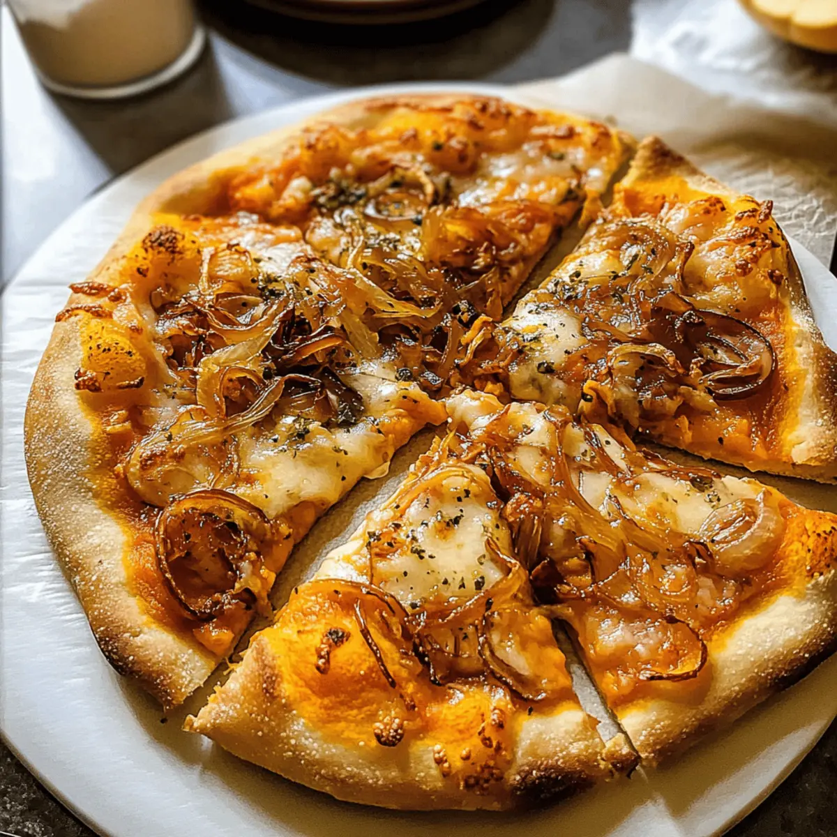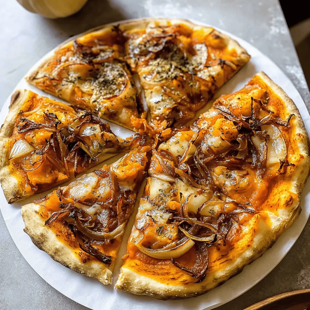 Die 5 Zutaten Kürbis und Gouda Pizza lässt sich hervorragend im Voraus zubereiten, was sie zur idealen Option für vielbeschäftigte Kochliebhaber macht! Du kannst die karamellisierten Zwiebeln bis zu 3 Tage im Voraus zubereiten und im Kühlschrank aufbewahren, um einen intensiven Geschmack zu garantieren. Den Pizzateig kannst du ebenfalls bereits am Vortag ausrollen und in Frischhaltefolie wickeln, um ihn frisch zu halten. Wenn es Zeit für das Backen ist, verteile einfach das Kürbispüree und die Zwiebeln auf dem Teig, bestreue ihn mit Gouda und backe die Pizza in nur 12-15 Minuten bis zur Perfektion. Diese einfache Vorbereitungsstrategie spart dir wertvolle Zeit, garantiert aber dennoch ein köstliches und authentisches Ergebnis, das sich wie frisch zubereitet anfühlt!