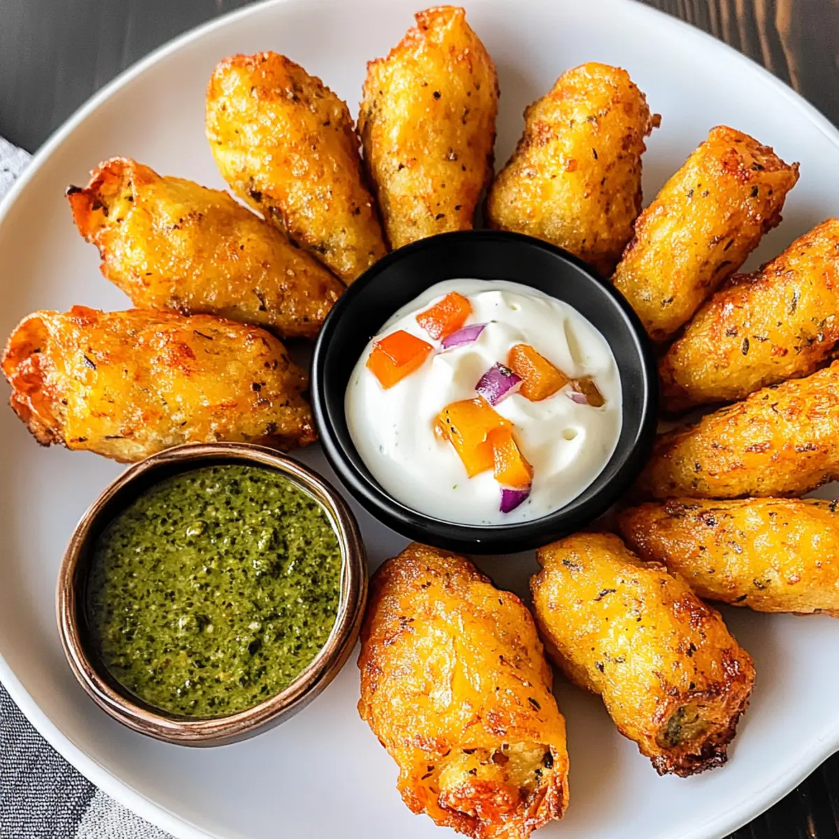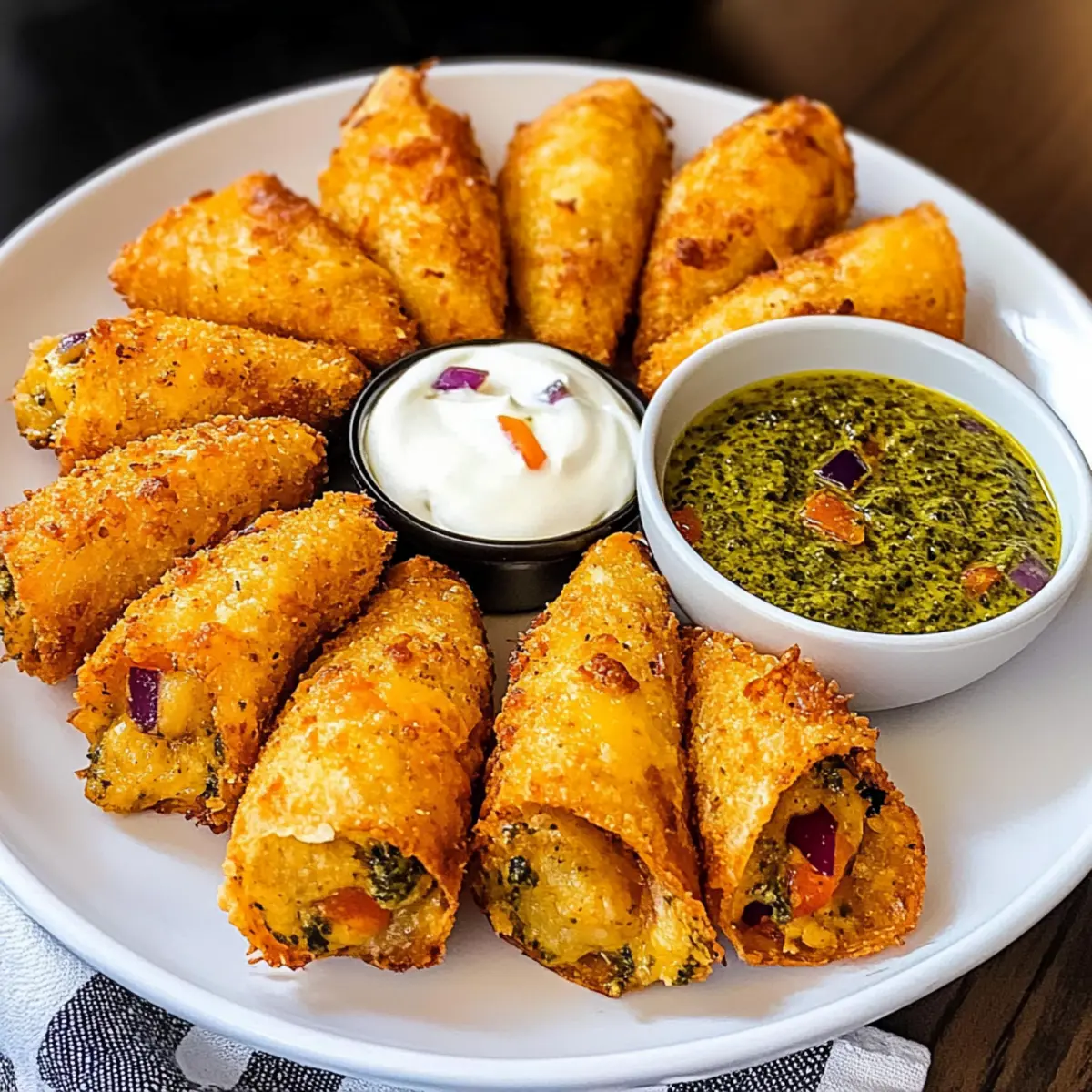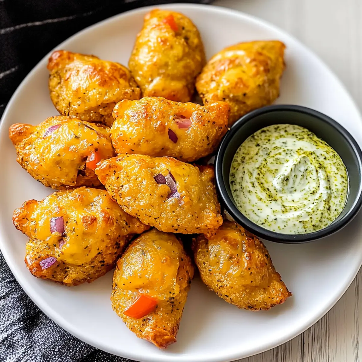 Stell dir vor, du stehst auf einem belebten Straßenmarkt in Mexiko, umgeben von köstlichen Düften und fröhlichem Geplauder. Genau diese Atmosphäre bringe ich mit meinen Cheesy Antojitos direkt in deine Küche! Diese vielseitigen Appetithäppchen sind nicht nur in weniger als 30 Minuten zubereitet, sondern bieten auch eine grandiose Kombination aus cremigem Käse und aromatischen Gewürzen, die jeden Snackmoment zu etwas Besonderem machen. Ob als schneller Snack für den Filmabend oder als Showstopper bei deiner nächsten Feier – Antojitos sind der Hit! Und mit dem extra Kick aus dem Pesto-Sauerrahm-Dip werden sie garantiert zum neuen Liebling deiner Gäste. Bist du bereit, diese leckeren Häppchen auszuprobieren? Warum sind Antojitos so beliebt? Cremiger Genuss: Antojitos sind ein Fest für die Sinne! Die Kombination aus geschmolzenem Käse und der würzigen Füllung sorgt für einen unvergesslichen Geschmack. Schnelle Zubereitung: In nur 30 Minuten hast du diese lecker gefüllten Häppchen auf dem Tisch, ideal für spontane Snackattacken. Vielseitig: Du kannst die Füllung nach Belieben anpassen, von vegetarisch bis herzhaft, ganz wie es dir gefällt! Perfekte Beilage: Diese Appetithäppchen passen hervorragend zu jeder Party oder zu einem gemütlichen Abend zu Hause. Crowd-Pleaser: Egal, ob du Gäste bewirtest oder einfach nur einen Snack für dich selbst zubereitest, Antojitos werden mit Sicherheit lieben! Antojitos Zutaten Für die Füllung Mehl Tortillas – Ideal sind 10″ Größen, für glutenfreie Optionen einfach durch Mais-Tortillas ersetzen. Frischkäse – Sorgt für eine cremige Textur; achte darauf, dass er weich ist für einfache Verarbeitung. Würfelige grüne Chilis – Fügen eine milde Schärfe hinzu; jalapeños sind eine scharfe Alternative. Cheddar Käse – Perfekt zum Schmelzen und gibt viel Geschmack; mische auch Monterey Jack für ein abwechslungsreiches Erlebnis. Rote Zwiebel – Bringt Süße und Crunch; du kannst auch Frühlingszwiebeln verwenden, wenn gewünscht. Paprika – Sorgt für Süße und Farbe; wähle die Farbe nach deinem Geschmack aus. Sauerrahm – Fügt Cremigkeit hinzu; griechischer Joghurt ist eine gesündere Variante. Paprika – Verstärkt den Geschmack mit einer rauchigen Note; geräucherte Paprika sorgt für zusätzlichen Tiefgang. Knoblauchpulver – Fügt herzliche Noten hinzu; frischer, gehackter Knoblauch ist eine kraftvolle Option. Zwiebelpulver – Verbessert das Gesamtaroma; weglassen, wenn frische Zwiebeln verwendet werden. Cayennepfeffer – Sorgt für eine angenehme Schärfe; je nach Geschmack anpassen oder weglassen. Für den Dip Basilikum-Pesto – Verleiht dem Dip frisches Aroma; sowohl gekaufter als auch hausgemachter Pesto eignet sich hervorragend. Step-by-Step Instructions für Cheesy Antojitos mit Pesto Sauerrahm Dip Step 1: Ofen vorheizen Heize deinen Ofen auf 175°C (350°F) vor. Lege ein Backblech mit Backpapier aus, um ein Ankleben der Antojitos zu verhindern. Dieser Schritt ist wichtig, damit die Teigtaschen gleichmäßig gebacken werden und eine goldbraune, knusprige Oberfläche erhalten. Step 2: Füllung zubereiten Vermische in einer großen Schüssel den weichgemachten Frischkäse, die gewürfelten grünen Chilis, den Cheddar Käse, die rote Zwiebel und die Paprika. Füge den Sauerrahm, das Paprikapulver, Knoblauch- und Zwiebelpulver sowie Cayennepfeffer hinzu. Rühre die Mischung kräftig durch, bis sie glatt und gut vermengt ist, und achte darauf, dass keine Klumpen zurückbleiben. Step 3: Tortillas füllen und rollen Verteile die Füllung gleichmäßig auf jede Tortilla und rolle sie straff auf. Achte darauf, die Füllung nicht zu überladen, damit beim Backen nichts herausquillt. Diese Antojitos werden den perfekten, käsigen Biss bieten, sobald sie gebacken sind. Step 4: Antojitos schneiden Schneide jede gerollte Tortilla in fünf gleich große Stücke im 45-Grad-Winkel. Die Endstücke kannst du entsorgen, da sie nicht ideal zum Füllen sind. Diese kleinen Häppchen werden perfekt für deine nächste Party oder für einen Snack zwischendurch sein. Step 5: Backen Arrangiere die geschnittenen Antojitos auf dem vorbereiteten Backblech und backe sie für etwa 8 Minuten. Behalte sie im Auge, bis sie ein leicht goldenes Gesicht erhalten, denn das bedeutet, dass der Käse schon anfängt zu schmelzen und die Tortillas geröstet sind. Step 6: Überbacken Schalte den Ofen auf die Grillfunktion (hohe Stufe) um und grille die Antojitos für 5 Minuten. Achte dabei auf eine gleichmäßige Bräunung; sie sollten knusprig und goldgelb sein, aber nicht verbrennen. Diese Stufe ist entscheidend, um eine köstlich knusprige Textur zu erreichen. Step 7: Servieren Lasse die Antojitos kurz abkühlen, bevor du sie servierst. Sie schmecken am besten warm und werden idealerweise mit einem Löffel Basilikum-Pesto-Sauerrahm-Dip gereicht. Diese köstliche Kombination wird deine Gäste sicherlich beeindrucken! Vorbereitung deiner Antojitos für stressfreies Kochen Antojitos sind perfekt für die Vorbereitung! Du kannst die Füllung bis zu 24 Stunden im Voraus zubereiten, indem du den Frischkäse, die gewürfelten grünen Chilis, den Cheddar, die Zwiebel und die Paprika mischst. Bewahre die Mischung in einem luftdichten Behälter im Kühlschrank auf, um die Frische zu bewahren. Die Tortillas können auch schon am Vortag gerollt werden – einfach im Kühlschrank lagern und mit Frischhaltefolie abdecken, um ein Austrocknen zu verhindern. Am gewünschten Tag backst du die Antojitos nur noch für 8 Minuten und grillst sie anschließend für weitere 5 Minuten, sodass sie schön knusprig und lecker sind. Diese zeitsparenden Vorbereitungen machen das Kochen nach einem hektischen Tag zum Kinderspiel! Was passt zu Cheesy Antojitos mit Pesto Sauerrahm Dip? Stell dir eine Vielzahl köstlicher Begleiter vor, die deine Antojitos perfekt ergänzen und dein Esserlebnis unvergesslich machen. Guacamole: Cremige Avocadocreme bringt eine entspannte Fr