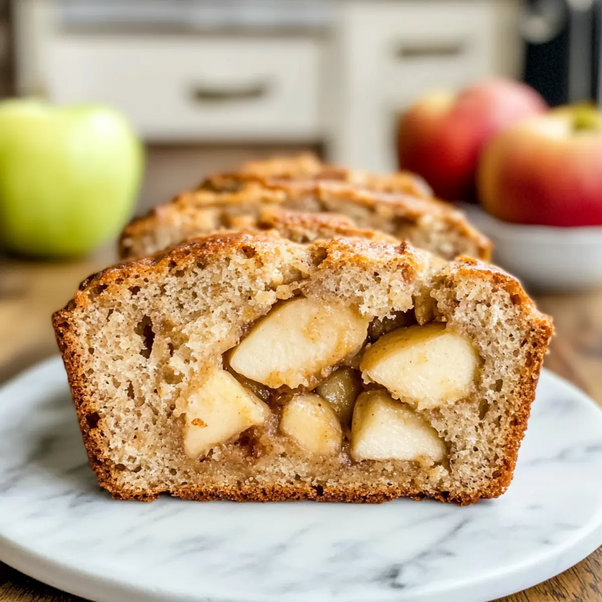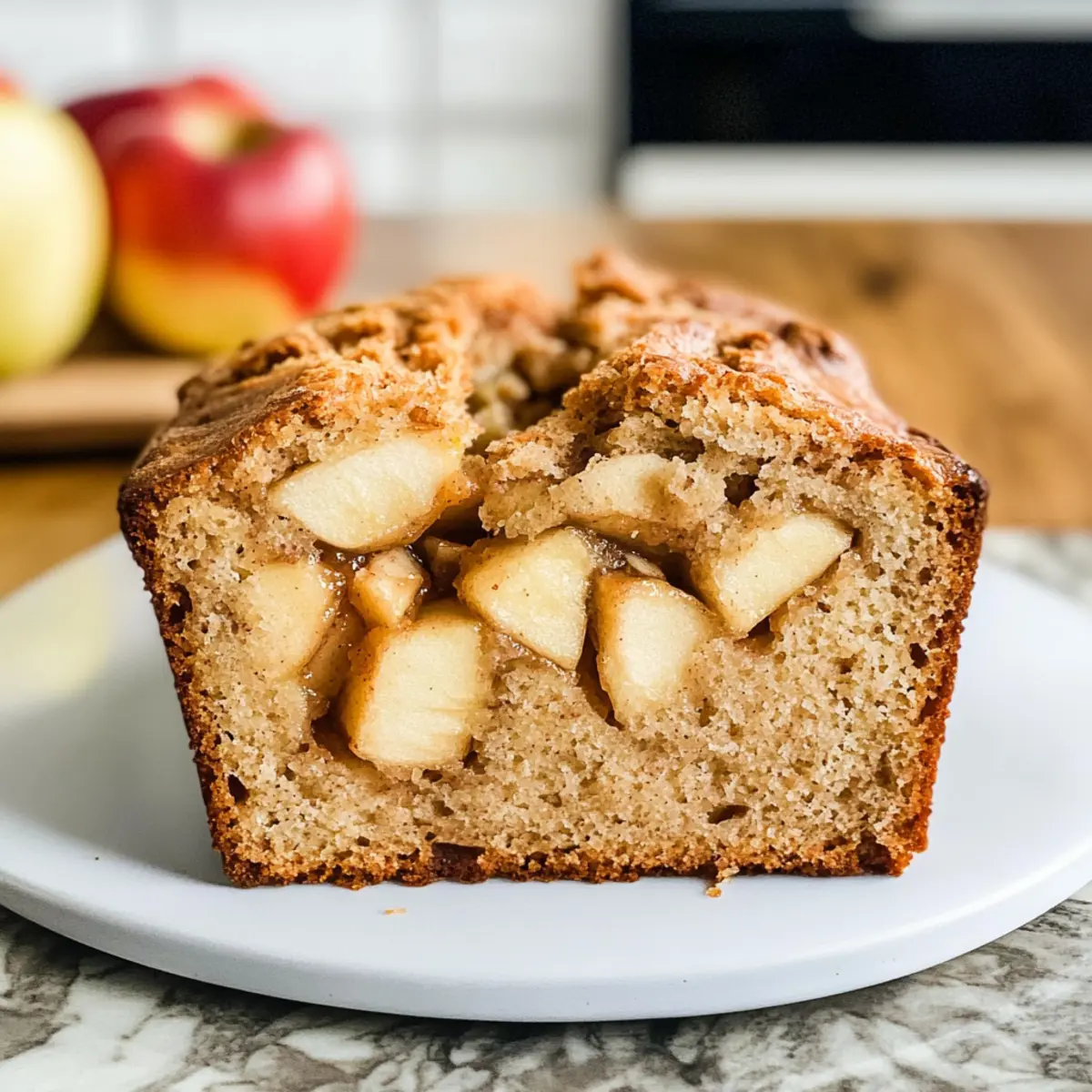 Es gibt Momente, in denen die einfachsten Zutaten die herzerwärmendsten Gerichte hervorbringen. Das ist genau das Gefühl, das ich hatte, als ich beschloss, ein gesundes Apfelbrot ohne Zucker zu backen. Es ist erstaunlich, wie knackige Äpfel, cremiges Kokosöl und zarte Joghurt eine köstliche Mischung ergeben, die meine Küche mit einem köstlichen Aroma erfüllt. Diese Rezeptur ist nicht nur eine wunderbare Möglichkeit, einen gesunden Snack oder ein nahrhaftes Frühstück zu genießen, sondern eignet sich auch perfekt für all jene, die auf Zucker und Butter verzichten möchten. Mit ihrem weichen, luftigen Teig und einem Hauch von Zimt wird dieses Apfelbrot selbst die anspruchsvollsten Geschmäcker erfreuen. Neugierig, wie Sie dieses köstliche Rezept selbst zubereiten können? Lassen Sie uns gemeinsam in die Details eintauchen! Warum werden Sie dieses Apfelbrot lieben? Gesundheitlich unbedenklich: Dieses Apfelbrot bietet einen vollmundigen Geschmack, ohne Zucker oder Butter, und ist perfekt für Ihre gesunde Ernährung. Einfach zuzubereiten: Mit nur wenigen Grundzutaten ist die Zubereitung kinderleicht – ideal für alle, die sich eine Pause vom Fast Food wünschen. Vielseitig: Sie können die Äpfel nach Belieben durch Birnen ersetzen oder sogar etwas Nussbutter hinzufügen, um dem Rezept eine eigene Note zu verleihen. Aromatisch und einladend: Der köstliche Duft von Zimt und frischen Äpfeln wird Ihre Küche erfüllen und Ihre Familie begeistern. Perfekte Textur: Saftig, fluffig und mit einer idealen Krume, die sich wunderbar für Frühstück oder als Snack eignet. Probieren Sie es aus, und vielleicht genießen Sie es zusammen mit einem Klecks griechischem Joghurt für das gewisse Extra! Apfelbrot Zutaten • Für den Teig: Äpfel – geben natürliche Süße und Feuchtigkeit; Birnen können alternativ verwendet werden. Kokosöl – sorgt für die nötige Feuchtigkeit; alternativ kann Olivenöl verwendet werden. Brauner Erythrit – ersetzt braunen Zucker kalorienfrei; Kokszucker sorgt für einen karamellähnlichen Geschmack. Xylit – ein kalorienarmer Süßstoff, der die Süße erhöht; kann durch Stevia ersetzt werden. Eier – binden die Zutaten und sorgen für Stabilität; für die vegane Option mit 1 EL eingeweichten Chiasamen ersetzen. Vanilleextrakt – verstärkt das Aroma; im Notfall kann Vanille-Paste genutzt werden. Joghurt – trägt zur Feuchtigkeit und Reichhaltigkeit bei; pflanzlicher Joghurt eignet sich für die vegane Variante. Apfelmus – sorgt für Süße und Feuchtigkeit; ungesüßtes Apfelmus ist ideal. Vollkornmehl – sorgt für Struktur; kann durch glutenfreie Mehlmischung ersetzt werden. Backpulver – als Treibmittel sorgt es für eine lockere Textur; Backnatron kann alternativ verwendet werden. Zimt – bringt eine angenehme, würzige Note; Muskatnuss kann auch verwendet werden. Muskatnuss – fügt eine besondere Geschmacksnote hinzu; kann weg gelassen oder durch Piment ersetzt werden. • Für die Garnitur: Griechischer Joghurt – perfekt zum Servieren, um das Apfelbrot zu verfeinern. Zimt – für das gewisse Extra, einfach darüber streuen. Schritt-für-Schritt-Anleitung für das Apfelbrot Step 1: Backform vorbereiten und Ofen vorheizen Bereiten Sie eine Kastenform vor, indem Sie sie mit Backpapier auslegen oder leicht mit Öl einfetten. Heizen Sie den Ofen auf 180°C vor. Dies ist wichtig, damit Ihr Apfelbrot gleichmäßig gebacken wird und eine goldene Farbe erhält, während die Aromen sich entfalten. Step 2: Äpfel vorbereiten Schälen Sie die Äpfel und schneiden Sie sie in kleine Würfel. Diese sollten gleichmäßig Größe haben, damit sie beim Backen gleichmäßig gegart werden. Die frischen Apfelstücke sorgen für natürliche Süße und eine saftige Textur in Ihrem Apfelbrot. Step 3: Zutaten vermengen In einer großen Schüssel kombinieren Sie das geschmolzene Kokosöl, den braunen Erythrit, Xylit, die Eier, den Vanilleextrakt, den Joghurt und das Apfelmus. Mischen Sie diese Zutaten gründlich mit einem Schneebesen, bis eine homogene Masse entsteht. Dies sorgt für den feinen, aromatischen Teig Ihres Apfelbrots. Step 4: Trockene Zutaten mischen In einer separaten Schüssel vermengen Sie das Vollkornmehl mit dem Backpulver, Zimt und Muskatnuss. Durch das getrennte Mischen der trockenen Zutaten stellen Sie sicher, dass die Triebmittel gleichmäßig im Teig verteilt sind, was zu einem optimalen Aufgehen des Apfelbrots führt. Step 5: Teig kombinieren Fügen Sie die trockene Mischung langsam zu den feuchten Zutaten hinzu. Rühren Sie vorsichtig, bis ein gleichmäßiger Teig entsteht. Vermeiden Sie es, den Teig zu stark zu mischen, da dies die Textur Ihres Apfelbrots beeinträchtigen könnte. Step 6: Äpfel unterheben Integrieren Sie die gewürfelten Äpfel vorsichtig in den Teig, indem Sie sie unterheben. So verteilen sich die Apfelstücke gleichmäßig und sorgen für wunderbare, fruchtige Bisse in jedem Stück Ihres Apfelbrots. Step 7: Backen Gießen Sie den Teig in die vorbereitete Kastenform und streichen Sie die Oberfläche glatt. Backen Sie das Apfelbrot etwa 30-40 Minuten lang im vorgeheizten Ofen. Überprüfen Sie die Garzeit mit einem Zahnstocher: Er sollte sauber herauskommen, wenn das Apfelbrot fertig gebacken ist. Step 8: Abkühlen und servieren Lassen Sie das Apfelbrot etwa 10 Minuten in der Form abkühlen, bevor Sie es auf ein Gitterrost legen. Lassen Sie es vollständig auskühlen, um die besten Ergebnisse beim Schneiden zu erzielen. Servieren Sie es nach Belieben mit einem Klecks griechischem Joghurt und etwas Zimt für einen zusätzlichen Genuss. Apfelbrot Variationen & Alternativen Lassen Sie Ihrer Kreativität freien Lauf und passen Sie dieses Rezept nach Ihren Wünschen an! Vegan: Ersetzen Sie die Eier durch 1 EL Chiasamen, die in Wasser eingeweicht sind, für eine pflanzliche Bindung. Glutenfrei: Nutzen Sie eine glutenfreie Mehlmischung anstelle von Vollkornmehl, um das Rezept für Glutenunempfindliche geeignet zu mac