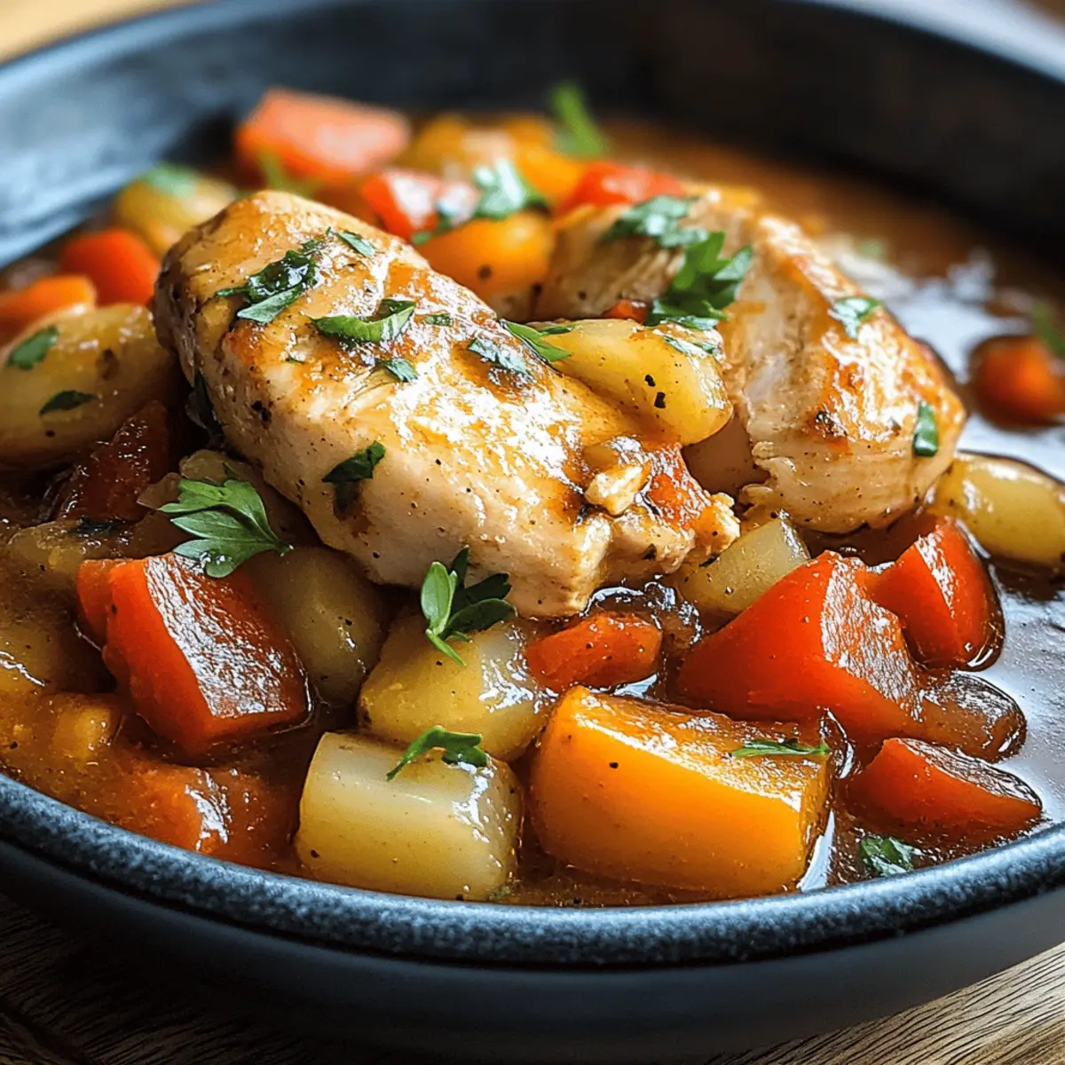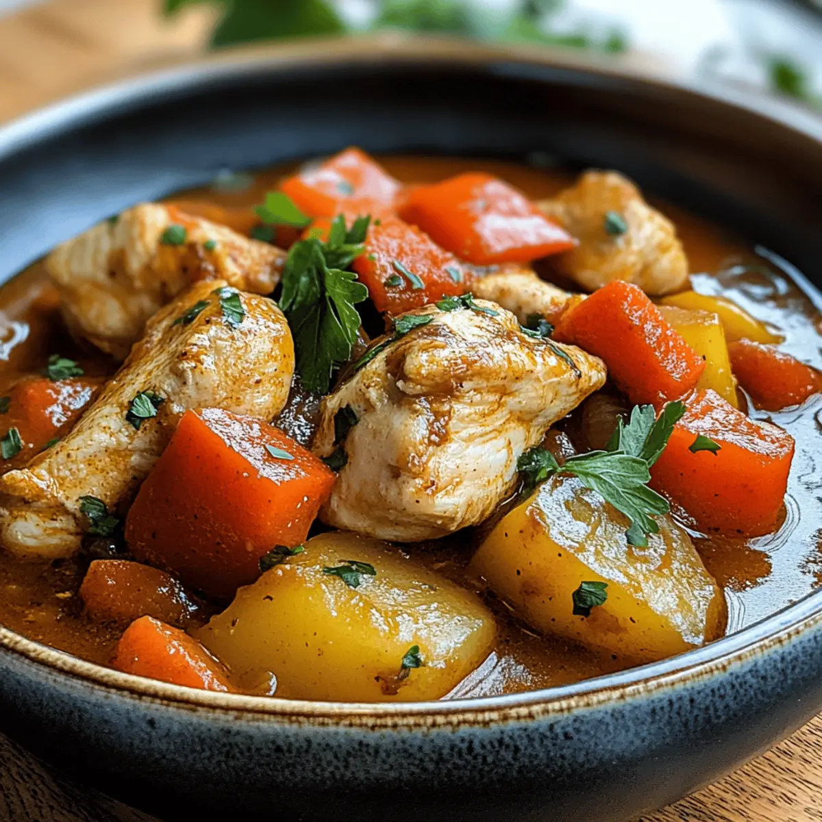 • Vegetarische Variante: Ersetzen Sie das Hähnchen durch Tofu oder Seitan und verwenden Sie pflanzliche Brühe, um einen herzhaften vegetarischen Eintopf zu kreieren.