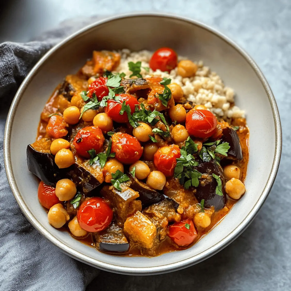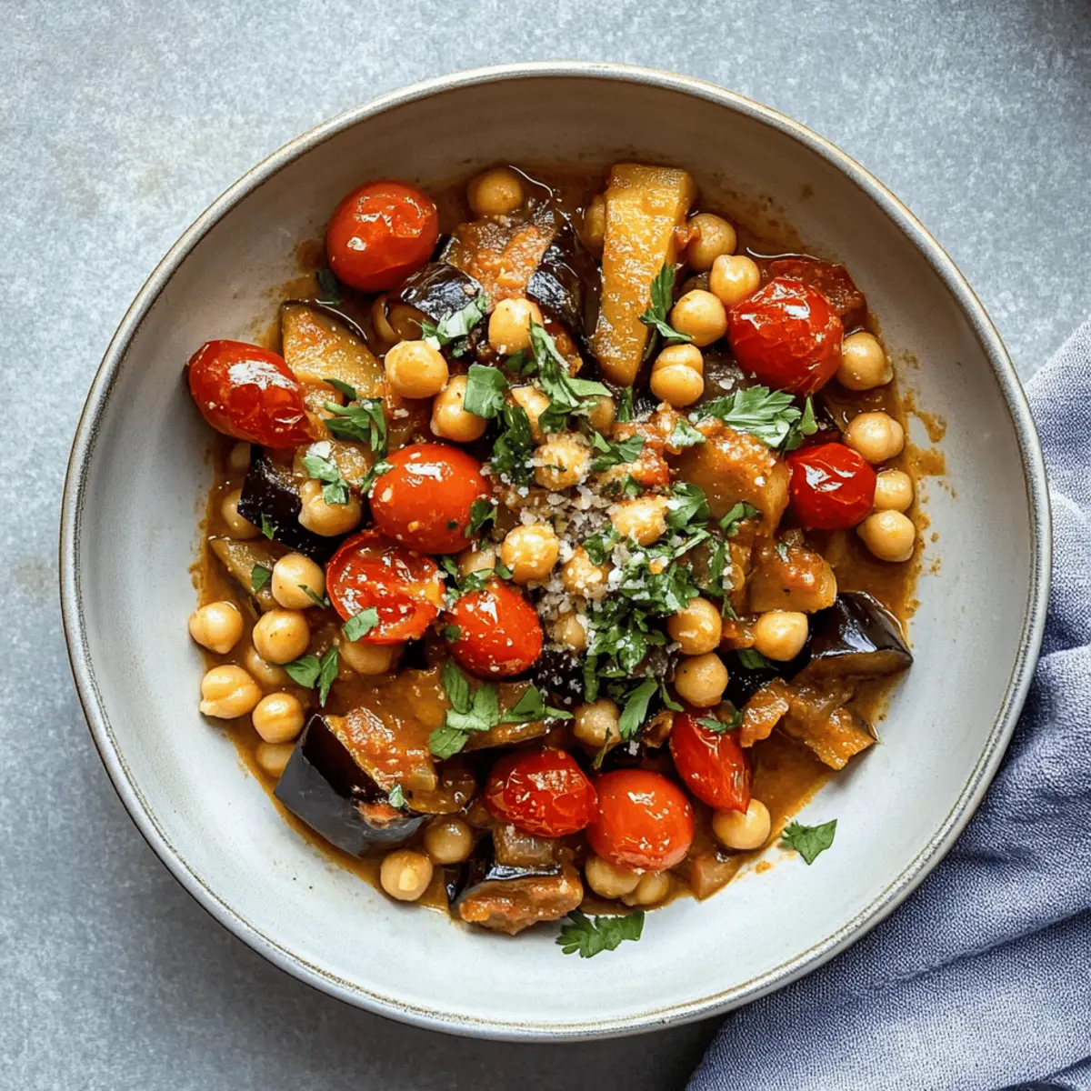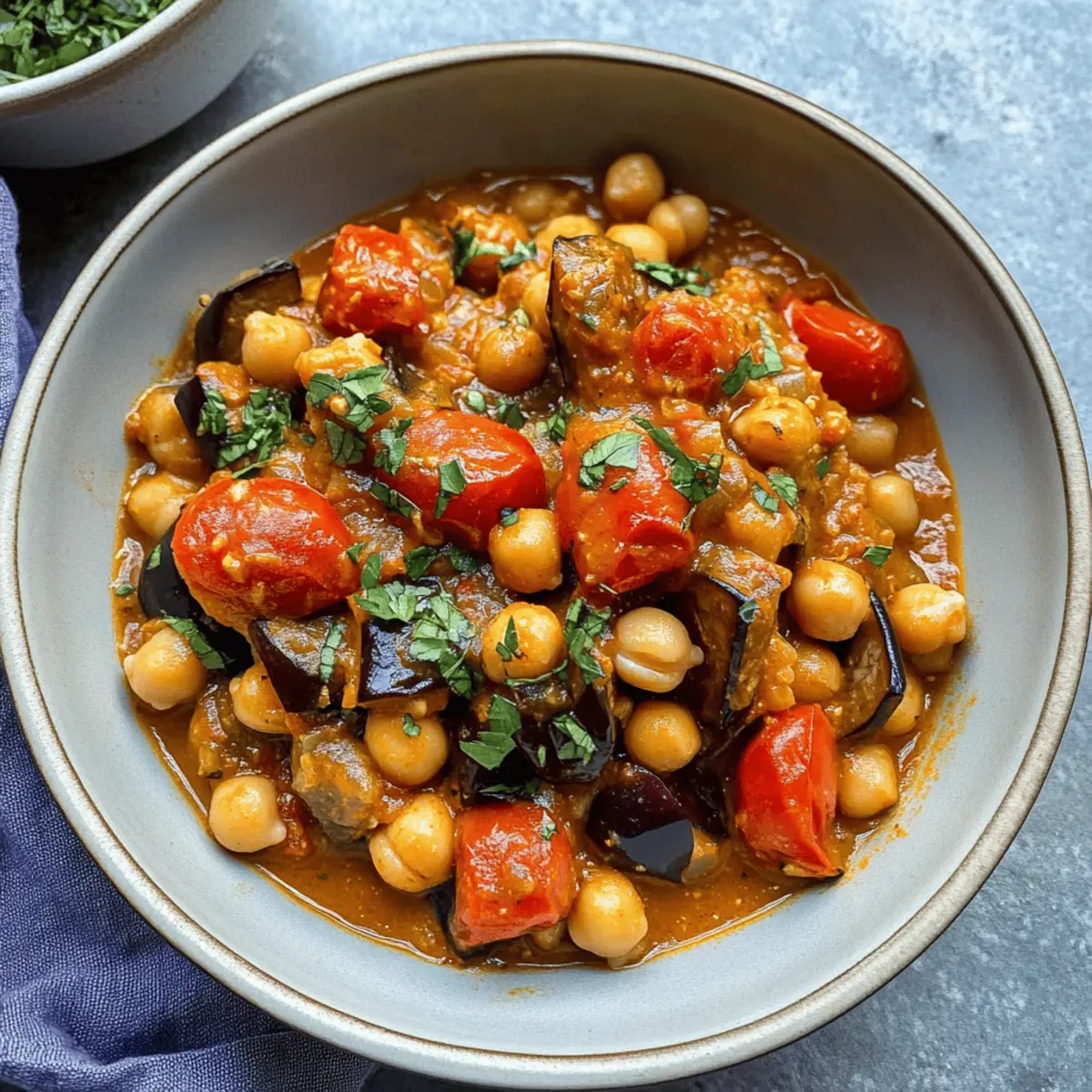Während ich in meiner Küche stand, breitete sich ein verführerischer Duft von geröstetem Gemüse und würzigem Harissa aus. Dieses Auberginen-Eintopf mit Kichererbsen, Tomaten und Harissa ist mehr als nur ein Gericht; es ist eine Umarmung in Form eines herzhaften Eintopfs, die alle Sinne anspricht. Die Kombination aus zartem Auberginenfleisch und einer cremigen Tomatensauce bringt die wohltuende Wärme der nordafrikanischen Küche direkt auf den Tisch. Und das Beste daran? Es ist nicht nur einfach zuzubereiten, sondern auch perfekt für die gesunde und vegetarische Ernährung. Mit seinen herzhaften Zutaten ist es eine großartige Möglichkeit, sich von Fast Food zu verabschieden und in die Welt der Aromen einzutauchen. Bist du bereit, deine Lieben mit diesem unwiderstehlichen Eintopf zu überraschen? Warum wirst du dieses Rezept lieben? Einfachheit: Die Zubereitung ist unkompliziert und erfordert nur grundlegende Kochfähigkeiten, ideal für alle, die sich auf vegetarische Gerichte konzentrieren möchten. Herzhafter Geschmack: Die Kombination aus gerösteter Aubergine und würzigem Harissa sorgt für ein aromatisches Geschmackserlebnis, das deinem Gaumen schmeichelt. Vielseitigkeit: Dieser Eintopf eignet sich hervorragend für verschiedene Gelegenheiten – ob als schnelles Abendessen oder als beeindruckendes Gericht für Gäste. Schnelle Zubereitung: In nur etwa 30 Minuten kannst du ein sättigendes Gericht zaubern, das dir und deiner Familie nahe bringt. Nährstoffreich: Mit Kichererbsen und Tomaten ist dieses Gericht nicht nur köstlich, sondern auch reich an Vitaminen und Mineralien – wie du in unserem nährstoffreichen Artikel erfahren kannst. Auberginen-Eintopf Zutaten Für den Eintopf • Aubergine – sorgt für eine reichhaltige, fleischige Textur und ist mit modernen Sorten nicht mehr bitter. • Olivenöl – verleiht dem Gericht Fülle und hilft beim Rösten der Aubergine. • Meersalz und frisch gemahlener schwarzer Pfeffer – verstärkt den Gesamtgeschmack; nach persönlichem Geschmack anpassen. • Knoblauch – liefert tiefe, herzliche Aromen; sechs Zehen sorgen für einen robusten, aber nicht überwältigenden Duft. • Harissa Gewürzmischung – bringt milde Schärfe und Komplexität; kann durch Harissapaste ersetzt werden, dann aber weniger Olivenöl verwenden. • Cherrytomaten (in Dosen) – sorgt für Süße und Feuchtigkeit; ‘Mutti’ ist eine empfehlenswerte Marke für optimalen Geschmack. • Kichererbsen – fügt Proteine und Reichhaltigkeit hinzu; am besten sind getrocknete Kichererbsen für den besten Geschmack, aber Dosen gut abspülen. • Sahne (oder vegane Alternative) – bereichert den Eintopf; Kokosnusscreme ist eine gute Wahl für eine milchfreie Version. Optionaler Tipp: Dieser Eintopf mit Kichererbsen, Tomaten und Harissa wird nicht nur köstlich schmecken, sondern auch deiner Gesundheit zugutekommen! Schritt-für-Schritt-Anleitung für Auberginen-Eintopf mit Kichererbsen, Tomaten und Harissa Schritt 1: Ofen vorheizen Heize deinen Ofen auf 200°C vor (180°C für Umluft) und lege ein Backblech mit Backpapier aus. Dies ist der perfekte Moment, um deine Arbeitsfläche freizuräumen und alle Zutaten bereitzustellen. Ein gut vorbereiteter Arbeitsplatz sorgt dafür, dass die Zubereitung des Auberginen-Eintopfs mit Kichererbsen reibungslos verläuft. Schritt 2: Auberginen rösten Schneide die Aubergine in Würfel und vermische sie in einer Schüssel mit Olivenöl, Meersalz und frisch gemahlenem Pfeffer. Verteile die gewürzten Auberginen gleichmäßig auf dem Backblech und röste sie für etwa 20-25 Minuten im Ofen, bis sie goldbraun und zart sind. Du wirst den köstlichen Duft sofort wahrnehmen! Schritt 3: Knoblauch sautieren Während die Auberginen im Ofen rösten, erhitze etwas Olivenöl in einer großen Pfanne bei mittlerer Hitze. Füge den zerdrückten Knoblauch hinzu und brate ihn für etwa 1-2 Minuten an, bis er aromatisch und goldbraun ist. Achte darauf, dass der Knoblauch nicht verbrennt, da dies den Geschmack des Eintopfs beeinträchtigen könnte. Schritt 4: Sauce zubereiten Gib die Harissa Gewürzmischung und die abgetropften Cherrytomaten aus der Dose zu dem angebratenen Knoblauch in die Pfanne. Rühre alles gut um und lasse die Mischung etwa 10-15 Minuten bei niedriger Hitze köcheln, bis sie leicht eindickt. Der Eintopf nimmt jetzt schon viele gefällige Aromen an! Schritt 5: Eintopf vollenden Sobald die Auberginen fertig geröstet sind, nimm sie aus dem Ofen und füge sie zusammen mit den gut abgespülten Kichererbsen zur Sauce in die Pfanne hinzu. Rühre alles gut durch und lasse den Eintopf bei niedriger Hitze weiter köcheln, um die Aromen zu verbinden. Dies dauert etwa 5 Minuten, bis alles heiß ist. Schritt 6: Verfeinern und servieren Füge nun die Sahne (oder die pflanzliche Alternative) hinzu und rühre alles gründlich ein. Schmecke den Eintopf mit zusätzlichem Salz und Pfeffer ab, falls nötig. Kurz vor dem Servieren nimmst du ihn vom Herd. Der Auberginen-Eintopf mit Kichererbsen, Tomaten und Harissa ist nun bereit, serviert zu werden – genieße die cremige Konsistenz und den würzigen Geschmack! Lagerungstipps für Auberginen-Eintopf Kühlschrank: Bewahre den Eintopf in einem luftdichten Behälter auf, er bleibt bis zu 3 Tage frisch. Vor dem Servieren einfach aufwärmen. Tiefkühler: Der Eintopf kann bis zu 3 Monate gefroren werden. Fülle ihn in einen gefrierfesten Behälter und lasse etwas Platz, damit sich der Inhalt beim Einfrieren ausdehnen kann. Auftauen: Lasse den eingefrorenen Eintopf über Nacht im Kühlschrank auftauen. Erhitze ihn dann auf dem Herd oder in der Mikrowelle, bis er vollständig heiß ist. Wiedererwärmung: Achte darauf, den Eintopf vollständig zu erhitzen, um die Aromen des Auberginen-Eintopfs mit Kichererbsen, Tomaten und Harissa zu bewahren. Zeit sparen mit dem Auberginen-Eintopf Dieser Auberginen-Eintopf mit Kichererbsen, Tomaten und Harissa ist perfekt für die Meal Prep! Du kannst die Au