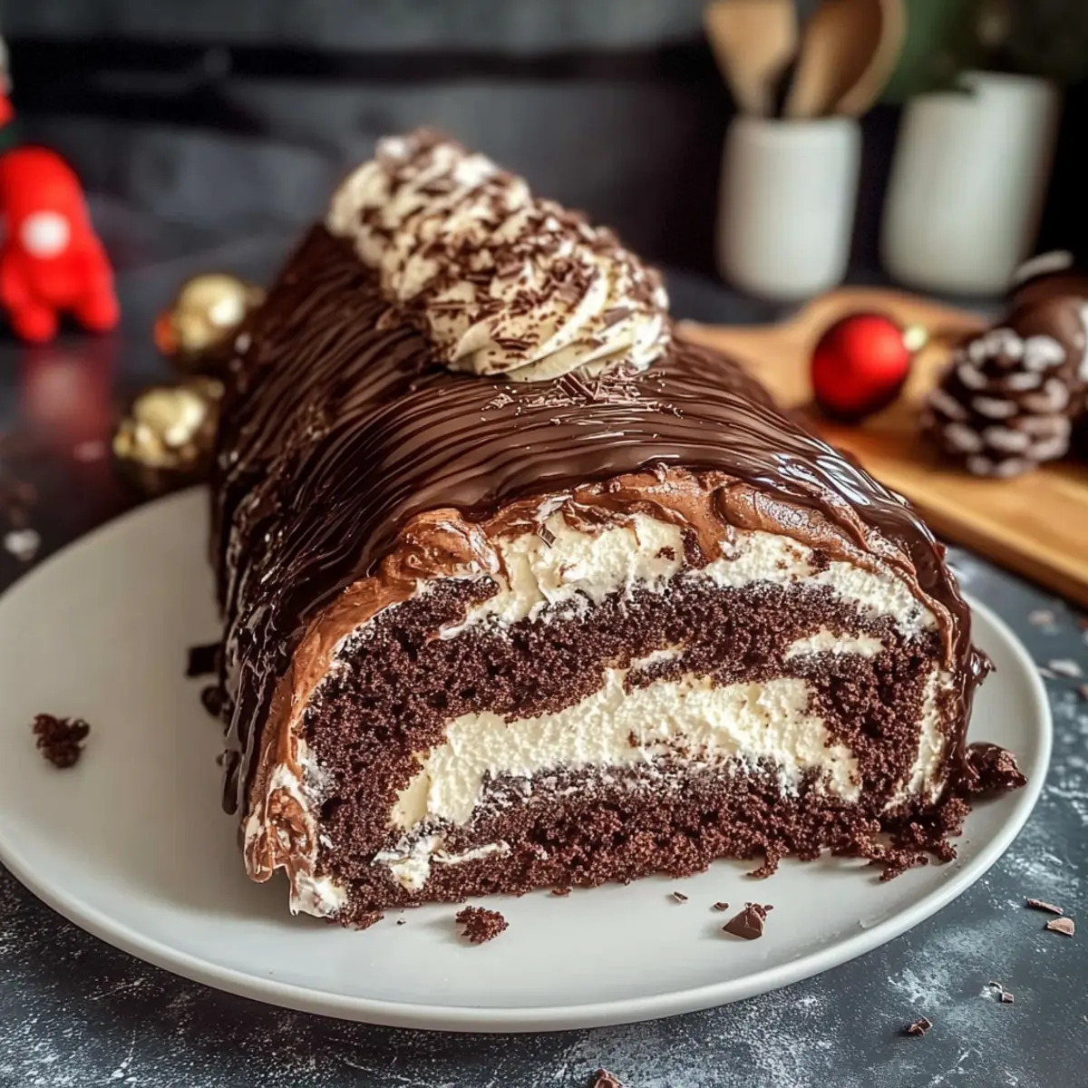 Als ich neulich in meiner Küche stand, um mich auf die festliche Zeit einzustimmen, begann ein köstlicher Gedanke, mein Herz zu erwärmen: ein Baileys Weihnachtsbaumstamm! Dieses Rezept, das die Aromen von zartem Schokoladensponge und sahniger Baileys-Creme kombiniert, ist mehr als nur ein Dessert – es ist ein Showstopper, der zu jeder Weihnachtsfeier passt. Die einfache Zubereitung lässt sich wunderbar in andere Varianten anpassen, sogar eine kinderfreundliche Version ohne Alkohol. Die Kombination aus schokoladiger Leichtigkeit und cremigem Genuss macht diesen Weihnachtsbaumstamm zum perfekten Höhepunkt Ihres Festmahls. Wer könnte da widerstehen? Lassen Sie uns gemeinsam auf die Reise in die Welt des Backens gehen und erfahren, wie Sie diesen himmlischen Leckerbissen zaubern können! Warum ist dieser Baileys Weihnachtsbaumstamm einzigartig? Einfachheit, die beeindruckt: Die Zubereitung des Baileys Weihnachtsbaumstamms ist unkompliziert und erfordert nur grundlegende Backkenntnisse – perfekt für alle! Gehaltvoller Geschmack: Die Kombination aus schokoladigem Sponge und sahniger Baileys-Creme sorgt für ein Geschmackserlebnis, das jeden begeistert. Vielseitigkeit: Mit einer kinderfreundlichen Variante und kreativen Aromen, wie Pfefferminz oder Haselnuss, können Sie Ihr eigenes Rezept erstellen! Festliche Eleganz: Dieser logförmige Leckerbissen sieht nicht nur umwerfend aus, sondern bringt auch Weihnachtsstimmung auf jeden Tisch. Zeitersparnis: Mit einer Zubereitungszeit von weniger als einer Stunde haben Sie schnell ein köstliches Dessert auf dem Tisch. Probieren Sie unseren Baileys Weihnachtsbaumstamm aus und überraschen Sie Ihre Gäste! Baileys Weihnachtsbaumstamm Zutaten Für den Teig: • Große Eier – Sorgen für Struktur und Feuchtigkeit, verwenden Sie Zimmertemperatur-Eier für bessere Emulgierung. • Zucker (fein) – Fügt Süße hinzu und hilft, eine leichte Textur zu schaffen; verwenden Sie keinen normalen Zucker, da dies die Textur beeinträchtigen könnte. • Vanilleextrakt – Verbessert das gesamte Geschmacksprofil; verwenden Sie reinen Vanilleextrakt für einen reicheren Geschmack. • Weißes Mehl – Bildet die Grundlage des Sponges; glutenfreies Mehl kann eine großartige Alternative für eine glutenfreie Variante sein. • Kakaopulver – Trägt zur Schokoladennote und Farbe des Teigs bei; unbedingt ungesüßtes Kakaopulver verwenden. Für die Füllung: • Sahne (Schlagsahne) – Unverzichtbar zum Schlagen und Füllen; halten Sie sie vor dem Schlagen gut gekühlt. • Baileys Irish Cream – Fügt Geschmack und Reichhaltigkeit zur Sahnefüllung hinzu; für eine kinderfreundliche Version weglassen. • Puderzucker – Zum Süßen der Sahne und für den perfekten Staub bei der Präsentation. Für die Ganache: • Dunkle und Milchschokolade – Kreiert das köstliche Topping; wählen Sie hochwertige Schokolade für beste Ergebnisse. • Sahne (für die Ganache) – Wenn Sie die Schokolade schmelzen, sorgen Sie für eine seidige Textur; die Temperatur sollte hoch genug sein, um die Schokolade zu schmelzen. Machen Sie sich bereit, diesen festlichen Baileys Weihnachtsbaumstamm zu zaubern, der sowohl die Augen als auch den Gaumen verzaubert! Schritt-für-Schritt-Anleitung für Baileys Weihnachtsbaumstamm Step 1: Ofen vorheizen und Blech vorbereiten Heizen Sie den Ofen auf 180 °C (160 °C Umluft) vor und bereiten Sie ein 23×33 cm großes Blech mit Backpapier vor. Achten Sie darauf, dass das Backpapier gut an den Rändern haftet, um ein Ankleben des Kuchens zu verhindern. Dieser Schritt stellt sicher, dass Ihr Baileys Weihnachtsbaumstamm gleichmäßig backt und das perfekte Grundgerüst für die Füllung bietet. Step 2: Eier und Zucker schlagen Schlagen Sie die großen Eier zusammen mit dem feinen Zucker mindestens 5 Minuten lang, bis die Mischung dick und hell ist. Verwenden Sie eine Küchenmaschine oder einen Handmixer für optimale Ergebnisse. Fügen Sie anschließend den Vanilleextrakt hinzu und rühren Sie ihn sanft unter. Diese geschlagene Mischung verleiht dem Teig die benötigte Luftigkeit und Struktur. Step 3: Trockene Zutaten sieben und falten Sieben Sie das weiße Mehl und das Kakaopulver direkt in die Schüssel mit der Eier-Zucker-Mischung. Falten Sie die trockenen Zutaten vorsichtig unter, bis sie gerade so integriert sind. Achten Sie darauf, nicht zu stark zu rühren, um die Luftigkeit des Teigs nicht zu verlieren. Dies ist entscheidend für den lockeren, feinen Schokoladensponge Ihres Baileys Weihnachtsbaumstamms. Step 4: Teig backen Gießen Sie den fertigen Teig gleichmäßig in das vorbereitete Blech und streichen Sie ihn glatt. Backen Sie ihn für 12-15 Minuten, bis der Teig elastisch und fest ist, wenn man leicht darauf drückt. Der richtige Garpunkt ist entscheidend, um einen perfekten Weihnachtsbaumstamm zu erhalten, der sich leicht rollen lässt, ohne zu brechen. Step 5: Auskühlen lassen Nehmen Sie das Blech aus dem Ofen und rollen Sie den warmen Kuchen zusammen mit dem Backpapier vorsichtig auf, um Risse zu vermeiden. Lassen Sie ihn auf einem Kuchengitter vollständig auskühlen, damit er seine Form behält. Dies ist ein wichtiger Schritt, da ein zu heißer Kuchen ansonsten beim Füllen brüchig werden kann. Step 6: Ganache herstellen Bereiten Sie die Ganache vor, indem Sie heiß geschlagene Sahne über die gehackte Schokolade gießen. Rühren Sie, bis die Mischung glatt und glänzend ist. Lassen Sie die Ganache anschließend abkühlen, bis sie eine streichfähige Konsistenz erreicht. Diese köstliche Schokoladenglasur wird die Oberfläche Ihres Baileys Weihnachtsbaumstamms perfekt abrunden. Step 7: Sahne aufschlagen In einer separaten Schüssel schlagen Sie die kalte Sahne zusammen mit dem Puderzucker steif. Stellen Sie sicher, dass die Sahne gut gekühlt ist, damit sie die gewünschte Konsistenz erreicht. Fügen Sie nach Belieben Baileys Irish Cream hinzu und falten Sie alles sanft unter. Diese schmackhafte Füllung sorgt für den 