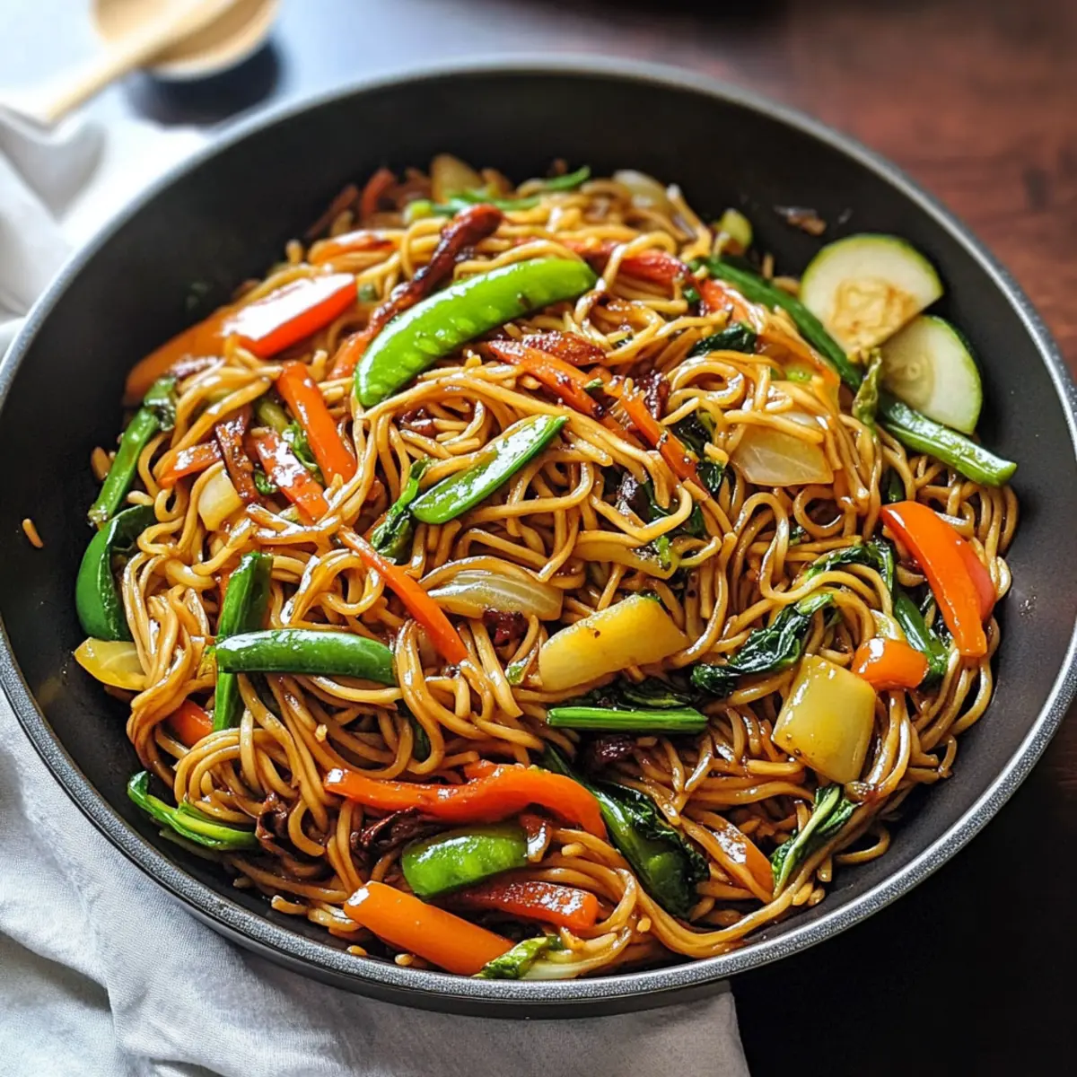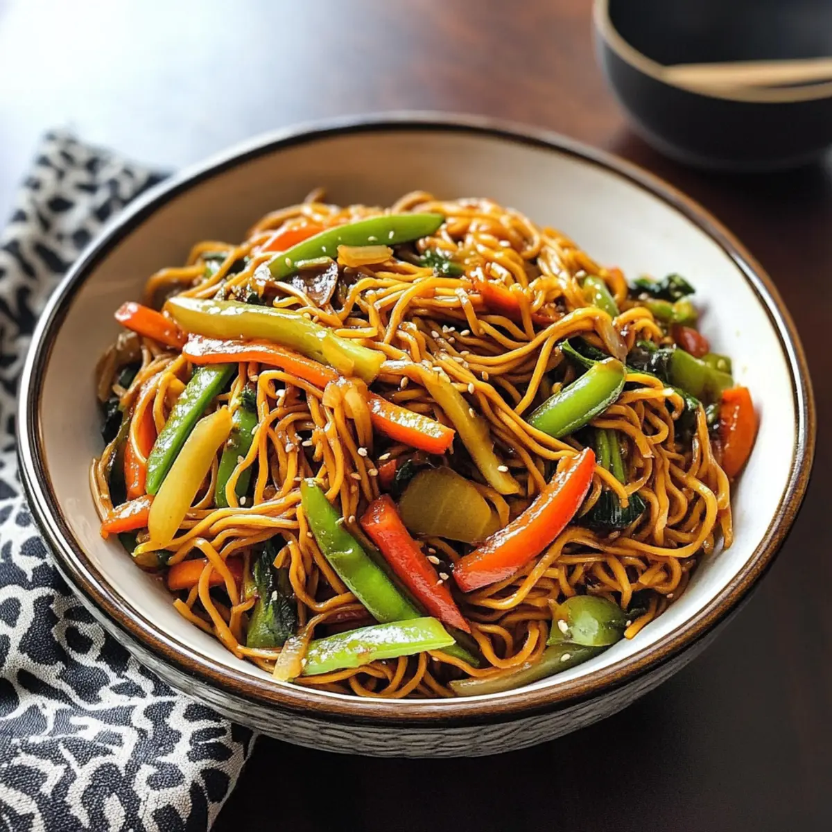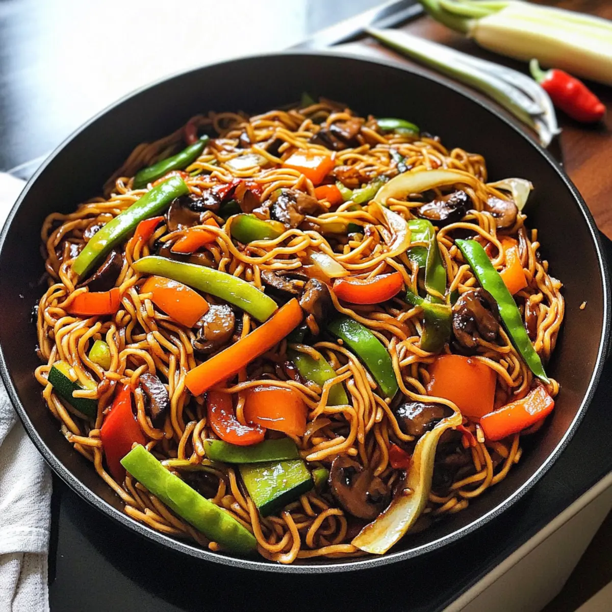 Ein aufregender Duft von frischen, knackigen Gemüse steigt mir in die Nase, während ich in meine Küche eintrete. Es ist Zeit für mein neues Lieblingsgericht: Beladene Gemüse-Lo Mein! Diese gesunde Variante des klassischen chinesischen Nudelgerichts vereint eine bunte Mischung aus frischem Gemüse und zähen Nudeln, alles umhüllt von einer leckeren, herzhaften Sauce. In weniger als 30 Minuten fertig, bietet es nicht nur schnelle und einfache Zubereitung, sondern auch eine köstliche Möglichkeit, den Heißhunger auf Takeout ohne schlechtes Gewissen zu stillen. Und mit etwa 202 Kalorien pro Portion ist es die perfekte gesunde Wahl, um sich wohlzufühlen. Neugierig, wie leicht es ist, dieses kunterbunte Nudelparadies selbst zuzubereiten? Lass uns gemeinsam eintauchen! Warum wird dieses Rezept dein Favorit? Schnelle Zubereitung: In weniger als 30 Minuten ist dein schmackhaftes Gericht fertig, ideal für beschäftigte Tage. Voller Geschmack: Die Kombination aus frischem Gemüse und einer herzhaften Sojasauce sorgt für ein Geschmackserlebnis, das jedem Takeout-Geschmackstand hält. Gesunde Zutaten: Mit etwa 202 Kalorien pro Portion ist diese Variante nicht nur schmackhaft, sondern auch nährstoffreich und sättigend. Vielseitig anpassbar: Du kannst spielend leicht deine Lieblingsgemüse verwenden oder sogar glutenfreie Nudeln einsetzen, um das Gericht anzupassen. Perfekte Texturen: Zarte, knackige Gemüse und al dente Nudeln machen jeden Bissen zu einem Genuss. Crowd-Pleaser: Dieses Gericht ist perfekt für die ganze Familie und wird selbst den wählerischsten Essern gefallen. Entdecke auch unsere Ideen für passende Beilagen, um das Erlebnis zu vervollständigen! Beladene Gemüse-Lo Mein Zutaten • Hinweis: Hier sind die Zutaten für dein köstliches und gesundes Beladene Gemüse-Lo Mein. Für die Sauce Reduzierte Natrium-Sojasauce – Verleiht einen herzhaften Geschmack; für eine glutenfreie Option mit Tamari ersetzen. Für das Gemüse Gemischte Pilze (Shiitake, Cremini, Austern, Steinpilze) – Sorgt für Umami-Tiefe und Textur; nutze deine Lieblingspilze, wenn gewünscht. Paprika – Bringt Süße und Crunch; verschiedene Farben sorgen für visuelle Attraktivität. Karotte – Liefert natürliche Süße und Nährstoffe; Zucchini kann für eine andere Textur verwendet werden. Zuckererbsen – Fügen einen knackigen Biss hinzu; können durch Snap-Erbsen ersetzt werden, wenn bevorzugt. Frühlingszwiebeln – Verbessern den Geschmack mit einem milden Zwiebelgeschmack; können durch Schalotten oder Schnittlauch ersetzt werden. Blattgemüse (z.B. Spinat, Pak Choi) – Erhöhen den Nährwert und die Ballaststoffe; jede Art von Blattgemüse kann je nach Verfügbarkeit verwendet werden. Für die Nudeln Vollkornspaghetti – Dient als Nudelbasis; kann durch traditionelle Lo Mein-Nudeln oder ähnliche Pasta ersetzt werden. Schritt-für-Schritt-Anleitung für Beladene Gemüse-Lo Mein Step 1: Nudeln vorbereiten Koche die Vollkornspaghetti gemäß den Anweisungen auf der Verpackung in einem großen Topf mit kochendem Wasser. Achte darauf, die Nudeln al dente zu garen, um eine angenehme Bissfestigkeit zu erzielen, etwa 8-10 Minuten. Gieße die Nudeln ab und stelle sie beiseite, während du die Gemüse vorbereitest. Step 2: Pfanne erhitzen Erhitze eine große Pfanne oder einen Wok bei mittlerer bis hoher Temperatur. Gib eine kleine Menge Öl hinein, damit die Zutaten nicht ankleben. Warte, bis das Öl heiß ist, und bereite dich vor, die Pilze hinzuzufügen – der richtige Zeitpunkt ist erreicht, wenn das Öl glänzt und schimmert. Step 3: Pilze anbraten Füge die gemischten Pilze in die heiße Pfanne und brate sie 3-4 Minuten lang unter gelegentlichem Rühren an, bis sie zart und goldbraun sind. Achte darauf, dass die Pilze gut durchgegart, aber nicht zu weich sind, um ihren Umami-Geschmack auch im Beladenen Gemüse-Lo Mein zu bewahren. Step 4: Gemüse hinzufügen Gib nun die gewürfelten Paprika, Karotten und Zuckererbsen in die Pfanne. Sauté die Mischung für 2-3 Minuten weiter, damit das Gemüse leicht weich wird und trotzdem seine knackige Textur behält. Die Farben der verschiedenen Gemüse machen das Gericht visuell ansprechend und gesund. Step 5: Frühlingszwiebeln und Blattgemüse einrühren Streue die geschnittenen Frühlingszwiebeln und das Blattgemüse in die Pfanne, während du alles gut umrührst. Koche die Mischung für etwa 1-2 Minuten, bis das Blattgemüse zusammenfällt und seine leuchtende grüne Farbe behält. Diese Schritte tragen dazu bei, dass die Beladene Gemüse-Lo Mein voll von frischen Aromen ist. Step 6: Sojasauce hinzufügen Gieße die reduzierte Natrium-Sojasauce gleichmäßig über das Gemüse in der Pfanne und mische alles gut zusammen. Stelle sicher, dass die Nudeln jetzt auch in die Mischung gegeben werden und gleichmäßig mit der Sauce durchzogen sind. Die Sauce sollte die gesamte Gemüsemischung umhüllen und für ein herzhaftes Aroma sorgen. Step 7: Servieren Serviere das Beladene Gemüse-Lo Mein sofort auf Tellern und garniere es nach Belieben mit zusätzlichen Frühlingszwiebeln. Achte darauf, dass die Farben und Aromen des Gerichts zum Ausdruck kommen. Genieße die leckeren und gesunden Aromen, während du in diese köstliche Mahlzeit eintauchst! Tipps zur Vorausbereitung für Beladene Gemüse-Lo Mein Die Zubereitung von Beladenem Gemüse-Lo Mein wird zum Kinderspiel, wenn du einige Komponenten im Voraus vorbereitest! Du kannst die Nudeln bis zu 24 Stunden vor dem Kochen al dente garen und im Kühlschrank aufbewahren, um ihre Textur zu bewahren. Auch das geschnittene Gemüse, insbesondere die Paprika und Karotten, lassen sich hervorragend bis zu 3 Tagen voraus schneiden. Bewahre das vorbereitete Gemüse in luftdichten Behältern im Kühlschrank auf, um Frische und Knackigkeit zu gewährleisten. Am Kochtag einfach die Pilze anbraten, das Gemüse hinzugeben und die vorbereiteten Nudeln mit der Sojasauce vermengen. Ein schnelles, gesundes Essen ist so in we