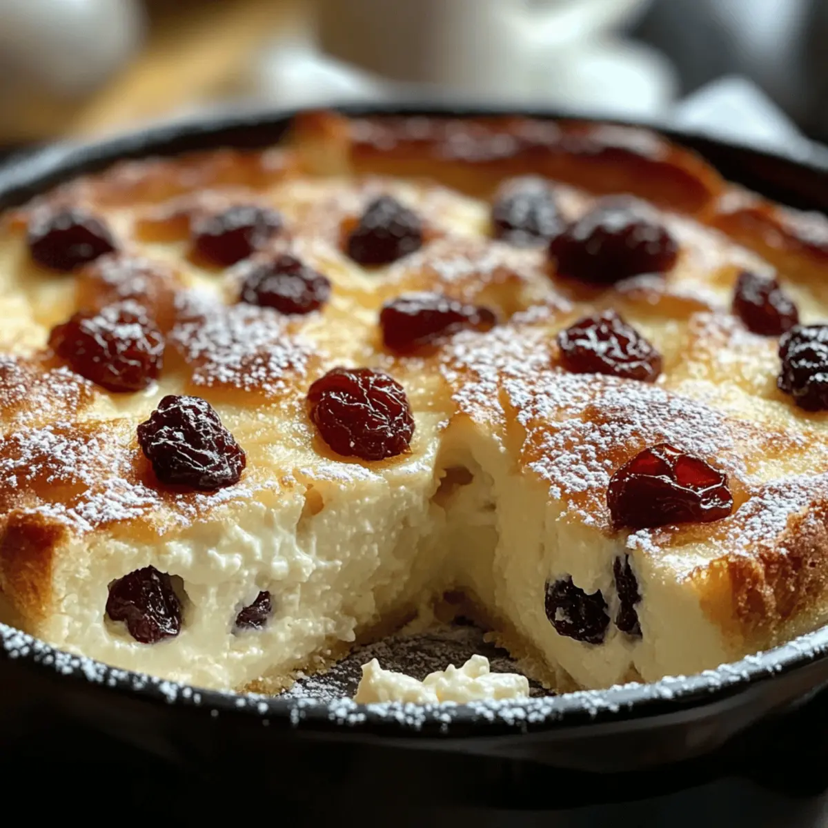Hast du schon einmal den Geschmack deiner Kindheit auf einem Löffel erlebt? Mein bestes Quarkauflauf-Rezept bringt genau das auf deinen Tisch! Diese traditionelle deutsche Speise verwöhnt nicht nur deinen Gaumen mit ihrer unglaublichen Cremigkeit, sondern ist auch erstaunlich leicht zuzubereiten. Mit ihrer luftigen Textur und der perfekten Balance aus süß und herb wird sie garantiert zum Highlight bei jedem Familienessen oder gemütlichen Abend mit Freunden. Und das Beste daran? Du kannst sie ganz nach deinem Geschmack variieren, sei es mit frischen Früchten, knackigen Nüssen oder einer Prise deines Lieblingsgewürzes. Bist du bereit, dir selbst ein Stück dieses Komfortklassikers zu gönnen? Lass uns direkt mit dem Rezept beginnen! Warum ist dieses Quark Auflauf Rezept besonders? Einfache Zubereitung: Die Schritte sind unkompliziert und benötigen nur grundlegende Küchenfertigkeiten – perfekt für jeden Hobbykoch! Vielfältige Variationen: Passen Sie das Rezept ganz nach Ihrem Geschmack an, sei es mit frischen Beeren, nussigen Aromen oder Gewürzen wie Zimt und Kardamom für eine persönliche Note. Wohlfühlfaktor: Jeder Bissen ist cremig und zart, was Erinnerungen an gemütliche Familienabende weckt. Nährstoffreich: Dieses Rezept ist proteinreich, was es zu einer nahrhaften Option für Dessert oder Frühstück macht und gleichzeitig eine angenehme Sättigung bietet. Ein Hit bei Gästen: Egal, ob bei einem Festessen oder einem spontanen Treffen – dieser Quark Auflauf wird garantiert alle begeistern! Für weitere köstliche Ideen, probieren Sie unser Rezept für Gemuese Hack Auflauf oder den Spargel Kartoffel Auflauf. Bestes Quarkauflauf Rezeptzutaten • Für die Quarkmasse: Magerquark – Das Hauptzutat, die die Cremigkeit verleiht; kann durch Ricotta ersetzt werden für eine andere Textur. Eier – Sorgen für Struktur und Reichtum; trennen Sie Eigelb und Eiweiß für eine leichte Konsistenz. Zucker – Süßt das Gericht; Honig oder ein Zuckerersatz können für weniger Kalorien verwendet werden. Vanillezucker – Fügt eine subtile Vanillenote hinzu; kann durch Vanilleextrakt ersetzt werden, falls nicht vorhanden. Bio-Zitrone – Bringt Frische und einen herb-zitronigen Akzent; Orangenabrieb ist eine gute Alternative für einen anderen Geschmack. Weichweizengrieß – Hilft beim Binden der Zutaten und sorgt für Textur; Maismehl kann als glutenfreie Option verwendet werden. Rosinen – Fügen Süße und Kaubarkeit hinzu; können durch getrocknete Cranberries ersetzt oder ganz weggelassen werden. Salz – Ausgewogenheit der Süße; essenziell im Backen für die Geschmacksverstärkung. Milch – Trägt zu einer cremigen Konsistenz bei; pflanzliche Milch kann für eine laktosefreie Variante verwendet werden. Butter – Verleiht Reichtum; kann durch Kokosöl ersetzt werden für eine milchfreie Alternative. Puderzucker – Dient zum Bestäuben vor dem Servieren; optional als Garnierung. • Optionale Ergänzungen: Frische Beeren oder Apfelmus – Verbessern Geschmack und Präsentation; als Beilage servieren, um das Gericht zu ergänzen. Mandelblättchen – Sorgen für einen knusprigen Biss; können durch andere Nüsse ersetzt oder ganz weggelassen werden. Entdecken Sie die köstlichen Möglichkeiten mit diesem besten Quarkauflauf Rezept! Step-by-Step Instructions für Bestes Quark Auflauf Step 1: Vorbereiten Heize den Ofen auf 170°C vor (150°C für Umluft). Fette eine 1,5- bis 2-Liter Auflaufform mit Butter ein und streue etwas Weichweizengrieß darauf. Trenne die Eier in Eigelb und Eiweiß und lege das Eiweiß beiseite. Weiche die Rosinen in Apfelsaft ein und reibe die Schale von einer halben Zitrone ab, während du auch den Saft extrahierst. Step 2: Quarkmasse herstellen In einer großen Schüssel vermenge die Eigelbe mit dem Magerquark, Zucker, Vanillezucker, Zitronenabrieb und -saft. Optional kannst du auch Vanillepuddingpulver hinzufügen. Rühre langsam den Weichweizengrieß, die geschmolzene Butter und die Milch unter, bis eine homogene Masse entsteht. Klappe anschließend die gut abgetropften Rosinen unter die Mischung. Step 3: Eiweiß schlagen In einer sauberen Schüssel schlage die Eiweiße mit einer Prise Salz steif, bis sich feste Spitzen bilden. Füge zunächst ein Drittel des geschlagenen Eiweißes zur Quarkmasse hinzu, um diese aufzulockern. Dann die restlichen Eiweiße in zwei Portionen vorsichtig unterheben, um die luftige Konsistenz des Quark Auflaufs zu bewahren. Step 4: Backen Gieße die Quarkmasse in die vorbereitete Auflaufform und streiche die Oberfläche glatt. Optional kannst du die Oberfläche mit Mandelblättchen bestreuen. Backe den Auflauf für etwa 45 bis 60 Minuten, bis er goldbraun und fest ist. Nach dem Backen den Ofen ausschalten und die Tür 10-15 Minuten leicht geöffnet lassen, damit der Auflauf nicht zusammenfällt. Step 5: Servieren Lass den Quark Auflauf leicht abkühlen, bevor du ihn mit Puderzucker bestäubst. Serviere ihn warm, am besten in Kombination mit frischen Beeren oder Apfelmus, um das Geschmackserlebnis zu vervollständigen. Was passt zu Bestes Quarkauflauf? Der Quark Auflauf ist ein wahrer Genuss, der sich wunderbar in ein vollständiges Menü einfügt und für jeden Anlass geeignet ist. Frische Beeren: Kombinieren Sie ihn mit saftigen, süßen Beeren für einen fruchtigen Kontrast, der die Cremigkeit des Auflaufs perfekt ergänzt. Die spritzigen Aromen erfrischen das Geschmackserlebnis. Äpfelmus: Servieren Sie warmen Quark Auflauf mit einem Löffel dickflüssigem Apfelmus, das eine leichte Säure und zusätzliche Süße bietet. Es harmoniert großartig mit der zarten Textur des Auflaufs. Vanilleeis: Eine Kugel cremiges Vanilleeis obendrauf bringt einen schmelzenden Effekt in Verbindung mit der warmen Speise. Diese Kombination ist ein himmlisches Dessert. Kaffee oder Tee: Ein frischer, aromatischer Kaffee oder eine Tasse feiner Tee sind ideale Begleiter, die den Geschmack des Auflaufs hervorheben und für eine gemütlic