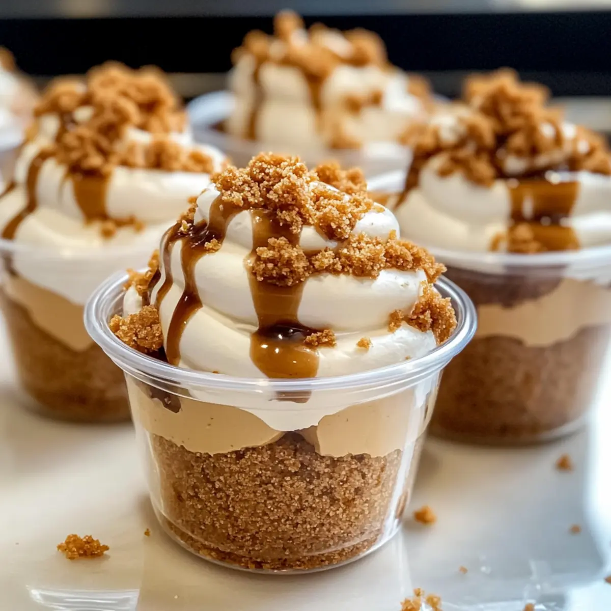 Während ich durch die Regale meines Lieblingssupermarkts schlenderte, fiel mir das verführerische Glänzen von Biscoff-Cookie-Butter ins Auge. Ich konnte nicht widerstehen und wusste sofort, dass ich ein Rezept kreieren musste, das diesen himmlischen Geschmack feiert. Die No-Bake Biscoff Dessert Becher sind die perfekte Lösung für alle, die nach einem schnellen Dessert voller Genuss suchen, ohne stundenlang in der Küche zu stehen. Diese schmackhaften Becher verbinden die Cremigkeit einer wunderbaren Füllung mit einem knackigen Keksboden – ein Genuss, der garantiert bei allen gut ankommt. Ganz gleich, ob für besondere Anlässe oder einfach nur für ein unkompliziertes Kaffeekränzchen, diese süßen Happen werden Ihre Gäste begeistern! Wer könnte da schon widerstehen? Lassen Sie uns gemeinsam in die Welt dieser köstlichen Biscoff Dessert Becher eintauchen! Warum sind diese Biscoff Dessert Becher unwiderstehlich? Einfachheit: Die Zubereitung ist kinderleicht und benötigt keine Backkünste. Ideal für Anfänger oder alle, die schnell etwas Süßes zaubern möchten! Köstlicher Geschmack: Die Kombination aus Biscoff-Cookie-Butter und frischer Sahne sorgt für ein geschmackliches Erlebnis, das die Herzen jedes Dessertliebhabers höherschlagen lässt. Vielseitigkeit: Ob mit frischen Beeren, Schokoladensoße oder anderen Toppings – die Möglichkeiten sind endlos! Personalisieren Sie Ihre Becher ganz nach Ihren Wünschen. Perfekt für jede Gelegenheit: Egal, ob Sie Gäste empfangen oder einfach nur selbst genießen möchten, diese Dessert-Becher sind ein sicherer Hit, der alle begeistert. Schnell zubereitet: Mit nur wenigen Zutaten und ohne Backen haben Sie in kürzester Zeit ein delikates Dessert. Perfekt für spontane Gelüste! Kombinieren Sie mit Kaffee oder Tee: Diese Becher passen hervorragend zu einer Tasse Ihres Lieblingsgetränks und machen jede Kaffeepause zu einem besonderen Erlebnis. Biscoff Dessert Becher Zutaten Für den Keksboden • Biscoff Keksbrösel – Sorgen für Struktur und Geschmack; können durch Gewürzkekse ersetzt werden, wenn nicht verfügbar. • Ungesalzene Butter – Bindet den Boden; achten Sie darauf, dass sie geschmolzen ist für eine gleichmäßige Mischung. Für die Füllung • Frischkäse – Fügt Cremigkeit hinzu; verwenden Sie Zimmertemperatur für ein besseres Vermengen. • Zucker – Süßt die Füllung; kann für ein weniger süßes Dessert nach Belieben reduziert werden. • Vanilleextrakt – Verstärkt den Geschmack; kann weggelassen werden, falls gewünscht. • Biscoff Aufstrich (Keksebutter) – Das Hauptzutat, die einen reichen, gewürzten Geschmack bietet; kann durch ähnliche Aufstriche ersetzt werden, wenn nicht verfügbar. • Schlagsahne – Fügt Leichtigkeit und Volumen hinzu; schlagen Sie, bis steife Spitzen entstehen für das beste Ergebnis. Für das Topping • Zusätzlicher Biscoff Aufstrich zum Drizzeln – Für eine visuelle und geschmackliche Aufwertung; leicht schmelzen, bevor Sie ihn verwenden. • Kekse für Dekoration – Zerbröseln Sie zusätzliche Biscoff-Kekse für einen knusprigen Abschluss. Die Biscoff Dessert Becher sind nicht nur einfach herzustellen, sondern bringen auch Freude und Genuss auf jeden Tisch! Schritt-für-Schritt-Anleitung für Biscoff Dessert Becher Step 1: Keksboden zubereiten Vermischen Sie die Biscoff Keksbrösel mit der geschmolzenen Butter in einer Schüssel, bis die Mischung die Konsistenz von feuchtem Sand hat. Drücken Sie diese Mischung fest auf den Boden von Plastikbechern, um einen stabilen Keksboden zu formen. Achten Sie darauf, dass der Boden gleichmäßig verteilt ist, damit er beim Servieren gut zusammenhält. Step 2: Füllung vorbereiten In einer großen Schüssel kombinieren Sie den Frischkäse, Zucker und Vanilleextrakt. Schlagen Sie die Mischung mit einem Handmixer auf mittlerer Stufe, bis sie glatt und cremig ist. Fügen Sie den Biscoff Aufstrich hinzu und rühren Sie weiter, bis alles gleichmäßig vermischt ist. Achten Sie darauf, dass keine Klumpen zurückbleiben für eine zarte Füllung. Step 3: Sahne schlagen In einer separaten, kalten Schüssel die Schlagsahne mit einem Handmixer auf hoher Stufe schlagen, bis sich steife Spitzen bilden. Dies dauert etwa 3-5 Minuten. Seien Sie vorsichtig, dass Sie die Sahne nicht übermixen, da sie sonst butterig wird. Sanft die geschlagene Sahne in die Biscoff Füllung unterheben, bis alles gut miteinander vermischt ist und die Füllung fluffig bleibt. Step 4: Füllung einfüllen Übertragen Sie die Biscoff Füllung in einen Spritzbeutel. Füllen Sie jeden Becher vorsichtig bis etwa ¾ voll, um eine schöne Schichtenwirkung zu erzielen. Achten Sie darauf, die Füllung gleichmäßig zu verteilen, und lassen Sie etwas Platz für eventuell gewünschte Toppings. So erhalten die Biscoff Dessert Becher ein ansprechendes Aussehen. Step 5: Toppings hinzufügen Schmelzen Sie den zusätzlichen Biscoff Aufstrich leicht in der Mikrowelle für etwa 15-20 Sekunden. Drizzeln Sie diesen geschmolzenen Aufstrich über die gefüllten Becher, um eine verführerische Garnierung zu schaffen. Streuen Sie dann die zerbröselten Biscoff Kekse darüber für zusätzliche Textur und eine ansprechende Präsentation. Step 6: Kühlen Decken Sie die Biscoff Dessert Becher mit Frischhaltefolie ab und stellen Sie sie mindestens 2 Stunden in den Kühlschrank. Diese Kühlzeit erlaubt es der Füllung, gut durchzuziehen und fest zu werden. Genießen Sie die Vorfreude, während sich die Aromen entfalten und die Becher bereit für den Genuss werden! Was passt zu Biscoff Dessert Bechern? Die perfekten Begleiter zu diesen köstlichen, cremigen Dessertbechern werden Ihr Geschmackserlebnis noch weiter bereichern. Frische Beeren: Saftige Erdbeeren oder Himbeeren bringen eine fruchtige Frische, die wunderbar mit der Süße der Biscoff Dessert Becher harmoniert. Tee oder Kaffee: Eine Tasse aromatischer Earl Grey oder kräftiger Kaffee ergänzt den süßen Genuss und bietet ein