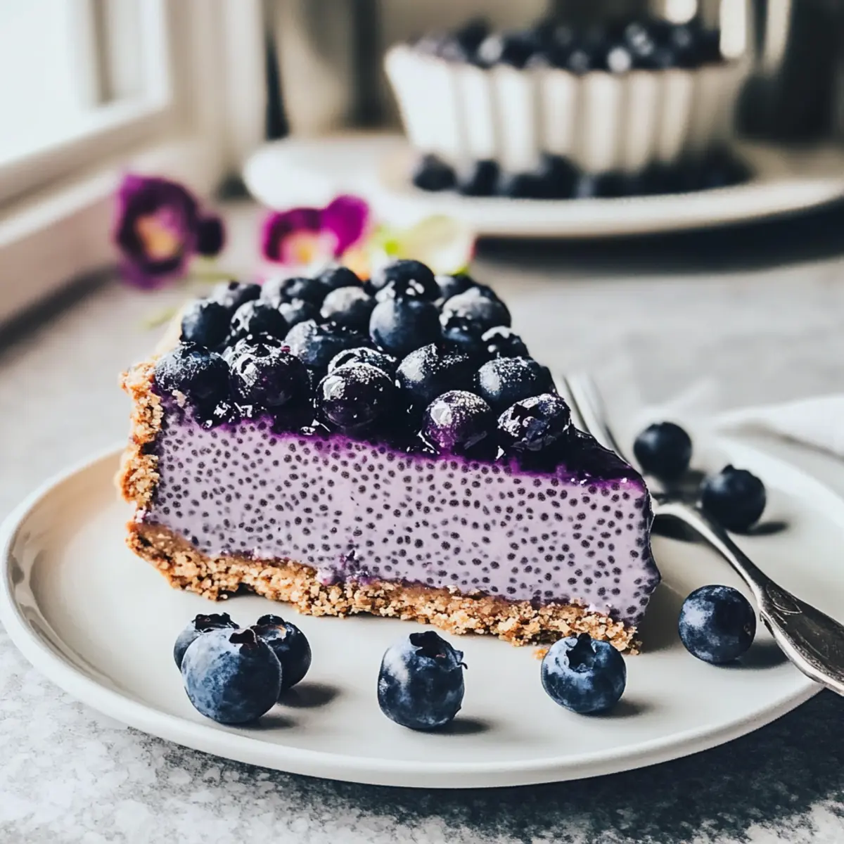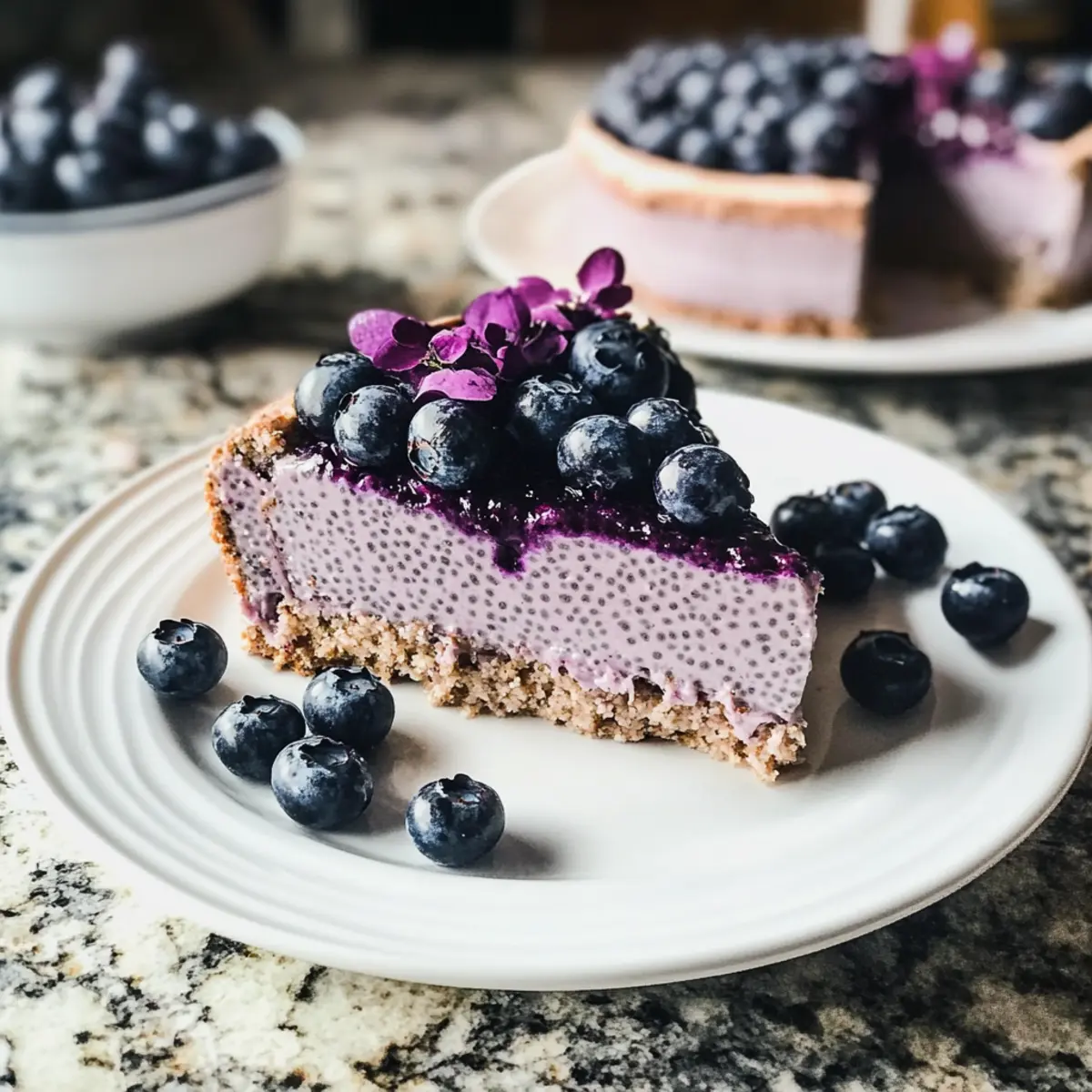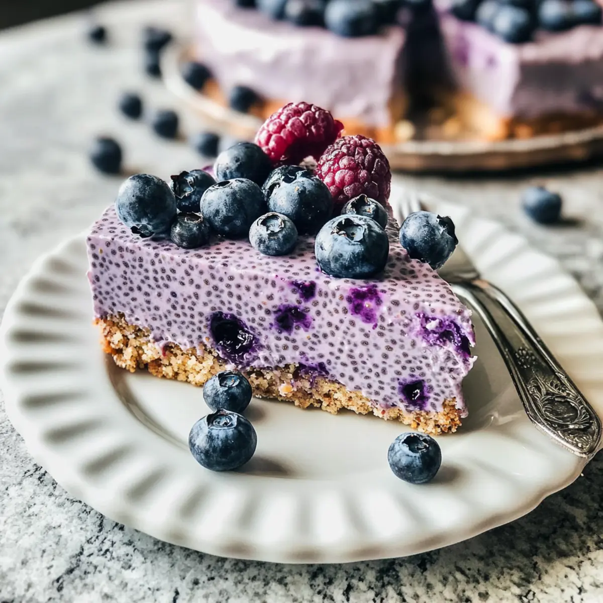 Als ich neulich eine kleine Auszeit vom hektischen Alltag benötigte, kam mir die Idee, etwas zu kreieren, das sowohl köstlich als auch nährstoffreich ist. Der Blaubeer Chia Pudding Kuchen ist nicht nur ein schneller, no-bake Genuss, sondern auch eine wunderbare Möglichkeit, pflanzliche Ernährung in die Dessert-Galerie zu integrieren. Mit seiner cremigen Textur und dem fruchtigen Geschmack ist dieses vegane Dessert perfekt für jede Gelegenheit – sei es als Belohnung nach einem langen Tag oder als gesunder Snack am Nachmittag. Darüber hinaus benötigt man nur wenige Zutaten und die Zubereitung ist im Handumdrehen erledigt. Neugierig, wie einfach man sich eine solch gesunde Köstlichkeit zaubern kann? Lass uns gemeinsam in diese Rezeptwelt eintauchen! Warum ist dieser Kuchen einfach unwiderstehlich? Einfachheit pur: Die Zubereitung des Blaubeer Chia Pudding Kuchens gelingt jedem, selbst ohne Backerfahrung. Gesunder Genuss: Mit nährstoffreichen Zutaten ist dieses Dessert eine fantastische, guilt-free Wahl. Vielfalt der Aromen: Du kannst die Blaubeeren durch deine Lieblingsfrüchte ersetzen und so jedem Bissen eine persönliche Note verleihen! Schnell zubereitet: In nur wenigen Schritten erhältst du ein beeindruckendes Dessert, das hervorragend für spontane Einladungen geeignet ist. Perfektes Erlebnis: Die Kombination aus einer knackigen Kruste und einer cremigen Füllung macht jeden Bissen zum Hochgenuss. Blaubeer Chia Pudding Kuchen Zutaten Hier sind die leckeren Komponenten, die du für den Blaubeer Chia Pudding Kuchen benötigst: Für den Boden • Veganer Keks – dient als Grundlage für die köstliche Kruste; wähle eine glutenfreie Sorte oder ersetze sie durch knuspriges Granola. • Veganer Butter (¼ Tasse) – bindet die Bodenbestandteile; du kannst sie auch durch geschmolzenes Kokosöl ersetzen. Für die Pudding-Füllung • Kokosmilch (1 Tasse) – sorgt für ein reichhaltiges und cremiges Mundgefühl; jede pflanzliche Milch kann verwendet werden. • Chiasamen (5 EL) – fungieren als Bindemittel und geben der Füllung die notwendige Konsistenz; sie sind ein Muss für das Rezept. • Blaubeeren (1 ½ Tassen) – bringen Geschmack und Farbe ins Spiel; frische oder gefrorene Blaubeeren sind perfekt, du kannst sie aber auch durch Püree anderer Früchte ersetzen. • Pflanzlicher Joghurt (14 oz) – verleiht der Pudding-Schicht Cremigkeit; verwende dickere Sorten, wie Kokosjoghurt oder pürierten Seidentofu. • Rohrzucker (⅓ Tasse) – süßt die Füllung; du kannst jeden gewünschten Süßstoff verwenden. • Vanilleextrakt (½ EL) – hebt den Geschmack hervor; optional für die, die eine dezente Vanillenote wünschen. • Agar-Pulver (2 TL) – unverzichtbar für die Festigung des Puddings; kann für nicht-vegane Varianten durch Gelatine ersetzt werden. Optionales Topping • Frische Blaubeeren und Brombeeren – ideal zum Garnieren und hinzufügen einer fruchtigen Note. Mit diesen Zutaten bist du bestens gerüstet, um ein köstliches, gesundes Dessert zu zaubern, das jeder lieben wird! Schritt-für-Schritt-Anleitung für den Blaubeer Chia Pudding Kuchen Step 1: Kruste vorbereiten Fette eine 18 cm große Springform leicht ein und lege den Boden mit Backpapier aus. Zerkrümel die veganen Kekse oder das Granola in einem Mixer, bis sie fein sind. Vermische die Krümel mit der geschmolzenen veganen Butter und drücke die Mischung gleichmäßig auf den Boden der Form. Stelle die Form für mindestens 15 Minuten in den Kühlschrank, damit die Kruste fest wird. Step 2: Chia-Pudding zubereiten Schlage in einer Schüssel die Kokosmilch mit den Chiasamen gut durch und lasse die Mischung 5 Minuten ruhen, damit die Samen quellen. Püriere in der Zwischenzeit die Blaubeeren bis zur gewünschten Konsistenz und rühre sie anschließend unter die Chia-Mischung. Füge den pflanzlichen Joghurt, den Rohrzucker und den Vanilleextrakt hinzu und vermische alles gründlich. Step 3: Agar einarbeiten Gib das Agar-Pulver in einen kleinen Topf mit ¼ Tasse Wasser oder einer anderen pflanzlichen Milch. Bringe die Mischung unter ständigem Rühren zum Kochen und lasse sie 2 Minuten köcheln, bis das Agar sich vollständig aufgelöst hat. Nimm den Topf vom Herd und mische die Agar-Lösung schnell in die vorbereitete Blaubeer-Chia-Pudding-Masse. Step 4: Kuchen zusammensetzen Gieße die Chia-Pudding-Mischung gleichmäßig über die fest gewordene Keks- oder Granolakruste in der Springform. Glätte die Oberfläche mit einem Spatel, um eine schöne Präsentation zu erzielen. Stelle den Blaubeer Chia Pudding Kuchen für mindestens 3 Stunden, besser über Nacht, in den Kühlschrank, damit er gut fest wird und die Aromen sich entfalten können. Step 5: Servieren und garnieren Hole den Kuchen vorsichtig aus der Springform und entferne das Backpapier. Garniere ihn nach Belieben mit frischen Blaubeeren und Brombeeren, um einen zusätzlichen Farbtupfer zu setzen. Schneide den Blaubeer Chia Pudding Kuchen in gleichmäßige Stücke und serviere ihn kühl als gesunden Snack oder Dessert. Aufbewahrung des Blaubeer Chia Pudding Kuchens Kühlschrank: Bewahre den Kuchen in einem luftdichten Behälter auf, damit er frisch bleibt; so ist er bis zu 3 Tage haltbar. Einfrieren: Wenn du noch Reste hast, kannst du den Kuchen portionsweise einfrieren. Wickele ihn gut in Plastikfolie und lege ihn in einen gefrierfesten Behälter; er bleibt bis zu 2 Monate frisch. ** Auftauen:** Zum Auftauen den Kuchen über Nacht im Kühlschrank lagern. So bleibt die Textur des Blaubeer Chia Pudding Kuchens optimal. Servieren: Bei Bedarf einfach kalt genießen oder kurz bei Zimmertemperatur stehen lassen, um die Aromen zu intensivieren. Vorbereitung für den Blaubeer Chia Pudding Kuchen Der Blaubeer Chia Pudding Kuchen ist ideal für eine mühelose Wochenplanung! Du kannst die Kruste (mit veganen Keksen und Butter) bis zu 24 Stunden im Voraus zubereiten und im Kühlschrank aufbewahren, um eine perfekte Basis zu schaffen. Auch die Chia-Pu