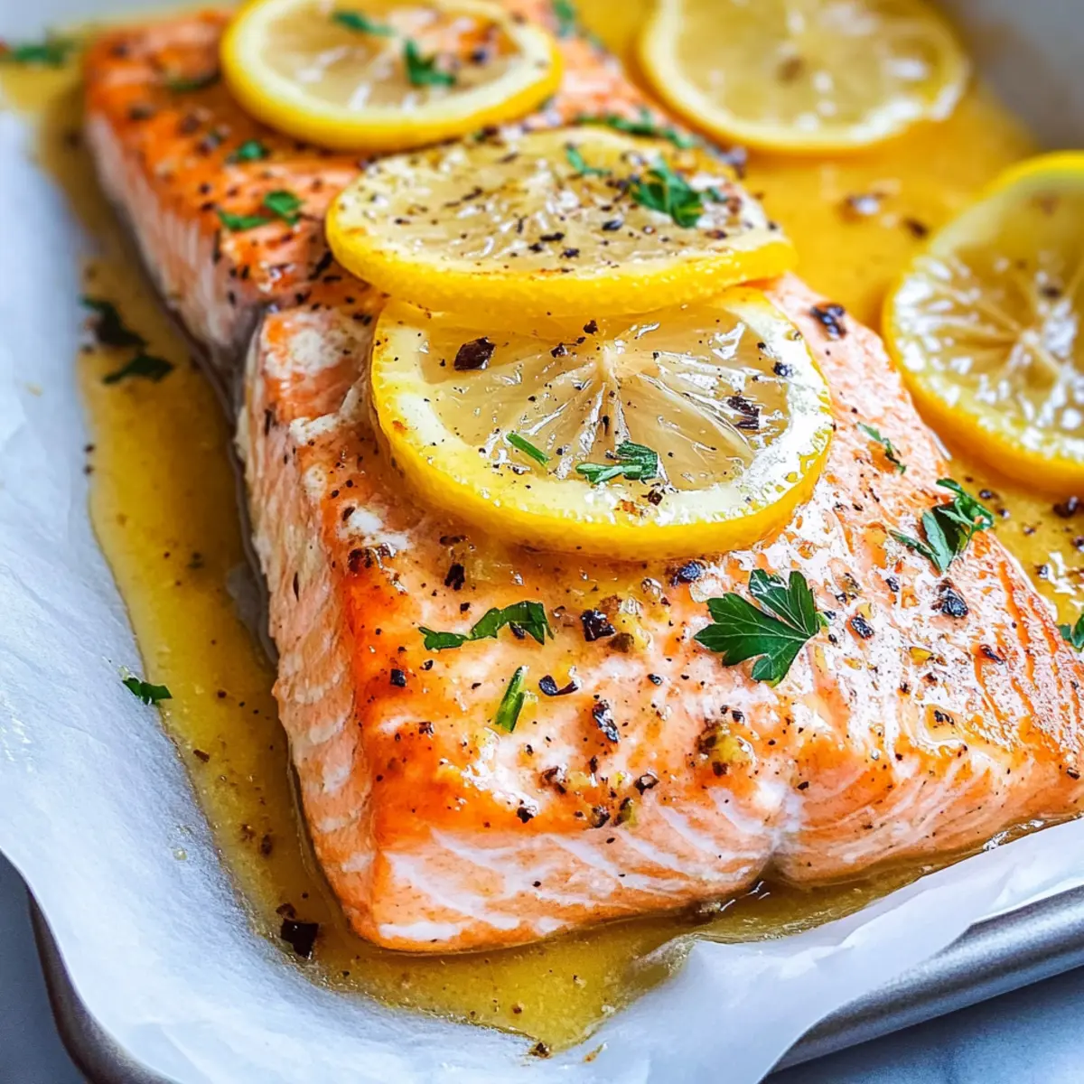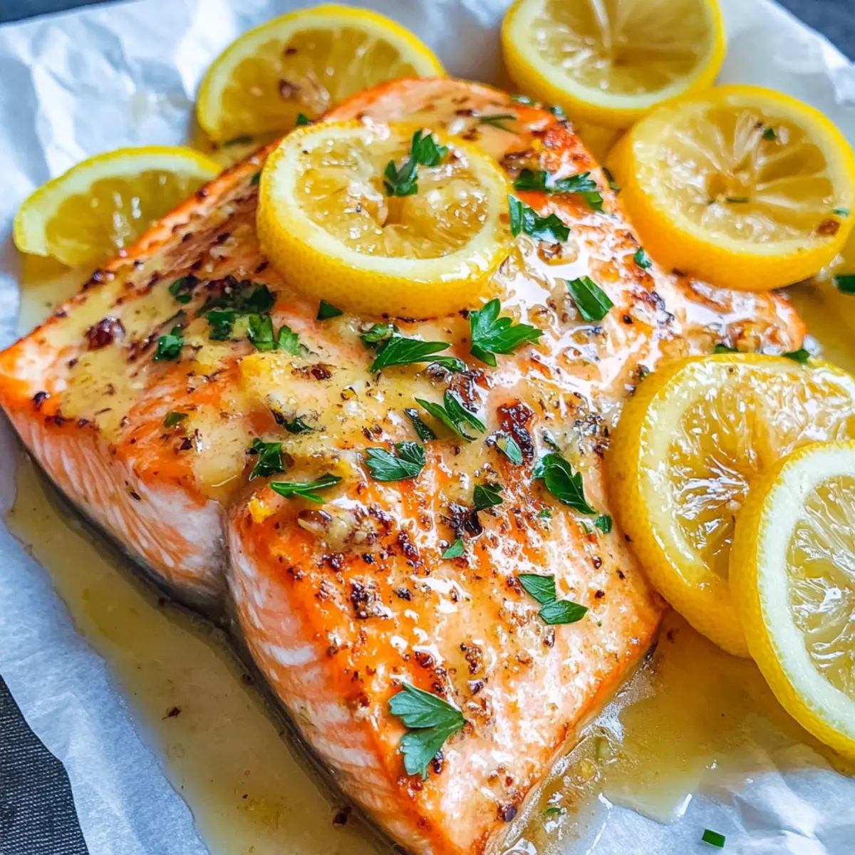 Kaum etwas bringt so viel Freude in die Küche wie der verführerische Duft von frisch gebackenem Lachs, der mit Zitronen und Knoblauch harmoniert. Mein Rezept für Blechpfanne Zitronen Knoblauch Butter Lachs ist nicht nur ein kulinarisches Highlight, sondern auch ein echter Zeitretter. In nur 30 Minuten zaubern Sie ein köstliches Gericht, das sowohl gesund als auch familienfreundlich ist. Der zarte Lachs, geröstet in einer würzigen Knoblauchbutter-Sauce, trifft auf den frischen Zitrusgeschmack, der jeden Biss zu einem kleinen Fest macht. Und das Beste daran? Die unkomplizierte Zubereitung in nur einer Pfanne bedeutet minimalen Aufwand beim Putzen – perfekt für stressige Wochentage! Neugierig, wie Sie diese schnelle Delikatesse zubereiten können? Warum wird dieses Rezept so geliebt? Einfachheit auf den Punkt gebracht: Die Zubereitung ist schnell und erfordert nur grundlegende Kochkenntnisse, die jeder beherrschen kann. Satte Aromen: Die Kombination aus Zitronensaft und Knoblauchbutter sorgt für ein Geschmacksfeuerwerk, das selbst die einfachsten Wochentagsessen verwandelt. Vielseitigkeit pur: Ganz gleich, ob Sie nur den Lachs zubereiten oder Gemüse hinzufügen möchten, dieses Rezept passt sich Ihren Bedürfnissen an! Perfekte Portionsgröße: Mit nur einem Blech bleibt der Abwasch minimal – ideal für entspannte Abende. Gesundheitlich vorteilhaft: Diese Mahlzeit ist nicht nur lecker, sondern auch nährstoffreich und glutenfrei, sodass Sie sich ohne Schuldgefühle verwöhnen lassen können. Lassen Sie sich inspirieren und entdecken Sie mehr von meinen gesunden Rezepten, wie zum Beispiel Gesunde Lachsgerichte! Blechpfanne Zitronen Knoblauch Butter Lachs Zutaten For the Salmon • Lachsfilet – Hauptproteinquelle; wählen Sie eine Hautseite für zusätzliche Feuchtigkeit. • Zitrone – Sorgt für Frische und Säure; verwenden Sie frisch gepressten Saft für den besten Geschmack. For the Garlic Butter Sauce • Ungesalzene Butter – Basis der Sauce, die für Reichtum und Geschmack sorgt; kann durch Olivenöl ersetzt werden für eine leichtere Variante. • Zitronensaft – Verstärkt den Zitronengeschmack und fügt Säure hinzu; frischer Saft von reifen Zitronen ist ideal. • Honig – Bringt Süße und balanciert den herzhaften Knoblauch; Agavensirup kann als Substitute verwendet werden. • Knoblauch – Verleiht ein aromatisches Geschmackserlebnis; frische Zehen sind am besten, aber Sie können auch gehackten Knoblauch nutzen. For Seasoning • Küstenmeersalz – Unverzichtbar für die Geschmacksverstärkung; nach Belieben anpassen. • Frisch gemahlener schwarzer Pfeffer – Fügt eine pfeffrige Note hinzu; kann durch weißen Pfeffer ersetzt werden. For Garnish • Frische Petersilie – Optionale Garnitur für Frische und Farbe. Dank dieser einfachen und köstlichen Zutaten können Sie im Handumdrehen einen fantastischen Blechpfanne Zitronen Knoblauch Butter Lachs zaubern! Step-by-Step Instructions for Blechpfanne Zitronen Knoblauch Butter Lachs Step 1: Backofen vorheizen Heizen Sie Ihren Ofen auf 190°C (375°F) vor. Stellen Sie sicher, dass das Gitter in der Mitte des Ofens platziert ist, um eine gleichmäßige Garung zu gewährleisten. Diese Temperatur sorgt dafür, dass der Lachs zart bleibt und die Aromen der Zitronen und des Knoblauchs optimal zur Geltung kommen. Step 2: Blech vorbereiten Bereiten Sie ein Backblech vor, indem Sie es mit Folie auslegen; diese polstert die Oberfläche und erleichtert die Reinigung. Legen Sie das Lachsfilet mit der Hautseite nach unten auf das Blech. Dies garantiert, dass das Filet beim Backen saftig bleibt und die sich entwickelnden Aromen gut aufgenommen werden. Step 3: Zitrone anrichten Schneiden Sie die Zitrone in dünne Scheiben und legen Sie diese gleichmäßig unter das Lachsfilet. Die Zitronenscheiben geben beim Backen ihren frischen Saft ab und unterstützen die Aromatisierung des Lachs, sodass jeder Biss eine perfekte Balance aus Zitrus und reichhaltiger Butter hat. Step 4: Knoblauchbutter herstellen Schmelzen Sie die ungesalzene Butter in einem kleinen Topf bei mittlerer Hitze. Fügen Sie anschließend den frisch gepressten Zitronensaft, den Honig und die fein gehackten Knoblauchzehen hinzu. Rühren Sie die Mischung gut um, bis sie homogen ist und der Knoblauch anfängt, duftend zu werden. Step 5: Lachs würzen Gießen Sie die Knoblauchbutter gleichmäßig über das Lachsfilet, wobei Sie etwas von der Mischung für später aufbewahren. Streuen Sie eine Prise Küstenmeersalz und frisch gemahlenen schwarzen Pfeffer über den Lachs, um ihm zusätzliche Würze zu verleihen. Achten Sie darauf, alle Bereiche des Filets zu würzen. Step 6: Lachs einwickeln Falten Sie die Folie um den Lachs, um eine Dampfkammer zu schaffen. Dies hilft, die Feuchtigkeit im Filet zu halten und sorgt dafür, dass es gleichmäßig gart. Stellen Sie sicher, dass die Folie gut verschlossen ist, um das Aroma und die Säfte im Inneren zu bewahren. Step 7: Backen Schieben Sie das Blech in den vorgeheizten Ofen und lassen Sie den Lachs etwa 17 Minuten backen. Nach dieser Zeit sollte der Lachs durchgegart sein, aber überprüfen Sie, ob er an den dicken Stellen leicht flockig und noch saftig ist, um die perfekte Textur zu erzielen. Step 8: Grillen für knusprige Kanten Entfernen Sie die Folie vorsichtig, um den Lachs freizulegen, und stellen Sie das Blech wieder in den Ofen. Schalten Sie den Grill auf hoch und grillen Sie den Lachs für weitere 5-10 Minuten, bis die Oberseite goldbraun und leicht knusprig ist. Achten Sie darauf, den Lachs gut zu beobachten, um ein Anbrennen zu vermeiden. Step 9: Garnieren und servieren Wenn der Lachs fertig ist, nehmen Sie ihn aus dem Ofen und lassen Sie ihn kurz abkühlen. Optional können Sie frische Petersilie darüber streuen, um Farbe und Frische hinzuzufügen. Servieren Sie den Blechpfanne Zitronen Knoblauch Butter Lachs mit Ihren Lieblingsbeilagen wie gebratenem Gemüse oder einem frischen Salat. Variationen für Ble