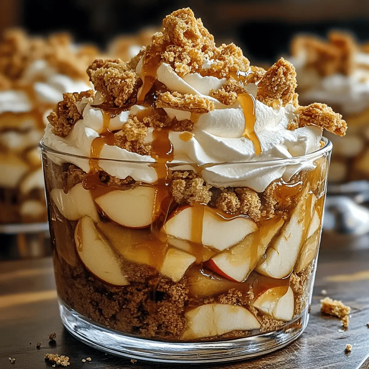 Es war ein kühler Herbstabend, als ich beschloss, meine Küchenschürze anzuziehen und etwas ganz Besonderes zu zaubern. Mit der sanften Wärme von Ofenfrüchten und dem verlockenden Duft von Karamell in der Luft, wusste ich sofort, dass ein Bratapfel Karamell Trifle auf dem Plan stand. Diese himmlische Kombination aus gebackenen Äpfeln, cremigem Mascarpone und knusprigen Löffelbiskuits ist mehr als nur ein Dessert — es ist ein Komfortgericht, das uns an die Gemütlichkeit von Zuhause und festliche Anlässe erinnert. Übrigens, die Zubereitung geht schnell und lässt sich ideal vorbereiten, sodass ihr mehr Zeit mit euren Lieben verbringen könnt. Seid ihr bereit, dieses herbstliche Wunder in eurer eigenen Küche auszuprobieren? Warum wird dieses Dessert Ihr Favorit? Einfachheit: Die Zubereitung des Bratapfel Karamell Trifle ist mühelos und erfordert keine speziellen Kochkenntnisse. So kann jeder das Rezept schnell nachmachen! Reiche Aromen: Die Kombination aus warmen, gebackenen Äpfeln und süßem Karamell sorgt für eine unvergleichliche Geschmacksexplosion, die jeden Bissen zu einem Erlebnis macht. Vielseitigkeit: Egal, ob für ein festliches Dinner oder einen entspannten Abend mit Freunden, dieses Dessert passt zu jedem Anlass und lässt sich leicht variieren! Appell an die Gemeinschaft: Dieses Dessert bringt Freude und Gemütlichkeit in jedes Zuhause und schafft wunderbare Erinnerungen, die geteilt werden. Perfekte Textur: Die luftige Mascarpone-Creme und die knusprigen Löffelbiskuits harmonieren perfekt mit den saftigen Äpfeln und dem süßen Karamell – ein wahrer Genuss! Wenn Sie nach weiteren Leckereien suchen, probieren Sie auch unser Pudding Mit Karamellsauce aus – eine weitere himmlische Option für süße Augenblicke! Bratapfel Karamell Trifle Zutaten Für die Äpfel • Äpfel (z.B. Boskop oder Elstar) – Sie sorgen für natürliche Süße und fruchtigen Geschmack; jede festere Apfelsorte eignet sich bestens zum Backen. • Zucker – Für die Süße und Karamellisierung; brauner Zucker sorgt für ein intensiveres Aroma. • Butter – Verstärkt die Reichhaltigkeit und hilft bei der Karamellisierung; Margarine ist eine gute, milchfreie Alternative. • Zimt – Bringt wärmende Gewürznoten, die die Äpfel perfekt ergänzen; ein Apfelkuchen-Gewürzmix kann auch verwendet werden. • Muskatnuss – Fügt Wärme und Tiefe hinzu; gemahlener Ingwer bietet einen anderen Gewürzgeschmack. Für die Creme • Schlagsahne – Trägt zur Cremigkeit und Leichtigkeit des Trifles bei; verwenden Sie geschlagene Kokoscreme für eine milchfreie Option. • Mascarpone – Sorgt für eine reiche, cremige Schicht; Frischkäse kann eine ähnliche Textur bieten, hat aber einen anderen Geschmack. • Joghurt (natur) – Fügt eine angenehme Säure hinzu und balanciert die Reichhaltigkeit; griechischer Joghurt bietet zusätzliches Protein. • Vanilleextrakt – Bringt ein süßes, aromatisches Geschmacksprofil; Vanilleschoten oder Vanillepulver sind auch eine gute Wahl. Für die Schichtung • Löffelbiskuits – Stellen die Struktur des Trifles dar; Ladyfingers oder jeder Biskuitkuchen sind ebenfalls geeignet. • Apfelsaft – Hält die Äpfel feucht und fügt Geschmack hinzu; Apfelwein sorgt für einen intensiveren Geschmack. • Gehechelte Walnüsse oder Mandeln (optional) – Fügen Knusprigkeit und zusätzlichen Geschmack hinzu; bei Nussallergien einfach weglassen. • Frische Minze zur Dekoration (optional) – Verleiht zusätzlich Frische und ein schönes Erscheinungsbild; essbare Blüten können eine hübsche Alternative sein. Mit diesen Zutaten wird Ihr Bratapfel Karamell Trifle sicherlich zu einem wunderbaren Genuss, der die Herzen Ihrer Lieben im Sturm erobern wird! Schritt-für-Schritt-Anleitung für Bratapfel Karamell Trifle Step 1: Äpfel vorbereiten Waschen, schälen und entkernen Sie die Äpfel, bevor Sie sie in kleine Würfel schneiden. In einer Pfanne bei mittlerer Hitze die Butter schmelzen, dann den Zucker hinzufügen und karamellisieren lassen, bis er goldbraun ist. Fügen Sie die Äpfel, Zimt, Muskatnuss und den Apfelsaft hinzu und sautieren Sie alles für 10–15 Minuten, bis die Äpfel zart, aber noch intakt sind. Step 2: Creme zubereiten Die Schlagsahne in einer großen Schüssel steif schlagen. In einer separaten Schüssel den Mascarpone, Naturjoghurt und Vanilleextrakt glatt rühren. Sobald die Schlagsahne steif geschlagen ist, vorsichtig unter die Mascarpone-Mischung heben. Diese cremige Mischung wird die Basis für Ihr Bratapfel Karamell Trifle sein. Step 3: Trifle schichten In einer großen Schüssel oder in einzelnen Gläsern die Löffelbiskuits gleichmäßig mit Apfelsaft tränken und dann eine Schicht auf den Boden legen. Darauf folgt eine Schicht der karamellisierten Äpfel und dann eine Schicht der cremigen Mascarpone-Mischung. Wiederholen Sie die Schichtung, bis alle Zutaten aufgebraucht sind, und enden Sie mit einer großzügigen Schicht Creme obenauf. Step 4: Kühlen Das Bratapfel Karamell Trifle sollte für mindestens 2 Stunden im Kühlschrank gekühlt werden, damit sich die Aromen gut vermischen. Dies hilft nicht nur, die Texturen zu festigen, sondern sorgt auch dafür, dass die Löffelbiskuits die perfekte Konsistenz erhalten. Step 5: Servieren Vor dem Servieren das Trifle nach Belieben mit frischen Minzblättern und optional gehackten Nüssen garnieren. Füllen Sie die Portionen gleichmäßig auf, sodass sich jeder an dem köstlichen contrast aus den cremigen Schichten und den fruchtigen Äpfeln erfreuen kann. Was passt gut zu Bratapfel Karamell Trifle? Das perfekte Menü entsteht erst mit den passenden Beilagen, die das herbstliche Dessert wunderbar ergänzen. Cremige Vanilleeis: Das kalte, cremige Eis kontrastiert herrlich mit dem warmen Trifle und bringt zusätzliche Süße in den Mund. Geröstete Nüsse: Diese sorgen für einen knusprigen Biss und harmonieren mit den weichen Äpfeln und der süßen Sahne. Zimt-Zucker-Brötchen: Diese wa