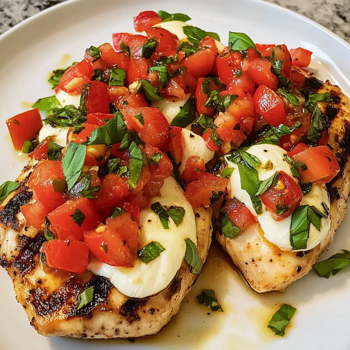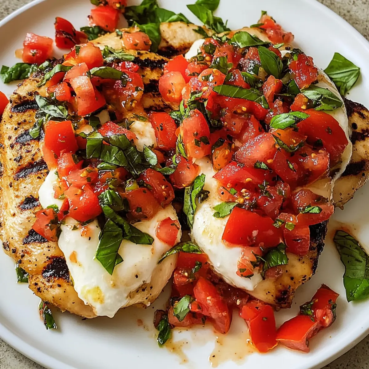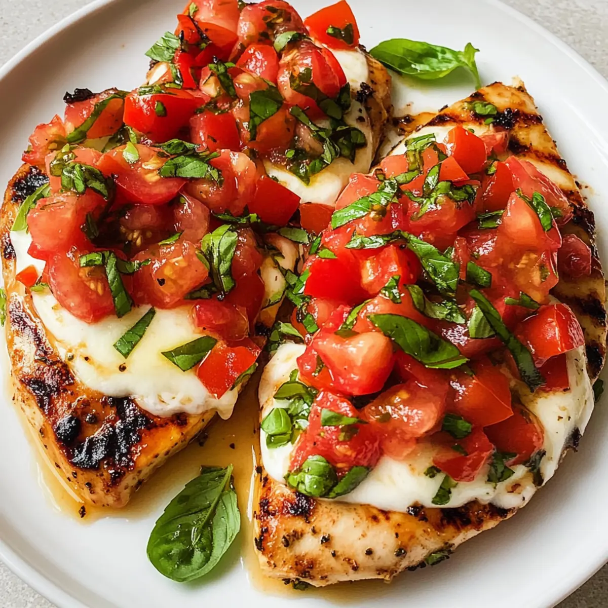 Die Sommersaison ruft nach frischen und leichten Gerichten, und ich kann nicht genug von diesem Bruschetta-Hühnchen bekommen! Wenn die Grillzeit kommt, wird das saftige, gegrillte Hähnchen mit einer lebhaften Tomatensalat-Mischung gekrönt – ein wahres Fest für die Sinne! Diese Rezeptur vereint die besten Zutaten des Sommers und beschert dir nicht nur ein unvergleichliches Geschmackserlebnis, sondern ist auch ein gesundes, schnelles Abendessen, das selbst an den hektischsten Wochentagen Freude bereitet. Mit jeder Gabel wirst du den Geschmack des Mediterranen erleben und dich in die entspannte Atmosphäre eines italienischen Sommerabends versetzt fühlen. Bist du bereit, deine Grillkünste auf die nächste Stufe zu heben und mehr über die Zubereitung dieser köstlichen Mahlzeit zu erfahren? Warum ist Bruschetta-Hühnchen so besonders? Erfrischend und leicht: Diese Sommergerichte bringen die Aromen der Saison direkt auf deinen Grill. Saftiges Hähnchen: Der perfekte Garprozess sorgt dafür, dass jeder Biss voller Geschmack ist. Vielfältige Topping-Möglichkeiten: Variiere mit frischen Zutaten wie Avocado oder einem Balsamico-Glasur. Einfache Zubereitung: In kürzester Zeit auf den Tisch, ideal für die hektischen Wochentage! Für etwas Abwechslung kannst du auch unser Rezept für Blechgericht Haehnchen ausprobieren oder wie wäre es mit köstlichen Kaese Haehnchen Nuggets? Bruschetta-Hühnchen Zutaten • Für das Marinieren: Hochwertiges Olivenöl – sorgt für Feuchtigkeit und Geschmack; verwende ein kaltgepresstes Öl für das beste Aroma. Saft von 1 Zitrone, geteilt – bringt Säure und Frische ins Gericht; Limettensaft ist eine gute Alternative. Kosher Salz – hebt den Geschmack der Zutaten hervor; du kannst auch Meersalz verwenden. Frisch gemahlener schwarzer Pfeffer – fügt Würze hinzu; frisch gemahlener Pfeffer bietet das beste Aroma. Italienische Gewürzmischung oder getrocknete Oregano – gibt eine herzhafte Note; ersetzbar durch italienische Kräuter nach Wahl. • Für das Hauptgericht: Hähnchenbrustfilets, entbeint und auf gleichmäßige Dicke geklopft – sorgt für gleichmäßiges Garen und Zartheit. Tomaten (in Scheiben, gewürfelt) – bringen Frische und Saftigkeit für das Bruschetta-Topping; benutze reife Tomaten für optimalen Geschmack. Knoblauchzehen (gehackt) – liefert ein aromatisches Geschmackserlebnis; durch Rösten wird der Biss milder. Frisch gehacktes Basilikum – bringt eine duftende, kräuterige Note; kann durch Petersilie ersetzt werden. • Für das Topping: Mozzarella-Scheiben – schmelzen perfekt auf dem Hähnchen und verleihen Cremigkeit; frischer Mozzarella ist am besten. Frisch geriebener Parmesan (zum Servieren) – sorgt für einen salzigen Abschluss; kann für eine milchfreie Option weggelassen werden. Bereit, köstliches Bruschetta-Hühnchen zu genießen? Die Kombination dieser frischen Zutaten wird deinen Gaumen verzaubern! Step-by-Step Instructions für Bruschetta-Hühnchen Step 1: Hähnchen marinieren Vermische in einer Schüssel hochwertiges Olivenöl, den Saft von einer halben Zitrone, Kosher Salz, frisch gemahlenen schwarzen Pfeffer und italienische Gewürze. Lege die Hähnchenbrustfilets in die Marinade und stelle sicher, dass sie gleichmäßig bedeckt sind. Decke die Schüssel ab und lasse das marinierte Hähnchen mindestens 30 Minuten im Kühlschrank ziehen, damit sich die Aromen gut entfalten. Step 2: Hähnchen grillen Heize den Grill oder eine Grillpfanne auf mittelhohe Temperatur vor. Wenn der Grill heiß ist, lege die marinierten Hähnchenbrustfilets auf den Grill. Grill das Hähnchen für ca. 5-7 Minuten pro Seite, bis es schön angebraten und durchgegart ist. Achte darauf, dass die Innentemperatur mindestens 75 °C erreicht, damit es sicher verzehrt werden kann. Step 3: Topping vorbereiten In der Zwischenzeit kannst du das Bruschetta-Topping zubereiten. Mische in einer Schüssel die gewürfelten Tomaten, den gehackten Knoblauch, den Saft der restlichen Zitronenhälfte sowie Kosher Salz und frisch gemahlenen schwarzen Pfeffer. Rühre alles gut um und lasse die Mischung einige Minuten stehen, damit die Aromen sich entfalten können. Step 4: Mozzarella hinzufügen Sobald das Hähnchen gegrillt und durchgegart ist, lege die dünnen Mozzarella-Scheiben auf jedes Stück Hähnchen. Decke das Hähnchen für ein paar Minuten mit einem Deckel ab, sodass der Käse schmelzen kann und eine wunderbare cremige Textur entsteht. Step 5: Servieren Nimm das gegrillte Bruschetta-Hühnchen vom Grill und platziere es auf einer Servierplatte. Toppe jedes Stück mit der vorbereiteten Tomatenmischung und garniere nach Belieben mit frisch geriebenem Parmesan. Serviere das Gericht sofort und genieße die köstlichen Aromen des Bruschetta-Hühnchens! Was passt gut zu Bruschetta-Hühnchen? Die perfekte Kombination für ein unvergessliches Abendessen, das deine Geschmacksknospen verwöhnt und die Sommeratmosphäre in dein Zuhause bringt. Frische grüne Salate: Ein leichter, knackiger Salat mit einem Zitronen-Dressing ergänzt die Aromen des Hühnchens wunderbar und bringt Frische auf den Tisch. Gegrilltes Gemüse: Bunte Gemüsesorten wie Zucchini, Paprika und Auberginen sind eine köstliche, gesunde Beilage, die den Grillgeschmack fantastisch ergänzt. Cremiger Kartoffelbrei: Die sämige Textur von Kartoffelbrei bietet einen wohltuenden Kontrast zum zarten Hühnchen und rundet das Gericht ideal ab. Aromatischer Roséwein: Ein leichter Roséwein harmoniert perfekt mit den frischen Aromen des Bruschetta-Hühnchens und verstärkt das sommerliche Gefühl eines Essens im Freien. Herzhafte Pasta-Salat: Ein Nudelgericht mit frischem Basilikum, Tomaten und Feta-Käse sorgt für einen geschmacklichen Ausgleich und ist einfach zuzubereiten. Zitronensorbet: Als erfrischendes Dessert ist Zitronensorbet eine perfekte Wahl, um die Mahlzeit leicht und fruchtig abzuschließen, ideal für heiße Sommertage. Tipps zur Vorbereitung deines Bruschetta-Hühnchens D