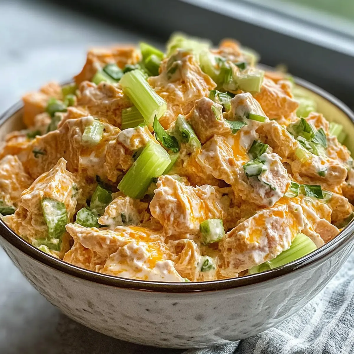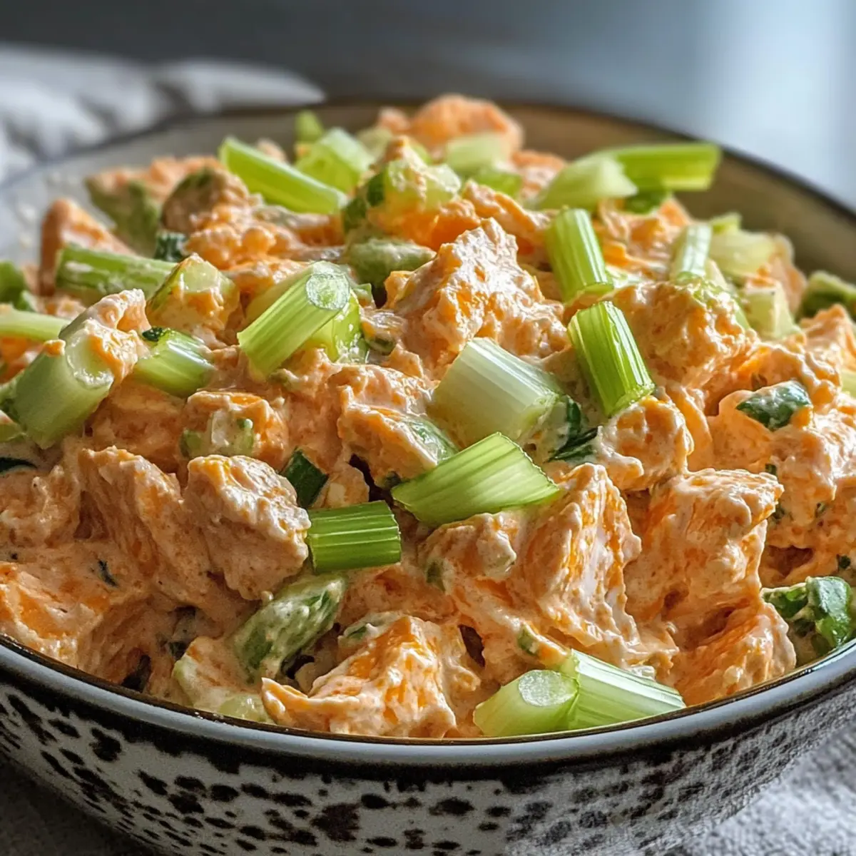 Als ich das erste Mal von einem Buffalo Thunfischsalat gehört habe, konnte ich kaum glauben, dass man den würzigen Geschmack von Buffalo Wings in einem gesunden Salat vereinen kann. Dieser 10-Minuten Buffalo Thunfischsalat hat nicht nur einen unverwechselbaren Kick, sondern ist auch ein Proteinlieferant, der mich durch den Tag bringt. Mit der köstlichen Mischung aus cremigem Hüttenkäse und schmackhaften Gewürzen ist er perfekt für all jene, die eine schnelle, gesunde Mahlzeit suchen, ohne dabei auf Genuss zu verzichten. Ideal für ein schnelles Mittagessen oder als leichte Abendmahlzeit – und das alles in nur 10 Minuten! Neugierig, wie einfach es ist, diese Geschmacksexplosion selbst zuzubereiten? Warum ist dieser Rezept ein Muss? Einfachheit: Diese Rezeptur ist kinderleicht und erfordert keine besonderen Kochkünste. In nur 10 Minuten steht ein schmackhafter Salat auf deinem Tisch! Vielseitigkeit: Du kannst die Zutaten nach deinem Geschmack anpassen! Probiere zum Beispiel die Zugabe von buntem Paprika oder tausche Thunfisch gegen Hähnchen aus. Reich an Protein: Mit Thunfisch und Hüttenkäse versorgt dich dieser Salat mit einer kräftigen Portion Protein, die dir die Energie für den Tag gibt. Perfekt für jede Gelegenheit: Ob fürs Büro, eine Grillparty oder einen gemütlichen Abend – dieser Buffalo Thunfischsalat zählt zu den Alleskönnern. Er lässt sich auch wunderbar in Buffalo Haehnchenschenkel Rezept integrieren. Kulinarisches Erlebnis: Der salzige und würzige Geschmack bringt die Aromen klassischer Buffalo Wings auf die nächste Stufe, während du in einem gesunden Rahmen bleibst. Buffalo Thunfischsalat Zutaten • Diese Zutatenliste wird dir helfen, den perfekten Buffalo Thunfischsalat zuzubereiten! Für den Salat Canned Tuna – ein Proteinlieferant, wähle zwischen Hellgeschmack oder festem Weißfisch. Hüttenkäse – sorgt für Cremigkeit und einen zusätzlichen Proteinschub, griechischer Joghurt kann auch verwendet werden. Buffalo Sauce – bringt den nötigen Kick; passe die Menge je nach Vorliebe für Schärfe an. Sellerie – bietet einen knackigen Biss und Frische; Radieschen sind eine gute Alternativen. Frühlingszwiebel – steigert die Frische und den Geschmack; verwende Schnittlauch, wenn du nichts zur Hand hast. Mayonnaise – bindet die Zutaten und verleiht Cremigkeit; griechischer Joghurt ist eine leichtere Option. Salz & Pfeffer – intensiviert den Geschmack, je nach Vorliebe anpassen. Schritt-für-Schritt-Anleitung für Buffalo Thunfischsalat Schritt 1: Thunfisch und Hüttenkäse kombinieren Nimm eine mittelgroße Rührschüssel und öffne die Dose Thunfisch. Lasse den Thunfisch gut abtropfen, um überschüssige Flüssigkeit zu entfernen. Gib dann den Thunfisch zusammen mit dem Hüttenkäse in die Schüssel und vermische alles mit einer Gabel gründlich, bis eine homogene Masse entsteht. Dies sollte etwa 1-2 Minuten dauern. Schritt 2: Zutaten hinzufügen Füge nun die Buffalo Sauce, die fein gehackte Sellerie und die geschnittenen Frühlingszwiebeln zur Mischung hinzu. Rühre alles gründlich um, bis sich alle Zutaten gleichmäßig vermischen. Achte darauf, dass die Buffalo Sauce gleichmäßig verteilt ist, um jeder Biss einen würzigen Geschmack zu verleihen. Dieser Schritt sollte etwa 2-3 Minuten in Anspruch nehmen. Schritt 3: Mit Salz und Pfeffer abschmecken Jetzt ist es an der Zeit, den Salat mit Salz und frisch gemahlenem Pfeffer zu würzen. Probiere eine kleine Menge des Salats und passe die Gewürze nach deinem Geschmack an. Das Ziel ist es, den perfekten Geschmack zu erreichen, der die kräftigen Aromen des Buffalo Thunfischsalats unterstützt. Dieser Schritt sollte nicht länger als 1-2 Minuten in Anspruch nehmen. Schritt 4: Servieren oder aufbewahren Der Buffalo Thunfischsalat kann sofort serviert werden. Fülle ihn in eine schöne Schüssel oder serviere ihn auf Vollkornbrot oder in Salatblättern. Wenn du ihn aufbewahren möchtest, fülle den Salat in einen luftdichten Behälter und stelle ihn für später in den Kühlschrank. Achte darauf, ihn innerhalb von 1-2 Tagen zu verzehren, um die Frische zu gewährleisten. Was passt gut zum Buffalo Thunfischsalat? Der Buffalo Thunfischsalat ist nicht nur lecker, sondern auch vielseitig und lässt sich wunderbar mit verschiedenen Beilagen und Ergänzungen kombinieren, um ein komplettes Gericht zu kreieren. Cremige Avocado: Verleiht einen buttrigen Geschmack und ergänzt den würzigen Salat wunderbar. Ihr weicher Biss sorgt für einen tollen Kontrast zu den knusprigen Zutaten. Vollkornbrot: Perfekt zum Bekleben mit dem Salat und sorgt für eine sättigende Grundlage. Es bietet eine nahrhafte Ergänzung und macht jede Mahlzeit vollwertiger. Frischer grüner Salat: Eine Auswahl an knackigem Gemüse bringt Frische ins Spiel. Kombiniere ihn mit einer leichten Vinaigrette für zusätzlichen Geschmack. Chips oder Cracker: Knusprige Beilagen, die man als Dip nutzen kann. Diese sorgen für einen spaßigen Snack-Faktor und harmonieren geschmacklich mit der Würze des Salats. Pikante Kimchi: Ein zusätzlicher Kick von Fermentiertem bringt sowohl Schärfe als auch probiotische Vorteile mit. Perfekt für abenteuerlustige Gaumen! Eistee oder Limonade: Erfrischende Getränke, die die würzigen Aromen des Buffalo Thunfischsalats ausbalancieren. Sie sind ideal für ein leichtes Mittagessen oder Picknick. Mit diesen köstlichen Ergänzungen wird der Buffalo Thunfischsalat zum Mittelpunkt deiner nächsten Mahlzeit. Buffalo Thunfischsalat im Voraus zubereiten Dieser Buffalo Thunfischsalat ist ideal für die Planung im Voraus! Du kannst die Zutaten bis zu 24 Stunden vorher vorbereiten, indem du den Thunfisch und den Hüttenkäse in einer Schüssel vermischst und die gewürfelte Sellerie sowie die Frühlingszwiebel hinzufügst. Bewahre die Mischung in einem luftdichten Behälter im Kühlschrank auf, um die Frische zu erhalten. Die Buffalo Sauce kannst du separat aufbewahren, damit der Salat nicht zu weich wird. W