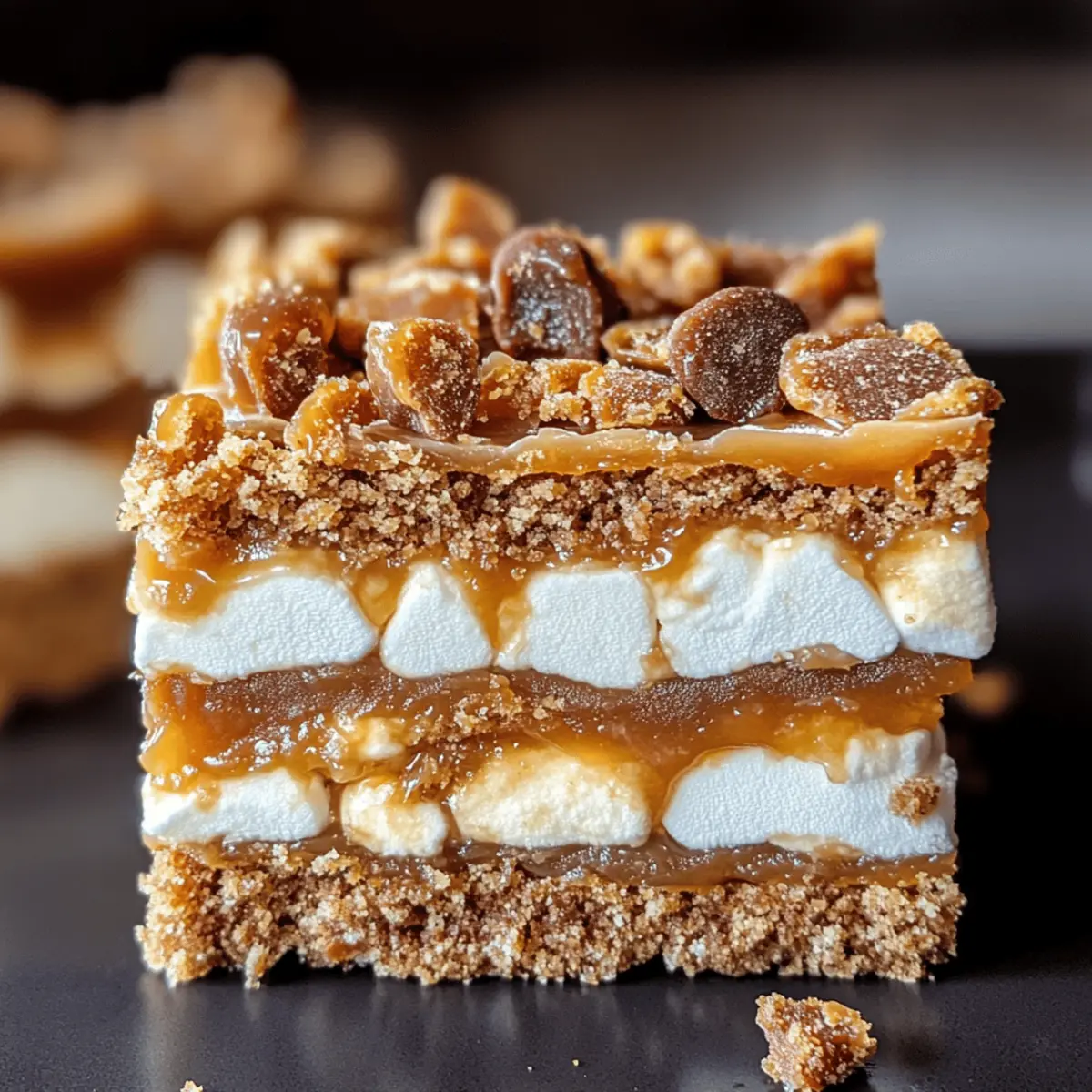 Stellt euch vor, wie der süße Duft von geschmolzenem Karamell sich mit dem knusprigen Crunch der Butterfinger Stücke vermischt und euer Zuhause erfüllt. Diese No-Bake Butterfinger Karamell Riegel sind mehr als nur ein Dessert – sie sind ein Erlebnis, das sowohl für geübte Hobbyköche als auch für Einsteiger geeignet ist. Die Zubereitung ist schnell und unkompliziert, ideal für die heißen Sommertage, an denen der Ofen einfach zu viel Wärme mit sich bringt. Das Beste daran? Diese Riegel sind ein echter Publikumsmagnet und zaubern jedem eine süße Gaumenfreude ins Gesicht. Seid ihr bereit, das perfekte süße Snack-Rezept zu entdecken, das sowohl einfach als auch unwiderstehlich lecker ist? Warum sind diese Riegel unwiderstehlich? Einfachheit: Die Zubereitung der Butterfinger Karamell Riegel ist so unkompliziert, dass auch Kochanfänger sofort loslegen können. Gooey Genuss: Die Kombination aus geschmolzenem Karamell und knusprigen Butterfinger Stückchen sorgt für einen himmlischen Geschmack, der niemanden kalt lässt. Vielfältige Variationen: Egal, ob mit Schokoladensplittern oder Nüssen – die kreativen Möglichkeiten sind endlos! Perfekt für alle Anlässe: Ob bei Partys oder als süßer Snack zwischendurch, diese Riegel sind der Hit bei Jung und Alt. Zeitersparnis: Da sie ohne Backen zubereitet werden, sind sie in Windeseile fertig – ideal für hektische Tage. Klassischer Genuss: Jeder Biss erinnert an die besten Kindheitserinnerungen und bringt Freude in jeden Tag! Butterfinger Karamell Riegel Zutaten • Diese Zutatenliste ist alles, was ihr für die perfekte Zubereitung benötigt! Für den Boden Graham Crackers – Fügt eine buttrige, krümelige Basis hinzu; glutenfreie Cracker sind eine tolle Alternative. Mini Marshmallows – Sorgt für eine zähe Textur und bindet die Schichten; normale Marshmallows sind ebenfalls einsetzbar. Für die Karamell-Schicht Karamell-Bits – Verleiht die süße und klebrige Konsistenz; alternativ können gewöhnliche Karamellen verwendet werden. Milch – Hilft, die Karamell-Bits glatt zu schmelzen; beliebige pflanzliche Milchsorten sind möglich (z.B. Mandel- oder Sojamilch). Für die Butterfinger-Schicht Butterfinger Stücke – Sorgen für extra Crunch und Schokoladengeschmack; klassische Butterfinger-Riegel können auch gehackt werden. Für das Topping Halbbitterschokolade – Zum Drizzlen und für eine schokoladige Eleganz; hellere Schokolade bietet eine gute Abwechslung. Diese Butterfinger Karamell Riegel sind schnell zubereitet und machen garantiert Eindruck! Step-by-Step Instructions for Butterfinger Karamell Riegel Step 1: Backform vorbereiten Lege eine 9×9 Zoll große Backform mit Aluminiumfolie aus und besprühe sie leicht mit einem Kochspray, damit sich die Riegel später problemlos lösen lassen. Achte darauf, dass die Folie über die Ränder der Form hinausragt, um ein einfaches Herausheben der Riegel zu ermöglichen. Step 2: Boden schichten Zerbrich die Graham Crackers in Stücke und lege sie gleichmäßig auf den Boden der vorbereiteten Backform. Die Kekse sollten eine durchgehende Schicht bilden. Drücke sie sanft an, damit sie gut haften und eine feste Grundlage für die Butterfinger Karamell Riegel bilden. Step 3: Marshmallows hinzufügen Verteile die Mini Marshmallows gleichmäßig über die Graham Crackers. Achte darauf, dass sie großzügig abgedeckt sind, um eine zähe Textur zu erhalten, die mit dem geschmolzenen Karamell harmoniert. Lass die Mischung später auch Platz, damit das Karamell gleichmäßig darüber verteilt werden kann. Step 4: Karamell schmelzen Gib die Karamell-Bits und die Milch in eine mikrowellengeeignete Schüssel. Erhitze die Mischung in 30-Sekunden-Intervallen und rühre dazwischen um, bis das Karamell komplett geschmolzen und glatt ist. Diese Mischung wird die klebrige Schicht der Butterfinger Karamell Riegel bilden. Step 5: Karamell gießen Gieße das geschmolzene Karamell gleichmäßig über die Marshmallows in der Backform. Nutze einen Spatel, um das Karamell gut zu verteilen und sicherzustellen, dass es alle Marshmallows erreicht. Beobachte, wie die Schichten miteinander verschmelzen, während du das Karamell gleichmäßig einarbeitest. Step 6: Butterfinger-Schicht hinzufügen Streue die gehackten Butterfinger-Stücke gleichmäßig über das geschmolzene Karamell. Drücke die Stücke sanft hinein, damit sie gut haften und die leckere Schokoladen- und Karamellschicht perfekt ergänzen. Der knusprige Butterfinger wird die Riegel mit einem zusätzlichen Crunch versehen. Step 7: Schokolade schmelzen Schmelze die Halbbitterschokolade in der Mikrowelle. Mache dies in kurzen Intervallen und rühre regelmäßig um, bis die Schokolade glatt und cremig ist. Diese Schokoladenschicht wird später das Topping der Butterfinger Karamell Riegel bilden und ihnen eine verführerische Note verleihen. Step 8: Schokolade drizzeln Sobald die Schokolade geschmolzen ist, gieße sie vorsichtig über die Butterfinger-Schicht. Verwende dafür einen Löffel oder einen Spritzbeutel für eine dekorative Verzierung. Die geschmolzene Schokolade sorgt für eine köstliche und ansprechende Optik der Riegel, während sie dem Ganzen zusätzlichen Geschmack verleiht. Step 9: Kühlen Stelle die Backform in den Kühlschrank und lasse die Riegel etwa eine Stunde lang kaltstellen, bis sie fest geworden sind. Dies ist wichtig, damit die Butterfinger Karamell Riegel beim Schneiden ihre Form behalten. Betriebe während des Kühlens keine Ungeduld – die Warteschlange lohnt sich! Step 10: Schneiden und servieren Nehme die Riegel nach dem Kühlen mit Hilfe der überstehenden Aluminiumfolie aus der Form. Schneide die gekühlten Butterfinger Karamell Riegel in gleichmäßige Quadrate und serviere sie. Achte darauf, die Riegel nach Belieben zu präsentieren, um die Freude am Genießen zu steigern. Aufbewahrungstipps für Butterfinger Karamell Riegel Raumtemperatur: Lagert die Riegel an einem kühlen, trockenen Ort bis zu 2-3 Mon