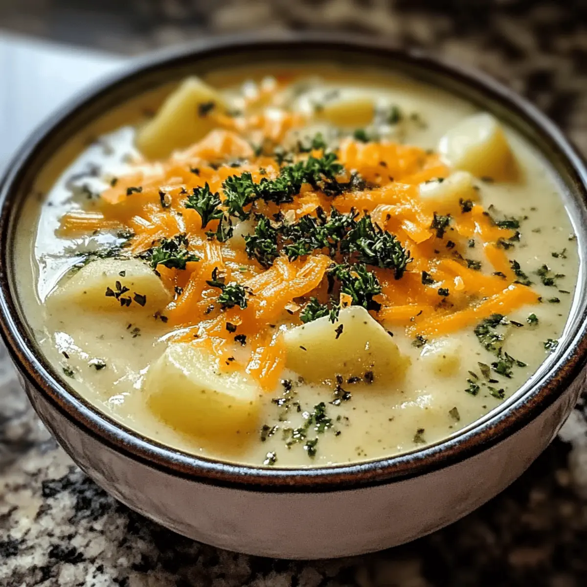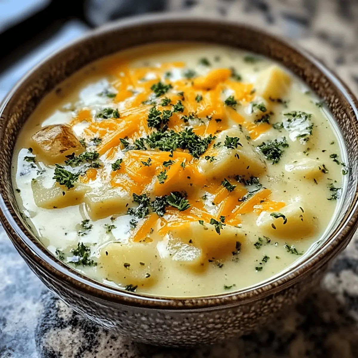 „Sind Sie bereit für eine Geschmacksexplosion? Diese Cheddar-Knoblauch-Kräuter-Kartoffelsuppe Einfach in 30 Minuten zaubert nicht nur ein Lächeln auf Ihr Gesicht, sondern wärmt auch die Seele! Mit zarten Yukon Gold Kartoffeln, würzigem Cheddar und dem einzigartigen Aroma von frischem Knoblauch ist dieses Rezept ein wahres Komfortessen, das selbst den kältesten Abend erhellt. Egal, ob Sie nach einem schnellen Abendessen für die Familie suchen oder Ihre Gäste beeindrucken möchten, diese cremige Suppe bietet einen perfekten Mix aus Einfachheit und Raffinesse. Tolles daran? Sie ist nicht nur schnell zubereitet, sondern auch unglaublich vielseitig – genießen Sie sie als Hauptgericht oder als köstliche Vorspeise! Neugierig, was das Geheimnis für diese Geschmackskombination ist? Lassen Sie uns gleich loslegen!“ Warum werden Sie diese Suppe lieben? Einfachheit: Die Zubereitung dieser Cheddar-Knoblauch-Kräuter-Kartoffelsuppe ist spielend leicht und erfordert keine speziellen Kochkünste. Perfekt für alle, die beim Kochen Entspannung suchen! Reichhaltiger Geschmack: Die Kombination aus scharfem Cheddar und aromatischem Knoblauch verleiht der Suppe ein köstliches, herzhaftes Aroma, das Sie umhauen wird. Vielseitigkeit: Genießen Sie diese Suppe als Hauptgericht oder als köstliche Vorspeise bei Ihrem nächsten Dinner. Sie passt zu vielen Beilagen, wie z. B. knusprigem Knoblauchbrot. Zeitersparnis: In nur 30 Minuten zubereitet, ist diese Suppe eine ideale Lösung für hektische Wochentage oder ungeplante Gäste. Gemütlicher Genuss: Die cremige Textur und die frischen Kräuter machen jede Portion zu einem wahren Erlebnis! Ob allein oder in Gesellschaft – sie wird garantiert ein Lächeln auf Ihr Gesicht zaubern. Cheddar-Knoblauch-Kräuter-Kartoffelsuppe Zutaten • Hier sind die Zutaten, die Sie benötigen, um diese köstliche Cheddar-Knoblauch-Kräuter-Kartoffelsuppe Einfach in 30 Minuten zuzubereiten: Für die Suppe Yukon Gold Kartoffeln – sorgen für eine cremige Konsistenz; können durch Russet-Kartoffeln ersetzt werden, jedoch keine roten Kartoffeln verwenden, da diese zu fest bleiben. Zwiebel – fügt Süße und Tiefe hinzu; verwenden Sie gelbe oder weiße Zwiebeln für das beste Ergebnis. Knoblauch – sorgt für den charakteristischen Geschmack; frische Zehen werden empfohlen, um mehr Tiefe zu erreichen. Butter – verleiht der Suppe Reichhaltigkeit und hilft beim Sautieren der Zwiebeln; Olivenöl ist eine leichtere Alternative. Brühe (Gemüse oder Huhn) – bildet die flüssige Basis der Suppe und sorgt für zusätzlichen Geschmack; wählen Sie nach Belieben eine natriumarme Variante. Scharfer Cheddar-Käse – sorgt für einen kräftigen, pikanten Geschmack; handgeriebener Käse schmilzt besser. Schlagsahne oder Vollmilch – sorgt für die Cremigkeit; kann durch Halbfett-Milch für eine leichtere Option ersetzt werden. Frischer Petersilie – bringt einen Spritzer Frische; kann durch Koriander ersetzt oder weggelassen werden. Frischer Thymian – sorgt für erdige Noten; getrockneter Thymian sollte sparsam verwendet werden, da er intensiver ist. Salz und Pfeffer – für die richtige Würze; nach Geschmack anpassen. Toppings Zusätzlicher Cheddar-Käse – für mehr Geschmack und eine schöne Präsentation; einfach darüber streuen, bevor Sie servieren. Frische Kräuter – wie Petersilie oder Schnittlauch verfeinern den Geschmack und das Aussehen der Suppe. Diese Zutaten werden garantiert dafür sorgen, dass Ihre Cheddar-Knoblauch-Kräuter-Kartoffelsuppe Einfach in 30 Minuten zum Hit wird! Schritt-für-Schritt-Anleitung für Cheddar-Knoblauch-Kräuter-Kartoffelsuppe Einfach in 30 Minuten Schritt 1: Zwiebeln sautieren In einem großen Topf 2 Esslöffel Butter bei mittlerer Hitze schmelzen lassen. Fügen Sie eine gewürfelte Zwiebel hinzu und sautieren Sie sie etwa 3–4 Minuten, bis sie glasig und aromatisch ist. Außerdem sollten die Zwiebeln leicht bräunlich sein, um der Suppe eine starke Geschmacksbasis zu geben. Schritt 2: Knoblauch hinzufügen Fügen Sie 3-4 gehackte Knoblauchzehen zu den Zwiebeln hinzu und kochen Sie diese 30 Sekunden lang, bis sie duften. Achten Sie darauf, den Knoblauch nicht zu verbrennen, da dies einen bitteren Geschmack erzeugen kann. Diese Kombination verleiht Ihrer Cheddar-Knoblauch-Kräuter-Kartoffelsuppe einen herrlichen Geschmack. Schritt 3: Kartoffeln und Kräuter einrühren Jetzt kommen 500 g gewürfelte Yukon Gold Kartoffeln und einen Teelöffel frischer Thymian in den Topf. Rühren Sie gut um, um die Kartoffeln gleichmäßig mit der Zwiebel-Knoblauch-Mischung zu ummanteln. Lassen Sie die Mischung etwa 2 Minuten anbraten, damit sich die Aromen gut verbinden. Schritt 4: Brühe hinzugeben Gießen Sie etwa 1 Liter Gemüse- oder Hühnerbrühe über die Kartoffeln und bringen Sie die Suppe zum Kochen. Sobald sie kocht, die Hitze reduzieren und die Suppe 15–20 Minuten köcheln lassen, bis die Kartoffeln weich sind und leicht mit einer Gabel zerdrückt werden können. Schritt 5: Suppe pürieren Verwenden Sie einen Pürierstab, um die Suppe direkt im Topf auf die gewünschte Konsistenz zu bringen – glatt oder leicht stückig, je nach Vorliebe. Für eine cremigere Textur können Sie die Suppe auch in einen Standmixer geben. Denken Sie daran, etwas Brühe hinzuzufügen, wenn die Suppe zu dick ist. Schritt 6: Cheddar einrühren Reduzieren Sie die Hitze und fügen Sie 200 g handgeriebenen scharfen Cheddar-Käse nach und nach hinzu. Rühren Sie kräftig um, bis der Käse vollständig geschmolzen und die Suppe cremig ist. Achten Sie darauf, die Hitze niedrig zu halten, damit der Käse eher schmilzt als kocht, um Klumpen zu vermeiden. Schritt 7: Sahne und Würzen hinzufügen Gießen Sie 150 ml Schlagsahne oder Vollmilch in die Suppe und rühren Sie gut um. Schmecken Sie die Suppe mit Salz und Pfeffer ab, um die Aromen auszugleichen. Eine ausgewogene Würze hebt die Geschmackskombination der Cheddar-Knoblauch-Kräuter-Kartoffelsuppe hervo