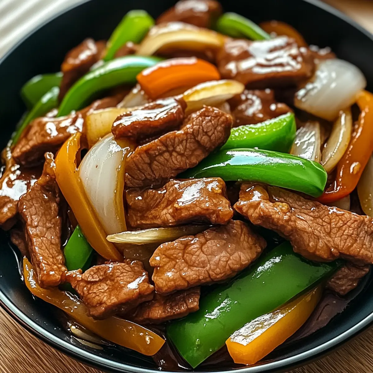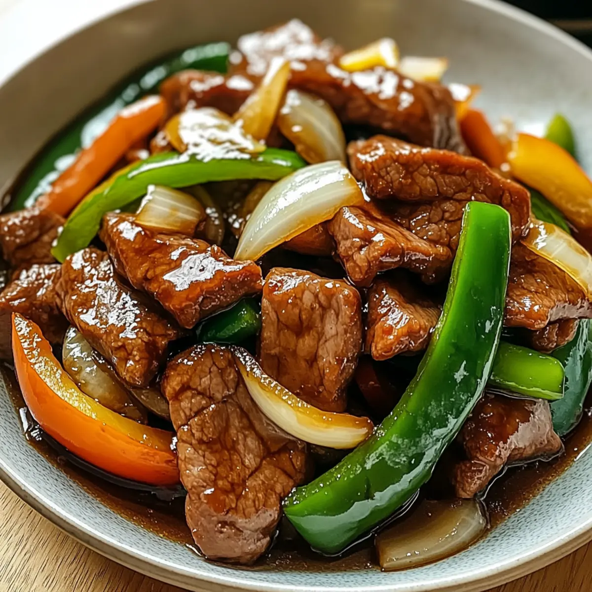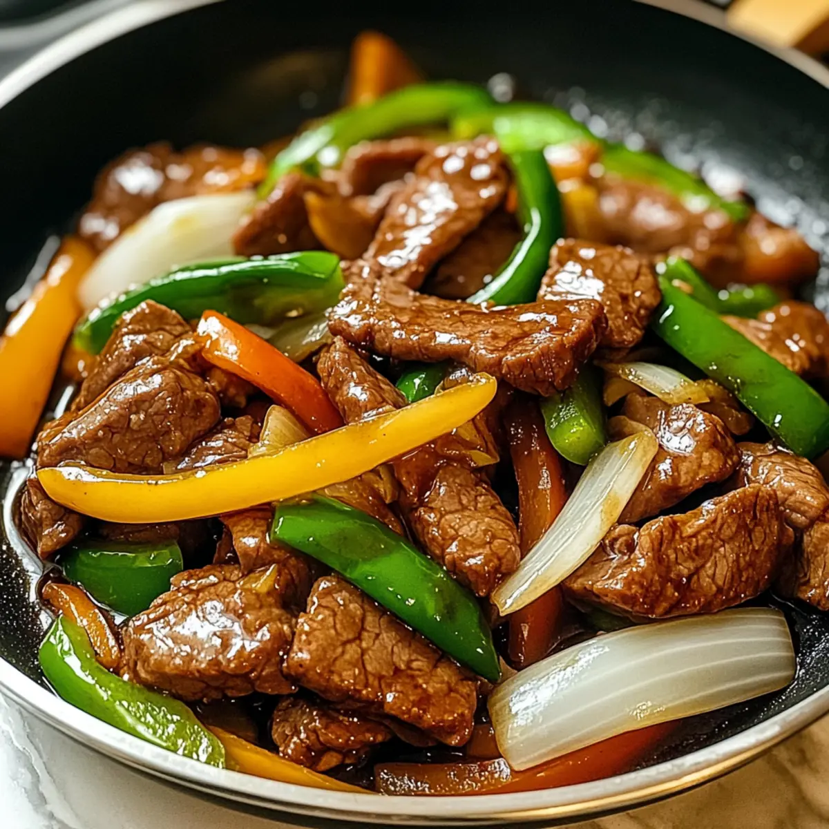 Ein intensiver Duft von frischen Zutaten erfüllt die Küche, während ich die köstliche Chinesische Rindfleisch und Zwiebel Pfanne zubereite. Es ist faszinierend, wie in nur 30 Minuten ein so köstliches und aromatisches Gericht entstehen kann, das sowohl für hektische Wochentage als auch für besondere Gelegenheiten perfekt geeignet ist. Die Kombination aus zartem Rindfleisch und knackigen Zwiebeln schafft ein Geschmackserlebnis, das Freunde und Familie begeistert. Dabei ist dieses Rezept nicht nur schnell und einfach, sondern auch unglaublich vielseitig – sei es mit verschiedenen Gemüsesorten oder einer glutenfreien Option. Welche Variationen möchtest du ausprobieren, um deine eigene, persönliche Note einzubringen? Warum wirst du dieses Rezept lieben? Schnelligkeit: In nur 30 Minuten zauberst du ein köstliches Gericht, ideal für hektische Abende. Vielseitigkeit: Du kannst das Rezept leicht anpassen, indem du Gemüse oder Proteine deiner Wahl hinzufügst – perfekt für jeden Geschmack! Intensiver Geschmack: Die Kombination von zartem Rindfleisch und frischen Zwiebeln sorgt für ein unvergleichliches Geschmackserlebnis, das deine Sinne begeistert. Einfachheit: Mit nur wenigen Zutaten und einfachen Schritten ist es auch für Kochanfänger geeignet. Gesundheit: Mit nur etwa 320 Kalorien pro Portion ist es eine ausgewogene Wahl für Mahlzeiten. Wenn du auf der Suche nach weiteren schnellen Rezepten bist, könnte auch unser Rezept für gebratenen Reis interessant sein! Zutaten für Chinesisches Rindfleisch und Zwiebel Pfanne • Entdecke die perfekten Zutaten für ein schnelles und einfaches Gericht! Für das Rindfleisch Rinderfilet: Gibt zarte Textur und intensiven Geschmack – für eine andere Konsistenz kannst du auch Hüftsteak verwenden. Sojasauce: Fügt herzliche Tiefe hinzu – nutze Tamari für eine glutenfreie Option. Maisstärke: Macht das Rindfleisch zart und sorgt für eine schöne Glasur – keine direkte Substitution empfohlen. Für das Gemüse Zwiebel: Bringt Süße und Knusprigkeit – jede Variante wie gelb, weiß oder rot ist passend. Knoblauch: Verstärkt den Geschmack – frischer, gehackter Knoblauch ist am besten. Paprika: Sorgt für Farbe und Süße – jede Farbe passt; ersetze sie auch durch Zuckerschoten oder Brokkoli für zusätzlichen Crunch. Ingwer: Fügt Wärme und Würze hinzu – frisch ist hier der Schlüssel für besten Geschmack. Für die Sauce Rinderbrühe: Gibt der Sauce einen reichen Geschmack – kannst bei Bedarf auch Hühnerbrühe verwenden. Austernsauce: Verleiht umami Geschmack – kein direkter Ersatz, aber andere Pfannensaucen sind möglich. Sesamöl: Sorgt für ein nussiges Aroma, wichtig zum Fertigstellen – nur sparsam verwenden, da der Geschmack intensiv ist. Gewürze Salz und Pfeffer: Zum Abschmecken nach Belieben. Mit diesen Zutaten wird deine Chinesische Rindfleisch und Zwiebel Pfanne zum Lieblingsgericht! Schritt-für-Schritt-Anleitung für Chinesisches Rindfleisch und Zwiebel Pfanne Step 1: Rindfleisch marinieren Schneide das Rinderfilet in dünne Streifen und mariniere es für 15 Minuten in einer Schüssel mit Sojasauce und Maisstärke. Dies verbessert den Geschmack und sorgt für eine zarte Textur. Stelle sicher, dass die Marinade gleichmäßig verteilt ist, während das Fleisch den würzigen Geschmack aufnimmt. Step 2: Pfanne erhitzen Erhitze eine große Pfanne oder einen Wok bei mittlerer bis hoher Hitze und gib 2 Esslöffel Gemüseöl hinzu, bis es schimmert. Achte darauf, dass die Pfanne richtig heiß ist, um dem Rindfleisch eine schöne Bräunung zu verleihen. Dies dauert etwa 2 Minuten. Step 3: Rindfleisch anbraten Füge das marinierte Rindfleisch in die heiße Pfanne hinzu und brate es 3-4 Minuten lang an, bis es von allen Seiten goldbraun ist. Achte darauf, die Pfanne nicht zu überfüllen, damit das Fleisch gleichmäßig gart und nicht dünstet. Nimm das Rindfleisch dann aus der Pfanne und stelle es beiseite. Step 4: Gemüse anbraten Gib einen weiteren Esslöffel Öl in die gleiche Pfanne und füge die geschnittene Zwiebel, Paprika und den gehackten Knoblauch hinzu. Brate das Gemüse 3-5 Minuten lang an, bis es zart ist, aber noch einen leichten Biss hat. Die leuchtenden Farben sollten die Pfanne füllen und einen köstlichen Duft verbreiten. Step 5: Ingwer hinzufügen Füge den frisch gehackten Ingwer zu den angebratenen Gemüse hinzu und brate alles etwa 1 Minute lang weiter, bis der Ingwer aromatisch wird. Rühre kräftig um, damit sich die Aromen gut vermischen und das Gemüse weiterhin knusprig bleibt. Step 6: Rindfleisch zurückgeben Gib das angebratene Rindfleisch wieder in die Pfanne und gieße die Rinderbrühe sowie die Austernsauce darüber. Rühre alles gründlich um und koche die Mischung für etwa 2-3 Minuten, bis das Rindfleisch durchgeheizt ist und die Sauce leicht eindickt. Achte darauf, dass alles gleichmäßig erhitzt wird. Step 7: Fertigstellen und servieren Träufle das Sesamöl über die Chinesische Rindfleisch und Zwiebel Pfanne, und schmecke das Gericht mit Salz und Pfeffer ab. Garniere es nach Belieben mit gehackten Frühlingszwiebeln, um einen frischen Akzent zu setzen. Serviere das Gericht heiß mit Reis oder Nudeln für eine vollständige Mahlzeit. Was passt gut zu Chinesischem Rindfleisch und Zwiebel Pfanne? Ein köstliches Gericht, das deine Sinne verführt und sich perfekt mit anderen Aromen und Texturen kombinieren lässt. Gedämpfter Reis: Der perfekte Begleiter, um die exquisite Sauce aufzusaugen und eine angenehme, zarte Basis zu bieten. Nudeln: Schnelle, weiche Udon- oder Reisnudeln ergänzen das Gericht und bringen eine zusätzliche Geschmackstiefe durch ihre Textur. Frischer Gurkensalat: Ein knackiger und erfrischender Salat wirkt belebend und bringt einen kühlen Kontrast zum warmen Rindfleisch. Frühlingsrollen: Diese knusprigen Leckerbissen sind ideal als Vorspeise und bieten einen perfekten Crunch, der das gesamte Esserlebnis aufwertet. Mango-Limonade: Ein fruchtiger Drink,