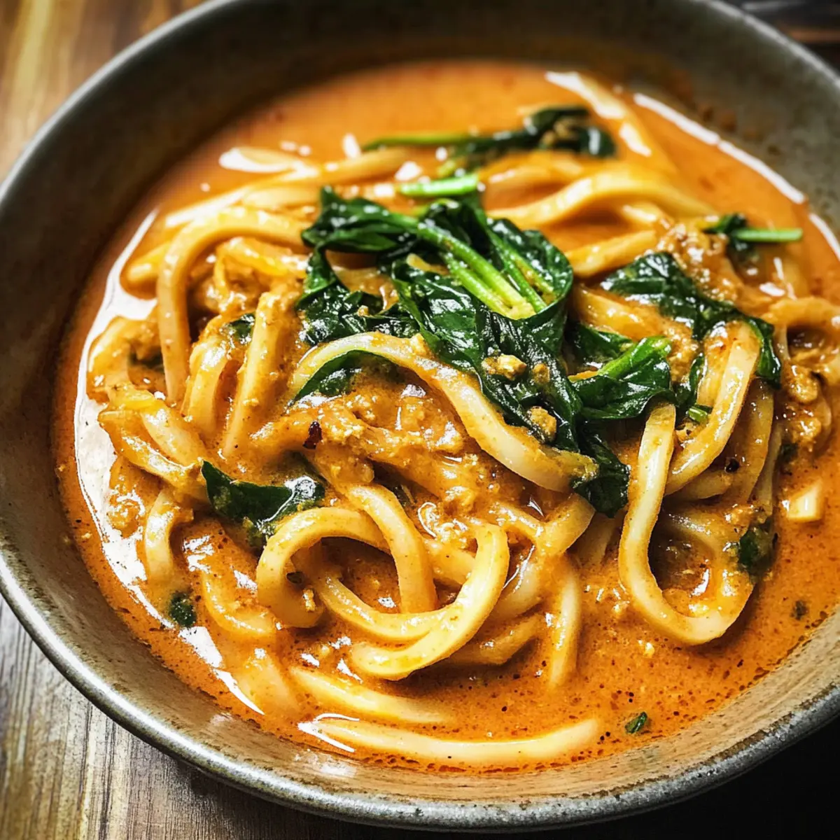 Einfache Zubereitung: In nur 20 Minuten kreieren Sie ein köstliches, selbstgemachtes Gericht. Vielfältige Variationen: Passen Sie dieses Rezept an, indem Sie verschiedene Nudeln oder Gemüse verwenden, um immer wieder neue Geschmäcker zu entdecken. Herzhafter Geschmack: Die Kombination aus Kokosmilch und rotem Curry sorgt für eine reichhaltige, cremige Sauce, die sich perfekt zu den Udon-Nudeln gesellt. Gesund und nahrhaft: Mit frischem Gemüse wie Spinat ist dieses Rezept nicht nur lecker, sondern auch vollgepackt mit Nährstoffen. Familienfreundlich: Dieses Gericht ist ein Hit bei Groß und Klein – ideal für ein schnelles, gemeinsames Abendessen. Wenn Sie nach weiteren Rezepten suchen, könnte auch unser Rezept für schnelle Gemüse-Pfanne interessant für Sie sein!