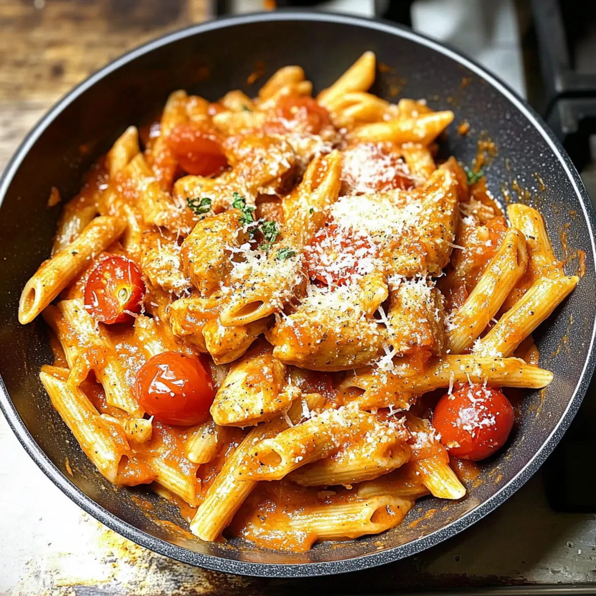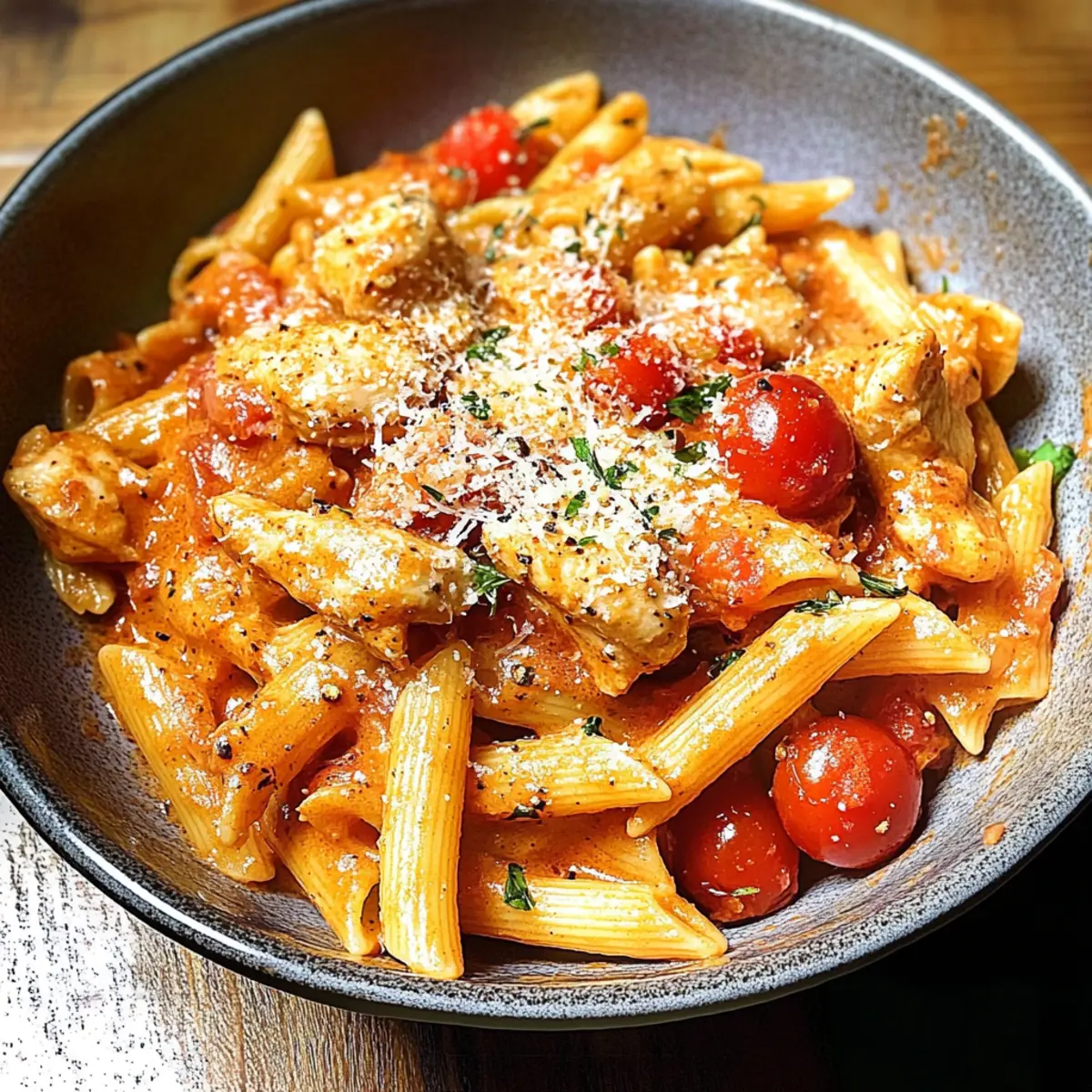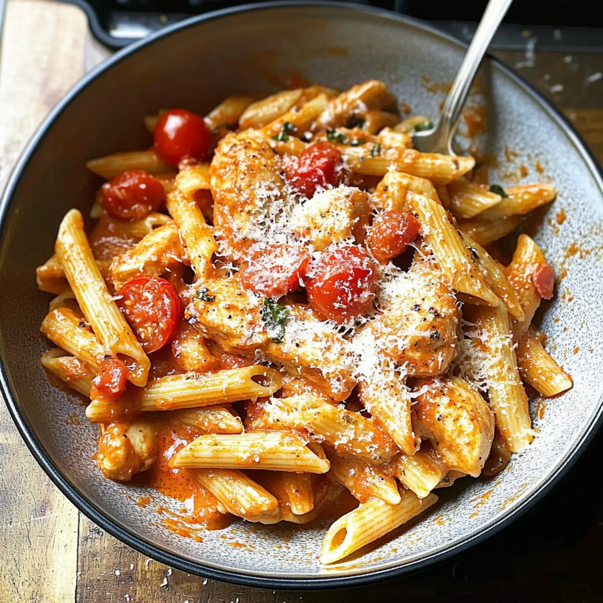 Drei verschiedene Geschmäcker vereinen sich in diesem köstlichen Gericht: cremig, pikant und unwiderstehlich aromatisch. Mein neuestes Abenteuer in der Küche ist das Cremige Hühnchen all’Arrabbiata, das nicht nur alle Pasta-Liebhaber begeistern wird, sondern auch in nur 20 Minuten auf dem Tisch steht. Diese schnelle Mahlzeit kombiniert zarte Hühnchenstücke mit einer würzigen Tomatensauce, die mit Sahne verfeinert wird. Sie bietet eine perfekte Balance zwischen Komfort und aufregendem Geschmack, ideal für alle, die eine kleine Flamme in ihren Essgewohnheiten suchen! Egal, ob Sie ein schnelles Abendessen nach einem langen Arbeitstag zaubern oder Ihre Lieben mit einer hausgemachten Köstlichkeit überraschen möchten – dieses Rezept hält alles bereit. Wer kann da widerstehen? Lassen Sie uns gemeinsam in die Welt der italienischen Küche eintauchen! Warum wirst du dieses Rezept lieben? Einfachheit: Die Zubereitung ist unkompliziert und erfordert nur grundlegende Kochkenntnisse, was es zu einer idealen Wahl für Anfänger macht. Reichhaltiger Geschmack: Eine perfekt ausgewogene Kombination aus würziger Tomatensauce und sahniger Textur sorgt für ein Geschmackserlebnis, das alle begeistert. Vielfalt: Sei kreativ! Fügen Sie geröstetes Gemüse hinzu oder tauschen Sie das Hühnchen gegen Garnelen oder Tofu aus, um verschiedene Geschmackskombinationen zu entdecken. Schnell zubereitet: In nur 20 Minuten ist dieses Gericht fertig – perfekt für hektische Abende. Beliebtheit: Die Kombination von Cremigkeit und Spiciness sorgt dafür, dass selbst die wählerischsten Esser wieder um Nachschlag bitten werden! Entdecken Sie weitere leckere Rezepte auf unserem Blog, wie zum Beispiel unsere schnelle Pasta mit Gemüse. Cremiges Hühnchen all’Arrabbiata Zutaten • Dieses Rezept bietet eine aufregende Mischung aus Geschmäckern, die deine Geschmacksknospen zum Tanzen bringen werden! Für die Pasta Penne – Die perfekte Basis für die Soße; kannst du auch durch Fusilli oder Rigatoni ersetzen. Olivenöl – Ideal zum Anbraten des Hühnchens; ein neutrales Öl wie Rapsöl funktioniert ebenso gut. Für die Soße Hühnchenfilets – Der Hauptbestandteil, der für herzhaften Genuss sorgt; für einen intensiveren Geschmack kannst du auch Hähnchenkeulen verwenden. Knoblauchzehen – Für aromatische Tiefe; frischer Knoblauch ist stets die beste Wahl. Schalotte – Gibt eine milde Süße; alternativ eignet sich eine gelbe Zwiebel. Salz – Verstärkt die anderen Aromen; achte darauf, es nach Geschmack zu dosieren. Schwarzer Pfeffer – Für eine angenehme Schärfe; frisch gemahlener Pfeffer entfaltet den besten Geschmack. Zerkleinerte rote Paprika – Der Schlüssel für die Schärfe; passe die Menge nach deinem persönlichen Schärfeempfinden an. Getrockneter Oregano – Verleiht der Soße den typischen italienischen Geschmack. Getrockneter Salbei – Fügt zusätzliche Tiefe hinzu; kann bei Bedarf weggelassen werden. Süßes Paprikapulver – Für Farbe und milde Süße; geräuchertes Paprikapulver gibt einen interessanten Dreh. Hühnerbrühe – Bringt Feuchtigkeit und herzhaften Geschmack; Gemüsebrühe ist für eine leichtere Variante ebenfalls geeignet. Tomatenmark – Verstärkt den Geschmack der Soße deutlich. Sambal Oelek – Für weiteres Feuer und Knoblauchgeschmack; alternativ kannst du jede Chili-Paste verwenden. Kirschtomaten – Frische und Säure, die perfekt zur Sahne passen; auch Dosentomaten sind eine gute Option. Püriertes Tomaten – Bildet die Basis der Soße; zerkleinerte Tomaten können hier auch verwendet werden. Sahne (20% Fett) – Für die cremige Konsistenz, die die Schärfe ausbalanciert; ungesüßte Kokos- oder Mandelmilch für eine leichtere Version ist möglich. Geriebener Parmesan – Bringt Cremigkeit und umami; gerne mehr zum Servieren verwenden. Gehackte Petersilie – Für Frische und einen schönen Farbkontrast beim Garnieren. Finde heraus, wie dieses Cremige Hühnchen all’Arrabbiata zu einem deiner neuen Lieblingsrezepte werden kann! Step-by-Step Instructions für Cremiges Hühnchen all’Arrabbiata Step 1: Pasta kochen Bringe in einem großen Topf reichlich gesalzenes Wasser zum Kochen. Füge die Penne hinzu und koche sie gemäß den Anweisungen auf der Verpackung, bis sie al dente sind (ca. 8–10 Minuten). Hebe eine Tasse des Kochwassers auf, bevor du die Pasta abgießt und in eine Schüssel gibst. Step 2: Hühnchen anbraten Erhitze in einer großen, tiefen Pfanne bei mittlerer bis hoher Hitze 2 Esslöffel Olivenöl. Füge die Hühnchenfilets hinzu und brate sie für etwa 5 Minuten an, bis sie goldbraun sind. Drehe die Stücke um, um sicherzustellen, dass sie gleichmäßig garen, bevor du sie aus der Pfanne nimmst und beiseite legst. Step 3: Aromaten hinzufügen In derselben Pfanne (eventuell noch etwas Öl hinzufügen) brate die fein gehackte Schalotte und den Knoblauch für ca. 2 Minuten an, bis sie weich und aromatisch sind. Achte darauf, dass der Knoblauch nicht anbrennt, da er sonst bitter wird. Step 4: Gewürze einrühren Füge 1 Teelöffel zerkleinerte rote Paprika, 1 Teelöffel getrockneten Oregano und ½ Teelöffel getrockneten Salbei hinzu und rühre die Gewürze etwa 30 Sekunden lang ein, bis sie duften. Diese Mischung ist entscheidend für das würzige Aroma des Cremigen Hühnchens all’Arrabbiata. Step 5: Sauce ablöschen Gieße 1 Tasse Hühnerbrühe in die Pfanne und schabe mit einem Holzlöffel die braunen Reste vom Pfannenboden ab. Füge 2 Esslöffel Tomatenmark und 1 Esslöffel Sambal Oelek hinzu, und lasse die Mischung für 1 Minute köcheln, damit sich die Aromen entfalten. Step 6: Tomaten integrieren Gib die halbierten Kirschtomaten in die Pfanne und koche sie für etwa 2 Minuten, bis sie weich werden. Danach füge das pürierte Tomaten hinzu und bring die Mischung zum Kochen. Reduziere die Hitze und lasse die Soße für etwa 5 Minuten simmern, damit sie eindickt. Step 7: Sahne und Käse einrühren Rühre 200 ml Sahne und 50 g 