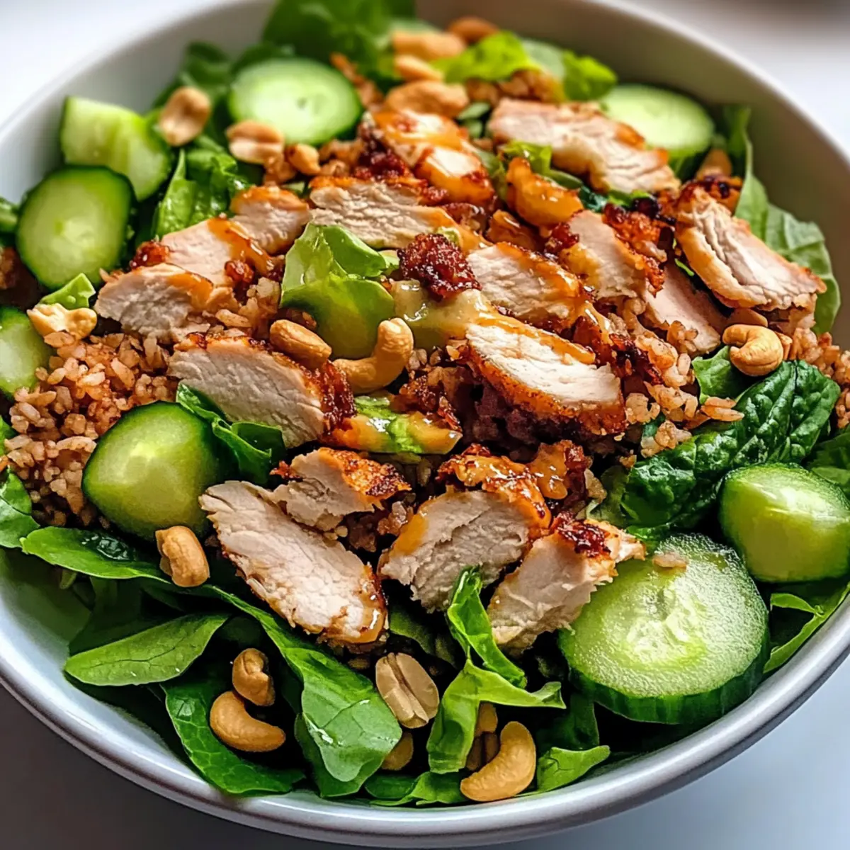 Als ich neulich in der Küche stand und eine neue Kreation ausprobieren wollte, war ich auf der Suche nach etwas, das nicht nur frisch und knackig, sondern auch proteinreich ist. So entstand mein Easy High Protein Crispy Rice Salad mit Tahini-Dressing. Diese bunte Salatschüssel überbrimmt vor Aromen und Texturen, ganz zur Freude aller, die den schnellen, aber nahrhaften Genuss lieben. Mit der perfekten Kombination aus knusprigem Reis und saftigem Hühnchen ist dieser Salat der ideale Begleiter für ein schnelles Mittagessen oder eine leichte Abendmahlzeit. Und das Beste: Er lässt sich ganz einfach anpassen, sodass du ganz nach deinem Geschmack variieren kannst. Was denkst du, in welcher Kombination wirst du diesen Salat als Nächstes genießen? Warum ist dieser Reis Salat so besonders? Einzigartig und voller Aromen: Dieser Salat kombiniert gerösteten, knusprigen Reis mit zartem Hühnchen und einer Vielzahl frischer Zutaten, die deine Geschmacksknospen zum Tanzen bringen. Einfach zuzubereiten: Die Schritte sind unkompliziert, sodass du ohne viel Aufwand ein gesundes Gericht kreieren kannst. Vielseitig anpassbar: Egal, ob du auf der Suche nach einer vegetarischen Option bist oder einfach neue Zutaten ausprobieren möchtest, dieser Salat bietet zahlreiche Anpassungsmöglichkeiten. Perfekt für Meal Prep: Er eignet sich hervorragend für die Vorratslage und schmeckt auch am nächsten Tag noch köstlich. Und für eine kreative Beilage kannst du ihn ideal mit Knuspriger Parmesan Spargel servieren! Zutaten für den Crispy Rice Salat • Dieses Rezept erwartet dich mit köstlichen Zutaten, die du ganz nach deinem Geschmack kombinieren kannst! Für den Reis Jasminreis – sorgt für die Struktur und wird beim Abkühlen schön knusprig; kann durch Basmati-Reis ersetzt werden. Maisstärke – verleiht den Hähnchenstücken eine knusprige Beschichtung. Für das Hähnchen Hähnchenschenkel ohne Haut – liefert mageres Protein; aromatisch und saftig, wenn es richtig gegart wird. Tamari – fügt umami Geschmack hinzu; kann durch Sojasauce ersetzt werden, falls Gluten kein Problem ist. Für das Dressing Reisessig – sorgt für Säure und Balance; kann durch Apfelessig substituiert werden. Honig – verleiht dem Dressing Süße; Agavensirup eignet sich ebenfalls gut. Geröstetes Sesamöl – verstärkt den Geschmacksumfang; normales Sesamöl kann im Notfall verwendet werden. Minced Knoblauch – sorgt für einen geschmacklichen Kick; frischer oder vorgehackter funktioniert gut. Tahini – die cremige Basis des Dressings, mische es mit Limettensaft für ein ausgewogenes Aroma; Sonnenblumenbutter ist eine nussfreie Alternative. Fischsauce – verstärkt den umami Geschmack im Dressing; Sojasauce kann als vegetarische Alternative dienen. Frischer Limettensaft – sorgt für helle Säure im Dressing; Zitronensaft kann auch verwendet werden, falls Limetten nicht verfügbar sind. Für den Salat Eisbergsalat – bietet Knackigkeit und Frische; kann durch Romanasalat ersetzt werden. Libanesische Gurken – fügen Feuchtigkeit und Textur hinzu; gewöhnliche Gurken sind eine großartige Alternative. Frische Minzblätter – bringen einen frischen Geschmack; Basilikum kann ebenfalls als Ersatz dienen. Frühlingszwiebeln – bieten einen Zwiebelgeschmack ohne zu dominant zu sein; rote Zwiebeln können für mehr Biss verwendet werden. Entkernte Edamame – fügen Protein und Farbe hinzu; Erbsen könnten eine Alternative sein. Geröstete Cashews – sorgen für Knusprigkeit; können durch Erdnüsse ersetzt oder für eine nussfreie Variante weggelassen werden. Mit diesen Zutaten wird dein Crispy Rice Salat zu einem echten Geschmackserlebnis! Schritt-für-Schritt-Anleitung für den Krispigen Reis Salat mit Hochwertigem Protein Step 1: Reis vorbereiten Heize den Ofen auf 200°C vor und verteile den abgekühlten Jasminreis gleichmäßig auf einem Backblech. Lass den Reis für 14 Minuten backen, wobei du ihn einmal während des Backens umrührst, damit er gleichmäßig knusprig wird. Achte darauf, dass der Reis am Ende goldbraun aussieht. Step 2: Hähnchen braten Mische die gewürfelten Hähnchenschenkel mit Maisstärke, Salz und Pfeffer, um eine knusprige Beschichtung zu erzielen. Erhitze etwas Olivenöl in einer heißen Pfanne und brate das Hähnchen in Portionen, bis es goldbraun und knusprig ist. Lass das fertige Hähnchen auf Küchentüchern abtropfen, um überflüssiges Fett zu entfernen. Step 3: Dressing zubereiten Vermenge in einem Mixer Limettensaft, Tahini, Fischsauce, Wasser, Honig, Olivenöl und eine Prise Salz. Mixe die Zutaten, bis eine cremige, glatte Konsistenz erreicht ist. Schmecke das Dressing ab und passe die Gewürze nach deinem Geschmack an, um das perfekte Aroma für deinen Crispy Rice Salat zu erzielen. Step 4: Salatbasis vorbereiten Schneide den Eisbergsalat in dünne Streifen, schäle und schneide die Libanesischen Gurken und hacke die frischen Minzblätter sowie die Frühlingszwiebeln grob. Bereite alle Zutaten für das Zusammenstellen des Salats vor und stelle sicher, dass alles frisch und knackig aussieht. Step 5: Salat anrichten In einer großen Schüssel kombinierst du den vorbereiteten Eisbergsalat, die Gurken, die Minzblätter, die Frühlingszwiebeln und die Edamame. Füge das frisch gebratene Hähnchen hinzu und träufle das Dressing großzügig darüber. Vermische alles behutsam, sodass der Salat gut durchzogen wird, aber die Zutaten ihre Struktur behalten. Step 6: Salat finalisieren Vor dem Servieren verteilst du den knusprigen Reis und die gerösteten Cashews über den Salat, um einen zusätzlichen Crunch zu erzielen. Dieser Schritt sorgt dafür, dass der Crispy Rice Salat sowohl schön aussieht als auch einen tollen Biss hat. Serviere ihn frisch und genieße das Fest der Aromen! Variationen des Crispy Rice Salat Lass deiner Kreativität freien Lauf und passe diesen köstlichen Salat nach deinem Geschmack an – die Möglichkeiten sind endlos! Vegetarisch: Ersetze das Hähnchen d