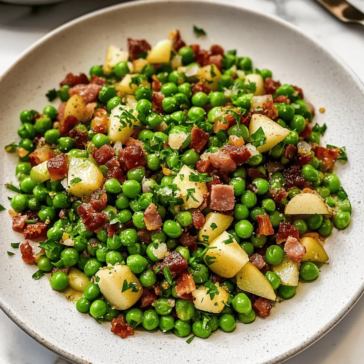 • Frischer Gartensalat: Ein leichter, knuspriger Salat mit einem spritzigen Dressing bietet eine erfrischende Balance und hebt den herzhaften Geschmack der Erbsen hervor.