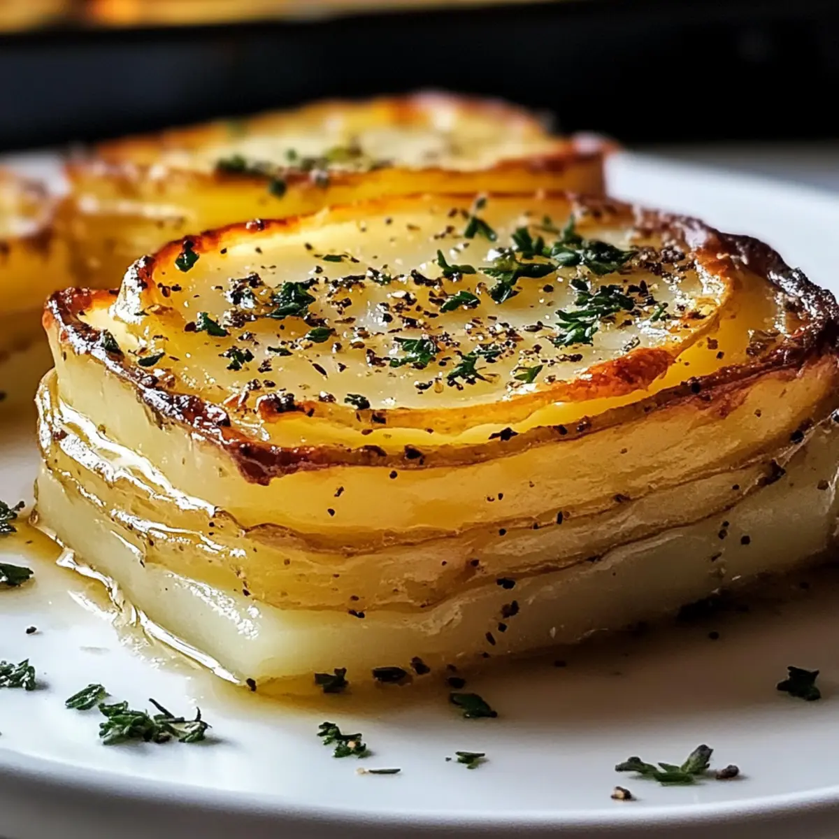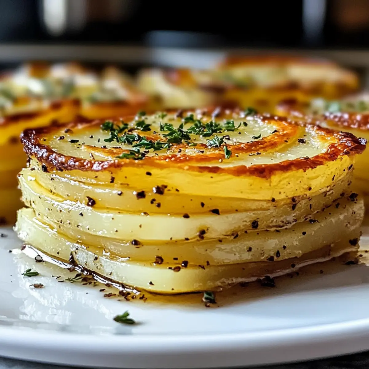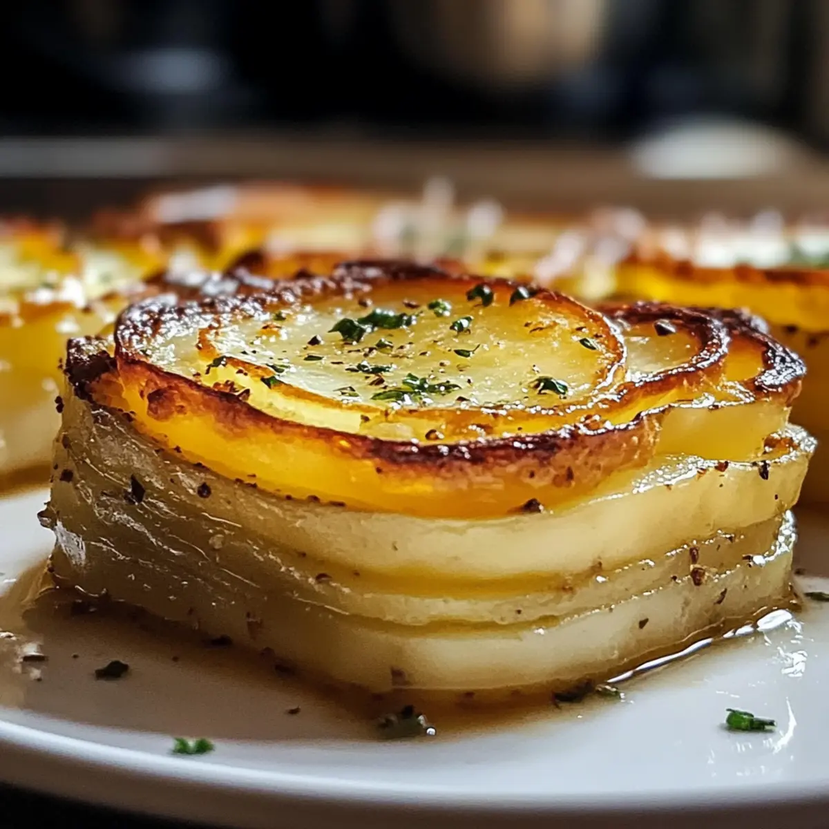 Mit einem leichten Knacken beim ersten Biss entführt uns die dekadente Kartoffelpave in eine Welt voller Geschmack und Textur. Diese genussvolle Beilage, die aus perfekt geschichteten Yukon Gold Kartoffeln besteht, wird mit klarem Butter vollendet, was sie zu einer perfekten Wahl für festliche Zusammenkünfte oder gemütliche Familienessen macht. Ihre glutenfreie Rezeptur ist nicht nur ein Augenschmaus, sondern auch ein unkompliziertes Gericht, das im Voraus zubereitet werden kann und somit den Stress beim Kochen minimiert. Stellen Sie sich vor, wie Ihre Gäste mit großen Augen auf die goldbraun gebratene Pave blicken, während sie den zarten, buttrigen Kern genießen. Sind Sie bereit, diese elegante Beilage zu kreieren und Ihren nächsten Anlass unvergesslich zu machen? Warum sollten Sie diese Kartoffelpave lieben? Einzigartige Kombination: Die dekadente Kartoffelpave vereint die Aromen von zarten, geschichteten Kartoffeln und reichhaltiger klarer Butter zu einem Harmonien von Geschmack. Einfache Zubereitung: Mit wenigen grundlegenden Zutaten und einfacher Anleitung ist dieses Gericht leicht nachzukochen und perfekt für jeden Koch, egal ob Anfänger oder Profi. Vielseitige Variationen: Experimentieren Sie mit verschiedenen Kartoffelsorten, Käse oder sogar veganen Optionen für eine persönliche Note. Warum nicht unsere Vegan Version ausprobieren? Ein Blickfang: Mit ihrer eleganten Präsentation wird die Pave garantiert das Highlight Ihres Festessens sein und Gäste beeindrucken. Zeitersparnis: Sie können die Beimischung hervorragend im Voraus zubereiten und sparen wertvolle Zeit am Tag des Anlasses. Dekadente Kartoffelpave Zutaten • Um sicherzustellen, dass Sie alles für Ihre dekadente Kartoffelpave bereit haben, finden Sie hier die notwendigen Zutaten. Für die Pave Yukon Gold Kartoffeln (4 mittel) – die Basis für eine cremige Textur und einen buttrigen Geschmack; können durch Russet-Kartoffeln ersetzt werden, jedoch mit leicht verändertem Geschmack. Salz (1 TL) – verbessert den Gesamteindruck; nach Geschmack anpassen. Schwarzer Pfeffer (1/2 TL) – sorgt für die notwendige Würze; weißer Pfeffer kann als Alternative verwendet werden. Klarer Butter/Ghee (1/2 Tasse) – für reichhaltigen Geschmack und verhindert das Anbrennen beim Kochen; wesentlich für die Knusprigkeit. Olivenöl (1 EL) – wird zum Anbraten der Kartoffelstücke genutzt. Knoblauch (1 Zehe, optional) – fügt eine zusätzliche Geschmacksdimension hinzu; bei Verwendung in jede Schicht einarbeiten. Frische Kräuter (1 EL, z. B. Thymian oder Rosmarin, optional) – verleiht der Pave eine aromatische Note; Experimentieren ist erwünscht. Geriebener Parmesan (1/4 Tasse, optional) – bereichert die Schichten mit herzhaftem Geschmack; kann durch andere Käsesorten ersetzt werden. Schritt-für-Schritt-Anleitung für Dekadente Kartoffelpave Step 1: Vorbereitung Heizen Sie den Ofen auf 160°C vor und legen Sie eine Kastenform mit Backpapier aus, sodass ein Überstand entsteht, um die Pave später leicht herausnehmen zu können. Stellen Sie sicher, dass das Backpapier gut anliegt, um eine gleichmäßige Form zu gewährleisten. Step 2: Kartoffeln schneiden Pellen Sie die Yukon Gold Kartoffeln und schneiden Sie sie mit einer Mandoline in hauchdünne Scheiben von etwa 1,5 mm Dicke. Tauchen Sie die geschnittenen Kartoffelscheiben in kaltes Wasser, um eine Verfärbung zu vermeiden, und tupfen Sie sie anschließend gründlich trocken, damit die dekadente Kartoffelpave beim Backen schön knusprig wird. Step 3: Schichten Beginnen Sie, die Kartoffelscheiben gleichmäßig in die vorbereitete Kastenform zu schichten. Bestreichen Sie jede Schicht großzügig mit klarer Butter und würzen Sie sie mit Salz und Pfeffer. Optional können Sie frische Kräuter oder geriebenen Käse zwischen den Schichten hinzufügen, um zusätzliche Aromen zu entfalten. Step 4: Drücken und Backen Decken Sie die aufgeschichteten Kartoffeln mit einem Blatt Backpapier und dann mit Aluminiumfolie ab. Beschweren Sie die Form mit einem schweren Gegenstand, um eine gleichmäßige Textur zu gewährleisten. Backen Sie die Pave für 1 Stunde 45 Minuten bis 2 Stunden, bis die Kartoffeln schön weich sind und sich leicht stechen lassen. Step 5: Abkühlen und Kühlen Lassen Sie die Kartoffelpave auf Raumtemperatur abkühlen, bevor Sie sie im Kühlschrank für mindestens 4 Stunden oder über Nacht weiter kühlen. Dies hilft, die Schichten zu festigen und sorgt für eine perfekte Form beim Servieren der dekadente Kartoffelpave. Step 6: Schneiden und Anbraten Nehmen Sie die Pave aus dem Kühlschrank und heben Sie sie vorsichtig aus der Form. Schneiden Sie sie in gleichmäßige Quadrate. Erhitzen Sie in einer beschichteten Pfanne etwas klare Butter bei mittlerer Hitze und braten Sie jedes Stück etwa 3-4 Minuten pro Seite, bis sie goldbraun und knusprig sind. Expertentipps für Dekadente Kartoffelpave Mandoline nutzen: Verwenden Sie eine Mandoline zum gleichmäßigen Schneiden der Kartoffeln. So stellen Sie sicher, dass die Pave gleichmäßig gart und die Textur perfekt wird. Siebe die Kartoffeln: Lassen Sie die geschnittenen Kartoffelscheiben gut abtropfen und trocken tupfen, um überschüssige Feuchtigkeit zu entfernen. Dies fördert die Knusprigkeit der dekadente Kartoffelpave. Nicht zu früh wenden: Warten Sie beim Anbraten, bis die Unterseite goldbraun ist, bevor Sie die Stücke wenden. So vermeiden Sie, dass sie brechen und erhalten eine perfekte Kruste. Schichten kräftig drücken: Drücken Sie die Schichten während des Backens fest zusammen. Dies sorgt für eine gleichmäßige Konsistenz und hilft der Pave, in Form zu bleiben. Variationen ausprobieren: Experimentieren Sie mit verschiedenen Kräutern oder Käsesorten, um Ihrer dekadente Kartoffelpave eine persönliche Note zu verleihen und neue Geschmackserlebnisse zu entdecken. Was passt zu dekadenter Kartoffelpave? Die perfekte Ergänzung zu Ihrer nächsten festlichen Mahlzeit, die alle Sinne anspri