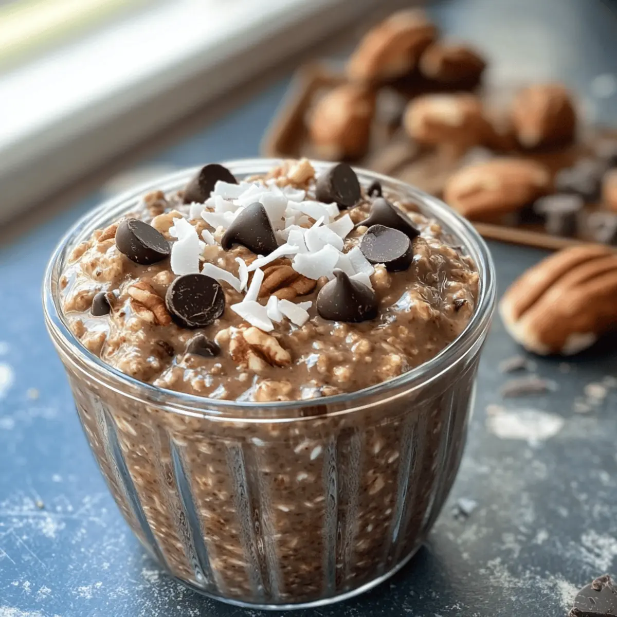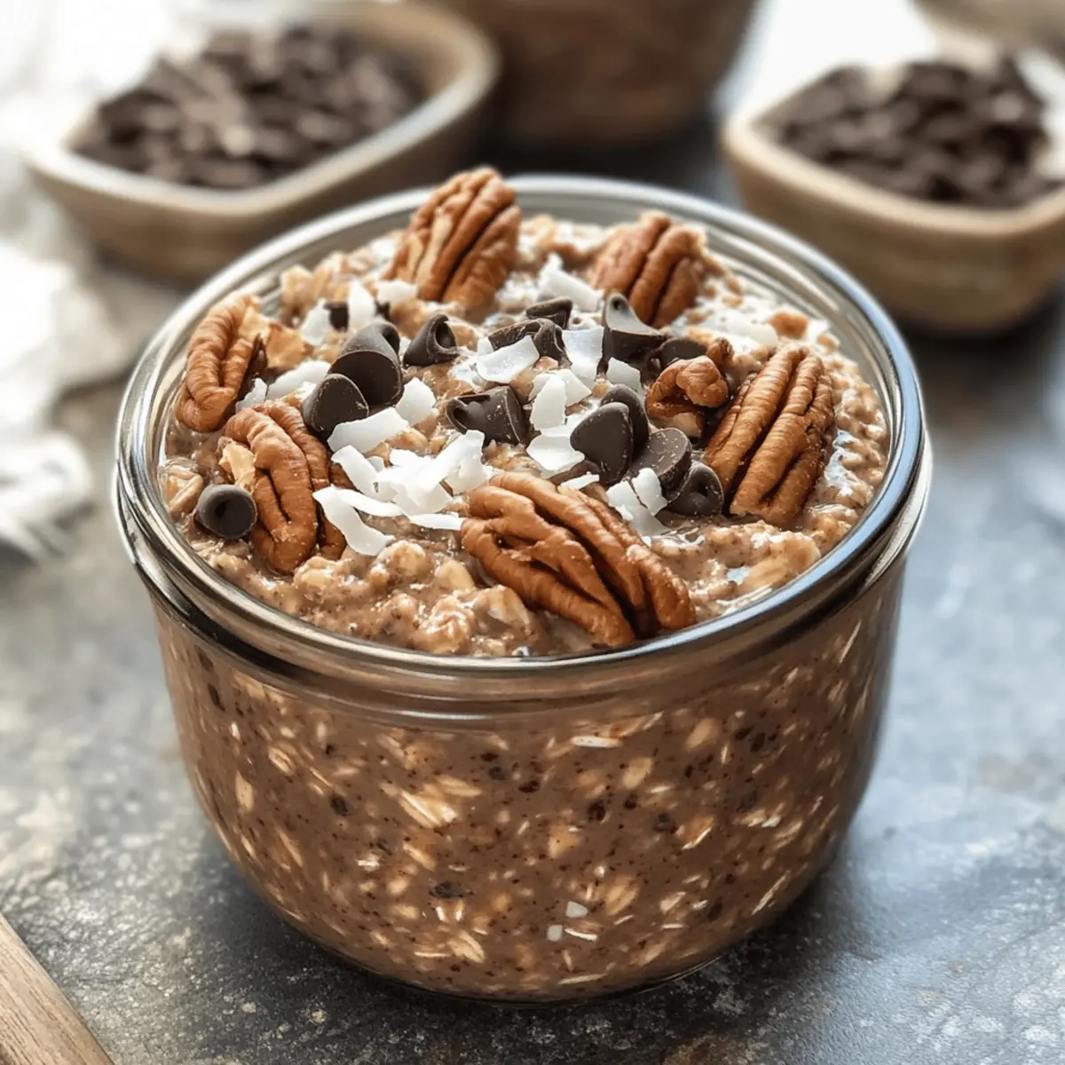 Genießen Sie die köstlichen Deutschen Schokoladen Übernacht-Haferflocken, vegan und glutenfrei, perfekt für ein schnelles Frühstück!
