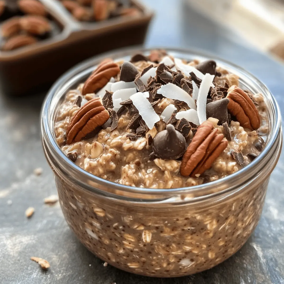 Hast du schon von den unwiderstehlichen Aromen der deutschen Schokoladentorte gehört? Ich war sofort begeistert, als ich diese Idee für Deutsche Schokoladen Übernacht-Haferflocken entdeckte! Es ist eine fantastische Möglichkeit, die köstlichen Geschmäcker von Schokolade, Kokosnuss und knackigen Pekannüssen in dein Frühstück zu bringen. Und das Beste daran? Diese vegane und glutenfreie Rezeptur benötigt nur 10 Minuten Vorbereitung – perfekt für alle, die es eilig haben, aber nicht auf den Genuss verzichten möchten. Stell dir vor, du kannst diese cremigen Haferflocken einfach über Nacht ziehen lassen und am Morgen mit einem Lächeln genießen. Neugierig, wie einfach es ist, deinen Tag mit einer Portion purem Schokoladengenuss zu starten? Lass uns direkt loslegen!