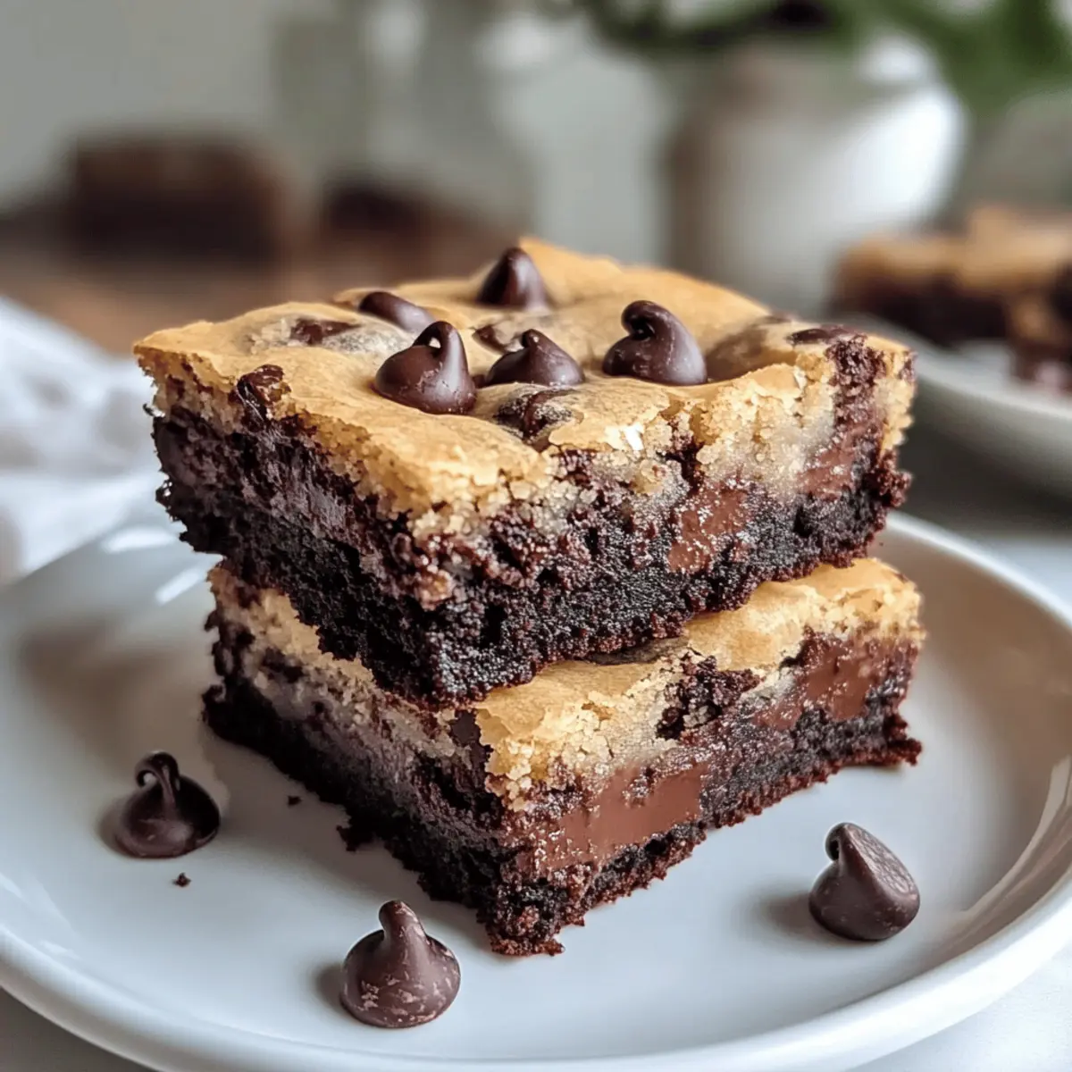 Die Kombination aus saftigen Brownies und zarten Schokoladenkeksen hat mich sofort begeistert, als ich die Doppelschichtigen Veganen Brookies zum ersten Mal gemacht habe. Dieses plant-based Dessert-Mash-up ist der perfekte Genuss für alle, die es lieben, mit einfachen Zutaten ein einzigartiges Geschmackserlebnis zu kreieren. Diese Brookies, die kinderleicht zuzubereiten sind, vereinen nicht nur zwei meiner Lieblings-Desserts, sondern sie sind auch vegan und absolut frei von tierischen Produkten. Das Beste daran? Sie harmonieren wunderbar und sind ein echter Hit bei Freunden und Familie, ganz gleich, ob sie vegan leben oder nicht. Neugierig, wie man diese köstlichen Leckerbissen zubereitet? Lass uns gleich loslegen! Warum sind diese Brookies so besonders? Einzigartige Kombination: Diese Doppelschichtigen Veganen Brookies vereinen beste Brownies und Schokoladenkekse in einem einzigen Dessert. Leicht zuzubereiten: Selbst Anfänger können mit diesen einfachen Schritt-für-Schritt-Anleitungen köstliche Ergebnisse erzielen! Vielseitig: Personalisiere dein Rezept nach Geschmack – füge Nüsse oder unterschiedliche Aromen hinzu! Crowd-Pleaser: Egal, ob vegan oder nicht – diese Brookies sind ein Hit bei jeder Feier! Dauerhafte Frische: Bewahre sie in einem luftdichten Behälter auf und genieße für bis zu 5 Tage! Doppelschichtige Vegane Brookies Zutaten Hinweis: Die Doppelschichtige Vegane Brookies sind nicht nur lecker, sondern auch einfach zuzubereiten. Für die Brownie-Schicht • Veganer Butter – sorgt für Feuchtigkeit und Geschmack; empfehlenswerte Marken sind Earth Balance oder Miyoko’s. • Schokoladenstückchen – verleihen eine tiefschokoladige Note; achte darauf, vegane Varianten zu wählen. • Rohzucker – süßt und gibt Struktur; kann durch Kokoszucker ersetzt werden für eine gesündere Option. • Leinsamenmehl – wirkt als Ei-Ersatz, um die Zutaten zu binden; mit Pflanzenmilch vermischen zum Dickwerden. • Pflanzenmilch – bringt Feuchtigkeit; wähle zwischen Mandel-, Soja- oder Hafermilch. • Allzweckmehl – bildet die Basis der Schicht; kann durch glutenfreies Mehl ersetzt werden. • Kakaopulver – sorgt für den reichhaltigen Schokoladengeschmack in der Brownie-Schicht; sicherstellen, dass es ungesüßt und vegan ist. • Backpulver & Natron – fördern das Aufgehen und sorgen für eine tolle Textur der Brookies. • Salz – hebt den Geschmack hervor; wähle Meersalz oder Speisesalz. Für die Keks-Schicht • Maisstärke – sorgt für eine weichere Textur im Keks; kann weggelassen werden, beeinflusst jedoch die Endkonsistenz. • Vanilleextrakt – verstärkt die Geschmacksnuancen; für beste Ergebnisse reinen Vanilleextrakt verwenden. Diese Zutaten ermöglichen dir, köstliche Doppelschichtige Vegane Brookies zu kreieren, die für süße Genussmomente sorgen! Schritt-für-Schritt-Anleitung für Doppelschichtige vegane Brookies Schritt 1: Ofen vorheizen und Backform vorbereiten Heize deinen Ofen auf 180 °C vor und fette eine 20×20 cm große Backform mit etwas veganer Butter ein. Achte darauf, dass die Form gleichmäßig eingefettet ist, um ein Ankleben der Doppelschichtigen veganen Brookies zu verhindern. Während der Ofen vorheizt, kannst du die nächsten Schritte vorbereiten. Schritt 2: Schokoladen-Brownie-Mischung herstellen In einer großen Schüssel schmelze die vegane Butter zusammen mit den Schokoladenstückchen in der Mikrowelle. Rühre die Mischung in Intervallen von 30 Sekunden um, bis sie schön cremig und gut vermischt ist. Füge dann den Rohzucker hinzu und rühre sorgfältig um, bis er vollständig in die Schokoladenmischung eingearbeitet ist. Schritt 3: Leinsamen-Ei zubereiten Gib das Leinsamenmehl in eine kleine Schüssel und vermische es mit der Pflanzenmilch. Lass die Mischung einige Minuten stehen, damit sie eindickt und die Konsistenz eines Eies annimmt. Dieses Leinsamen-Ei wird helfen, die Brownie-Schicht zusammenzuhalten und ist ein essentielles Element der Doppelschichtigen veganen Brookies. Schritt 4: Zutaten verbinden Nachdem die Mischung abgekuhlt ist, füge das Leinsamen-Ei zur geschmolzenen Schokoladenmischung hinzu. Rühre alles gut um, bis eine homogene Masse entsteht, und achte darauf, dass sich keine Klumpen bilden. So wird die Textur der Brookies wunderbar geschmeidig und reichhaltig. Schritt 5: Trockene Zutaten einmixen Sichte nun das Allzweckmehl, Kakaopulver, Backpulver, Natron und Salz in die Schüssel mit der Schokoladen-Brownie-Mischung. Füge alles zu der Mischung hinzu und falte es vorsichtig ein, bis gerade so ein Teig entsteht. Achte darauf, nicht zu lange zu rühren, um die Doppelschichtigen veganen Brookies schön weich zu halten. Schritt 6: Brownie-Schicht in die Backform drücken Gib den Teig für die Brownie-Schicht in die vorbereitete Backform und drücke ihn gleichmäßig in die Ecken hinein. Glätte die Oberfläche mit einem Spatel, sodass ein gleichmäßiger Boden für die Keks-Schicht entsteht. Dies ist eine wichtige Grundlage für die köstlichen Doppelschichtigen veganen Brookies. Schritt 7: Keks-Schicht zubereiten In einer separaten Schüssel schmelze erneut etwas vegane Butter für die Keks-Schicht. Rühre den Rohzucker, den braunen Zucker und die Pflanzenmilch so lange um, bis alles gut vermischt ist. Diese Mischung sollte schnittfest und süß sein, was für die Doppelschichtigen veganen Brookies wichtig ist. Schritt 8: Trockene Zutaten für Kekse mischen Sichte das Allzweckmehl, die Maisstärke, Backpulver, Natron und Salz in die Zuckermischung und falte sie vorsichtig ein. Achte darauf, nur so lange zu rühren, bis alles gut vermischt ist. Füge anschließend die Schokoladenstückchen hinzu und hebe sie vorsichtig unter den Teig. Schritt 9: Keks-Teig auf Brownies schichten Verteile den Keks-Teig gleichmäßig über die Brownie-Schicht in der Backform. Verwende einen Spatel oder deine Hände, um ihn sanft glatt zu streichen. Dies schafft die perfekte Oberseite für deine Doppelschichtigen v
