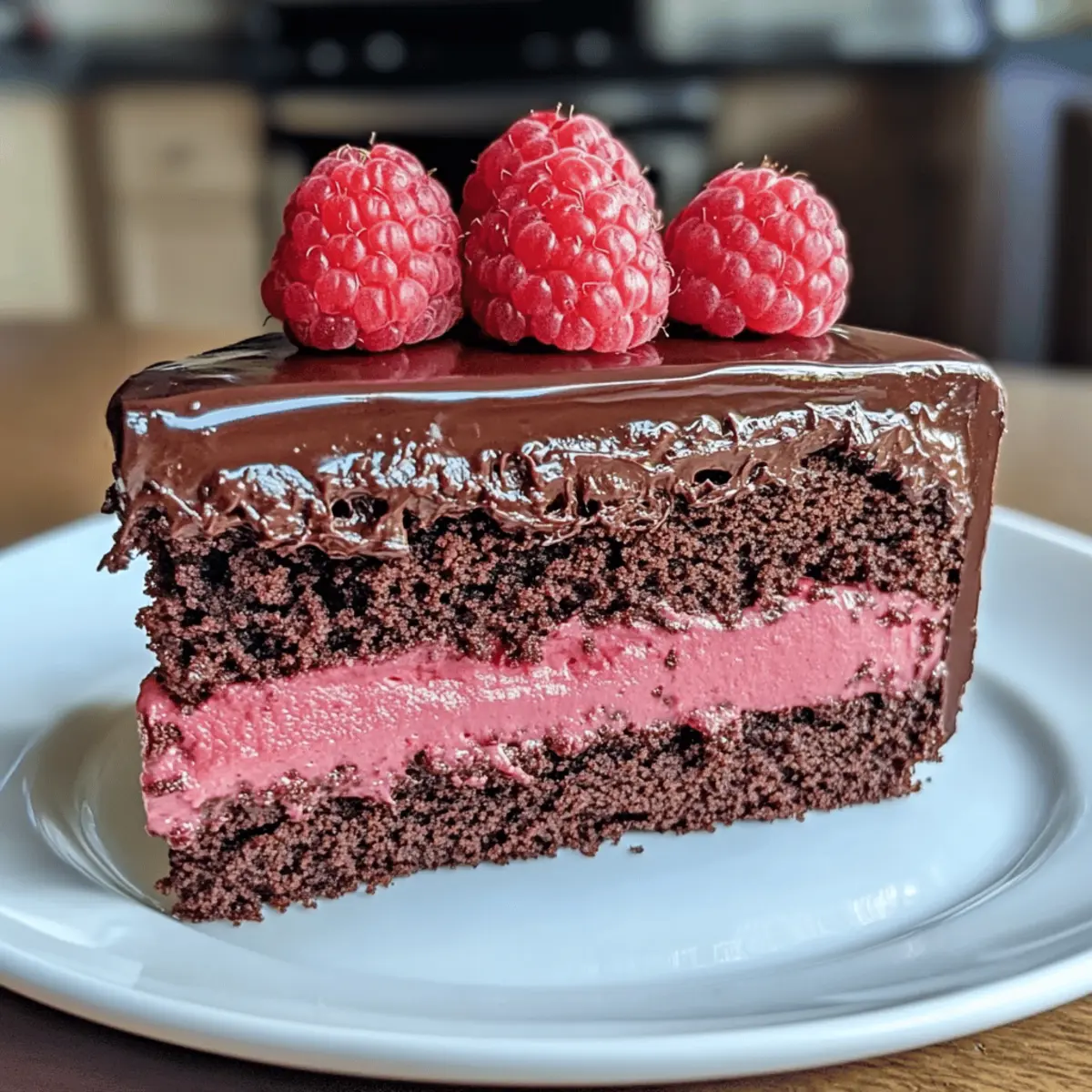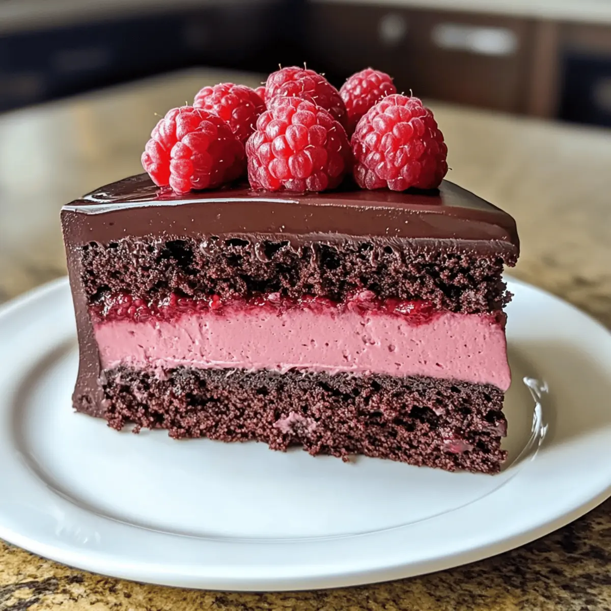 Entdecken Sie den Dunkel Schokoladen Himbeer Mousse Kuchen, ein himmlisches Dessert mit intensiver Schokolade und frischen Himbeeren, ideal für besondere Anlässe und glutenfreie Optionen.