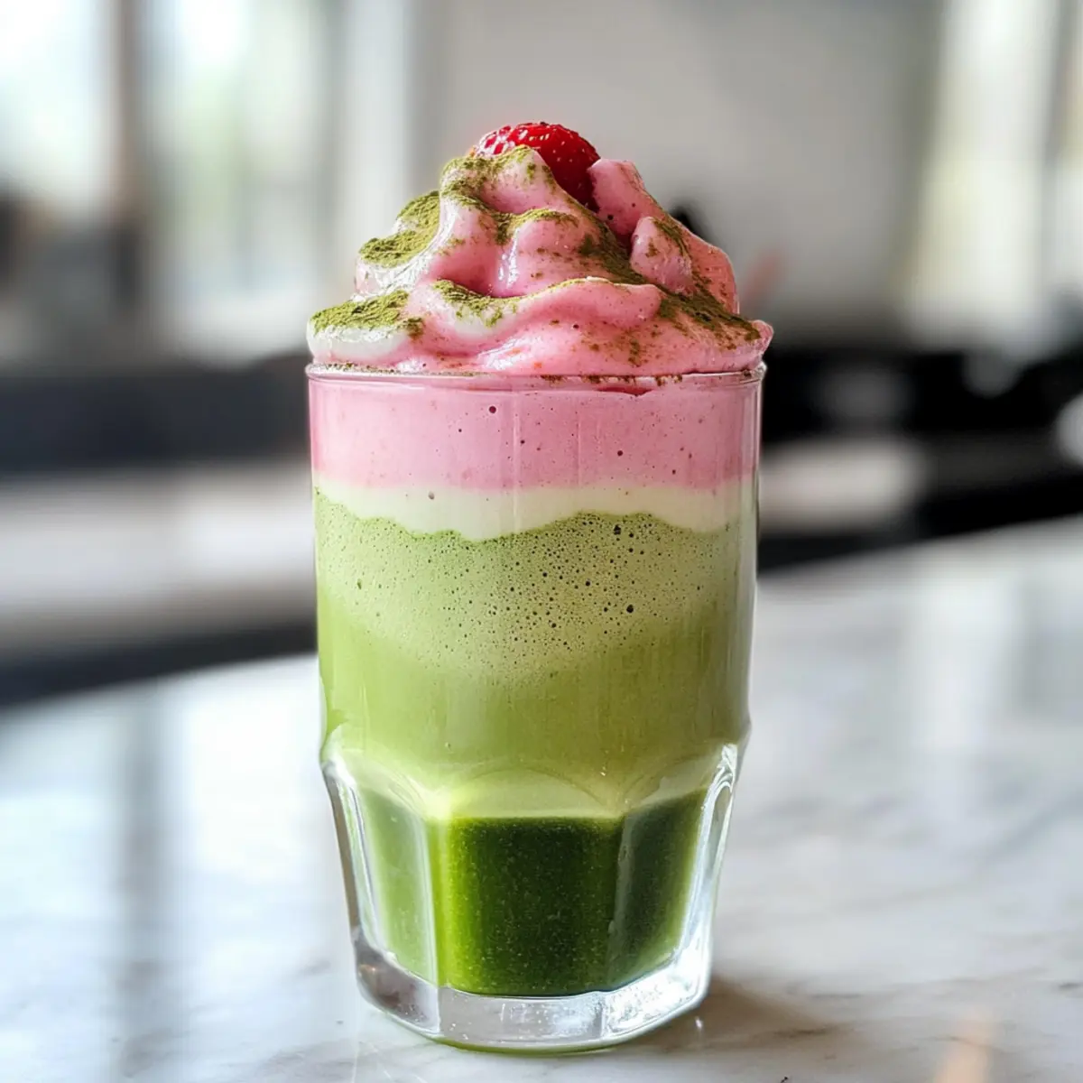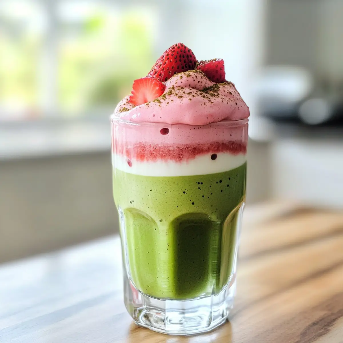 Ein satter Grünteegeschmack gepaart mit der Süße sonnengereifter Erdbeeren – das ist, was mich sofort zu dieser eisigen Matcha-Latte mit Erdbeer-Kalt-Schaum hinzieht. Diese köstliche Zubereitung vereint nicht nur eine erfrischende Leichtigkeit, sondern bringt auch eine elegante und geschmacklich ausgewogene Note auf euren Tisch. Die Zubereitung ist so einfach, dass ihr sie im Handumdrehen selbst machen könnt, wodurch ihr euch und euren Gästen ein echtes Café-Erlebnis im eigenen Zuhause bietet. Die perfekte Wahl für einen warmen Tag oder wenn der kleine Hunger zuschlägt! Seid ihr bereit, euer eigenes Stückchen Glück im Glas zu entdecken? Warum wird dieser Latte Ihr neuer Favorit? Einfachheit: Die Zubereitung dieser eisigen Matcha-Latte ist supereinfach und benötigt nur wenige Zutaten, ideal für schnelle Genussmomente. Erfrischend: Die Kombination aus erdigem Matcha und süßen, frischen Erdbeeren sorgt für eine belebende Erfrischung an heißen Tagen. Eleganz: Mit seinem hübschen Schicht-Effekt sieht dieser Latte nicht nur toll aus, sondern macht auch bei Gästen Eindruck – perfekt für kleine Zusammenkünfte. Variabilität: Experimentieren Sie mit verschiedenen Beeren oder Milchalternativen, um Ihr individuelles Geschmackserlebnis zu kreieren! Möchten Sie mehr über Variationen erfahren? Schauen Sie sich unsere Variation Ideen an. Gesundheitsfreundlich: Die Mischung aus Antioxidantien und Vitaminen macht diesen Latte zu einer gesünderen Wahl für den süßen Genuss. Eisige Matcha-Latte mit Erdbeer-Kalt-Schaum Zutaten • Diese erfrischende Kombination aus Matcha und Erdbeeren ist ein Muss für jeden Feinschmecker! Für den Latte Matcha-Pulver – Verleiht den charakteristischen Grünteegeschmack; verwenden Sie zeremonielle Qualität für den besten Geschmack. Heißes Wasser – Aktiviert das Matcha und hilft beim Auflösen des Pulvers; sollte heiß, aber nicht kochend sein. Milch – Bildet die Basis des Getränks; jede Milchart kann verwendet werden, einschließlich pflanzlicher Optionen (Almond-, Hafermilch). Vanilleextrakt – Fügt Tiefe zum Geschmack hinzu; optional, aber sehr empfehlenswert. Für den Erdbeer-Kalt-Schaum Erdbeeren – Sorgt für natürliche Süße und fruchtigen Geschmack; frische Erdbeeren erzielen die besten Ergebnisse. Zucker oder Honig – Verstärkt die Süße der Erdbeeren; kann durch Agaven- oder jeden Süßstoff ersetzt werden. Schlagsahne – Schafft einen dicken Schaum auf dem Latte; kann durch Kokoscreme ersetzt oder für eine leichtere Version weggelassen werden. Glasieren Sie Ihr geschmackliches Erlebnis mit der Eisigen Matcha-Latte mit Erdbeer-Kalt-Schaum und genießen Sie jeden Schluck, während Sie den warmen Tagen trotzen! Schritt-für-Schritt-Anleitung für die Eisige Matcha-Latte mit Erdbeer-Kalt-Schaum Step 1: Matcha vorbereiten In einer kleinen Schüssel 1 Teelöffel Matcha-Pulver mit 2 Esslöffel heißem Wasser verquirlen, bis eine glatte Konsistenz entsteht. Achten Sie darauf, dass keine Klumpen zurückbleiben. Dies dauert etwa 1-2 Minuten und ist entscheidend, um den vollen Geschmack in Ihrer eisigen Matcha-Latte mit Erdbeer-Kalt-Schaum zu entfalten. Step 2: Erdbeeren zubereiten Das nächste Schritt ist das Vorbereiten der Erdbeeren. Drei frische Erdbeeren in kleine Stücke schneiden und mit 1-2 Esslöffeln Zucker oder Honig vermischen. Mithilfe einer Gabel die Erdbeeren zerdrücken, bis sie saftig sind und eine schöne, süße Basis für den Schaum entsteht. Dies sollte rund 5 Minuten in Anspruch nehmen. Step 3: Erdbeer-Schaum anrühren Nun die Erdbeeren mit 2 Esslöffeln Schlagsahne und 2 Esslöffeln Milch kombinieren, gefolgt von ½ Teelöffel Vanilleextrakt. Die Mischung mit einem Milchaufschäumer oder einem Handmixer aufschäumen, bis sie dick und cremig ist. Der Erdbeer-Kalt-Schaum sollte etwa 3-4 Minuten dauern und ein wunderschönes Volumen erreichen. Step 4: Latte zusammenstellen Nun füllen Sie ein großes Glas mit etwa 1 Tasse Eiswürfeln. Anschließend 1 Tasse Milch darüber gießen, um die Grundlage für Ihre Eisige Matcha-Latte mit Erdbeer-Kalt-Schaum zu schaffen. Achten Sie darauf, die Milch gleichmäßig zu verteilen, damit sie eine schöne Schichtung ergibt. Step 5: Matcha hinzufügen Langsam das vorbereitete Matcha-Gemisch über die Milch gießen, damit sich die beiden Komponenten nicht vermischen. Dadurch entsteht ein beeindruckender visueller Effekt mit der grünen Matcha-Schicht oben. Dieser Schritt bringt etwa 1-2 Minuten Zeit in Anspruch, um die perfekte Schichtung zu erzielen. Step 6: Erdbeer-Schaum auftragen Mit einem Löffel den dick geschlagenen Erdbeer-Kalt-Schaum vorsichtig auf die Übergangszone zwischen Matcha und Milch auftragen. Lassen Sie den Schaum dick auf der Oberfläche sitzen, um einen ansprechenden, schaumigen Effekt zu erreichen. Dies dauert etwa 2-3 Minuten und macht Ihre Eisige Matcha-Latte noch einladender. Step 7: Servieren und genießen Nun ist Ihre Eisige Matcha-Latte mit Erdbeer-Kalt-Schaum bereit zum Servieren. Genießen Sie die erfrischenden Aromen, die während des Trinkens miteinander verschmelzen. Diese Kombination aus erdigem Matcha und süßen Erdbeeren ist nicht nur köstlich, sondern auch ein wahrer Genuss für das Auge! Variationen der Eisigen Matcha-Latte Entdecken Sie kreative Möglichkeiten, um Ihre Eisige Matcha-Latte mit Erdbeer-Kalt-Schaum nach Ihrem Geschmack zu individualisieren! Erdbeeren ersetzen: Probieren Sie Himbeeren oder Heidelbeeren für ein neues Fruchtaroma und eine andere Farbe. Minze hinzufügen: Einen Hauch von frischer Minze einrühren, um Ihrer Latte eine erfrischende Note zu verleihen. Heiße Variante: Lassen Sie das Eis weg und erwärmen Sie die Milch für eine gemütliche, heiße Latte. Vegan: Ersetzen Sie die Schlagsahne durch Kokoscreme und die Milch durch eine pflanzliche Option wie Hafermilch für eine vegane Version. Extras hinzufügen: Streuen Sie etwas Kakaopulver oder Zimt oben auf den Schaum für zusätzlichen Geschmack. Süßungs