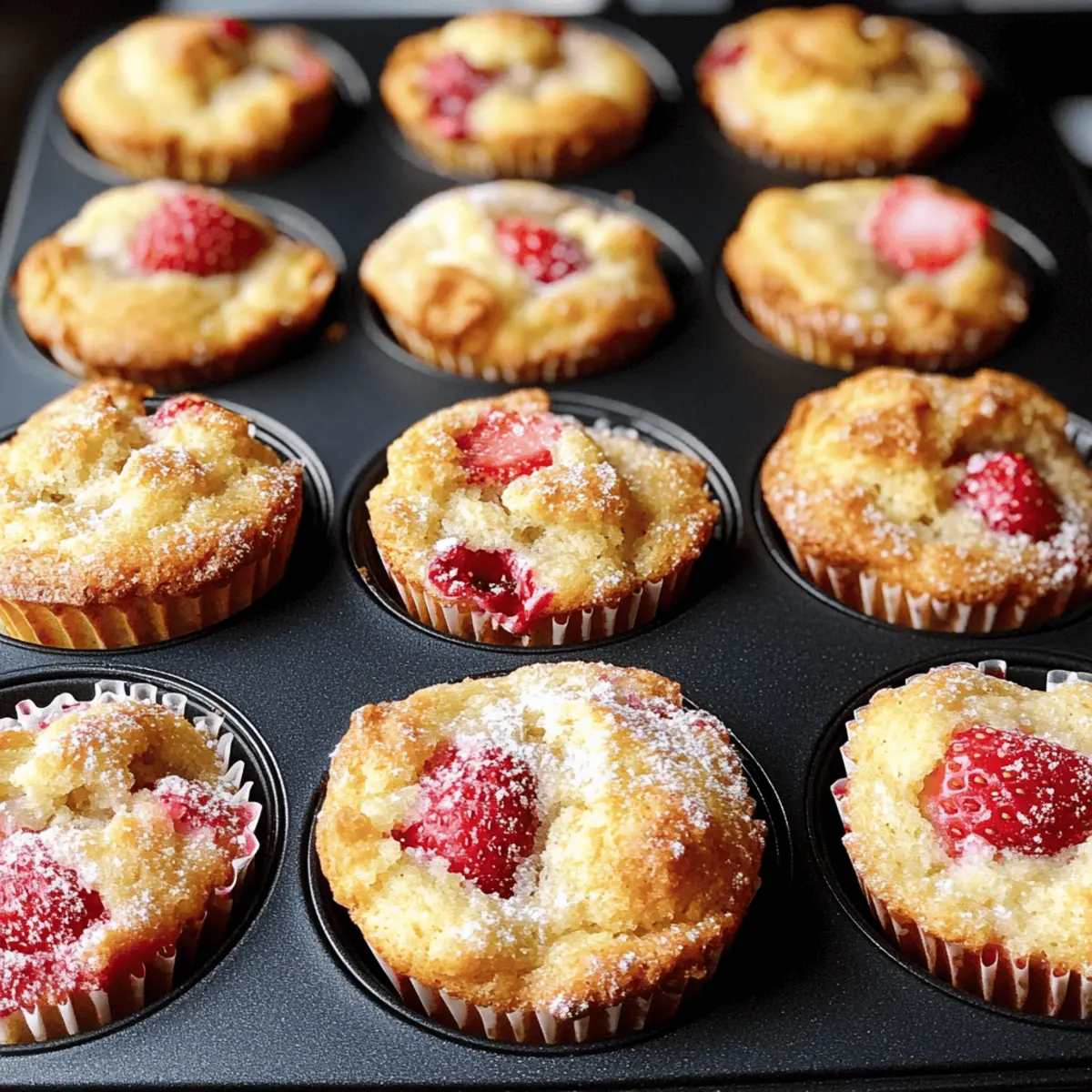 Der süße Duft von frischen Erdbeeren durchzieht meine Küche und bringt Erinnerungen an sonnige Frühlingstage zurück. Heute bereite ich mit viel Freude Erdbeer-Ricotta-Muffins zu, die nicht nur leicht und fluffig sind, sondern auch die perfekte Kombination aus fruchtiger Süße und cremiger Note bieten. Diese schnell zubereiteten Muffins eignen sich hervorragend für ein entspanntes Frühstück oder als süßer Snack für zwischendurch. Mit ihren wohltuenden Zutaten gewährleisten sie, dass jeder Biss zu einem kleinen Genussmoment wird. Wenn du auf der Suche nach einem komfortablen und gleichzeitig raffinierten Rezept bist, dann wirst du bei diesen Muffins ganz sicher fündig! Bist du bereit, diese fruchtigen Köstlichkeiten auszuprobieren? Warum wirst du dieses Rezept lieben? Einfachheit: Die Zubereitung ist spielend einfach und benötigt nur grundlegende Backfähigkeiten. Fruchtige Frische: Die Kombination aus frischen Erdbeeren und cremigem Ricotta sorgt für einen erfrischenden Geschmack, der jeden Bissen zu einem Genuss macht. Vielseitigkeit: Diese Muffins sind perfekt für ein entspanntes Frühstück, einen Snack für zwischendurch oder sogar für einen Brunch mit Freunden. Du kannst sie mit Butter oder Frischkäse servieren. Schnelle Zubereitungszeit: In nur 30 Minuten hast du diese Muffins im Ofen, was sie zu einer idealen Wahl für beschäftigte Morgen macht. Gesunde Zutaten: Angereichert mit hochwertigem Ricotta und frischen Früchten sind diese Muffins nicht nur lecker, sondern auch eine gesunde Wahl. Das verleiht ihnen einen besonderen Platz auf deiner Rezeptliste! Erdbeer-Ricotta-Muffins Zutaten • Für den Teig: Weizenmehl – sorgt für Struktur; du kannst auch eine glutenfreie Mehlmischung verwenden, wenn du Gluten meiden möchtest. Zucker – fügt Süße hinzu; verwende Kokoszucker oder Honig für eine niedrigere glykämische Option. Backpulver – wirkt als Treibmittel; stelle sicher, dass es frisch ist, um beste Ergebnisse zu erzielen. Natron – ergänzt das Backpulver; sollte nicht ohne Anpassungen bei den anderen Zutaten ersetzt werden. Salz – hebt den Geschmack hervor; verwende Meersalz oder koscheres Salz für ein anderes Mineralprofil. Eier – binden die Muffins; du kannst Leinsamenmehl als Ei-Ersatz für eine vegane Option nutzen. Ricotta – sorgt für cremige Textur; Hüttenkäse kann im Notfall verwendet werden. Olivenöl – sorgt für Feuchtigkeit; geschmolzenes Kokosöl kann ein geeigneter Ersatz sein. Frisch gepresster Orangensaft – fügt Säure und Geschmack hinzu; du kannst bei Bedarf Zitronensaft verwenden. Erdbeeren (in Stücke geschnitten) – die Hauptzutat, die natürliche Süße und Feuchtigkeit bietet; alternative Beeren wie Blaubeeren oder Himbeeren sind ebenfalls möglich. Diese Erdbeer-Ricotta-Muffins sind nicht nur köstlich, sondern auch eine wunderbare Ergänzung zu deinem Frühstück oder Snack-Bereich. Step-by-Step Instructions für Erdbeer-Ricotta-Muffins Step 1: Ofen vorheizen Heize deinen Ofen auf 190°C vor und bereite ein Muffinblech mit Papierförmchen vor. Achte darauf, dass der Ofen die richtige Temperatur erreicht hat, bevor du die Muffins hineinlegst, damit sie gleichmäßig und schön aufgehen. Step 2: Trockene Zutaten vermischen Gib in eine große Schüssel das Weizenmehl, den Zucker, das Backpulver, das Natron und das Salz und vermenge alles gut. Reserviere einen Esslöffel dieser Mischung und wende die geschnittenen Erdbeeren darin, damit sie beim Backen nicht im Teig versinken. Step 3: Nasse Zutaten vorbereiten In einer separaten Schüssel die Eier, den Ricotta, das Olivenöl und den frisch gepressten Orangensaft leicht und fluffig aufschlagen. Diese Mischung sollte gut vermengt und cremig sein, um den Erdbeer-Ricotta-Muffins ihre köstliche Konsistenz zu verleihen. Step 4: Mischungen kombinieren Gieße die nassen Zutaten in die trockenen Zutaten und rühre vorsichtig, bis alles gerade so vermischt ist. Achte darauf, dass du nicht zu viel rührst, damit die Muffins schön fluffig bleiben. Hebe nun die Erdbeeren sanft unter den Teig. Step 5: Teig einfüllen und backen Verteile den Teig gleichmäßig in die Muffinförmchen und achte darauf, dass du die Förmchen nur zu etwa 2/3 füllst. Backe die Muffins für etwa 18 Minuten oder bis sie goldbraun sind und ein Zahnstocher, der in die Mitte gesteckt wird, sauber herauskommt. Step 6: Abkühlen und servieren Lass die Muffins nach dem Backen kurz in der Form abkühlen, bevor du sie auf ein Kuchengitter überträgst. Diese Erdbeer-Ricotta-Muffins schmecken warm oder bei Zimmertemperatur besonders gut und sind perfekt für ein entspanntes Frühstück oder als kleiner Snack zwischendurch. Was passt zu Erdbeer-Ricotta-Muffins? Lass dich von köstlichen Begleitern inspirieren, die dein Frühstückserlebnis bereichern und die Aromen der Erdbeer-Ricotta-Muffins perfekt ergänzen. Cremiger Joghurt: Ein Klecks griechischer Joghurt verleiht den Muffins eine köstliche Frische und sorgt für einen cremigen Kontrast. Dieser leichte und gesunde Begleiter macht das Frühstück besonders schmackhaft. Frischer Orangensaft: Ein Glas frisch gepresster Orangensaft bringt die süßen Zitrusnoten der Muffins zur Geltung und sorgt für einen erfrischenden Start in den Tag. Nüsse und Samen: Geröstete Mandeln oder Sonnenblumenkerne fügen einen knusprigen Crunch hinzu, der die weiche Textur der Muffins wunderbar ergänzt. Diese Kombination sorgt für ein vielfältiges Geschmackserlebnis. Süßer Honig: Ein Hauch von Honig über den Muffins macht sie zu einer perfekten Süßigkeit, die den Geschmack der frischen Erdbeeren verstärkt und für einen zusätzlichen Genuss sorgt. Leichter Salat: Ein einfacher gemischter Salat mit frischen Kräutern und einem spritzigen Dressing bietet eine frische, knackige Komponente, die das Frühstück balanciert und sättigend macht. Frisches Obst: Eine bunte Obstplatte mit saisonalen Früchten wie Kiwi, Trauben oder Melone rundet das Frühstück ab und bring