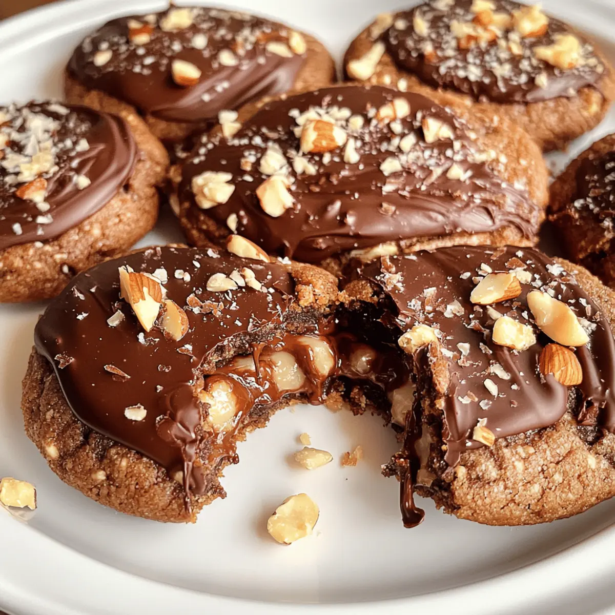 Es war einmal ein regnerischer Nachmittag, als ich beschloss, meine Küche in einen magischen Ort voller süßer Versuchungen zu verwandeln. Die Vorstellung von köstlichen Ferrero Rocher Keksen, die mit einer schmelzenden Nutella-Füllung gefüllt sind, ließ mir das Wasser im Mund zusammenlaufen. Diese Kekse sind nicht nur ein echter Augenschmaus mit ihrem dekadenten Topping aus dunkler Schokolade und knackigen Haselnüssen, sondern sie sind auch unglaublich einfach zuzubereiten und werden jeden Schokoladenliebhaber begeistern. Perfekt für die Festtage oder einfach als süßer Snack zwischendurch, sind sie ein absolutes Muss, wenn du deine Familie und Freunde mit etwas Besonderem verwöhnen möchtest. Bist du bereit, deine eigenen Ferrero Rocher Kekse zu kreieren und dabei den unwiderstehlichen Duft frisch gebackener Cookies zu genießen? Lass uns loslegen! Warum werden Ferrero Rocher Kekse geliebt? Einfachheit, Die Zubereitung dieser Kekse ist kinderleicht und benötigt keine besonderen Backkünste – perfekt für jeden Heimkoch! Verführerischer Geschmack, Die Kombination aus schmelzender Nutella und knackigen Haselnüssen sorgt für einen Geschmack, der die Sinne verführt. Vielseitigkeit, Du kannst die Füllung ganz nach deinem Geschmack anpassen, vielleicht mit Erdnussbutter oder anderen Schokoladenaufstrichen. Perfekt für Anlässe, Diese Kekse sind ein echter Hingucker auf jedem Geburtstag, Feiertag oder Kaffeekränzchen. Zeitersparnis, Mit Vorbereitungs- und Backzeit von nur etwa 30 Minuten kannst du schnell ein köstliches Dessert zaubern! Kreativität, Lass deiner Fantasie freien Lauf, indem du verschiedene Nüsse oder Schokoladensorten für das Topping verwendest und so jedes Mal etwas Einzigartiges schaffst. Ferrero Rocher Kekse Zutaten Für die Füllung: • Nutella – sorgt für das schokoladige Haselnusszentrum; kann durch andere Schokoladen-Haselnuss-Cremes ersetzt werden. Für den Teig: • Ungesalzene Butter (½ Tasse / 113g) – verleiht die nötige Reichhaltigkeit und Feuchtigkeit; achte darauf, ungesalzen zu verwenden, um die Geschmäcker zu kontrollieren. • Dunkler Rohrzucker (⅔ Tasse / 145g) – sorgt für Süße und Feuchtigkeit; kann durch hellen Rohrzucker ersetzt werden, wenn der Geschmack milder sein soll. • Zucker (¼ Tasse / 50g) – balanciert die Süße im Teig. • Reiner Vanilleextrakt (1 Teelöffel / 5ml) – intensiviert das Aroma der Kekse. • Großes Ei (1) – wirkt als Bindemittel, das die Zutaten zusammenhält. • Salz (½ Teelöffel) – hebt die Aromen hervor und balanciert die Süße. • Backsoda (½ Teelöffel) – sorgt dafür, dass die Kekse leicht aufgehen. • Weizenmehl (1 Tasse + 3 Esslöffel / 170g) – gibt den Keksen Struktur; eine Küchenwaage sorgt für genaue Maße. • Kakaopulver (¼ Tasse / 21g) – bringt einen intensiven Schokoladengeschmack; Naturkakao kann verwendet werden für etwas luftigere Kekse. Für das Topping: • Dunkle Schokolade (5 oz / 142g) – sorgt für eine schmelzige, reiche Schicht; halb-süße Schokolade kann ebenfalls verwendet werden. • Geröstete, gehackte Haselnüsse (½ Tasse / 60g) – verleiht knusprige Textur und intensiven Nussgeschmack; kann durch gehackte Mandeln ersetzt werden, wenn gewünscht. Schritt-für-Schritt-Anleitung für Ferrero Rocher Kekse Step 1: Füllung vorbereiten Lege ein Backblech mit Wachspapier aus und forme kleine Portionen von Nutella zu Kugeln. Stelle sicher, dass sie gleichmäßig geformt sind. Setze die Nutella-Kugeln für 30 Minuten in den Gefrierschrank, bis sie fest sind. Diese köstliche Füllung wird das Herz deiner Ferrero Rocher Kekse bilden und sorgt für eine schmelzende Überraschung im Inneren. Step 2: Ofen vorheizen Heize deinen Ofen auf 180 °C (350 °F) vor und lege zwei Backbleche mit Backpapier aus. Dies sorgt dafür, dass deine Kekse perfekt backen und nicht an der Oberfläche haften bleiben. Während der Ofen vorheizt, bereite den Keksteig vor, damit alles schön synchron abläuft. Step 3: Keksteig herstellen Schlage die ungesalzene Butter, den dunklen Rohrzucker, den Zucker und den Vanilleextrakt in einer großen Schüssel cremig. Füge das Ei und das Salz hinzu und rühre alles glatt. In einer separaten Schüssel mische das Weizenmehl, Kakaopulver und das Backsoda. Gib die trockenen Zutaten nach und nach zu der Butter-Zucker-Mischung und verrühre alles, bis ein homogener Teig entsteht. Kühle den Teig für 30 Minuten im Kühlschrank, damit er fester wird. Step 4: Kekse formen Nimm den Teig aus dem Kühlschrank und forme etwa 2 Esslöffel pro Keks. Drücke eine gefrorene Nutella-Kugel in die Mitte und wickle den Teig um die Kugel, um sie vollständig zu umschließen. Rolle jeden Keks sanft zwischen deinen Händen, bis sie gleichmäßig sind, und lege sie mit genügend Abstand zueinander auf das Backblech (2-3 Zoll Abstand). Step 5: Backen Backe die Kekse im vorgeheizten Ofen für 12-14 Minuten, bis die Ränder fest sind, das Innere jedoch noch leicht weich bleibt. Achte darauf, dass du die Kekse an einem kühlen Ort lädst, damit sie beim Abkühlen nicht weiter garen und ihre köstliche, weiche Textur behalten. Step 6: Kekse vollenden Lass die Kekse auf dem Backblech einige Minuten abkühlen und schmelze währenddessen die dunkle Schokolade in einer hitzebeständigen Schüssel über einem Wasserbad. Träufle die geschmolzene Schokolade über die abgekühlten Kekse und bestreue sie großzügig mit gehackten Haselnüssen. Diese letzten Schritte geben deinen Ferrero Rocher Keksen den perfekten, dekadenten Abschluss. Aufbewahrungstipps für Ferrero Rocher Kekse Raumtemperatur: Bewahre die Kekse in einem luftdichten Behälter bei Raumtemperatur auf, um ihre Frische bis zu 4 Tage zu erhalten. Kühlschrank: In wärmeren Klimazonen empfehle ich, die Kekse im Kühlschrank zu lagern, um sicherzustellen, dass die Füllung nicht zu schmelzen beginnt. Gefriertruhe: Die Kekse können bis zu 3 Monate im Gefrierbeutel oder in einem luftdichten Behält