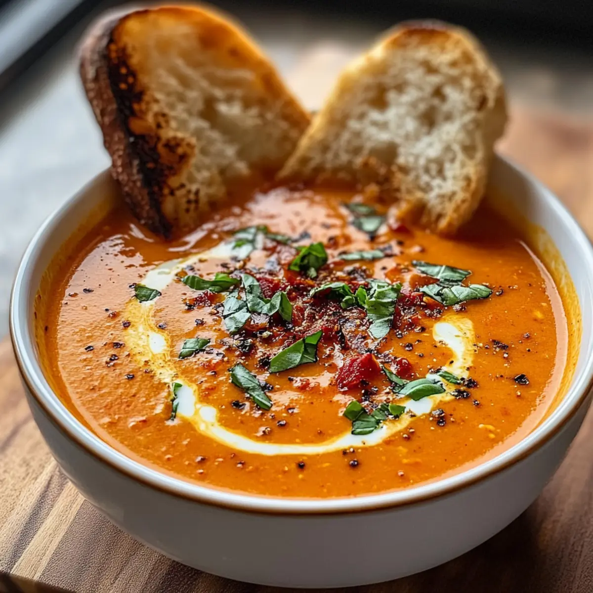 Eines kalten Abends, als die Luft frisch und klar war, nahm ich einen großen Topf und ließ ihn auf dem Herd köcheln. Der Duft von feuergerösteten Tomaten und aromatischem Knoblauch erfüllte schnell meine Küche und rief Erinnerungen an gemütliche Abende hervor. Unsere Rezeptur für feuergeröstete Tomatensuppe ist nicht nur ein einfacher Genuss – sie ist ein rundum bequemes Wohlfühlessen, das in weniger als 30 Minuten zubereitet werden kann. Mit ihrer samtigen Textur und dem verführerischen Geschmack ist diese Suppe perfekt für ein schnelles Abendessen, aber auch für Dinnerpartys geeignet. Plus, sie ist glutenfrei und kann leicht veganisiert werden – so passen alle mit in den kulinarischen Genuss! Wer könnte da schon widerstehen? Entdecken Sie meine Tipps und Variationen, und lassen Sie sich inspirieren, Ihre eigene köstliche Version dieses Klassikers zu kreieren! Warum Sie diese Suppe lieben werden Köstlicher Geschmack: Die feuergerösteten Tomaten verleihen der Suppe eine tiefgründige, rauchige Note, die für ein unvergleichliches Geschmackserlebnis sorgt. Schnell & Einfach: In weniger als 30 Minuten zubereitet, ist diese Suppe ideal für hektische Nächte, an denen Sie trotzdem ein herzhaftes Gericht genießen möchten. Vielfältige Variationen: Ob cremig, würzig oder low-carb, die Anpassungsmöglichkeiten lassen Ihrer Kreativität freien Lauf. Gemütlichkeit auf dem Teller: Diese Suppe ist das perfekte Wohlfühlessen, ideal für kalte Tage und gesellige Abende mit Freunden. Probieren Sie dazu auch eine Beilage wie gegrillten Käse oder einen frischen Salat – das sorgt für ein rundum gelungenes Meal! Feuergeröstete Tomatensuppe Zutaten Hinweis: Diese Zutaten ermöglichen es Ihnen, eine köstliche feuergeröstete Tomatensuppe zuzubereiten, die alle in Ihren Bann ziehen wird! Für die Basis • Olivenöl – sorgt für Geschmack und hilft, Zwiebeln und Knoblauch anzuschwitzen; verwenden Sie extra natives Öl für das beste Aroma. • Gelbe Zwiebel – bringt Süße und Tiefe in die Suppe; fein würfeln, damit sie gut in der Basis schmelzen. • Knoblauch – verstärkt das Aroma und den Geschmack; frischer Knoblauch ist für optimale Ergebnisse zu empfehlen. • Feuergeröstete gehackte Tomaten – bildet das Hauptgeschmackprofil mit rauchiger Note; alternativ können Sie normale Dosentomaten mit geräuchertem Paprika verwenden. • Tomatenmark – intensiviert den Tomatengeschmack und sorgt für eine tiefere Farbgebung. • Gemüse- oder Hühnerbrühe – bildet die flüssige Grundlage der Suppe; wählen Sie eine natriumarme Variante für besseren Salzgeschmack. Für die Würzung • Zucker oder Honig – balanciert die Säure der Tomaten; optional, je nach Vorliebe. • Salz & Pfeffer – unerlässlich zur Würze; nach Geschmack anpassen. • Geräuchertes Paprika – optional, fügt zusätzliche rauchige Geschmacksnuancen hinzu. • Getrockneter Basilikum & Oregano – sorgt für kräuterige Noten, die den Gesamtgeschmack verbessern. • Rote Paprikaflocken – optional für eine scharfe Note; nach Belieben dosieren. Für die cremige Note • Schlagsahne oder Kokosmilch – sorgt für ein cremiges Finish; die Kokosmilch ist eine großartige, milchfreie Option. Entdecken Sie die Magie dieser einfachen Zutaten und verwandeln Sie Ihr Dinner in ein unvergessliches Mahl! Schritt-für-Schritt-Anleitung für feuergeröstete Tomatensuppe Step 1: Aromaten anbraten Erhitzen Sie 2 Esslöffel Olivenöl in einem großen Topf bei mittlerer Hitze. Geben Sie die fein gewürfelte gelbe Zwiebel hinzu und sautieren Sie sie 5–6 Minuten lang, bis sie weich und glasig ist. Fügen Sie dann den gewürfelten Knoblauch hinzu und braten Sie ihn weitere 30 Sekunden an, bis er duftet, aber nicht braun wird. Step 2: Tomatenbasis aufbauen Rühren Sie 2 Esslöffel Tomatenmark in die Zwiebel-Knoblauch-Mischung ein und lassen Sie es etwa 1 Minute lang köcheln, um den Geschmack zu intensivieren. Geben Sie nun die feuergerösteten gehackten Tomaten und 4 Tassen Gemüse- oder Hühnerbrühe dazu. Rühren Sie alles gründlich um, bis sich die Zutaten gut vermischen. Step 3: Köcheln lassen Fügen Sie 1 Teelöffel Zucker oder Honig (optional) sowie Salz, Pfeffer, 1 Teelöffel geräuchertes Paprika und 1 Teelöffel getrockneten Basilikum hinzu. Lassen Sie die Mischung bei schwacher Hitze 15–20 Minuten ohne Deckel köcheln, damit sich die Aromen entfalten können und die Suppe leicht eindickt. Step 4: Suppe pürieren Nachdem die Suppe geköchelt hat, nehmen Sie den Topf vom Herd. Verwenden Sie einen Stabmixer, um die Suppe vorsichtig zu pürieren, bis sie eine glatte und cremige Konsistenz erreicht. Alternativ können Sie die Suppe in eine Küchenmaschine geben, aber achten Sie darauf, dies in kleinen Mengen zu tun. Step 5: Fertigstellen und servieren Stellen Sie den Topf erneut auf niedrige Hitze und rühren Sie 1/2 Tasse schwere Sahne oder Kokosmilch ein, falls gewünscht. Schmecken Sie die Suppe ab und passen Sie die Gewürze an. Garnieren Sie die feuergeröstete Tomatensuppe vor dem Servieren mit frischen Kräutern wie Basilikum oder Petersilie für einen zusätzlichen Farb- und Geschmackskick. Variationen & Alternativen Entdecken Sie, wie Sie die feuergeröstete Tomatensuppe ganz nach Ihrem Geschmack anpassen können – es gibt so viele Möglichkeiten! Cremige Variante: Erhöhen Sie die Menge an Sahne oder Kokosmilch für ein noch reichhaltigeres Aroma. Die zusätzliche Cremigkeit macht die Suppe besonders verführerisch. Würzige Note: Fügen Sie nach Belieben zerstoßene rote Paprikaflocken oder Cayennepfeffer hinzu, um Ihrer Suppe einen pikanten Kick zu verleihen. So wird das Geschmackserlebnis lebendiger. Low Carb/Keto: Ersetzen Sie die Brühe durch Hühnerbrühe und fügen Sie gebratene Zucchini statt Sahne hinzu. Dies ist eine köstliche Option, die auch Ernährungsbewusste begeistert. Geröstete Knoblauchversion: Integrieren Sie einige Zehen gerösteten Knoblauch für eine tiefere und