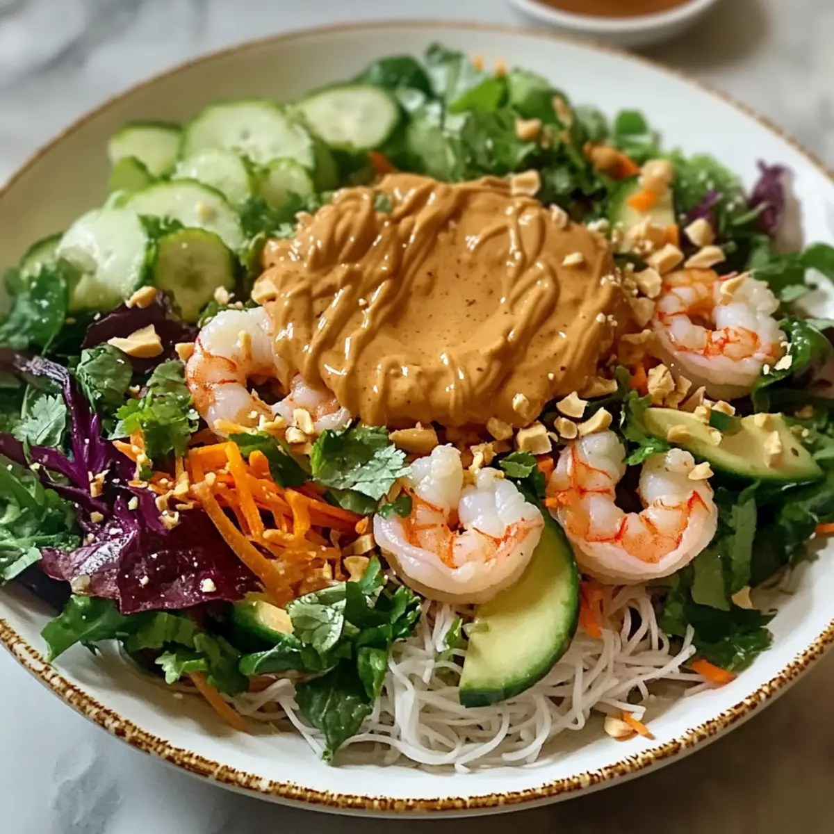 Ein erfrischender Frühlingsrollen-Salat mit Erdnusssauce vereint die Aromen und Texturen von traditionellen Frühlingsrollen in einer gesunden und köstlichen Variante.
