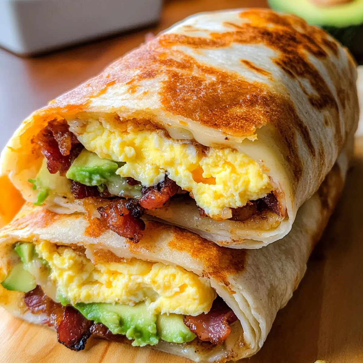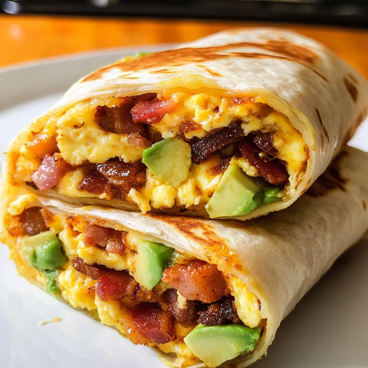 Als ich das erste Mal einen Frühstücks-Burrito probierte, war ich sofort begeistert von der Kombination aus knusprigen Hash Browns, cremigen Rührei und herzhaftem Speck – ein wahrer Genuss! Diese perfekt anpassbaren Frühstücks-Burritos sind nicht nur einfach zuzubereiten, sondern auch ideal für den hektischen Morgen oder sogar als Kater-Heilmittel, falls das einmal notwendig sein sollte. Ihre Flexibilität macht sie zum perfekten Gericht, ganz gleich, ob du sie nach deinem eigenen Geschmack oder deinen Ernährungsbedürfnissen variieren möchtest. Außerdem kannst du sie ganz einfach im Voraus zubereiten und einfrieren, sodass du immer ein köstliches Frühstück zur Hand hast. Neugierig, welche Füllungen du ausprobieren kannst? Lass uns gemeinsam in die Welt der Frühstücks-Burritos eintauchen! Warum wirst du Frühstücks-Burritos lieben? Vielfalt, die begeistert: Diese Frühstücks-Burritos sind anpassbar, sodass du sie ganz nach deinem Geschmack gestalten kannst – egal ob mit bacon, Gemüse oder veganen Optionen. Einfache Zubereitung: Alle Zutaten lassen sich schnell und unkompliziert zubereiten, perfekt für stressige Morgen! Vorratsfreundlich: Mach eine große Portion und friere die Burritos ein – die ideale Lösung für ein schnelles Frühstück! Köstlicher Genuss: Kombination aus knusprigen Hash Browns und cremigem Rührei garantiert ein Geschmackserlebnis, das jeder lieben wird. Gesund und lecker: Mit den richtigen Zutaten kannst du die Burritos nach deinen Ernährungsbedürfnissen gestalten – geh für proteinreich oder kohlenhydratarm! Probier auch andere Rezeptideen für Burritos, um noch mehr Abwechslung auf den Tisch zu bringen! Frühstücks-Burrito Zutaten • Diese köstlichen Frühstücks-Burritos sind nicht nur flexibel, sondern auch mit einfachen Zutaten zubereitet! Für die Füllung: Bacon – Fügt eine rauchige Würze hinzu; kannst du auch durch Putenbacon oder eine pflanzliche Alternative ersetzen. Gefrorene Hash Browns – Sorgt für die knusprige Textur; hausgemachte Hash Browns sorgen für einen frischeren Geschmack. Große Eier – Die Proteinbasis für eine fluffige Füllung; ersetzen durch Tofu für eine vegane Option ist möglich. Milch – Macht die Eier cremiger; jede Art von pflanzlicher Milch eignet sich. Ungesalzene Butter – Verhindert, dass die Eier anbrennen und fügt Geschmack hinzu, kann durch Olivenöl ersetzt werden. Koscheres Salz – Hebt den Geschmack hervor; verwende stattdessen Meersalz. Frisch gemahlener schwarzer Pfeffer – Fügt eine leichte Schärfe hinzu; weglassen, falls du empfindlich auf Gewürze reagierst. Für die Tortillas: Große Mehl-Tortillas – Halten die Füllungen zusammen; Vollkorn- oder Low-Carb-Tortillas sind ebenfalls möglich. Geriebener Cheddar – Sorgt für eine cremige Konsistenz; verwende pflanzlichen Käse für eine milchfreie Variante. Für das Topping: Reife Avocado – Fügt Cremigkeit und Nährstoffe hinzu; kann durch Salsa ersetzt werden, wenn du Avocados vermeidest. Hot Sauce – Sorgt für eine scharfe Note; jede bevorzugte Hot Sauce oder Salsa passt gut dazu. Schritt-für-Schritt-Anleitung für Frühstücks-Burritos Schritt 1: Bacon braten Erhitze eine Pfanne bei mittlerer Hitze und lege die Baconscheiben hinein. Brate sie etwa 5–7 Minuten, bis sie knusprig und goldbraun sind. Lasse den gebratenen Bacon auf einem Küchentuch abtropfen, um überschüssiges Fett zu entfernen, bevor du ihn in kleine Stücke schneidest. Schritt 2: Hash Browns anbraten Verwende die Pfanne mit dem übrig gebliebenen Baconfett, um die gefrorenen Hash Browns zuzubereiten. Brate sie bei mittlerer Hitze für ca. 5–8 Minuten, bis sie goldbraun und knusprig sind. Rühre gelegentlich um, damit sie gleichmäßig bräunen, und halte sie nach dem Garen warm. Schritt 3: Eier verquirlen In einer Schüssel die Eier mit der Milch gut vermengen. Erhitze eine saubere Pfanne bei niedriger Temperatur und füge die Butter hinzu. Gieße die Eiermasse hinein und rühre vorsichtig für etwa 3–4 Minuten, bis die Eier beginnen, weich zu gerinnen. Würze mit Salz und Pfeffer nach Geschmack, um dein Frühstücks-Burrito zu verfeinern. Schritt 4: Burritos zusammenstellen Lege eine warme Mehl-Tortilla auf eine flache Oberfläche. Beginne mit einer Schicht knuspriger Hash Browns, gefolgt von den fluffigen Rühreiern, dem zerbröselten Bacon und einigen Avocadoscheiben. Achte darauf, die Zutaten gleichmäßig zu verteilen, bevor du die Tortilla fest zusammenrollst. Schritt 5: Heiß servieren Schneide die fertigen Frühstücks-Burritos in der Mitte durch und serviere sie heiß, idealerweise mit deiner Lieblings-Hot Sauce oder Salsa. Diese herzhaften Frühstücks-Burritos sorgen für einen energiereichen Start in den Tag und lassen sich mühelos anpassen! Frühstücks-Burrito Variationen zum Ausprobieren Lass deiner Kreativität freien Lauf und entdecke, wie du dieses Rezept ganz nach deinem Geschmack anpassen kannst! Vegetarisch: Ersetze den Bacon durch sautiertes Gemüse oder eine vegane Wurst für eine grüne Variante. Schärfer: Füge frische Jalapeños oder Chilis in die Füllung für einen heißen Kick hinzu. Das macht jeden Bissen aufregend! Low-Carb: Nutze große Romaine-Salate, um die Burritos zu wickeln. So wird es leicht und frisch! Käse-Alternative: Verwende einen würzigen veganen Käse für eine milchfreie Option, ohne dabei auf Cremigkeit zu verzichten. Leicht zugänglich: Setze auf Süßkartoffeln statt Hash Browns, um einen süßeren Geschmack und eine nahrhafte Speise zu erhalten. Extra Würze: Integriere eine Chipotle-Sauce in die Eiermischung für eine rauchige Note – perfekt für Geschmacksliebhaber. Süßes Frühstück: Probiere anstelle von herzhaften Zutaten eine Mischung aus Rührei, Zimt, Äpfeln und einem Hauch Honig aus. Schnelle Snack-Variante: Halbiere die Burritos in kleinere Portionen und genieße sie als Snack für unterwegs – ideal für vielbeschäftigte Morgen! Du kannst auch andere erstaunliche B