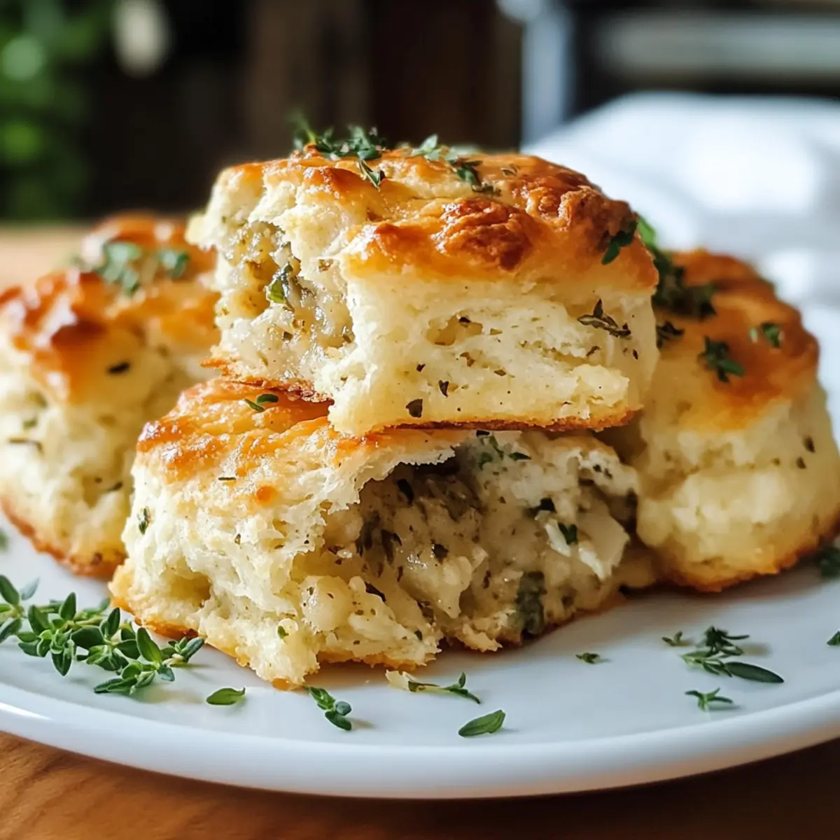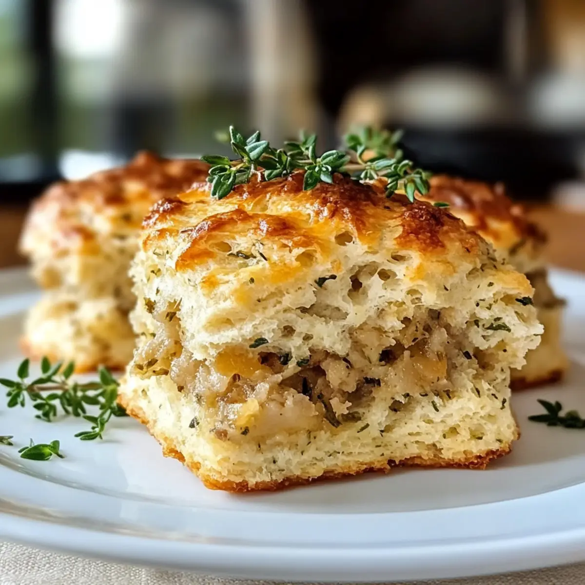 Ein unwiderstehlicher Duft zieht durch die Küche, während ich die ersten Füllungsbrötchen aus dem Ofen hole. Diese kleinen Wunder sind nicht nur unglaublich fluffig, sondern tragen auch das köstliche Aroma von traditionellem Füllungsmix in sich – eine wahre Umarmung für die Sinne, die jeden Tisch in eine Oase des Genusses verwandelt. Mit Füllungsbrötchen bringst du den Komfort der Feiertage ganz einfach in deinen Alltag, egal ob als herzhaften Snack, zur Suppe oder beim nächsten Festmahl. Die Zubereitung ist denkbar einfach und sie lassen sich auch glutenfrei zubereiten, was sie zu einem perfekten Genuss für alle macht. Wer kann da schon widerstehen? Bist du bereit, diese Geschmacksexplosion in deiner Küche auszuprobieren? Warum sind Füllungsbrötchen so besonders? Einfachheit: Diese Füllungsbrötchen sind kinderleicht zuzubereiten und erfordern nur grundlegende Kochkünste. Wer schnell etwas Leckeres auf den Tisch bringen möchte, liegt hier goldrichtig. Wunderbarer Geschmack: Die Kombination aus fluffigem Teig und aromatischem Füllungsmix sorgt für einen Geschmacksrausch, der selbst die anspruchsvollsten Gaumen überzeugt. Vielseitigkeit: Ob als Snack, zu einer herzhaften Suppe oder als Beilage zu einem Festessen – diese Brötchen passen einfach immer! Gesunde Anpassung: Für eine glutenfreie Variante einfach eine glutenfreie Mehlmischung verwenden – so kann jeder genießen. Wenn du mehr über glutenfreie Alternativen erfahren möchtest, schau dir unsere glutenfreien Rezepte an. Zukunftsweisend: Du kannst Füllungsbrötchen mit deiner eigenen Füllung oder Käse verfeinern und so immer wieder neue Geschmackserlebnisse kreieren! Diese Brötchen sind die perfekte Ergänzung für dein Repertoire an herzhaften Snacks. Füllungsbrötchen Zutaten • Für die Brötchen: Allzweckmehl – Sorgt für Struktur und Fluffigkeit. Für eine glutenfreie Option kann eine 1:1 glutenfreie Mehlmischung verwendet werden, die Textur kann jedoch variieren. Kaltes ungesalzenes Butter – Essenziell für die Bildung von schichtigen Brötchen. Kann durch kalte pflanzliche Margarine ersetzt werden, obwohl Butter den Geschmack verbessert. Milch – Fügt Feuchtigkeit hinzu; Buttermilch sorgt für einen leichten Geschmack und Auftrieb. Für eine laktosefreie Variante kann Mandel- oder Hafermilch mit Zitronensaft verwendet werden. Füllungsmix – Bringt Geschmack und Textur; Fertigprodukte sind praktisch, aber selbstgemachte Füllung ermöglicht mehr Kontrolle über die Gewürze. Stelle sicher, dass sie trocken und zerbröselt ist, um eine gleichmäßige Verarbeitung zu gewährleisten. Getrockneter Salbei und Thymian – Verleihen den klassischen Füllungsaromen; können durch frische Kräuter ersetzt werden (verwende dreimal so viel frische Kräuter). Frisch gehackte Petersilie – Fügt der Füllung Frische hinzu. Diese köstlichen Füllungsbrötchen sind nicht nur eine Freude für den Gaumen, sondern auch eine perfekte Möglichkeit, den Komfort der Feiertage in deine Küche zu bringen! Step-by-Step Instructions für Füllungsbrötchen Step 1: Ofen vorheizen Heize deinen Ofen auf 220 °C vor und lege ein Backblech mit Backpapier aus. Dies sorgt dafür, dass die Füllungsbrötchen gleichmäßig garen und nichts anklebt. Achte darauf, dass der Ofen die richtige Temperatur erreicht, bevor du mit dem nächsten Schritt fortfährst. Ein vorgeheizter Ofen ist entscheidend für die perfekte Konsistenz der Brötchen. Step 2: Trockene Zutaten vermengen In einer großen Schüssel vermengst du das Allzweckmehl, das Backpulver, das Salz, das Knoblauchpulver, das Zwiebelpulver, den getrockneten Salbei, den Thymian und den Pfeffer gründlich. Verwende einen Schneebesen, um sicherzustellen, dass alle Zutaten gut verteilt sind. Diese Mischung legt die Grundlage für die aromatischen Füllungsbrötchen, die du gleich zubereiten wirst. Step 3: Butter einarbeiten Zerschneide die kalte Butter in kleine Stücke und füge sie zu der trockenen Mischung hinzu. Vermische alles vorsichtig mit einem Teigmischer oder deinen Fingerspitzen, bis die Mischung groben Krümeln ähnelt, die etwa die Größe von Erbsen haben. Das rasche Einarbeiten der Butter ist wichtig, um die fluffigen Schichten in deinen Füllungsbrötchen zu erzielen. Step 4: Füllung und Milch hinzufügen Füge nun den zerbröselten Füllungsmix und die frisch gehackte Petersilie zu der Mehlmischung hinzu. Rühre alles sanft um, bevor du langsam die Milch hinzugibst und weiter vermischst, bis der Teig zusammenkommt. Der Teig kann leicht klebrig sein, und diese Mischung ist der Schlüssel zur herzhaften Füllung deiner Füllungsbrötchen. Step 5: Teig ausrollen und ausstechen Streue etwas Mehl auf eine saubere Arbeitsfläche und gib den Teig darauf. Drücke ihn vorsichtig zu einer etwa 2,5 cm dicken Scheibe und benutze einen runden Ausstecher, um die Brötchen auszustechen. Stelle sicher, dass die Ränder gut definiert sind, damit deine Füllungsbrötchen beim Backen schön aufgehen. Step 6: Brötchen vorbereiten Lade die ausgstichenen Füllungsbrötchen auf das vorbereitete Backblech. Bestreiche die Oberseite mit geschmolzener Butter für zusätzlichen Glanz und Geschmack. Falls gewünscht, kannst du auch geriebenen Käse darüber streuen, um einen köstlichen, schmelzenden Belag zu erzeugen, der deine Brötchen weiter verfeinert. Step 7: Backen Backe die Füllungsbrötchen im vorgeheizten Ofen für etwa 12-15 Minuten, bis sie goldbraun und auf der Oberseite gut gebräunt sind. Achte darauf, dass sie leicht auf dem Blech aufgehen. Wenn sie schön duften und goldig werden, sind sie bereit, aus dem Ofen genommen zu werden. Step 8: Abkühlen lassen und servieren Nimm die Füllungsbrötchen vorsichtig aus dem Ofen und lasse sie einige Minuten abkühlen. Diese kurze Ruhezeit verbessert die Textur und den Geschmack. Serviere die Füllungsbrötchen warm und genieße sie als perfekten Snack oder Beilage zu deiner nächsten Mahlzeit! Expert Tips für Füllungsbr