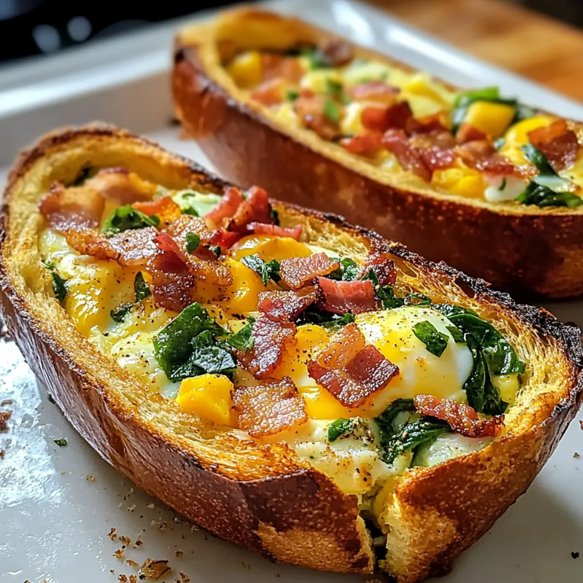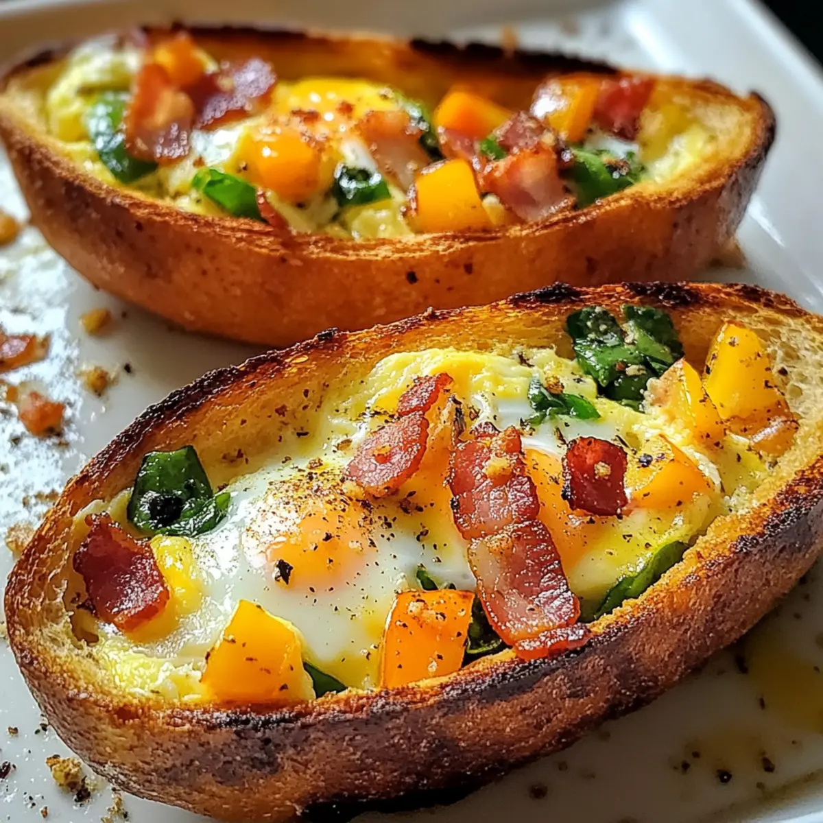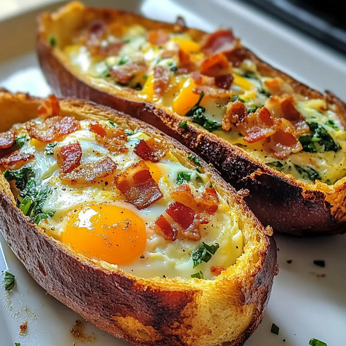 Jeden Sonntagmorgen versammeln sich meine Lieben in der Küche und der verführerische Duft frisch gebackenen Brotes erfüllt den Raum. Heute dreht sich alles um gebackene Eierboote – ein herzhaftes Frühstück, das sowohl die Augen als auch den Magen erfreut. Diese köstliche, porkfreie Variante kommt mit magerem Truthahn-Speck, frischem Spinat und süßen Paprika, und ist die perfekte Lösung für alle, die sich nach einem schnellem, aber beeindruckenden Gericht sehnen. Einfach zuzubereiten, bieten diese Eierboote nicht nur einen gesunden Start in den Tag, sondern sind auch ideal für gesellige Brunchs mit Freunden oder Familie. Hast du auch schon Lust bekommen, dein eigenes Meisterwerk zu kreieren? Warum wirst du diese Eierboote lieben? Einfachheit: Diese gebackenen Eierboote sind kinderleicht zuzubereiten, sodass auch Kochanfänger sie problemlos meistern können. Herzhaft und nahrhaft: Die Kombination aus Truthahnspeck, Spinat und Paprika sorgt für eine nahrhafte Mahlzeit, die den Tag perfekt beginnt. Vielseitig: Du kannst die Zutaten nach deinem Geschmack anpassen – probiere andere Gemüsesorten oder Käse für eine persönliche Note! Ideal für Brunch: Diese köstlichen Eierboote sind nicht nur sättigend, sondern auch ein echter Hingucker auf jedem Brunch-Tisch. Garniere sie mit frischen Kräutern und serviere sie gemeinsam mit einem leichten Salat oder einer frischen Obstschale für ein komplettes Erlebnis. Schnelligkeit: In nur 30 Minuten kannst du die Eierboote zubereiten und backen, perfekt für hektische Morgen! Zutaten für gebackene Eierboote • Die perfekten Zutaten für ein köstliches Frühstück! Für das Brot Stabiles Brot – Verwende ein französisches Baguette oder Ciabatta, um die Füllung optimal zu halten. Für die Füllung Truthahnspeck – Sorgt für den herzhaften Geschmack ohne Schweinefleisch. Du kannst auch pflanzliche Alternativen ausprobieren. Spinat – Bringt Frische und Nährstoffe. Alternativ kannst du auch Grünkohl oder Mangold verwenden. Paprika – Fügt Süße und Farbe hinzu. Jedes Paprikastoß funktioniert; geröstete Paprika sind eine aromatische Option. Für die Eimischung Eier – Der proteinreiche Kern des Gerichts. Für eine leichtere Version kannst du auch nur Eiweiße verwenden. Milch/Sahne – Erhöht die Cremigkeit der Eiermischung. Mandelmilch ist eine gute Pflanzenalternative oder du kannst sie weglassen. Für den Belag Käse – Sorgt für eine cremige Textur. Probiere Mozzarella, Cheddar oder eine milchfreie Variante. Diese gebackenen Eierboote sind eine großartige Möglichkeit, ein herzhaftes, schnelles Frühstück zu genießen, das deinen Tag aufhellt! Schritt-für-Schritt-Anleitung für gebackene Eierboote mit Truthahnspeck und Gemüse Step 1: Brot vorbereiten Schneide das stabile Brot der Länge nach auf und höhle die Innenseite vorsichtig aus, um eine robuste Schale zu erhalten. Achte darauf, nicht zu viel Brot zu entfernen, damit die Füllung gut hält. Heize deinen Ofen auf 190°C vor, während du die Brotboote zubereitest. Step 2: Füllung garen Brate den Truthahnspeck in einer Pfanne bei mittlerer Hitze, bis er knusprig ist. Füge dann den frischen Spinat und die gewürfelten Paprika hinzu und brate sie für etwa 3-4 Minuten, bis sie weich sind und der Spinat zusammengefallen ist. Stelle die Pfanne vom Herd und lasse die Füllung etwas abkühlen. Step 3: Eier mischen Verquirle in einer Schüssel die Eier mit einem Schuss Milch oder Sahne und würze die Mischung nach Geschmack mit Salz und Pfeffer. Achte darauf, die Eier gründlich zu verquirlen, damit sie schön homogen werden. Diese Mischung ist die Basis für deine gebackenen Eierboote. Step 4: Zusammenstellen Fülle die ausgehöhlten Brote zuerst mit der warmen Füllung aus Truthahnspeck, Spinat und Paprika. Gieße dann die Eimischung gleichmäßig über die Füllung, sodass alles gut durchtränkt ist. Streue zum Schluss geriebenen Käse über die Oberfläche der gefüllten Brotboote. Step 5: Backen Platziere die gefüllten Eierboote auf ein mit Backpapier ausgelegtes Backblech und schiebe es in den vorgeheizten Ofen. Backe die Eierboote für etwa 20-25 Minuten, bis die Eier fest und die Brote goldbraun und knusprig sind. Achte darauf, dass die Eier nicht überbacken werden, um eine gummiartige Konsistenz zu vermeiden. Step 6: Servieren Lasse die gebackenen Eierboote kurz abkühlen, bevor du sie in der Mitte durchschneidest oder ganz servierst. Sie sind ideal für ein geselliges Frühstück oder einen Brunch und können wahlweise mit frischen Kräutern garniert werden. Genieße dieses herzhaft leckere Gericht mit einer Seite von frischem Obst oder einem leichten Salat. Expertentipps für gebackene Eierboote Hollow out correctly: Stelle sicher, dass du das Brot gründlich aushöhlst, damit genug Platz für die Füllung ist, ohne dass etwas überläuft. Don’t overcook filling: Vermeide es, die Füllung zu lange zu garen; sie sollte leicht unterkocht sein, da sie im Ofen weiter gart. Watch baking time: Achte auf die Backzeit; die Eier sollten fest sein, aber nicht überbacken werden, um eine gummiartige Textur zu vermeiden. Customize filling: Experimentiere mit verschiedenen Gemüse- oder Käsesorten, um deine gebackenen Eierboote an deinen Geschmack anzupassen. Use fresh ingredients: Frische Zutaten bringen mehr Geschmack und Nährstoffe – wähle frisches Gemüse für die beste Qualität! Aufbewahrungstipps für gebackene Eierboote Kühlschrank: Bewahre übrig gebliebene gebackene Eierboote in einem luftdichten Behälter im Kühlschrank auf, wo sie bis zu 2 Tage haltbar sind. Frost: Wenn du sie länger aufbewahren möchtest, kannst du die gefüllten Brotboote unbekocht einfrieren. Wickele sie gut in Folie ein und lege sie in einen Gefrierbeutel für bis zu 3 Monate. Auftauen: Zum Auftauen lasse die Eierboote über Nacht im Kühlschrank oder erwärme sie direkt aus dem Gefrierschrank bei 180°C im Ofen, bis sie durchgeheizt sind. Wiederehitzen: Um die beste Te