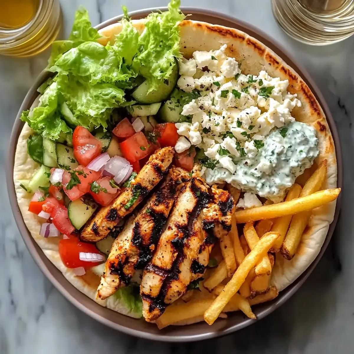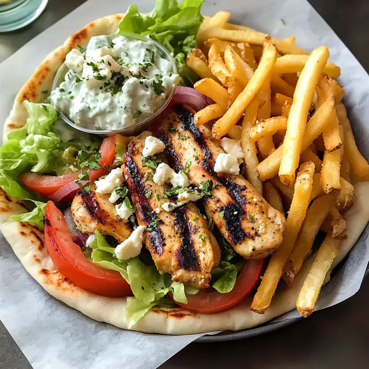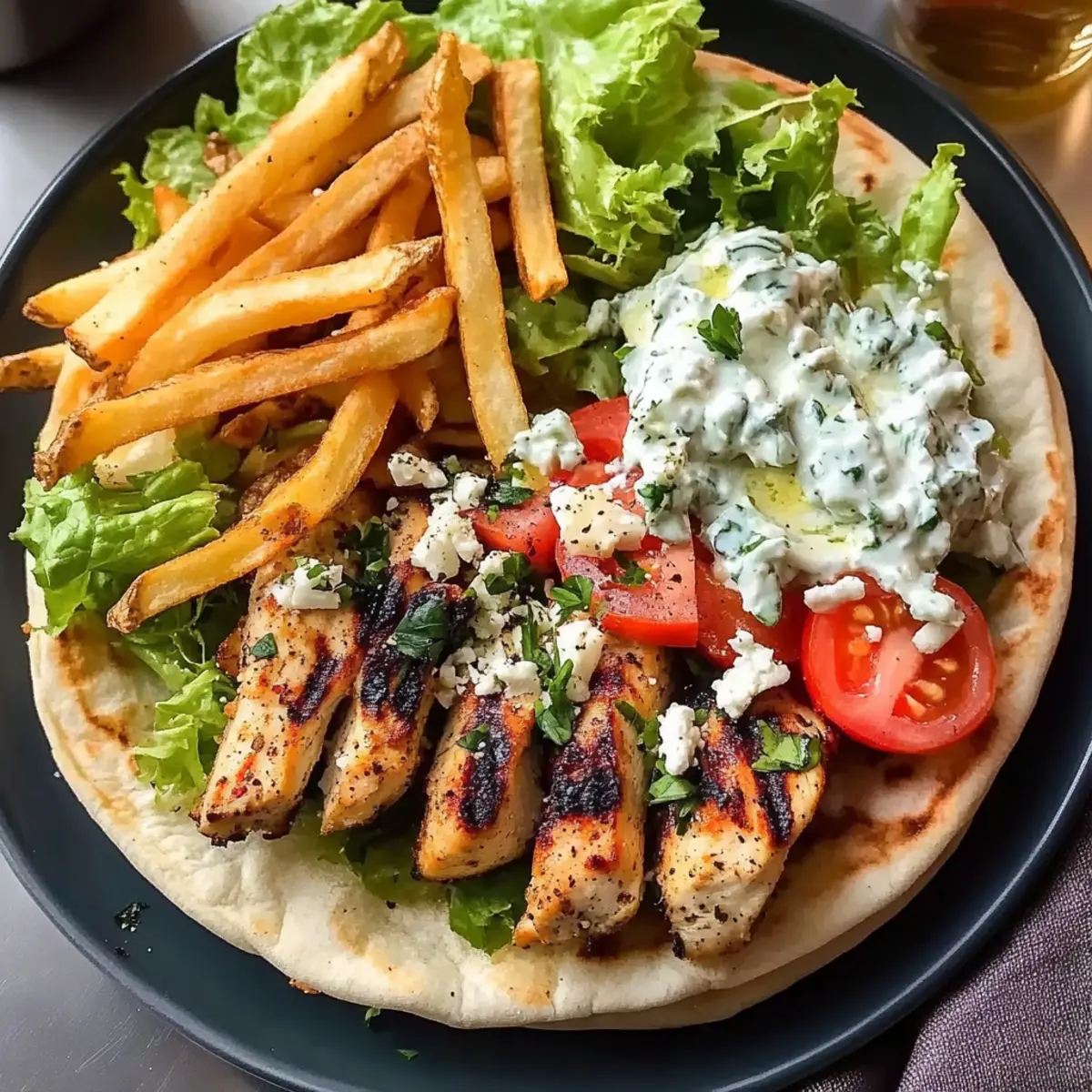 Gerade als ich letzte Woche beim Grillen stand und die geheime Zutat entdeckte, die meine Kochkünste revolutionieren sollte, kam mir der Gedanke: Nichts schlägt die Zartheit und den Geschmack von gegrillten Hähnchen-Gyros! Diese köstlichen, mediterranen Leckerbissen sind nicht nur schnell zubereitet, sondern auch eine tolle Möglichkeit, ein familiäres Essen zusammenzustellen. Mit saftigen, marinierten Hähnchenspießen, die in warmen Pita-Brötchen serviert werden, und der perfekten Beilage knuspriger Pommes und erfrischendem Tzatziki, sorgt dieses Rezept für ein entspannendes, aber aufregendes Abendessen. Wer kann schon zu einer individuell anpassbaren Mahlzeit Nein sagen, die alle am Tisch begeistert? Bereit, die Aromen der griechischen Küche zu erleben? Warum sind diese Gegrillten Hähnchen-Gyros so besonders? Lust auf ein unvergleichliches Geschmackserlebnis? Diese Gegrillten Hähnchen-Gyros sind nicht nur einfach zuzubereiten, sondern unglaublich vielseitig. Einfache Zubereitung: Mit nur wenigen Zutaten können Sie ein beeindruckendes Gericht kreieren. Familienfreundlich: Jeder kann seine eigene Pita nach Belieben befüllen – ideal für die ganze Familie! Frische Zutaten: Der frische Tzatziki und die knackigen Gemüse sorgen für einen gesunden Genuss. Perfekte Konsistenz: Saftiges, gegrilltes Hähnchen kombiniert mit knusprigen Pommes: ein Fest für die Sinne! Servieren Sie dazu einen griechischen Salat für eine noch rundere Mahlzeit oder verwenden Sie die Reste für eine schnelle Mahlzeit unter der Woche! Gegrillte Hähnchen-Gyros Zutaten Für die Hähnchenspiße • Hähnchenbrust – sorgt für saftige Proteine; marinieren Sie sie für zusätzlichen Geschmack. • Olivenöl – für die Marinade und zum Grillen; extra vergine verstärkt das Aroma. • Zitronensaft – bringt Frische und hilft, das Hähnchen zart zu halten. • Knoblauchpulver – fügt einen intensiven Geschmack hinzu; frischer Knoblauch ist auch möglich. • Mediterane Oregano – für den typischen mediterranen Geschmack; perfekt zu Hähnchen! • Salz und Pfeffer – unerlässlich zum Würzen; nach Geschmack anpassen. Für die Pitas • Pita-Brot – weich und flexibel; wird am besten leicht erwärmt, damit es nicht bricht. Für den Tzatziki • Joghurt – Basis des Tzatziki; griechischer Joghurt verleiht Cremigkeit. • Gurke – sorgt für Frische und einen knackigen Biss; gut abtropfen, damit die Sauce nicht wässrig wird. • Knoblauch – für zusätzlichen Geschmack; die Menge kann je nach Vorliebe angepasst werden. • Zitronensaft – verstärkt die Frische des Tzatzikis; nicht zu viel hinzufügen, um die Cremigkeit zu wahren. • Frische Minze oder Dill – für ein aromatisches und erfrischendes Finish. Für die Beilage • Pommes (frisch oder gefroren) – sorgt für einen knusprigen Crunch; in Stäbchen schneiden für optimalen Biss. • Rote Zwiebel – verleiht Schärfe und Knackigkeit; kann durch Frühlingszwiebeln ersetzt werden. • Plum Tomaten – für Saftigkeit und Frische; Kirschtomaten sind eine gute Alternative. • Römersalat – bringt knackige Frische; andere Kopfsalatsorten sind ebenfalls geeignet. • Feta-Käse – für salzige und cremige Akzente; Ricotta kann als sanftere Option verwendet werden. Entdecken Sie, wie köstlich gegrillte Hähnchen-Gyros sein können – eine liebevoll zubereitete Mahlzeit, die nicht nur sättigt, sondern auch das Herz der Familie erwärmt! Schritt-für-Schritt-Anleitung für Gegrillte Hähnchen-Gyros Step 1: Zutaten vorbereiten Zuerst alle frischen Zutaten bereitstellen. Schneiden Sie die rote Zwiebel in dünne Ringe, würfeln Sie die Plommentomaten und zerkleinern Sie den Römersalat. Hacken Sie die frische Petersilie fein. Achten Sie darauf, dass alles gut vorbereitet ist, um die Zubereitung der Gegrillten Hähnchen-Gyros schnell und reibungslos zu gestalten. Step 2: Pommes zubereiten Erhitzen Sie das Olivenöl in einer großen Pfanne bei mittlerer bis hoher Hitze. Geben Sie die frisch geschnittenen oder gefrorenen Pommes in die Pfanne und braten Sie sie 8 bis 12 Minuten lang, bis sie goldbraun sind. In der letzten Minute fügen Sie das Knoblauchpulver, den Oregano, das Paprikapulver, Salz und Pfeffer hinzu, um den Pommes Geschmack zu verleihen. Step 3: Pitas erwärmen In einer trockenen Pfanne erwärmen Sie die Pitas für etwa 30 Sekunden auf jeder Seite, bis sie weich und warm sind. Halten Sie die Pitas anschließend in einem sauberen Küchentuch bedeckt, damit sie nicht austrocknen. Dies sorgt dafür, dass die Pitas beim Füllen der Gegrillten Hähnchen-Gyros flexibel und angenehm zu verarbeiten sind. Step 4: Hähnchen grillen Heizen Sie den Grill auf mittlere bis hohe Hitze vor. Grillen Sie die marinierten Hähnchenspieße für 8 bis 10 Minuten, bis sie von außen charred und innen saftig sind. Wenden Sie die Spieße einmal während des Grillens. Lassen Sie das Hähnchen nach dem Grillen kurz ruhen, bevor Sie es in Stücke schneiden, um den Saft für die Gegrillten Hähnchen-Gyros zu bewahren. Step 5: Gyros zusammenstellen Auf einem warmen Pita verteilen Sie eine großzügige Schicht Tzatziki und fügen Sie dann die knusprigen Pommes, das gegrillte Hähnchen, Römersalat, Tomaten, Zwiebeln und zerbröckelten Feta hinzu. Bestreuen Sie alles mit der gehackten Petersilie, bevor Sie das Pita zusammenfalten und die Gegrillten Hähnchen-Gyros warm servieren. Genießen Sie diese köstliche, individuell anpassbare Mahlzeit! Was passt zu Gegrillten Hähnchen-Gyros? Gerade wenn Sie die köstlichen Aromen von Gegrillten Hähnchen-Gyros genießen, möchten Sie sicherlich das perfekte ergänzende Gericht dazu finden. Frische Griechische Salat: Dieser knackige Salat aus Gurken, Tomaten und Feta fügt eine prickelnde Frische hinzu, die die Aromen der Gyros ergänzt. Das perfekte Finish für jede Mahlzeit! Hausgemachte Pommes: Knusprige Pommes sind eine großartige Beilage, die einen herzhaften Crunch bietet. Versuchen Sie, sie frisch zuzubere