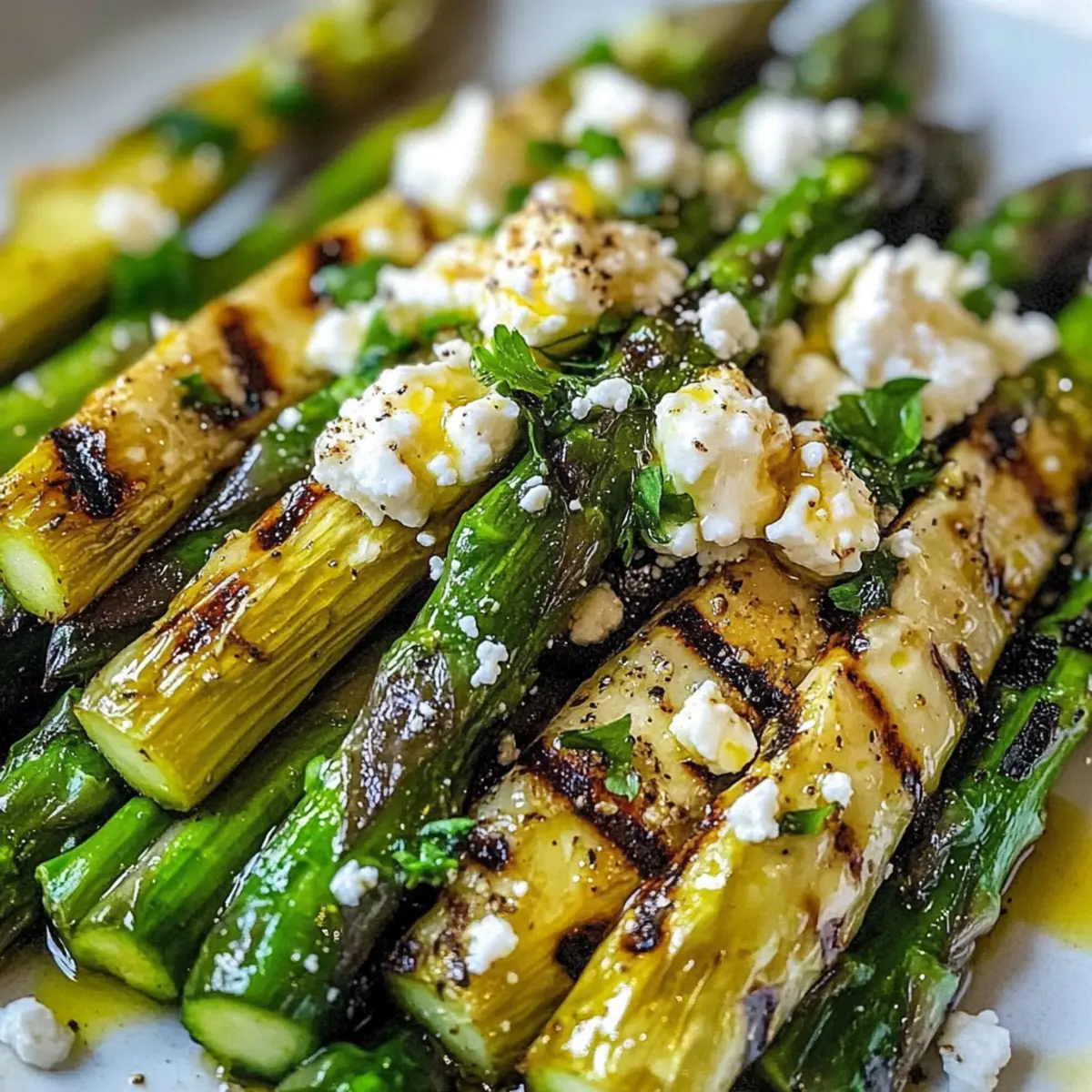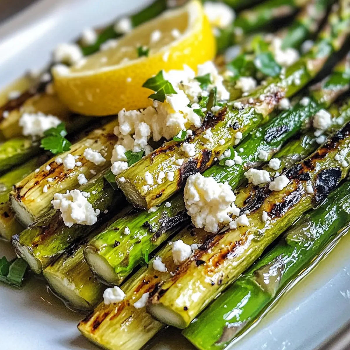 Genießen Sie diesen gegrillten Spargel mit Zitrone und Feta, der Ihren Gaumen verwöhnen und Ihre Gäste begeistern wird!