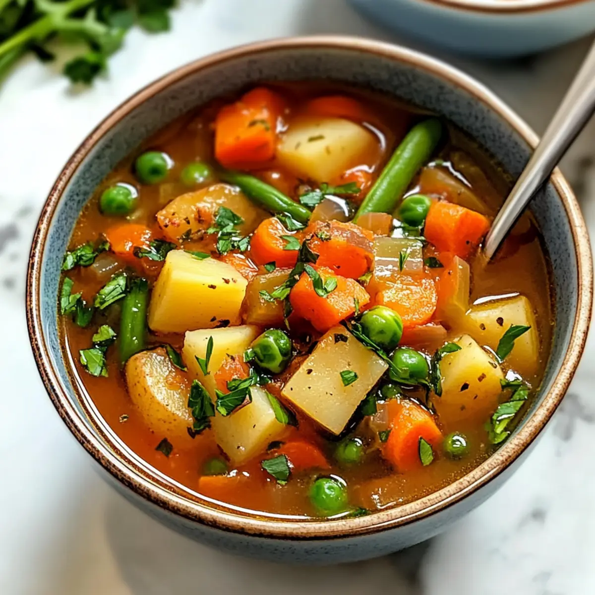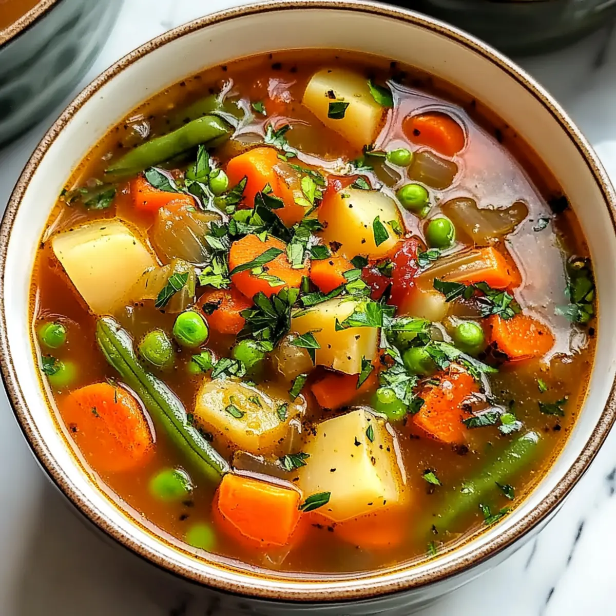 Kürzlich, während ich in meinem Garten nach frischen Zutaten suchte, kam mir die Idee für eine köstliche Gemüsesuppe. Diese einfache Gemüsesuppe ist nicht nur eine wahre Freude für den Gaumen, sondern bietet auch unzählige Vorteile für Ihre Gesundheit und Ihr Wohlbefinden. Mit einer bunten Mischung aus aromatischen Gemüse und einem Hauch von frischem Zitronensaft wird jede Schüssel zu einer kleinen Umarmung für die Seele. Egal ob für ein schnelles Mittagessen oder als Herzstück bei einem gemütlichen Abendessen, diese vegane und glutenfreie Suppe ist in kürzester Zeit zubereitet und lässt sich ganz nach Belieben mit frischen oder tiefgefrorenen Gemüsesorten anpassen. Sind Sie bereit, sich in einen köstlichen Topf voller Glückseligkeit zu vertiefen? Warum ist diese Gemüsesuppe so besonders? Einfachheit, die überzeugt: Die Zubereitung dieser Gemüsesuppe benötigt nur grundlegende Kochkenntnisse und wenig Zeit. Vielseitigkeit: Passen Sie die Suppe einfach an Ihre Vorräte an – verwenden Sie frisches oder gefrorenes Gemüse, das Sie lieben. Wohltuende Aromen: Eine harmonische Mischung aus aromatischen Gewürzen und frisch gepresstem Zitronensaft bringt jeden Bissen zum Leben. Gesund und nahrhaft: Diese Suppe ist eine hervorragende Quelle für Vitamine und Mineralien, ideal für eine gesunde Ernährung. Bequem und köstlich: Ob für ein schnelles Mittagessen oder als herzhaftes Abendessen, die Gemüsesuppe passt immer. Probieren Sie sie mit einem Stück knusprigem Brot! Gemüsesuppe Zutaten • Entdecken Sie die köstlichen Zutaten für Ihre selbstgemachte Gemüsesuppe. Für die Basis Extravirgin Olivenöl – Gibt gesunde Fette und ist die perfekte Basis zum Sautieren. Zwiebel – Fügt Süße und Tiefe hinzu; kann durch Schalotten oder Lauch ersetzt werden. Karotten – Trägt zur Süße und Farbe bei; verwenden Sie frische oder tiefgefrorene. Sellerie – Verleiht dem Mirepoix aromatischen Geschmack; kann durch Fenchel ersetzt werden. Knoblauch – Infundiert die Suppe mit herzhaftem Aroma; verwenden Sie frischen oder getrockneten Knoblauch als Alternative. Für den Geschmack Italienische Gewürzmischung – Eine Kräuterkombination, um den Geschmack zu verstärken; frische Kräuter bringen mehr Lebendigkeit. Küchensalz – Wichtig für die Geschmacksverstärkung; nach diätetischen Bedürfnissen anpassen. Schwarzer Pfeffer – Fügt eine Prise Würze hinzu; die Menge je nach Vorliebe anpassen. Für den Gemüseanteil Yukon Gold Kartoffeln – Sorgt für Herzhaftigkeit und Cremigkeit, wenn sie gekocht sind; Süßkartoffeln können alterniert werden. Grüne Bohnen – Fügen Crunch und Farbe hinzu; frisch oder gefroren ist beides geeignet. Tomatenwürfel – Bringen Säure und Tiefe in die Suppe; können aus der Dose oder frisch verwendet werden. Lorbeerblätter – Verleihen ein dezentes erdiges Aroma; vor dem Servieren entfernen. Gemüsebrühe – Die Basis für die Suppe; verwenden Sie natriumarme für eine gesündere Option. Für die Extras Tiefgefrorener Mais – Fügt Süße und Textur hinzu; kann durch anderes Tiefkühlgemüse ersetzt werden. Erbsen – Sorgt für Frische und zarte Bissen; Edamame ist eine gute Alternative. Zitronensaft – Bringt frische und verstärkt den Geschmack; kann auch durch Limettensaft ersetzt werden. Frische Petersilie – Verleiht der Suppe eine frische, kräuterige Note; Koriander ist ein wunderbarer Ersatz. Genießen Sie das Kochen Ihrer köstlichen Gemüsesuppe und lassen Sie sich von den Aromen verführen! Schritt-für-Schritt-Anleitung für die Gemüsesuppe Step 1: Gemüse anbraten Erhitzen Sie in einem großen Topf bei mittelhoher Hitze das extravirgine Olivenöl. Fügen Sie die Zwiebel, Karotten und Sellerie hinzu und sautieren Sie diese für 4-5 Minuten, bis sie weich sind. Geben Sie den Knoblauch, die italienische Gewürzmischung, Salz und Pfeffer hinzu und braten Sie alles für weitere 30 Sekunden an, bis die Aromen freigesetzt werden. Step 2: Hauptgemüse hinzufügen Mischen Sie nun die Yukon Gold Kartoffeln, grünen Bohnen, Tomatenwürfel und Lorbeerblätter mit dem angebratenen Gemüse im Topf. Gießen Sie die Gemüsebrühe dazu und bringen Sie alles zum Kochen. Senken Sie dann die Hitze, decken Sie den Topf ab und lassen Sie die Suppe 20 Minuten lang köcheln, bis die Kartoffeln weich und mit einer Gabel durchstechbar sind. Step 3: Tiefkühlgemüse einrühren Fügen Sie die tiefgefrorenen Maiskörner und Erbsen zur Gemüsesuppe hinzu. Kochen Sie die Mischung für zusätzliche 5-7 Minuten, bis das Gemüse heiß ist und die Farbe lebhaft bleibt. Rühren Sie gut um, damit sich die Aromen gleichmäßig verteilen und die Suppe eine einladende Konsistenz erreicht. Step 4: Servieren Nun ist es Zeit, die Suppe abzuschmecken! Nehmen Sie den Topf vom Herd und mischen Sie den frischen Zitronensaft sowie die gehackte Petersilie unter die Gemüsesuppe. Diese letzte Berührung bringt Frische in jedem Löffel. Lautieren Sie die Gemüsesuppe in Schalen und genießen Sie die wohltuende Aromenvielfalt, die jedes Gemüse in dieser herzhaften Kreation bietet. Was passt zur Gemüsesuppe? Genießen Sie die köstliche Gemüsesuppe mit einer Auswahl an Beilagen, die sowohl den Geschmack als auch die Textur harmonisch ergänzen. Knuspriges Brot: Perfekt, um in die heiße Suppe einzutauchen und den Geschmack jeder Löffel zu intensivieren. Frischer Salat: Ein leichter, knackiger Salat bringt Frische ins Spiel und kontrastiert die warme Suppe ideal. Gebackene Croutons: Diese geben der Suppe eine spannende Textur und können mit einem Hauch von Knoblauch oder Kräutern gewürzt werden. Pesto-Topping: Ein Löffel frisches Pesto auf der Suppe verleiht einen zusätzlichen Geschmackskick und eine schöne grüne Farbe. Käse-Muffins: Diese warmen, herzhaften Muffins sind die perfekte süß-salzige Ergänzung und runden das Gericht wunderbar ab. Tee oder Kräuterwasser: Ein beruhigendes Getränk, das die Aromen der Suppe unterstreicht und den Genuss 