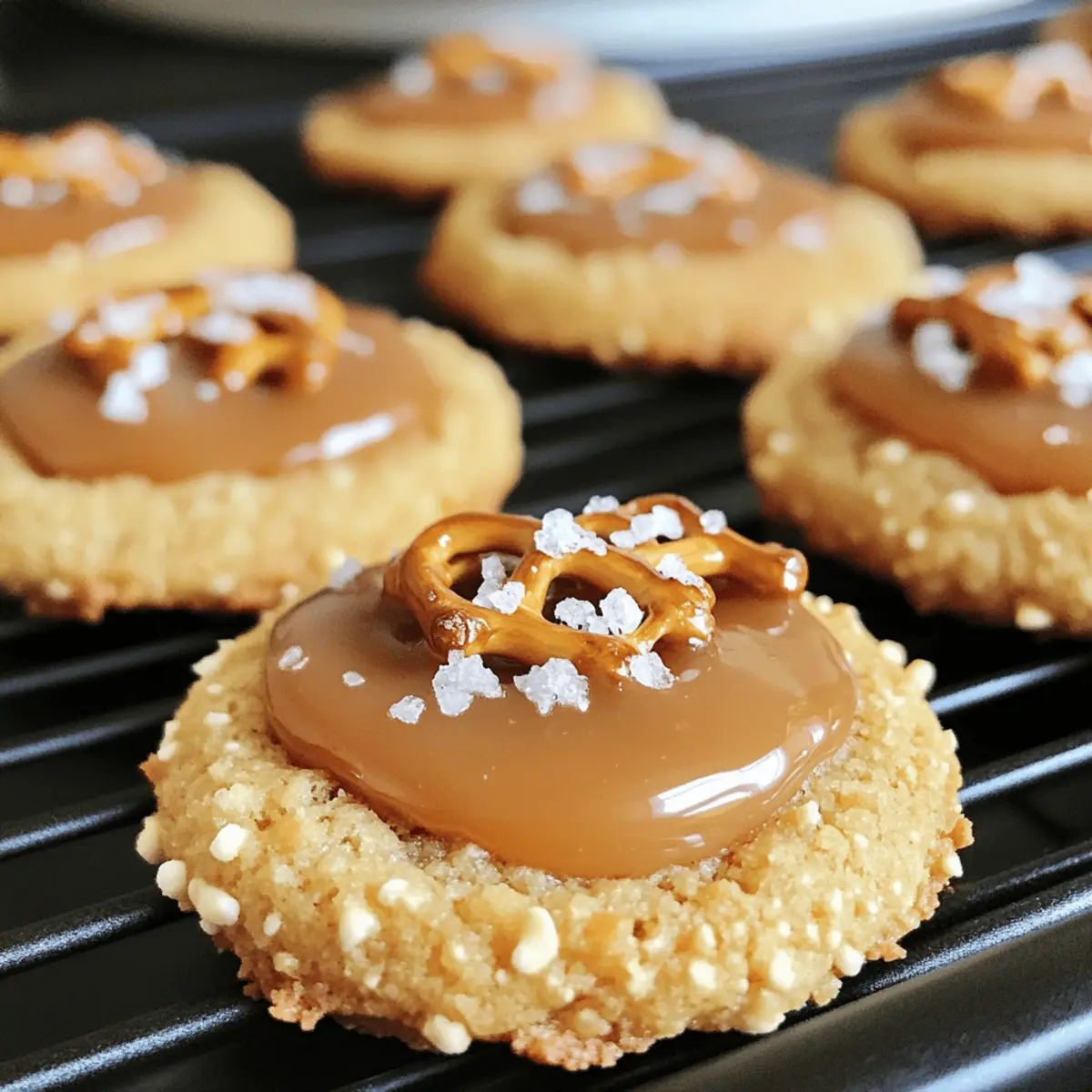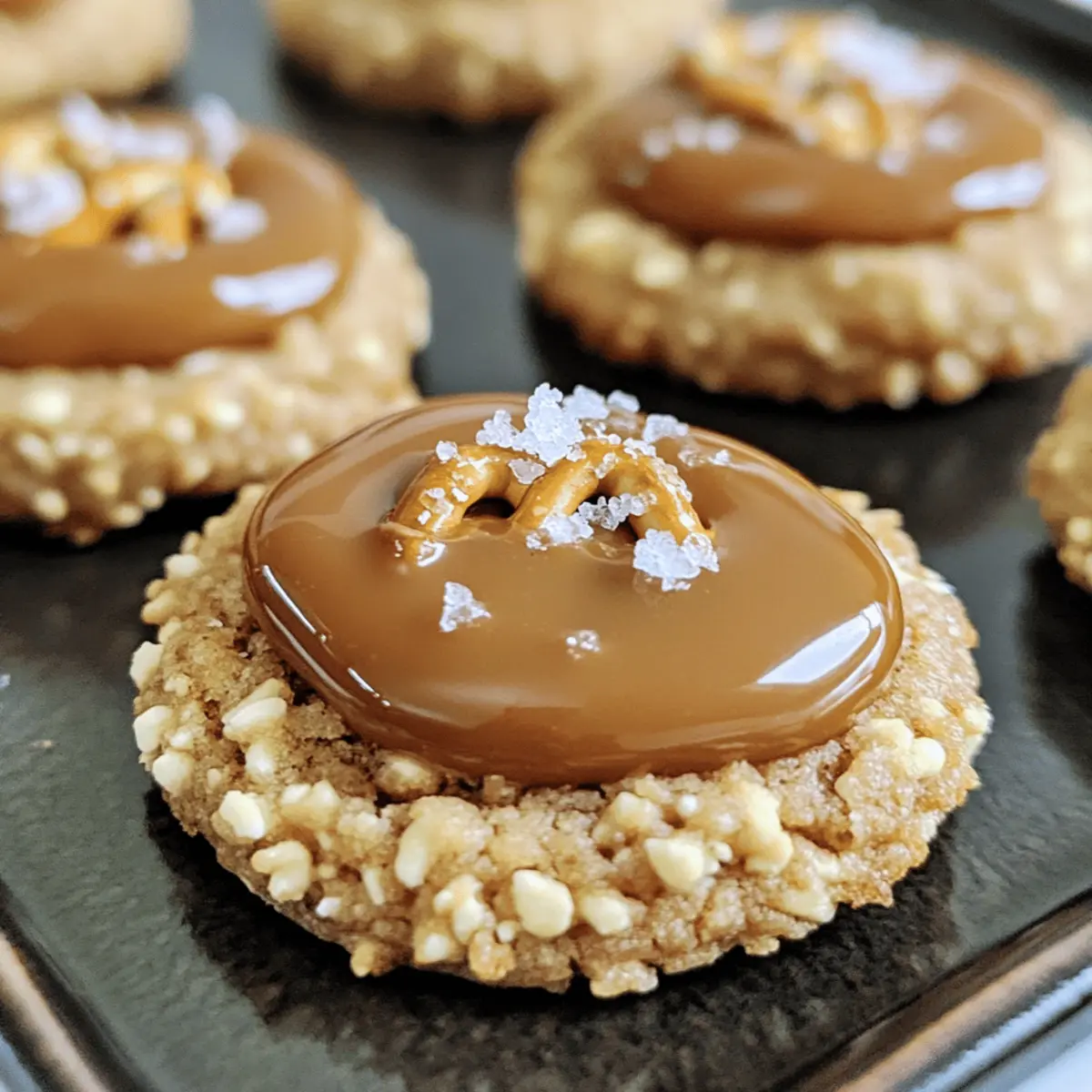 Es war ein regnerischer Nachmittag, als ich in der Küche stand und alle meine Lieblingszutaten um mich herum verteilt hatte. Plötzlich überkam mich die Sehnsucht nach etwas Süßem und Salzigem zugleich! Das führte mich zu einer wunderbaren Kreation: Gesalzene Karamell Brezel Daumenabdruck Kekse. Diese köstlichen Kekse verbinden die weiche Textur eines klassischen Daumenabdruckkekses mit dem knusprigen Biss von Brezeln und einem verführerischen Klecks dulce de leche. Sie sind nicht nur schnell zubereitet, sondern auch ein absoluter Publikumsliebling! Egal, ob für einen gemütlichen Nachmittagstee oder nach einem langen Tag – diese Kekse sind der perfekte Seelenschmeichler. Neugierig, wie du diese unwiderstehliche Kombination aus süß und salzig selbst zubereiten kannst? Lass uns gleich loslegen! Warum sind diese Kekse so besonders? Einzigartiger Geschmack: Die Kombination aus salzigem Karamell und knusprigen Brezeln bringt eine Geschmacksexplosion, die Freude bereitet. Einfache Zubereitung: Mit nur wenigen Zutaten sind diese Kekse leicht zu machen und erfordern keine komplizierten Techniken. Sensationelles Aroma: Der köstliche Duft von frisch gebackenen Keksen wird deine Küche durchfluten und alle zum Naschen einladen. Vielseitige Variationen: Experimentiere mit verschiedenen Füllungen wie Schokoladenganache oder überbackene Erdnussbutter für neue Geschmackserlebnisse! Perfekte Konsistenz: Die Kombination aus weichem inneren Keks und knackiger Brezel sorgt für ein unverwechselbares Mundgefühl. Ideal für jeden Anlass: Ob als Snack für dich selbst oder zum Teilen mit Freunden – diese Kekse sind immer ein Hit! Gesalzene Karamell Brezel Daumenabdruck Kekse Zutaten • Mache dich bereit, diese unwiderstehlichen Kekse zu kreieren! Für den Keks-Teig Butter (1 Tasse/2 Sticks) – sorgt für Reichhaltigkeit und Zartheit; stelle sicher, dass sie weich ist, um beste Mischresultate zu erzielen. Zucker (2/3 Tasse) – gibt Süße und Struktur; verwende am besten weißen Kristallzucker. Eier (2) – tragen zur Feuchtigkeit bei und helfen, die Zutaten zu verbinden. Honig (2 EL) – fügt natürliche Süße und einen Hauch von Blütenaroma hinzu; kann durch Ahornsirup ersetzt werden. Vanille (2 TL) – hebt den Gesamtgeschmack hervor; verwende bestenfalls reinen Vanilleextrakt. Salz (eine Prise) – balanciert die Süße der Kekse aus. Mehl (2 Tassen) – das Hauptstrukturgebilde der Kekse. Für das Topping Grobes Meersalz (zum Bestreuen) – sorgt für den perfekten Kontrast und hebt den Geschmack hervor. Brezeln (2 Tassen, zerbröselt) – fügt eine knusprige Textur und salzigen Geschmack hinzu; benutze jede Art von Brezel, zerdrückt in kleine Stücke. Dulce de Leche (14 oz) – eine reichhaltige Karamellsauce, die nach dem Backen in die Keksvertiefungen gegeben wird; kannst auch Schokoladenstückchen oder Erdnussbutter für Abwechslung verwenden. Step-by-Step Instructions für Gesalzene Karamell Brezel Daumenabdruck Kekse Step 1: Teig zubereiten In einer Rührschüssel die weich gewordene Butter mit dem Zucker schaumig schlagen, bis die Mischung leicht und fluffig ist. Dann die Eier, den Honig und die Vanille hinzufügen und alles gut vermischen. Nach und nach das Mehl und eine Prise Salz unterrühren, bis ein halbfester Teig entsteht, der gut zusammenhält. Step 2: Teig kühlen Den fertigen Teig in Frischhaltefolie einwickeln und für 30 Minuten in den Kühlschrank legen. Dies hilft, den Teig zu festigen, sodass du ihn später einfacher verarbeiten kannst. Während der Teig kühlt, kannst du bereits die anderen Schritte vorbereiten. Step 3: Ofen vorheizen Heize den Ofen auf 175 °C (350 °F) vor und lege ein Backblech mit Backpapier aus. Diese Vorbereitung sorgt dafür, dass die Gesalzenen Karamell Brezel Daumenabdruck Kekse gleichmäßig gebacken werden und nicht anhaften. Der Ofen sollte bereit sein, wenn du die Kekse formst. Step 4: Kekse formen Den gekühlten Teig aus dem Kühlschrank nehmen und kleine, walnussgroße Portionen abnehmen. Diese in den zerbröselten Brezeln wälzen, sodass sie gleichmäßig bedeckt sind. Anschließend die Teigballen auf das Backblech setzen, dabei einen Abstand von 2-5 cm lassen und mit dem Daumen in die Mitte jeden Balls eine Vertiefung drücken. Step 5: Kekse backen Die Kekse im vorgeheizten Ofen für 18-20 Minuten backen oder bis sie leicht goldbraun sind. Achte darauf, dass die Vertiefungen während des Backens ihre Form behalten. Wenn nötig, drücke die Vertiefungen nach dem Backen vorsichtig wieder in die Mitte der Kekse. Step 6: Abkühlen und füllen Lass die Kekse nach dem Backen vollständig abkühlen. Danach einen Klecks dulce de leche in jede Vertiefung geben und mit grobem Meersalz bestreuen. Der süße Karamell-Geschmack wird die herzhaft-salzigen Noten der Brezel hervorheben und das Geschmackserlebnis wunderbar abrunden. Meal Prep für Gesalzene Karamell Brezel Daumenabdruck Kekse Diese Gesalzenen Karamell Brezel Daumenabdruck Kekse sind die perfekte Wahl für eine schnelle und einfache Vorbereitung! Du kannst den Keks-Teig bis zu 24 Stunden im Voraus zubereiten und im Kühlschrank aufbewahren. Wickele den streng notwendigen Teig in Frischhaltefolie, um Austrocknen zu vermeiden. Zudem können die Kekse auch nach dem Backen in einem luftdichten Behälter bis zu 3 Tage frisch bleiben. Wenn du bereit bist, die Kekse zu genießen, forme die Teigportionen, backe sie und fülle sie anschließend mit dulce de leche. So hast du im Handumdrehen köstliche Kekse, die immer noch so lecker und frisch wie am ersten Tag sind! Expert Tips für Gesalzene Karamell Brezel Daumenabdruck Kekse Zimmertemperatur Butter: Stelle sicher, dass die Butter weich und bei Zimmertemperatur ist, um einen cremigen Teig zu erzielen, der gut aufgeht. Kekse nicht überbacken: Behalte die Kekse während des Backens im Auge und nimm sie rechtzeitig heraus; sie sollten leicht goldbraun, aber nicht zu dunkel sein. Brezelgrößen beachten: Zerbrich die Brezeln nicht 