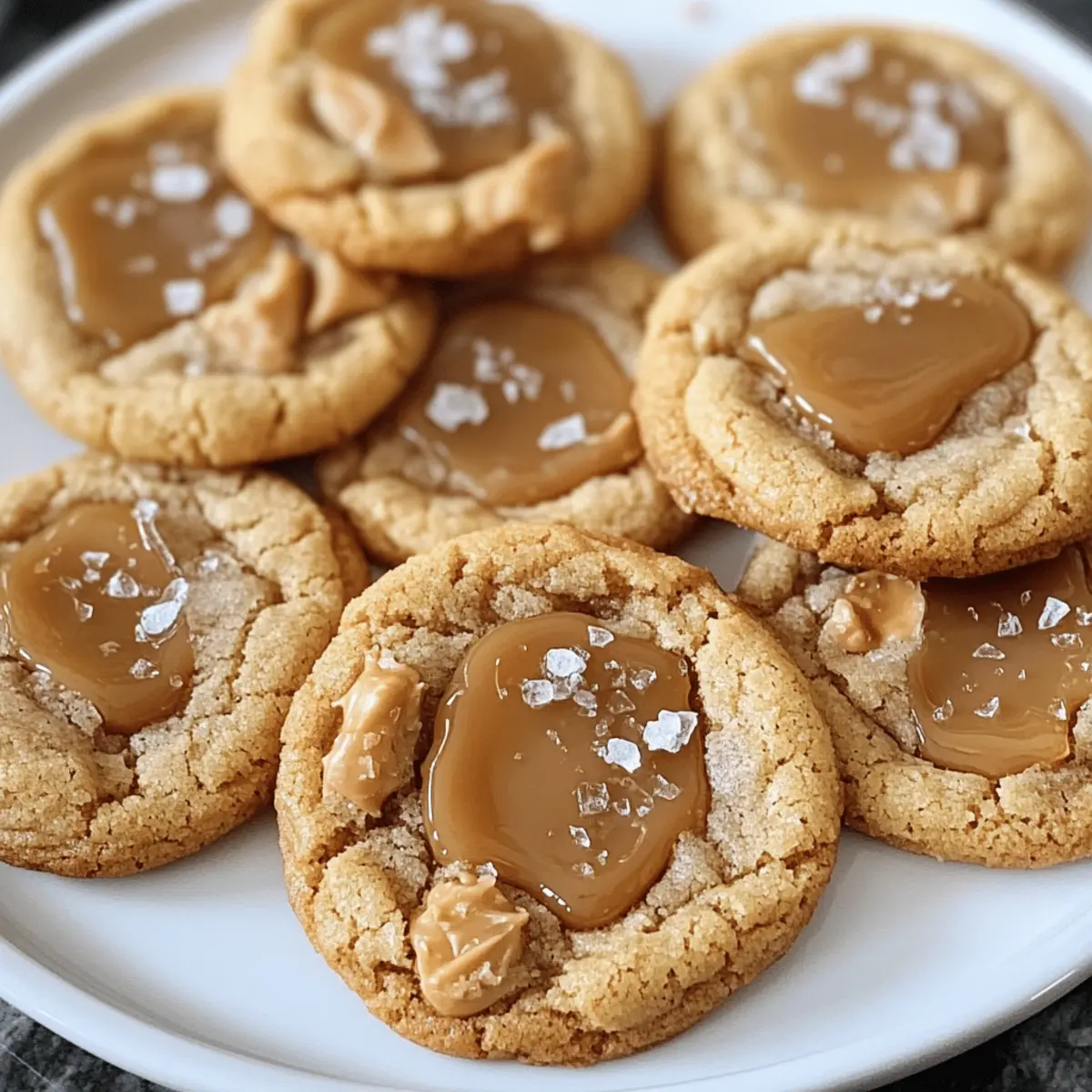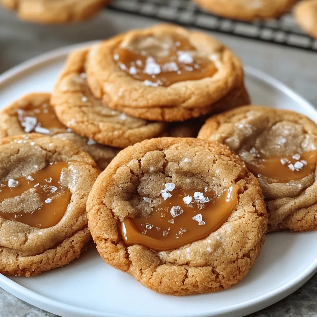 Der Duft frisch gebackener Kekse hat die Macht, selbst die stressigsten Tage zu versüßen. Und was wäre da besser geeignet als meine gesalzene Karamellkekse? Diese Kekse sind unkompliziert in der Zubereitung und bringen den Genuss von einer Bäckerei direkt in Ihre Küche. Mit ihren weich-kauenden Texturen und dem unwiderstehlichen Zusammenspiel aus süßem und salzigem Karamell sind sie die perfekte Wahl für besondere Anlässe oder einfach nur zum Naschen am Abend. Vergessen Sie Fast Food; diese kleinen Köstlichkeiten bringen Freude und Gemütlichkeit in Ihr Zuhause. Sind Sie bereit, in die Welt des Backens einzutauchen und Ihre Liebsten mit diesen perfekten Keksen zu überraschen? Warum werden Sie diese Karamellkekse lieben? Einfachheit: Die Zubereitung dieser gesalzenen Karamellkekse ist schnell und unkompliziert – Sie benötigen nur einige Grundzutaten. Unwiderstehlicher Geschmack: Die Kombination aus süßem Karamell und einer Prise Salz schafft eine harmonische Geschmacksexplosion. Vielseitigkeit: Diese Kekse sind nicht nur für besondere Anlässe geeignet, sie passen auch perfekt zu einer Tasse Tee oder Kaffee. Zufriedene Gaumen: Ihre Freunde und Familie werden begeistert sein – der perfekte Weg, um die Gemütlichkeit nach Hause zu bringen! Bäckerei-Qualität: Genießen Sie das Gefühl, köstliche Kekse wie vom Bäcker selbst zu zaubern, ohne das Haus zu verlassen. Für mehr Inspiration können Sie auch einfache Backtechniken ausprobieren, um Ihre Fähigkeiten zu erweitern! Zutaten für gesalzene Karamellkekse • Um sicherzustellen, dass Ihre Kekse perfekt gelingen, hier die Liste der wichtigsten Zutaten. Für den Teig: Allzweckmehl – sorgt für die nötige Struktur. Substitution: Verwenden Sie glutenfreies Mehl für eine glutenfreie Version. Backpulver – lässt die Kekse schön aufgehen. Keine Substitutionen nötig. Salz – balanciert die Süße aus. Essentiell für den Geschmack. Ungesalzene Butter – macht den Teig reichhaltig. Substitution: Gesalzene Butter verwenden, aber die zusätzliche Salzmenge reduzieren. Zucker – sorgt für eine knusprige Textur. Keine Substitutionen empfohlen. Brauner Zucker – fügt Feuchtigkeit und Karamellgeschmack hinzu. Hell- oder dunkelbrauner Zucker kann interchangeably verwendet werden. Eier (groß) – sollten Zimmertemperatur haben und sorgen für Feuchtigkeit und Struktur. Wichtig für die Textur – keine Substitutionen empfohlen. Vanilleextrakt – verstärkt den Geschmack. Verwenden Sie reinen Vanilleextrakt für beste Ergebnisse. Karamellstückchen – sorgen für schmelzige Karamellflecken. Substitution: Schokoladenstückchen für einen anderen Geschmack verwenden. Schokoladenstückchen (optional) – fügt zusätzliche Fülle hinzu. Kann weggelassen werden, wenn gewünscht. Flaky Sea Salt – sorgt für den süß-salzigen Kontrast. Wichtig für den letzten Schliff – nicht überspringen. Mit diesen Zutaten sind Sie auf dem besten Weg, köstliche gesalzene Karamellkekse zu kreieren, die den schmackhaften Genuss von Bäckerei-Keksen in Ihr Zuhause bringen! Step-by-Step Instructions für Gesalzene Karamellkekse Step 1: Ofen vorheizen Heizen Sie den Ofen auf 175 °C vor und legen Sie Backbleche mit Backpapier aus. Achten Sie darauf, dass der Ofen vollständig vorgeheizt ist, damit Ihre gesalzenen Karamellkekse gleichmäßig backen und eine perfekte goldene Farbe erhalten. Step 2: Trockene Zutaten vermischen In einer Schüssel das Allzweckmehl, Backpulver und Salz gut vermengen. Nutzen Sie einen Schneebesen, um Klumpen zu vermeiden und alle Zutaten gleichmäßig zu verteilen. Stellen Sie diese Mischung beiseite, während Sie die feuchten Zutaten vorbereiten. Step 3: Butter und Zucker cremig rühren In einer großen Schüssel die weiche ungesalzene Butter mit dem Granulatzucker und dem braunen Zucker cremig schlagen, bis die Masse leicht und fluffig ist. Dies dauert etwa 2-3 Minuten. Achten Sie darauf, die Ränder der Schüssel zu reinigen, um sicherzustellen, dass alles gut vermischt ist. Step 4: Eier und Vanille hinzufügen Fügen Sie nacheinander die Eier hinzu und schlagen Sie nach jedem Ei gut durch. Geben Sie anschließend den Vanilleextrakt dazu und rühren Sie weiter, bis alles gut kombiniert ist. Die Mischung sollte glänzend und homogen sein, was den Geschmack der gesalzenen Karamellkekse intensiviert. Step 5: Trockene Zutaten einarbeiten In kleinen Portionen die vorbereitete Mehlmischung zu den feuchten Zutaten hinzufügen und vorsichtig unterheben, bis alles gerade so kombiniert ist. Dies hilft, die Textur der Keksmasse zu bewahren, wodurch Ihre Karamellkekse schön weich und chewy werden. Step 6: Karamellstückchen und optionale Schokolade unterheben Fügen Sie die Karamellstückchen und, falls gewünscht, die Schokoladenstückchen zur Keksmasse hinzu. Wenden Sie einen Spatel, um die Stückchen gleichmäßig zu verteilen, ohne den Teig zu übermixen – das sorgt für geschmolzene Karamellflecken in jedem Keks. Step 7: Teig portionieren und vorbereiten Nutzen Sie einen Esslöffel oder einen Eisportionierer, um den Teig auf die vorbereiteten Backbleche zu setzen. Achten Sie darauf, genügend Platz zwischen den Portionen zu lassen, etwa 5 cm, damit die Kekse beim Backen auseinanderlaufen können. Bestreuen Sie jeden Teigklecks mit einer Prise Flaky Sea Salt. Step 8: Backen und abkühlen lassen Backen Sie die Kekse für 10-12 Minuten, bis die Ränder leicht goldbraun sind und die Mitte noch weich aussieht. Lassen Sie sie 5 Minuten auf dem Blech abkühlen, bevor Sie sie vorsichtig auf ein Gitterrost übertragen, um vollständig auszukühlen. So erhalten Sie perfekte gesalzene Karamellkekse mit der idealen Konsistenz. Was passt zu gesalzenen Karamellkeksen? Der unwiderstehliche Duft dieser Kekse lässt sich wunderbar mit verschiedenen Beilagen kombinieren, die Ihren Genuss noch steigern werden. Frisch gebrühter Kaffee: Der bittere Geschmack des Kaffees harmoniert perfekt mit der Süße der Karamellkekse und schaf