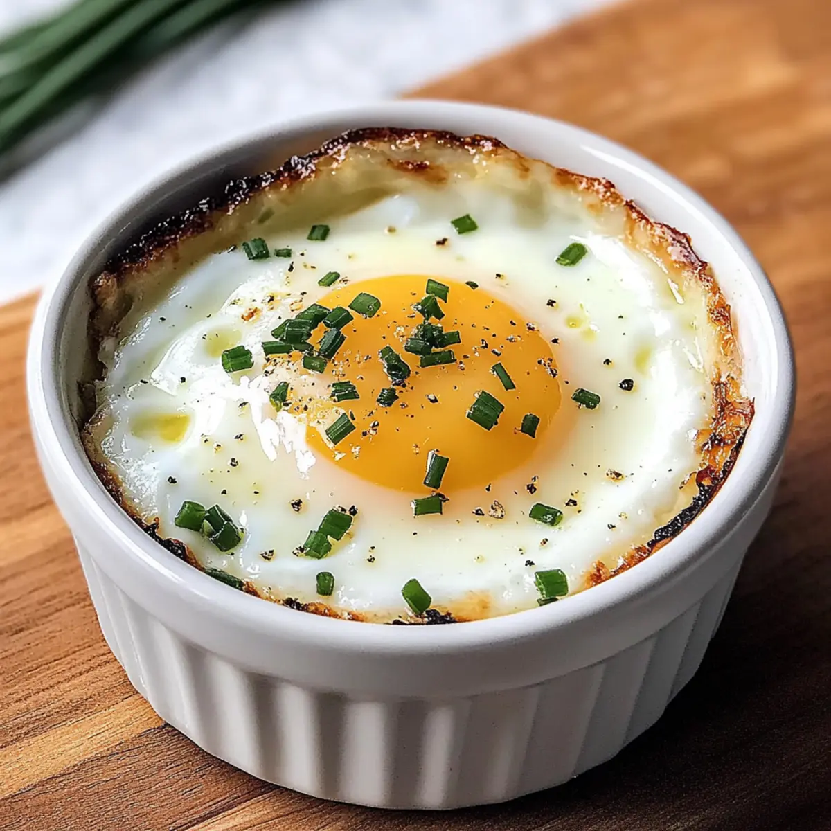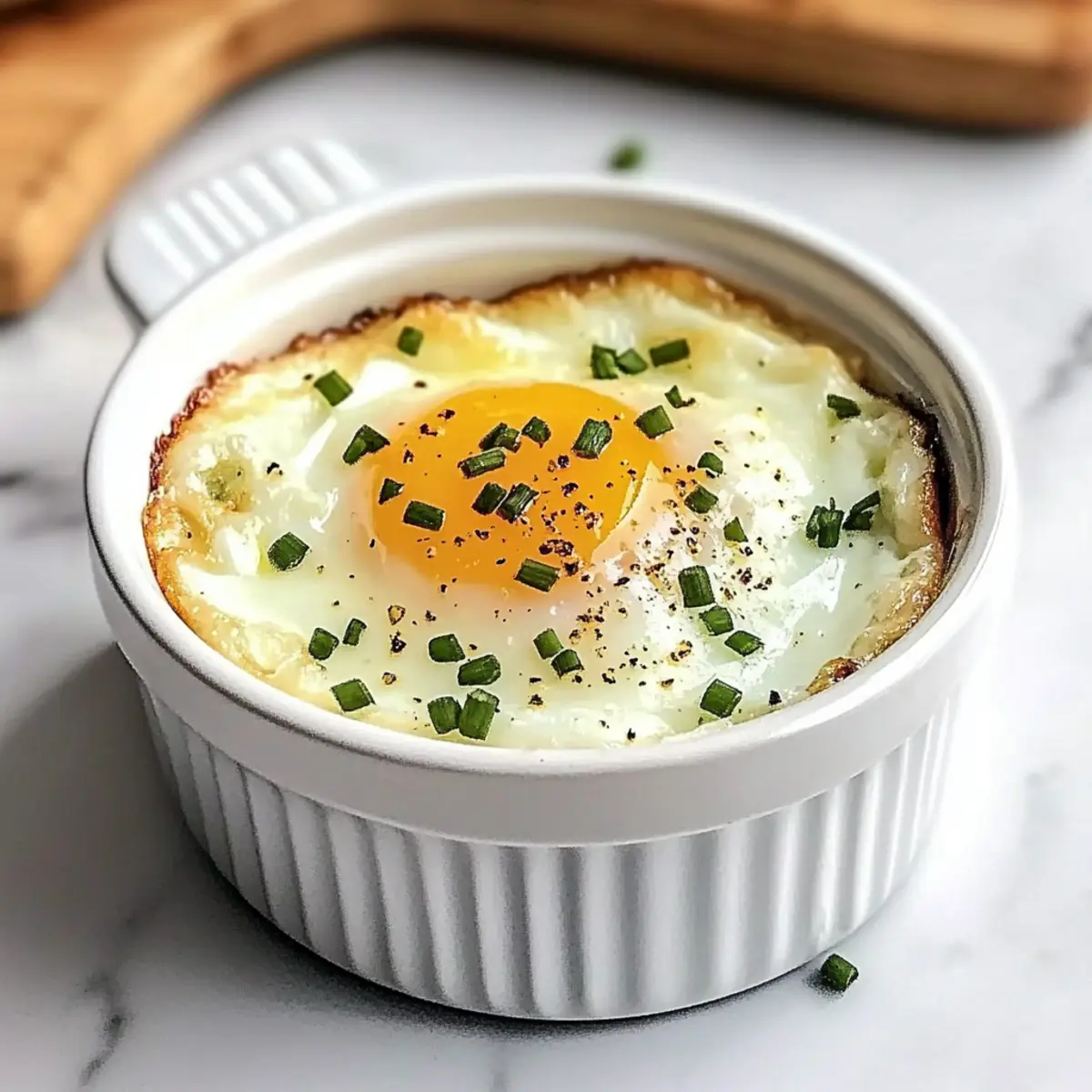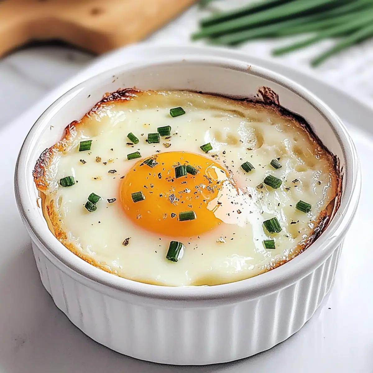 Die Zubereitung von geschichteten Eiern ist wie ein kleines Frühstücksritual, bei dem du mit jedem Schritt kreativ werden kannst. Diese elegante Brunch-Leckerei lässt sich ganz nach deinem Geschmack anpassen – von der Auswahl der frischen Kräuter bis hin zu spannenden Ergänzungen wie Gemüse oder Käse. Was mich an diesen geschichteten Eiern besonders begeistert, ist die schnelle Zubereitungszeit und die Vielseitigkeit. Du kannst sie ganz einfach in einer gesundheitlichen, milchfreien Variante zubereiten oder mit würzigen Aromen verfeinern. Perfekt für entspannte Sonntage oder ein gemütliches Beisammensein mit Freunden! Neugierig geworden, wie du dieses Gericht ganz leicht hinbekommst? Warum sind geschichtete Eier so beliebt? Einfachheit: Die Zubereitung ist kinderleicht; selbst Anfänger im Kochen können sie meistern. Vielseitigkeit: Egal ob du sie mit frischen Kräutern, Gemüse oder Käse verfeinerst, hier ist Kreativität gefragt! Schnelle Zubereitung: In nur 15 Minuten zauberst du ein herrliches Brunchgericht, das garantiert begeistert. Dairy-Free Optionen: Für alle, die milchfrei leben, bietet dieses Rezept zahlreiche Alternativen. Gesundheitsbewusst: Mit hochwertigen, proteinreichen Zutaten sind geschichtete Eier sowohl nahrhaft als auch lecker! Perfekt für dein nächstes Frühstück oder einen entspannten Brunch mit Freunden – lass deiner Fantasie freien Lauf mit diesen geschichteten Eiern! Geschichtete Eier Zutaten • Für die Basis: Ungesalzene Butter – Gibt Reichtum und verhindert das Ankleben; verwende vegane Butter für eine milchfreie Option. Sahne – Verleiht eine reichhaltige Textur, die perfekt mit den Eiern harmoniert; kann mit fetthaltiger Hafermilch oder veganer Cashewcreme ersetzt werden. Große Eier – Der Hauptdarsteller, der eiweißreiche Köstlichkeit liefert; wähle frische, hochwertige Eier für besseren Geschmack. • Für die Würze: Salz – Verstärkt die Geschmacksbalance; nach persönlichem Geschmack anpassen. Schwarzer Pfeffer – Bietet aromatische Tiefe; frisch gemahlen ist am besten für ein intensives Aroma. • Für die Garnitur: Frische Schnittlauch – Bringt eine zarte Zwiebelnote und Farbe; alternativ können Frühlingszwiebeln verwendet werden. Geriebener Parmesan – Fügt eine würzige, nussige Schicht hinzu; kannst durch Hefeflocken für eine milchfreie Variante ersetzen. Verwandle dein Frühstück mit diesen geschichteten Eiern in ein unvergessliches Erlebnis! Schritt-für-Schritt-Anleitung für geschichtete Eier Step 1: Ofen vorheizen Heize deinen Ofen auf 190°C vor, um die optimalen Bedingungen für das Garen der geschichteten Eier zu schaffen. Dies sorgt dafür, dass die Eier gleichmäßig garen und die cremige Konsistenz der Sahne in der richtigen Zeit erreicht wird. Step 2: Ramekin vorbereiten Fette ein 180-ml-Ramekin großzügig mit ungesalzener Butter ein, um ein Ankleben der geschichteten Eier zu verhindern. Diese Vorbereitung ist entscheidend, um ein schönes Servieren zu garantieren und die Reinigung zu erleichtern. Step 3: Sahne hinzufügen Gieße eine dünne Schicht Sahne in das vorbereitete Ramekin. Etwa 2 Esslöffel sollten ausreichen, um eine cremige Grundlage für die geschichteten Eier zu schaffen, die beim Backen perfekt mit den Eiern harmoniert. Step 4: Eier aufschlagen Schlage vorsichtig ein großes Ei in die vorbereitete Ramekin-Schicht mit Sahne. Achte darauf, dass das Eigelb nicht bricht, damit du die gewünschte, cremige Konsistenz erreichst. Die Ästhetik der geschichteten Eier beginnt bereits hier. Step 5: Würzen Streue eine Prise Salz und frisch gemahlenen schwarzen Pfeffer über das rohe Ei, um die Aromen zu verstärken. Diese einfache Würzmethode bringt den Geschmack der geschichteten Eier perfekt zur Geltung und sorgt für eine geschmackliche Balance. Step 6: Garnieren Gebe frisch gehackten Schnittlauch und geriebenen Parmesan oder eine milchfreie Alternative obenauf in das Ramekin. Diese Garnituren fügen nicht nur Geschmack, sondern auch eine hübsche Präsentation hinzu, die beim Servieren beeindruckt. Step 7: Backen Platziere das Ramekin auf einem Backblech und schiebe es in den vorgeheizten Ofen. Backe die geschichteten Eier für 12-15 Minuten, bis die Eiweiße fest sind und die Eigelbe weiterhin leicht flüssig bleiben. Achte darauf, dass die Oberseite leicht goldbraun wird. Step 8: Abkühlen lassen Lasse die geschichteten Eier ein paar Minuten abkühlen, bevor du sie servierst. Dies gibt der Struktur Zeit, sich zu setzen, und vermeidet Verbrennungen beim Essen. Währenddessen kannst du das Gestell für die Präsentation vorbereiten. Step 9: Servieren Serviere die geschichteten Eier warm mit geröstetem Brot, das perfekt zum Dippen geeignet ist. Diese Kombination macht dein Brunch-Erlebnis zu einem unvergesslichen Moment für dich und deine Gäste. Variationen der geschichteten Eier Entdecke, wie du die geschichteten Eier ganz nach deinem Geschmack anpassen kannst und zaubere mit wenigen Änderungen eine neue Genießer-Option! Milchfrei: Ersetze die Sahne durch pflanzliche Alternativen wie Hafermilch oder Kokoscreme für ein leichtes, milchfreies Vergnügen. Du wirst überrascht sein, wie cremig und lecker die Textur bleibt! Gemüsereiche Variante: Füge gehackte Spinat oder Paprika hinzu, um zusätzliche Nährstoffe und Farbe hinzuzufügen. Das Gemüse bringt nicht nur Geschmack, sondern auch Vitalität auf den Teller. Herzhafter Genuss: Lege vor dem Ei eine Schicht aus gebratenem Speck oder geräuchertem Lachs, um den geschichteten Eiern eine tolle, herzhafte Note zu verleihen. Der Kontrast zwischen den Aromen wird deine Gäste begeistern! Kräuterinfusion: Verfeinere die geschichteten Eier mit frischen Kräutern wie Thymian oder der italienischen Mischung Herbes de Provence. Diese Aromen verleihen den Eiern einen aromatischen Kick, der wunderbar frisch schmeckt. Eiweißreiche Option: Verwende überwiegend Eiweiß, um die Kalorien zu reduzieren und eine leichtere Mahlzeit zuzubere