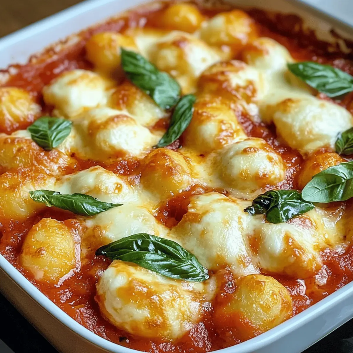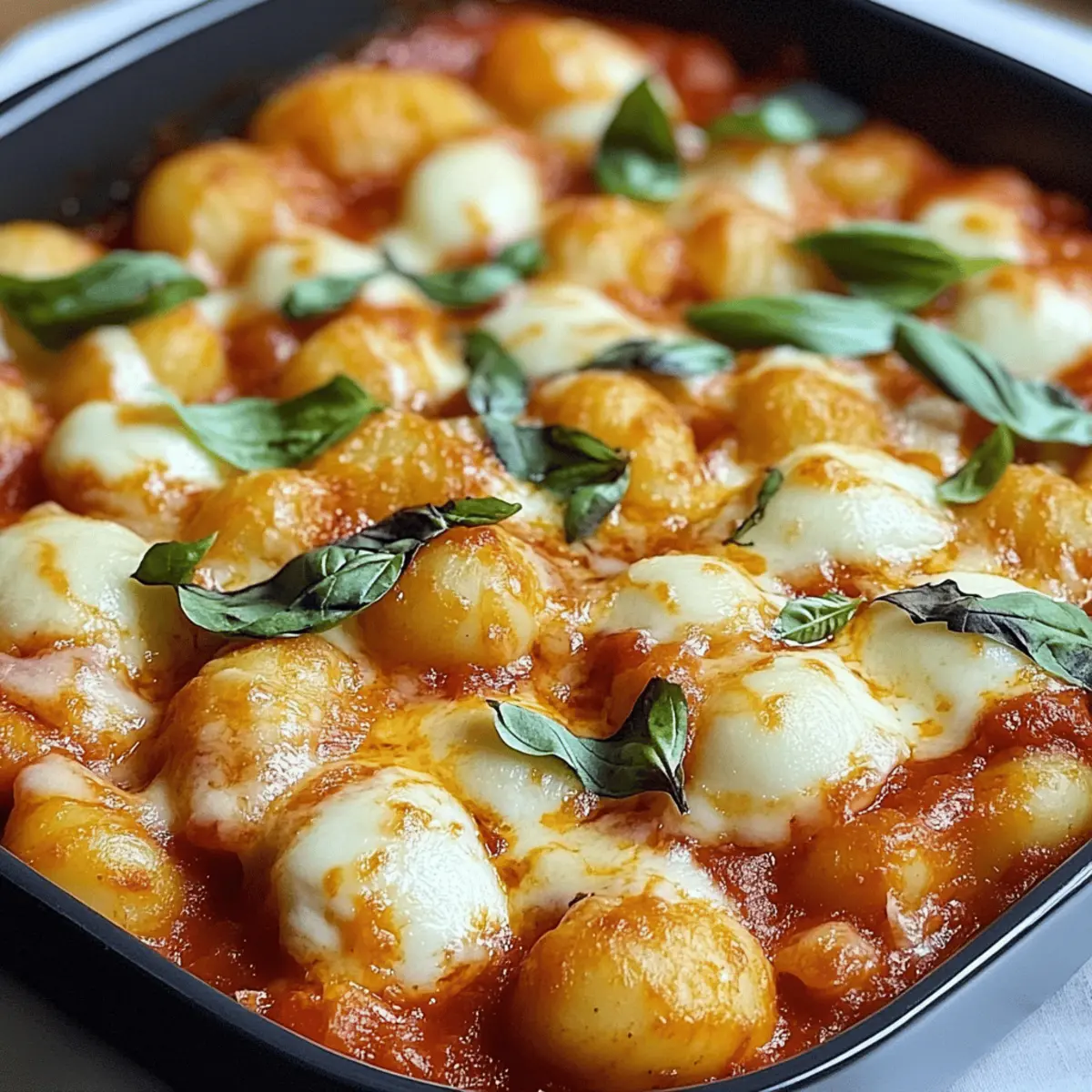 Während ich durch die bunten Straßen eines kleinen italienischen Dorfes schlenderte, erblickte ich eine Inschrift an einer gemütlichen Trattoria: „Essen ist mehr als nur Nahrung; es ist ein Ausdruck von Liebe“. Diese Philosophie spiegelt sich perfekt in meinem Rezept für den Gnocchi Auflauf mit Tomate und Mozzarella wider. Diese italienisch inspirierte Köstlichkeit vereint zarte Kartoffelgnocchi in einer reichhaltigen Tomatensauce, gekrönt von schmelzendem Mozzarella – und das alles in einer unkomplizierten Zubereitung. Ideal für ein gemütliches Abendessen mit der Familie oder einen geselligen Abend mit Freunden, wird dieses Gericht schnell zu einem Favoriten. Plus, es ist vegetarisch und bringt gesunde Genussmomente auf den Tisch. Neugierig auf die simple Zubereitung und den unwiderstehlichen Geschmack? Lass uns gleich loslegen! Warum wirst du diesen Gnocchi Auflauf lieben? Einfache Zubereitung: Die Schritte sind kinderleicht und benötigen keine besonderen Kochkünste, was deinen Abend stressfrei macht. Wunderbar cremig: Der geschmolzene Mozzarella vereint sich perfekt mit der reichhaltigen Tomatensauce und sorgt für ein Geschmackserlebnis, das deine Geschmacksknospen verwöhnt. Familienfreundlich: Dieses Gericht ist ideal für die ganze Familie und wird auch die kleinen Feinschmecker begeistern! Vielseitig: Du kannst mit verschiedenen Zutaten experimentieren, wie etwa Spinat oder Pilzen, um deinem Gnocchi Auflauf eine persönliche Note zu verleihen. Perfekt für jede Gelegenheit: Ob an einem entspannten Wochentag oder für eine gesellige Zusammenkunft, dieser Auflauf passt immer! Du suchst weitere köstliche Auflauf-Varianten? Probiere doch auch unseren Garnelen Pasta Auflauf oder den Zimtigen Brioche Auflauf für den süßen Abschluss! Gnocchi Auflauf Tomate Mozzarella Zutaten Für den Auflauf • Gnocchi – die Hauptkomponente, die für eine weiche, kissenartige Textur sorgt. Frische oder vorgekochte Gnocchi können für mehr Bequemlichkeit verwendet werden. • Canned Diced Tomatoes – die Basis der Sauce, die Feuchtigkeit und einen reichen Tomatengeschmack hinzufügt. Frische Tomaten können für einen saisonalen Twist verwendet werden. • Frische Mozzarella – sorgt für Cremigkeit und einen schmelzigen Effekt. Kann durch geriebene Mozzarella oder eine milchfreie Alternative ersetzt werden. • Olivenöl – zum Anbraten und für den Geschmack. Vegetarisches Öl oder Butter sind als Alternativen möglich. • Zwiebel – fügt Süße und Tiefe zur Sauce hinzu. Schalotten können für einen milden Geschmack verwendet werden. • Knoblauch – essentiell für Aroma und Geschmack. Knoblauchpulver kann in einer Notlage dienen. • Italienische Gewürzmischung – hebt das Geschmacksprofil hervor. Eine Mischung aus getrockneten Kräutern wie Basilikum, Oregano und Thymian kann verwendet werden. • Salz und Pfeffer – nach Geschmack anpassen. Achte darauf, die Zutaten gut abzustimmen. • Frisches Basilikum – zur Garnierung. Kann durch Petersilie ersetzt oder weggelassen werden. • Parmesan Käse (optional) – für zusätzlichen Geschmack und Kruste. Nährhefe kann eine milchfreie Option bieten. Jede Zutat bringt ihren eigenen Charakter in den Gnocchi Auflauf Tomate Mozzarella, sodass du ein Gericht zauberst, das einfach köstlich ist! Schritt-für-Schritt-Anleitungen für Gnocchi Auflauf Tomate Mozzarella Step 1: Ofen vorheizen Heize deinen Backofen auf 180°C vor. Diese Temperatur sorgt dafür, dass der Gnocchi Auflauf Tomate Mozzarella gleichmäßig gart und der Käse schön schmelzen kann. Während der Ofen aufheizt, hast du genug Zeit, um die Gnocchi und die anderen Zutaten vorzubereiten. Step 2: Gnocchi kochen Koche die Gnocchi gemäß der Packungsanweisung in einem großen Topf mit kochendem Salzwasser. Achte darauf, sie nicht zu lange zu kochen, damit sie weich, aber nicht matschig werden. Nach etwa 2–3 Minuten sollten sie an die Oberfläche steigen, was ein Zeichen dafür ist, dass sie gar sind. Lasse sie anschließend gut abtropfen. Step 3: Zwiebel und Knoblauch anbraten Erhitze in einer großen Pfanne einen Esslöffel Olivenöl bei mittlerer Hitze. Füge die gewürfelte Zwiebel und den gehackten Knoblauch hinzu und brate sie für etwa 3–4 Minuten an, bis sie weich und durchscheinend sind. Der aromatische Duft von Zwiebel und Knoblauch erfüllt die Küche und gibt dem Gnocchi Auflauf eine wunderbare Basis. Step 4: Tomaten und Gewürze hinzufügen Gib die gehackten Tomaten aus der Dose sowie die italienische Gewürzmischung, Salz und Pfeffer zur Zwiebel-Knoblauch-Mischung in die Pfanne. Lasse die Mischung für 5–7 Minuten köcheln, bis die Sauce leicht eingedickt und aromatisch ist. Währenddessen kannst du die Gnocchi vorbereiten, um sie später gleichmäßig unter die Sauce zu mischen. Step 5: Gnocchi unter die Sauce mischen Füge die gekochten Gnocchi zur Tomatensauce in der Pfanne hinzu und rühre sie vorsichtig um, damit sie gut mit der Sauce bedeckt sind. Das sollte nur ein bis zwei Minuten dauern, um die Gnocchi nicht zu zerdrücken. Diese Kombination sorgt für perfekte Texturen im Gnocchi Auflauf Tomate Mozzarella. Step 6: Mischung in die Auflaufform geben Übertrage die Gnocchi-Sauce-Mischung in eine gefettete Auflaufform und verteile sie gleichmäßig. Achte darauf, dass die Gnocchi gleichmäßig in der Sauce liegen. Diese Schicht bildet die Grundlage für den geschmolzenen Käse, der später darauf kommt und eine köstliche Kruste bietet. Step 7: Mozzarella darauf verteilen Zerreiße die frische Mozzarella in kleine Stücke und verteile sie gleichmäßig über die oberste Schicht des Gnocchi Auflaufs. Achte darauf, dass der Käse alle Bereiche abdeckt, da er beim Backen schmilzt und Blasen wirft. Dies verleiht dem Gericht eine köstliche, goldene Kruste. Step 8: Backen Backe den Gnocchi Auflauf Tomate Mozzarella im vorgeheizten Ofen für 25–30 Minuten. Achte darauf, dass der Käse geschmolzen und leicht goldbraun ist. Wenn du eine b