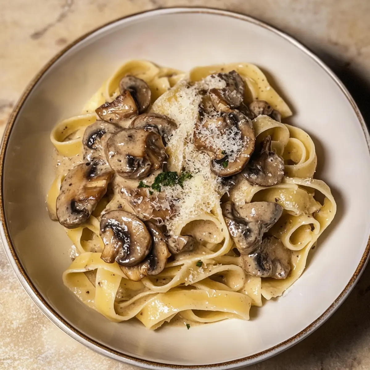 Wenn ich an italienische Küche denke, schwebt mir sofort der Geschmack von samtiger Gorgonzola-Trüffel-Cremesauce mit Pilzen in den Sinn. Diese cremige Köstlichkeit vereint den würzigen Geschmack des Gorgonzola mit der erdigen Note von Pilzen und dem luxuriösen Aroma von weißem Trüffelöl. Was ich an dieser Sauce liebe, ist, dass sie nicht nur schnell zubereitet ist, sondern auch einen Hauch von Eleganz auf den Tisch bringt – perfekt für ein romantisches Dinner oder ein geselliges Treffen mit Freunden. Jeder Bissen umhüllt die Pasta, als wäre sie ein wohlverdientes Geschenk an meinen Gaumen. Bist du bereit, deine Pasta auf das nächste Level zu heben? Warum wird diese Sauce dein Favorit sein? Einfachheit: Die Zubereitung dieser Sauce erfordert nur grundlegende Kochkenntnisse und ist in kürzester Zeit erledigt – ideal für spontane Dinner-Abende. Reiche Aromen: Die Kombination aus Gorgonzola und Trüffelöl verleiht der Sauce eine luxuriöse Tiefe und macht sie zu einem geschmacklichen Highlight jeder Mahlzeit. Vielseitigkeit: Du kannst die Sauce nach Belieben anpassen, sei es durch die Wahl verschiedener Pilze oder das Experimentieren mit anderen Käsesorten – die Möglichkeiten sind endlos! Perfekter Genuss: Sie passt hervorragend zu verschiedenen Pastasorten wie Fettuccine oder Gnocchi und ist ein echter Publikumsmagnet bei jedem Treffen. Schnelle Zubereitung: Mit der Möglichkeit, die Sauce im Voraus zuzubereiten und im Kühlschrank zu lagern, ist sie eine praktische Wahl für geschäftige Tage. Diese Gorgonzola-Trüffel-Cremesauce mit Pilzen ist nicht nur ein Rezept, sondern ein kulinarisches Erlebnis, das du unbedingt ausprobieren musst! Gorgonzola-Trüffel-Cremesauce Zutaten Für die Sauce Olivenöl oder Butter – Fügt eine cremige Note hinzu und hilft beim Anbraten der Pilze. In Scheiben geschnittene Pilze – Sorgen für einen erdigen Geschmack und eine angenehme Textur in der Sauce. Milch oder Sahne – Bildet die cremige Basis für die Sauce. Gorgonzola-Käse – Der Hauptbestandteil, der eine würzige und tiefe Geschmacksnote bietet. Weißes Trüffelöl – Verleiht der Sauce ein luxuriöses, aromatisches Aroma. Gemahlener Salbei, Oregano, Thymian – Ergänzen das Geschmacksprofil mit aromatischen Kräutern. Salz und Pfeffer – Wichtig zum Würzen nach Geschmack. Geriebener Parmesan – Für das Topping; sorgt für zusätzlichen Geschmack und Reichtum. Diese Gorgonzola-Trüffel-Cremesauce mit Pilzen wird dein nächstes Pastagericht auf ein ganz neues Level heben! Schritt-für-Schritt-Anleitung für die Gorgonzola-Trüffel-Cremesauce mit Pilzen Step 1: Öl oder Butter erhitzen Erhitze in einem großen Topf bei mittlerer bis niedriger Hitze etwa 2 Esslöffel Olivenöl oder Butter, bis sie schaumig werden. Achte darauf, dass die Temperatur nicht zu hoch wird, um ein Anbrennen zu vermeiden. Dies ist die Basis für deine Gorgonzola-Trüffel-Cremesauce mit Pilzen, die gleich in vollem Aroma entfaltet wird. Step 2: Pilze anbraten Füge jetzt ca. 250 g in Scheiben geschnittene Pilze hinzu und brate sie für etwa 5 Minuten an. Rühre dabei gelegentlich um, bis sie goldbraun und weich sind. Dabei salze und pfeffere die Pilze nach Geschmack. Die Aromen werden wunderbar miteinander verschmelzen und eine geschmackliche Tiefe schaffen. Step 3: Milch oder Sahne hinzufügen Gieße in den Topf 250 ml Milch oder Sahne und bringe die Mischung zum Sanftköcheln. Rühre kräftig um und füge 150 g zerbröselten Gorgonzola-Käse hinzu. Lass die Sauce für weitere 3–5 Minuten köcheln, bis der Käse vollständig geschmolzen ist und eine cremige Konsistenz entsteht. Die Gorgonzola-Trüffel-Cremesauce mit Pilzen sollte jetzt verführerisch duften. Step 4: Trüffelöl und Gewürze einrühren Nehme den Topf vom Herd und rühre einen Teelöffel weißes Trüffelöl sowie 1 Teelöffel gemahlenen Salbei, Oregano und Thymian ein. Schmecke die Sauce mit Salz und Pfeffer ab und stelle sicher, dass sie gut gewürzt ist. Das Trüffelöl wird die Sauce geradezu veredeln und ihr ein luxuriöses Aroma verleihen. Step 5: Sauce verfeinern und dickflüssiger machen Wenn du eine dickere Sauce bevorzugst, kannst du zusätzlich 50 g Gorgonzola oder geriebenen Parmesan einrühren. Lass die Sauce weitere 2 Minuten sanft köcheln, bis sie die gewünschte Konsistenz erreicht hat. Diese Gorgonzola-Trüffel-Cremesauce mit Pilzen wird nun wunderbar cremig sein. Step 6: Pasta untermischen Koche und bereite deine Pasta (z. B. Fettuccine oder Gnocchi) nach Anleitung vor und lasse sie abtropfen. Gib die frisch gekochte Pasta direkt in den Topf mit der Gorgonzola-Trüffel-Cremesauce und vermische alles gut, bis die Pasta gleichmäßig mit der Sauce umhüllt ist. Dies wird deine Mahlzeit unwiderstehlich machen. Step 7: Servieren und garnieren Verteile die Pasta auf Tellern und streue etwas frisch geriebenen Parmesan darüber. Optional kannst du auch einige frisch gehackte Kräuter als Garnitur verwenden. Deine Gorgonzola-Trüffel-Cremesauce mit Pilzen ist jetzt bereit, serviert zu werden – genieße den feinen, cremigen Geschmack! Gorgonzola-Trüffel-Cremesauce Variationen Jetzt wird es spannend! Lass deiner Kreativität freien Lauf und passe die Sauce ganz nach deinem Geschmack an. Vegan: Ersetze Sahne durch Kokosmilch und Gorgonzola durch Cashewkäse für eine pflanzliche Variante. Pilzvielfalt: Nutze unterschiedliche Pilzsorten wie Pfifferlinge oder Steinpilze, um neue Aromen zu entdecken. Die Kombination von verschiedenen Texturen macht den Genuss noch spannender. Schärfe hinzufügen: Füge eine Prise rote Paprikaflocken hinzu, um deiner Sauce einen pikanten Kick zu verleihen. So wird es heiß und aufregend! Nussig: Verwende geröstete Pinienkerne oder Walnüsse als Topping für zusätzlichen Crunch und ein nussiges Aroma. Sie verleihen dem Gericht eine besondere Note. Frische Kräuter: Experimentiere mit frischem Basilikum oder Petersilie anstelle von getrockneten Kräutern für ein helles, frisches Arom