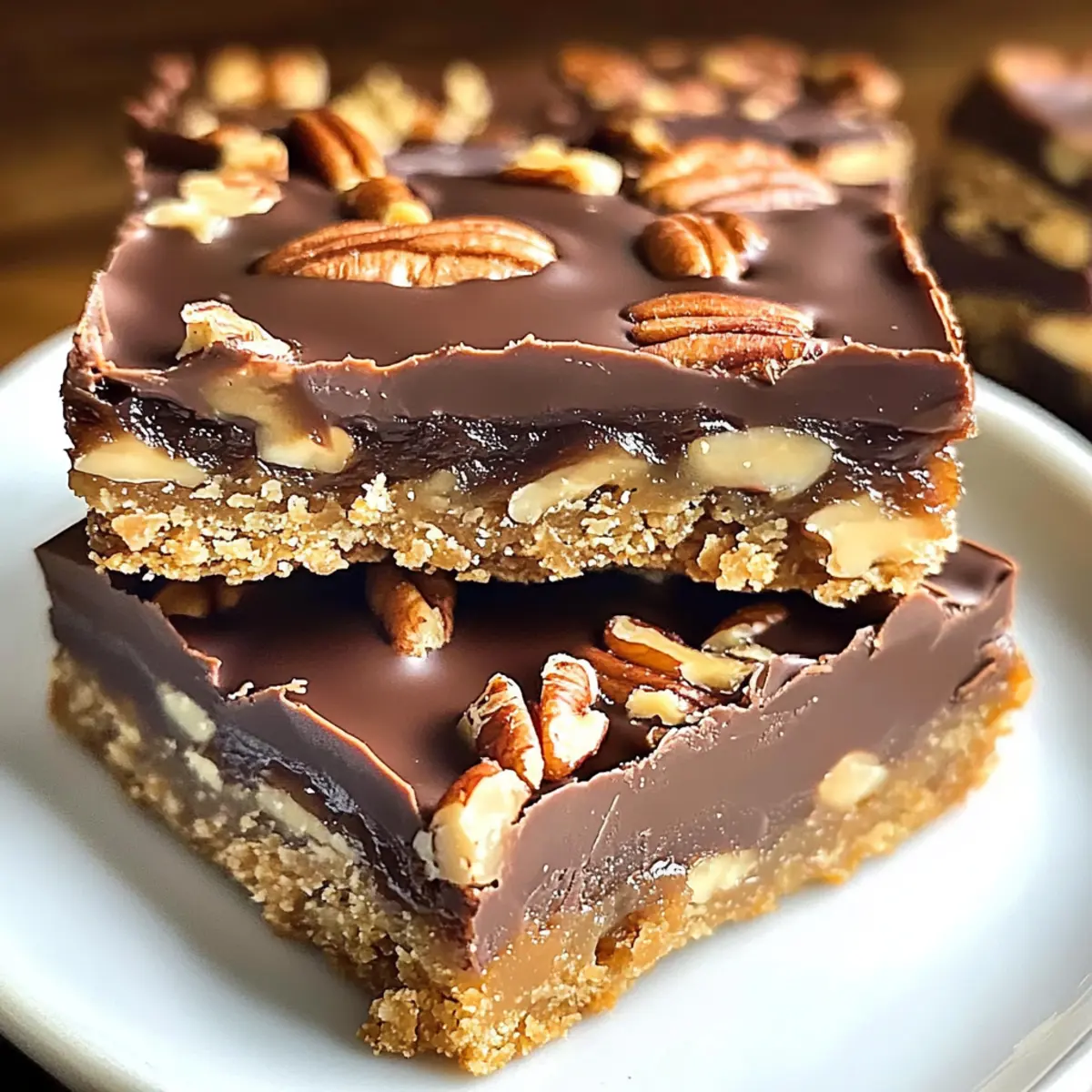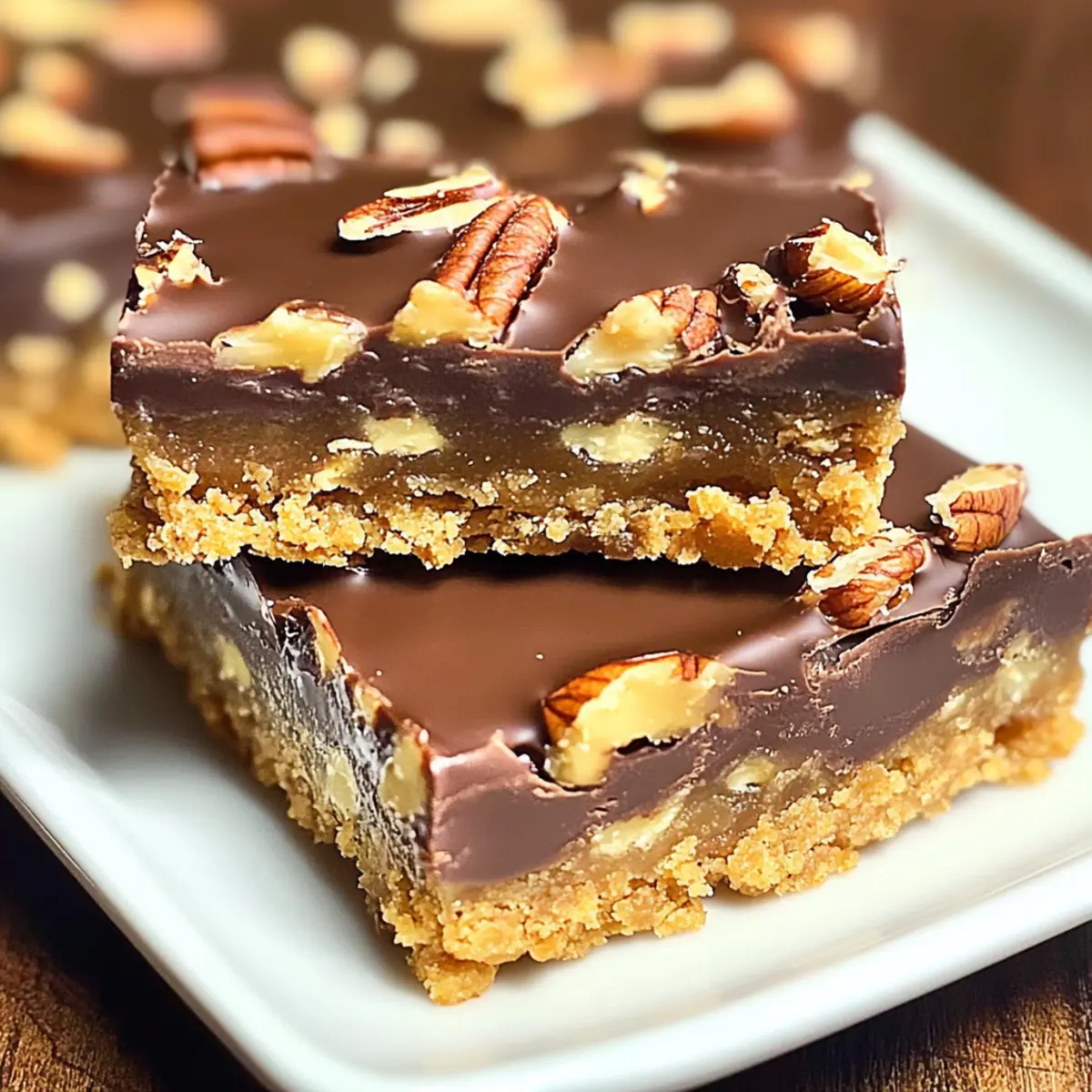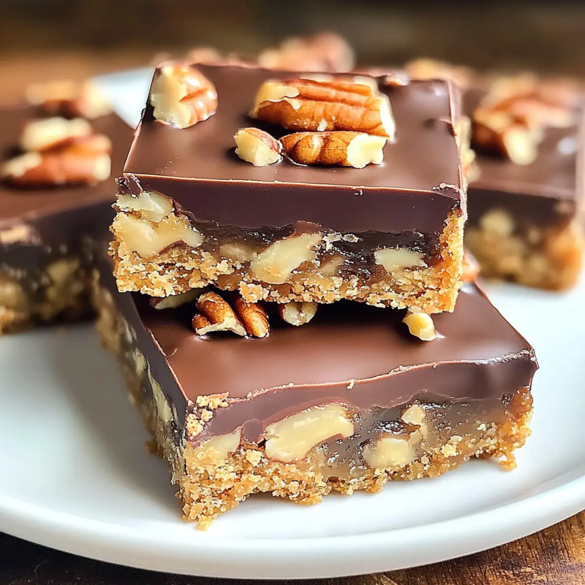 Als ich letztens in der Küche stand und die süßen Aromen der schmelzenden Schokolade erfüllten den Raum, wusste ich sofort, dass etwas Außergewöhnliches entstehen würde. Die No-Bake Graham-Keks-Toffee-Riegel sind nicht nur eine einfache und schnelle Lösung für süße Gelüste, sondern auch ein echtes Highlight bei jeder Zusammenkunft. Diese köstlichen Riegel verbinden die perfekte Mischung aus knusprigen Graham-Keksen, cremigem Schokoladengenuss und knackigen Pekannüssen, was sie zum idealen Snack für jeden Anlass macht. Und das Beste daran? Man kann sie ganz leicht anpassen, um sie glutenfrei oder vegan zu machen! Bereit, die nächste Geschmacksexplosion zu entdecken? Warum werden Sie dieses Rezept lieben? Einfachheit: Die Zubereitung der Graham-Keks-Toffee-Riegel könnte nicht einfacher sein! Mit nur wenigen Zutaten und minimalem Aufwand zaubern Sie im Handumdrehen einen köstlichen Snack. Vielseitigkeit: Mit der Möglichkeit, verschiedene Schokoladensorten oder Nüsse zu verwenden, können Sie dieses Rezept ganz nach Ihrem Geschmack anpassen. Möchten Sie eine veganfreundliche oder glutenfreie Variante? Kein Problem! Aromatische Kombination: Die Mischung aus geschmolzener Schokolade und knackigen Pekannüssen sorgt für einen Geschmack, der nicht nur den Gaumen erfreut, sondern auch Erinnerungen an gemütliche Familienbäckerei weckt. Schnelligkeit: Perfekt für unerwartete Gäste oder eine süße Gelüste in Eile – die Riegel sind ohne Backen schnell zubereitet und erfordern nur wenig Vorbereitungszeit. Beliebtheit: Egal ob bei Familienfeiern oder entspannten Abenden mit Freunden, diese Riegel sind ein echter Hit und bringen jeden zum Schmelzen! Wenn Sie nach weiteren tollen Rezepten suchen, probieren Sie auch unsere no-bake Desserts für mehr Ideen! Graham-Keks-Toffee-Riegel Zutaten Für die Riegel • Honig Graham-Kekse – Bieten eine süße, knusprige Grundlage für die Riegel. Substitution: Verwenden Sie glutenfreie Graham-Kekse, wenn nötig. • Butter – Fügt Reichtum hinzu und hilft, die Riegel zu verbinden. Tipp: Wählen Sie ungesalzene Butter, um den Geschmack zu kontrollieren. • Almond Hershey’s Riegel – Sorgt für schokoladige Süße und Mandelgeschmack. Substitution: Schokoladenstückchen können als Alternative verwendet werden. • Brauner Zucker – Trägt zur Süße bei und schafft eine klebrige Karamell-ähnliche Konsistenz in der Mischung. Substitution: Kokosblütenzucker bietet eine niedrigere glykämische Option. • Hakkte Pekannüsse – Fügen eine knusprige Textur und nussigen Geschmack hinzu. Substitution: Andere Nüsse wie Walnüsse oder Mandeln können ebenfalls verwendet werden. Für die Variationen • Veganer Ersatz – Tauschen Sie Butter gegen pflanzliche Margarine aus, um eine vegane Variante zu kreieren. • Tropische Note – Fügen Sie geriebenen Kokos an, um einen tropischen Twist zu erhalten. • Würziger Kick – Streuen Sie eine Prise Cayennepfeffer oder rote Chiliflocken für eine scharfe Überraschung hinein. Hinweis: Dieses Rezept der Graham-Keks-Toffee-Riegel ist nicht nur einfach zuzubereiten, sondern auch vielseitig anpassbar, um alle Geschmäcker zu befriedigen! Schritt-für-Schritt-Anleitung für Graham-Keks-Toffee-Riegel Schritt 1: Ofen vorheizen und Backform vorbereiten Heizen Sie den Ofen auf 175 °C vor und fetten Sie eine 23×33 cm große Backform leicht ein. Dies sorgt dafür, dass die Riegel nicht ankleben und sich nach dem Backen leicht aus der Form nehmen lassen. Stellen Sie sicher, dass die Form gleichmäßig gefettet ist, um ein einfaches Herauslösen zu gewährleisten. Schritt 2: Graham-Kekse schichten Legen Sie die Honig Graham-Kekse gleichmäßig auf den Boden der gefetteten Backform, ohne sie zu überlappen. Dies bildet die knusprige Basis für die Graham-Keks-Toffee-Riegel. Achten Sie darauf, dass die Keksstücke dicht beieinander liegen, um eine stabile Grundlage zu erzielen. Schritt 3: Butter und Zucker schmelzen In einem mittelgroßen Topf bei mittlerer Hitze die Butter und den braunen Zucker kombinieren. Rühren Sie die Mischung kontinuierlich, bis die Butter schmilzt und eine glatte, sprudelnde Konsistenz erreicht ist, was etwa 3 bis 5 Minuten dauert. Achten Sie darauf, die Mischung nicht zu lange zu kochen, damit sie nicht anbrennt. Schritt 4: Mischung über Kekse gießen Gießen Sie die geschmolzene Butter-Zucker-Mischung gleichmäßig über die vorbereiteten Graham-Kekse. Verwenden Sie einen Spatel, um die Mischung sanft zu verbreiten, sodass alle Kekse gut bedeckt sind. Dies sorgt für eine gleichmäßige Verteilung des süßen Karamellgeschmacks in den späteren Riegeln. Schritt 5: Schokolade und Nüsse hinzufügen Zerteilen Sie die Almond Hershey’s Riegel und streuen Sie die Stücke zusammen mit den gehackten Pekannüssen gleichmäßig über die noch warme Mischung. Dies ermöglicht, dass die Schokolade beim Backen schmilzt und eine köstliche Schicht bildet. Stellen Sie sicher, dass die Nüsse gleichmäßig verteilt sind, um jeden Biss zu bereichern. Schritt 6: Backen Backen Sie die Riegel im vorgeheizten Ofen für 10 bis 12 Minuten, bis die Mischung sprudelt und die Ränder goldbraun werden. Halten Sie ein Auge darauf, da die Riegel schnell überbacken können. Die goldene Farbe zeigt an, dass die Riegel perfekt sind und die Aromen miteinander verschmelzen. Schritt 7: Abkühlen und schneiden Lassen Sie die Graham-Keks-Toffee-Riegel vollständig in der Form abkühlen, bevor Sie sie in Quadrate schneiden. Dies verhindert, dass die Riegel beim Schneiden auseinanderfallen und sorgt für eine bessere Struktur. Warten Sie, bis sie auf Zimmertemperatur sind, um das perfekte Ergebnis zu erzielen. Graham-Keks-Toffee-Riegel Variationen Mach dieses köstliche Rezept noch spannender mit deinen eigenen Ideen! Lass deiner Kreativität freien Lauf und entdecke neue Geschmackskombinationen. Vegan: Tausche die Butter gegen pflanzliche Margarine aus, um sie für Veganer geeignet zu machen. So bleibt 