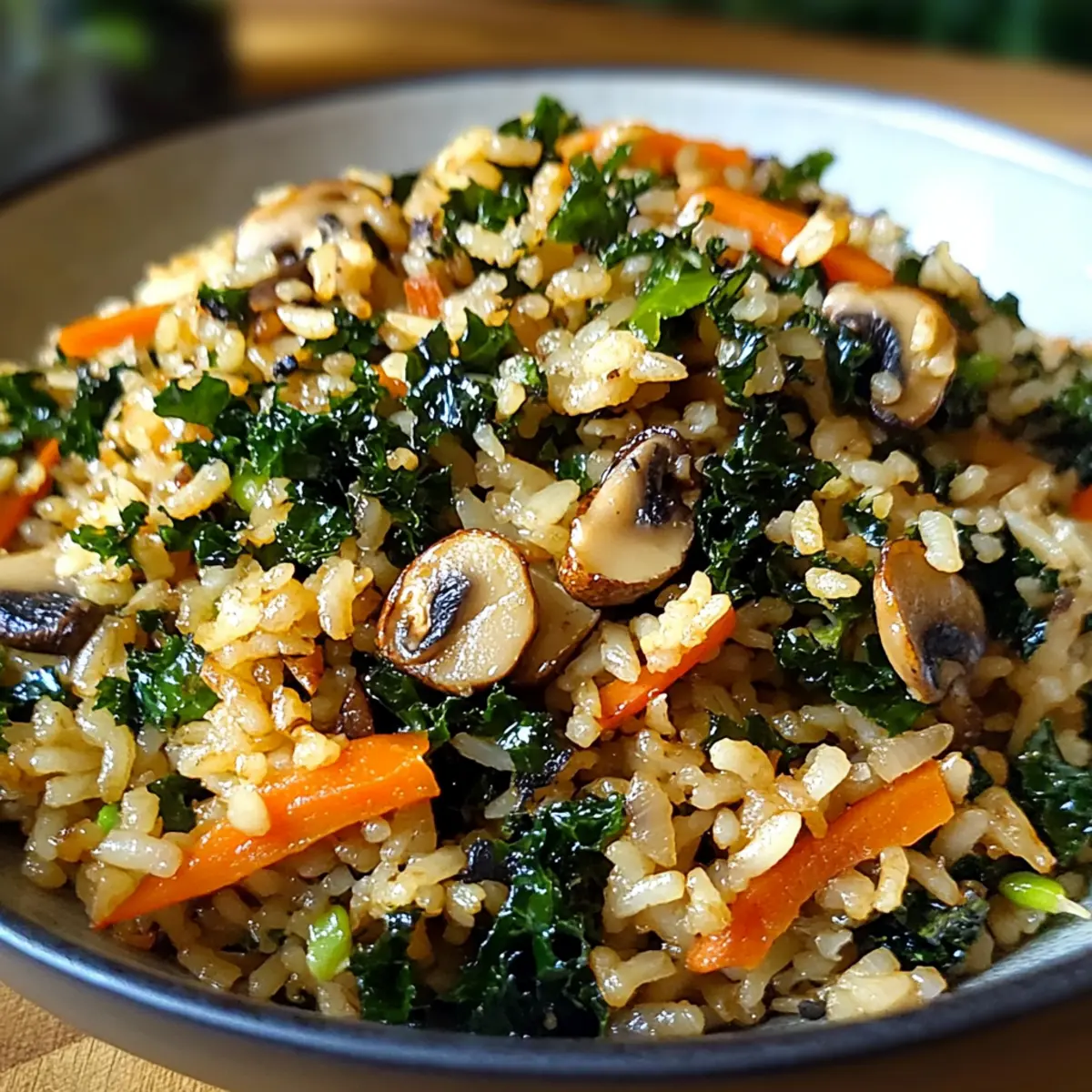 Der erste Biss ist immer ein Fest der Sinne! Wenn ich anfange zu kochen, ist es oft eine kleine Reise in die Welt der Aromen und Texturen. Heute lade ich dich ein, mit mir das Rezept für Grünkohl und Shiitake gebratenen Reis auszuprobieren – ein schnelles und nahrhaftes Gericht, das meine Küche erhellt! Während die erdigen Shiitake-Pilze mit ihrem Umami-Geschmack harmonieren, sorgt der knusprige Grünkohl für einen fabelhaften Crunch. In nur 35 Minuten kannst du ein köstliches und anpassbares Essen zubereiten, das sowohl im hektischen Alltag als auch bei besonderen Anlässen für Begeisterung sorgt. Stell dir vor, du kombinierst deine liebsten Zutaten und verwandelst sie in ein erfreuliches Gericht – was wird dein persönliches Upgrade sein? Warum ist dieses Rezept ein Muss? Einfachheit: Die Zubereitung ist unkompliziert und erfordert lediglich grundlegende Kochfähigkeiten. Nährstoffreich: Dieser gebratene Reis ist voller Gemüse, das nicht nur gesund, sondern auch sättigend ist. Vielseitigkeit: Du kannst die Zutaten nach Belieben anpassen, sei es mit verschiedenen Proteinen oder buntem Gemüse. Perfekte Textur: Der knusprige Grünkohl und die zarten Shiitake-Pilze sorgen für ein festliches Genusserlebnis. Schnelle Zubereitung: In nur 35 Minuten steht ein köstliches Gericht auf dem Tisch – ideal für beschäftigte Abende. Beliebtheit: Diese Kombination ist ein Publikumsliebling, der sowohl Familie als auch Freunde begeistert. Du kannst es sogar mit Mediterranem Orzo Gesund kombinieren, um ein noch umfassenderes Essen zu kreieren! Grünkohl und Shiitake gebratener Reis Zutaten • Dieses Rezept wird dir helfen, köstlichen Grünkohl und Shiitake gebratenen Reis zuzubereiten! Für den Reis Reis – Verwende am besten gekochten Reis vom Vortag, um eine bessere Textur und weniger Klebrigkeit zu erreichen. Für die Pilze Shiitake-Pilze – Sie geben dem Gericht ein herrliches Umami-Aroma; du kannst sie auch durch andere Pilzsorten ersetzen, wenn nötig. Für das Gemüse Grünkohl – Er sorgt für den knusprigen Biss und ist reich an Nährstoffen; alternativ kannst du Spinat verwenden, wenn du eine mildere Note möchtest. Karotte – Für eine süße Note und einen Farbtupfer; wähle Paprika für ein anderes Geschmacksprofil. Zuckererbsen – Sie bringen eine frische Knackigkeit; du kannst auch grüne Bohnen oder Spargel verwenden. Für die Würze Knoblauch – Frisch gehackt verstärkt die Gesamtgeschmack; benutze ihn unbedingt! Sojasauce – Sie bringt eine salzige Tiefe ins Gericht; greife zu einer natriumreduzierten Variante für eine gesündere Option. Sesamöl – Es sorgt für einen nussigen Duft; Olivenöl kann ebenfalls als Alternative genutzt werden. Frühlingszwiebeln – Für die Garnitur und einen Hauch von Zwiebelgeschmack; Chives sind eine gute Substitute. Salz und schwarzer Pfeffer – Nach Geschmack hinzufügen. Schritt-für-Schritt-Anleitung für Grünkohl und Shiitake gebratenen Reis Schritt 1: Reis vorbereiten Wasche den Reis unter kaltem Wasser, bis das Wasser klar ist. Koche ihn in einem Topf mit Gemüsebrühe; bringe ihn zum Kochen, reduziere die Hitze und lasse ihn 15-18 Minuten köcheln, bis die Flüssigkeit absorbiert ist. Lasse den Reis dann zugedeckt für weitere 5 Minuten ruhen, damit er die perfekte Konsistenz erhält. Schritt 2: Pilze anbraten Erhitze in einer großen Pfanne bei mittlerer bis hoher Temperatur etwas Pflanzenöl. Füge die in Scheiben geschnittenen Shiitake-Pilze hinzu und brate sie 4-5 Minuten lang, bis sie goldbraun sind. Nimm die Pilze aus der Pfanne und stelle sie beiseite, während du die nächsten Schritte zubereitest. Schritt 3: Grünkohl kochen In der gleichen Pfanne, in der du die Pilze gebraten hast, gib die Grünkohlstücke hinzu. Sautiere sie für 2-3 Minuten, bis der Grünkohl leuchtend grün ist und eine knusprige Textur hat. Setze den knusprigen Grünkohl nach dem Braten zu den Shiitake-Pilzen wieder hinzu. Schritt 4: Gemüse anbraten Füge gewürfelte Karotten und Zuckererbsen in die Pfanne und brate das Gemüse für 3-4 Minuten, bis es zart, aber knackig ist. Anschließend gibt es frischen, gehackten Knoblauch hinzu und brate alles für eine weitere Minute, um die Aromen gut zu entfalten. Schritt 5: Reis und Zutaten kombinieren Stirn den gekochten Reis, die sautierten Shiitake-Pilze, den knusprigen Grünkohl, die Frühlingszwiebeln sowie die Sojasauce und das Sesamöl in die Pfanne. Würze das Ganze mit Salz und Pfeffer nach Geschmack und koche es für weitere 2-3 Minuten, sodass sich die Aromen gut vermischen und alles durchwärmt wird. Schritt 6: Servieren Nimm die Pfanne vom Herd und garniere den Grünkohl und Shiitake gebratenen Reis nach Belieben mit Sesamsamen. Serviere das Gericht heiß und genieße die köstlichen Aromen dieser schnellen und nahrhaften Mahlzeit. Expertentipps für Grünkohl und Shiitake gebratenen Reis Frische Zutaten: Verwende frischen Grünkohl und Shiitake-Pilze, um das volle Aroma zu genießen. Store sie im Kühlschrank, um die Frische zu erhalten. Konsistenz bewahren: Überkoche das Gemüse nicht! Achte darauf, es zart und knackig zu halten, damit der Biss bleibt. Reis vorbereiten: Verwende nach Möglichkeit Tag-zu-vor Reis für den besten Geschmack und eine perfekte Textur. Frischkochten Reis sollte abgekühlt werden, um Klebrigkeit zu vermeiden. Würzen anpassen: Schmecke das Gericht während des Kochens ab, um die Sojasauce und den Pfeffer nach deinem Geschmack abzustimmen. Ändere die Varianten: Experimentiere mit verschiedenen Pilzsorten oder füge zusätzliche Gemüsesorten (wie Zucchini) hinzu, um den Grünkohl und Shiitake gebratenen Reis an deine Vorlieben anzupassen. Was passt zu Grünkohl und Shiitake gebratenem Reis? Der perfekte Begleiter zu diesem geschmackvollen Gericht bringt zusätzliche Aromen und Texturen auf den Tisch. Miso-Suppe: Eine umami-reiche Brühe, die warmen Komfort bietet und die herzhaften Aromen des Reisgerichts ergänzt. Gedämpfter Brokkoli: Zarte Rö