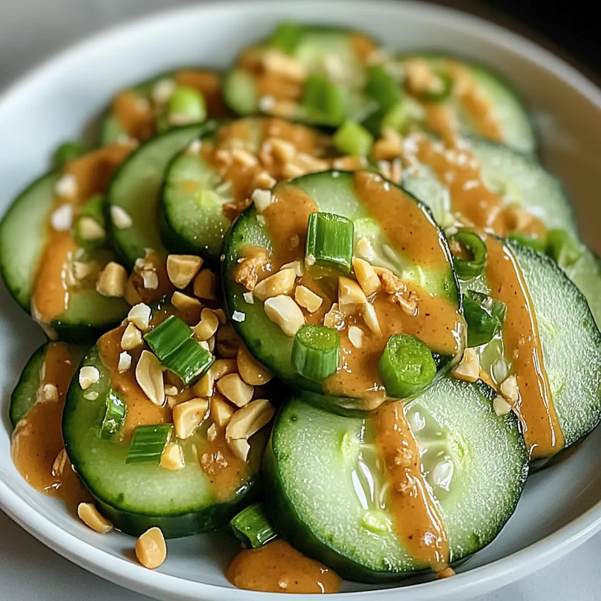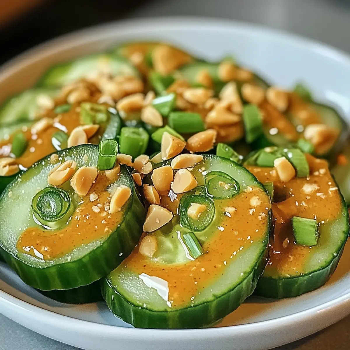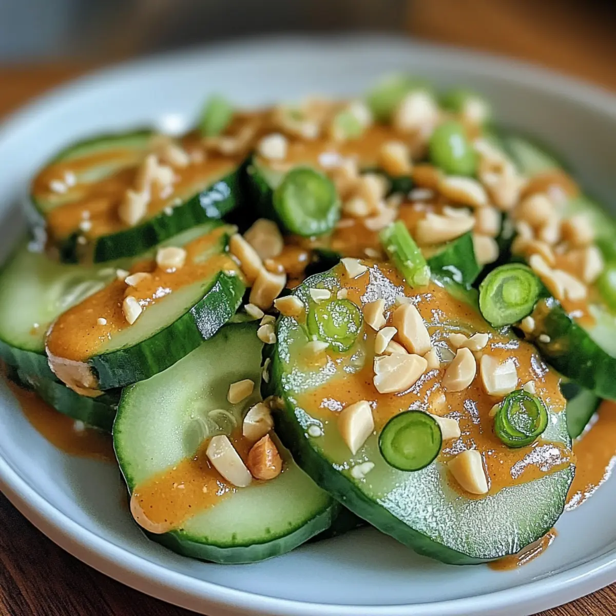 Ich liebe es, wenn frische Zutaten auf unbedingt leckere Weise zusammenkommen! Diese Gurken in scharfer Erdnusssauce sind nicht nur ein farbenfrohes Highlight, sondern auch ein wahres Fest der Aromen. Diese unkomplizierte Salatvariation ist in kürzester Zeit zubereitet und perfekt für all jene, die nach einer gesunden, schnell umsetzbaren Beilage oder einem beeindruckenden Appetizer suchen. Du kannst die Schärfe ganz nach deinem Geschmack anpassen – egal, ob du es feurig oder mild magst, diese Salatkreation erfüllt jeden Wunsch. Und das Beste? Sie steckt voller Nährstoffe und ist dabei ein köstliches, guilt-free Vergnügen. Bist du bereit, deine Küche mit diesen knackigen Gurken zum Leben zu erwecken und deine Familie oder Freunde zu überraschen? Warum sind Gurken in scharfer Erdnusssauce so beliebt? Einfache Zubereitung: Du benötigst keine komplizierten Kochkünste, um diesen köstlichen Salat zu kreieren. Jeder kann ihn blitzschnell zubereiten! Frische Zutaten: Mit knackigen Gurken und einer cremigen Erdnusssauce bringst du ein wahres Geschmackserlebnis auf den Tisch. Anpassbare Schärfe: Ob mild oder feurig, du entscheidest, wie scharf es wird! Perfekt für jeden Gaumen und jede Gelegenheit. Nährstoffreich: Mit gesunden Fetten und Proteinen ist dieser Salat nicht nur lecker, sondern auch nahrhaft. Beeindruckender Hingucker: Serviere ihn als Appetizer oder Beilage – deine Gäste werden begeistert sein! Genieße auch unsere anderen frischen Salatrezepte für mehr Inspiration! Gurken in scharfer Erdnusssauce Zutaten Für den Salat • Englische Gurken – Sie sind knackig und haben eine dünne Haut, ideal für diesen erfrischenden Salat. • Erdnüsse – Fügen Knusprigkeit und nussigen Geschmack hinzu; auch andere Nüsse sind möglich. • Grüne Zwiebeln – Bringen einen frischen Zwiebelgeschmack ins Spiel. • Rote Pfefferflocken – Optional für mehr Schärfe; ganz weglassen für einen milderen Salat. Für das Dressing • Cremige Erdnussbutter – Die Basis für die cremige Sauce; kann mit Mandel- oder Sonnenblumenkernbutter ersetzt werden. • Ahornsirup – Ergänzt die Schärfe mit einer angenehmen Süße; Honig oder Agavendicksaft sind ebenfalls möglich. • Wasser – Passt die Konsistenz des Dressings an; nach Bedarf langsam hinzufügen. • Niedrig-NaCl Sojasauce – Gibt dem Dressing einen herzhaften Umami-Geschmack; tamari für glutenfrei. • Sriracha – Für den scharfen Kick; nach Belieben anpassen oder weglassen. • Reisessig – Sorgt für eine angenehme Säure; Limettensaft kann verwendet werden für einen frischen Zitrusgeschmack. • Sesamöl – Verleiht dem Dressing einen reichen, nussigen Geschmack. Genieße die köstlichen Gurken in scharfer Erdnusssauce als schnelle, gesunde Beilage oder als aufregenden Appetizer! Schritt-für-Schritt-Anleitung für Gurken in scharfer Erdnusssauce Step 1: Gurken vorbereiten Wasche und trockne 2-3 englische Gurken gründlich, damit keine Reste an Schmutz oder Feuchtigkeit zurückbleiben. Schneide die Gurken in dünne Scheiben oder Halbmonde, etwa 1/4 Zoll dick, und gib sie in eine große Rührschüssel. Achte darauf, gleichmäßige Stücke zu schneiden, damit sie schön gleichmäßig marinieren. Step 2: Zutaten hinzufügen Hacke 1/4 bis 1/3 Tasse Erdnüsse grob und schneide 2-3 Esslöffel grüne Zwiebeln in feine Ringe. Diese Zutaten dann zu den Gurken in der Schüssel hinzufügen. Wenn du es gerne schärfer magst, streue eine Prise rote Pfefferflocken darüber. Alles vorsichtig vermengen, sodass die Gurken gleichmäßig verteilt und die Aromen gut durchmischt sind. Step 3: Dressing herstellen Nimm eine separate Schüssel und vermische 1/4 Tasse cremige Erdnussbutter mit 2 Esslöffeln Ahornsirup, 1 Esslöffel niedrig-NaCl Sojasauce, 1 Esslöffel Sriracha, 2 Teelöffel Reisessig und 1 Teelöffel Sesamöl. Mit einem Schneebesen gut verrühren. Füge langsam 1,5-2 Esslöffel Wasser hinzu, bis die gewünschte cremige Konsistenz erreicht ist, und achte darauf, dass das Dressing nicht zu dick wird. Step 4: Salat anrichten Gieße das vorbereitete Dressing gleichmäßig über die Gurken-Mischung in der Schüssel. Verwende eine große Zange oder einen Löffel, um die Zutaten sanft zu vermengen, bis die Gurken und Erdnüsse gut mit dem Dressing umhüllt sind. Achte darauf, dass alles gleichmäßig bedeckt wird, um den vollen Geschmack der Gurken in scharfer Erdnusssauce zu erhalten. Step 5: Servieren und garnieren Übertrage den fertigen Salat auf eine Servierplatte und garniere ihn mit zusätzlichen Sesamkernen und den restlichen, gehackten grünen Zwiebeln. Du kannst die Gurken im Kühlschrank für 10-15 Minuten kühlen, bevor du servierst, um die Aromen noch besser entfalten zu lassen. Genieße die frische, knackige Kombination sofort! Aufbewahrung von Gurken in scharfer Erdnusssauce Kühlschrank: Bewahre den Salat in einem luftdichten Behälter auf, um Frische und Knackigkeit für bis zu 2 Tage zu erhalten. Halte das Dressing separat, bis du servierst. Gefrierbox: Das Einfrieren wird nicht empfohlen, da die Textur der Gurken leidet und sie matschig werden. Am besten frisch genießen! Vorbereitung im Voraus: Bereite alle Zutaten bis zu einem Tag im Voraus vor und bewahre sie getrennt. Mische sie kurz vor dem Servieren, um die besten Aromen und Texturen zu erzielen. Wiedererwärmen: Da dies ein kalter Salat ist, wird nicht empfohlen, ihn zu erhitzen. Serviere ihn kühl für den besten Genuss. Was passt zu Gurken in scharfer Erdnusssauce? Lass uns ein volles Menü kreieren, das die erfrischenden Aromen dieser köstlichen Gurken in scharfer Erdnusssauce perfekt ergänzt. Gegrillte Hähnchenspieße: Zartes Hähnchen, mariniert mit asiatischen Gewürzen, bringt eine spannende, rauchige Note, die die Röstigkeit der Erdnusssauce wunderbar kontrastiert. Gemeinsam schaffen sie ein harmonisches Geschmackserlebnis. Gedämpfter Jasminreis: Dieser leichte und duftende Reis ist das perfekte Begleitgericht, das den intensiven Aro