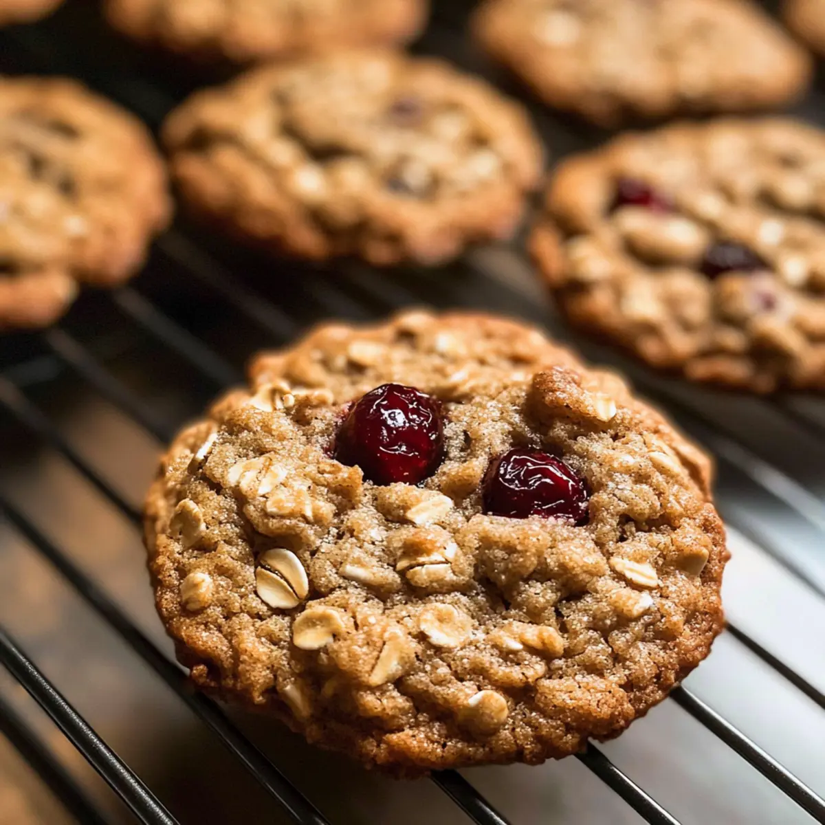 “Kannst du die Kekse riechen?” fragte mein Freund, während der verführerische Duft von frisch gebackenem Gebäck durch die Küche zog. Diese Haferflocken Cranberry Walnuss Kekse sind nicht nur ein Gaumenschmaus, sie bringen auch die wohlige Atmosphäre der Feiertage direkt in dein Zuhause. Mit einer perfekten Kombination aus zähen Haferflocken, fruchtigen Cranberries und knackigen Walnüssen sind sie der ideale Begleiter für jede festliche Zusammenkunft oder einen gemütlichen Abend auf der Couch. Das Beste daran? Sie sind schnell und einfach zuzubereiten, sodass du mehr Zeit für die Dinge hast, die dir am Herzen liegen. Neugierig, wie du dieses köstliche Rezept zaubern kannst? Lass uns gleich starten! Warum sind diese Kekse unwiderstehlich? Einfachheit: Die Zubereitung dieser Haferflocken Cranberry Walnuss Kekse erfordert keine besonderen Fähigkeiten – selbst Anfänger in der Küche werden begeistern. Herzhafter Geschmack: Die Kombination aus zähen Haferflocken, süßen cranberries und knackigen Walnüssen sorgt für ein Geschmackserlebnis, das man nicht vergisst. Vielseitigkeit: Ob als Snack für Zwischendurch oder als Highlight auf deiner Weihnachtsfeier, diese Kekse passen immer. Zeitersparnis: In weniger als 30 Minuten sind sie gebacken und bereit, genossen zu werden. Crowd-Pleaser: Jeder wird diese Kekse lieben, sodass sie der perfekte Begleiter für deine Feiertagsfeiern sind. Mach dir keine Sorgen über die Lagerung – sie bleiben bis zu fünf Tage frisch in einem luftdichten Behälter. Wenn du noch mehr Tipps haben möchtest, schau dir unseren Abschnitt über Lagerungstipps für Kekse an! Haferflocken Cranberry Walnuss Kekse Zutaten • Entdecke die perfekten Zutaten, um deine Haferflocken Cranberry Walnuss Kekse zum Leben zu erwecken! Für den Teig Ungesalzene Butter – sorgt für cremige Textur und reichhaltigen Geschmack; kann durch Kokosöl ersetzt werden für eine milchfreie Option. Helle Rohrzucker – verleiht Süße und eine dezente Karamellnote; dunkler Rohrzucker bringt einen intensiveren Geschmack. Weißen Zucker – verstärkt die Süße und hilft, die Struktur der Kekse zu stabilisieren; das Weglassen könnte die Textur beeinträchtigen. Große Eier – binden die Zutaten und sorgen für Feuchtigkeit; Flachseier sind eine vegane Alternative. Vanillepaste – fügt einen tiefen Vanillegeschmack hinzu; pure Vanilleextrakt ist eine gute Substitution. Weizenmehl – gibt den Keksen Struktur; eine glutenfreie Mischung kann für glutenfreie Varianten verwendet werden. Backsoda – wirkt als Treibmittel und sorgt für eine weiche Textur; überprüfe die Frische für optimale Ergebnisse. Salz – balanciert die Süße und hebt den Geschmack hervor; wichtig für einen harmonischen Geschmack. Zimt – bringt Wärme und Gewürz; kann je nach Vorliebe angepasst oder weggelassen werden. Alte Haferflocken – sorgt für Zähigkeit und Textur; schnelle Haferflocken können verwendet werden, ergeben aber eine andere Konsistenz. Getrocknete Cranberries – bieten Frische und Zähigkeit; für Abwechslung können Rosinen oder Schokoladenstückchen verwendet werden. Walnüsse – fügen eine knackige Textur hinzu; können durch Pekannüsse ersetzt oder ganz weggelassen werden für eine nussfreie Variante. Für das Backen Backpapier – sorgt dafür, dass die Kekse leicht vom Blech gelöst werden können. Bereit, diese köstlichen Haferflocken Cranberry Walnuss Kekse zu backen? Lass uns gleich mit der Zubereitung beginnen! Schritt-für-Schritt-Anleitung für Haferflocken Cranberry Walnuss Kekse Step 1: Butter und Zucker cremig rühren Schlage die weiche Butter mit dem hellen und weißen Zucker bei mittlerer Geschwindigkeit für etwa 3 Minuten, bis die Mischung leicht und luftig ist. Du solltest eine cremige Konsistenz erhalten, die hell aussieht. Achte darauf, die Schüssel zwischendurch mit einem Spatel sauber zu machen, damit alles gut vermischt ist. Step 2: Eier und Vanille einarbeiten Füge nun die großen Eier einzeln zur Buttermischung hinzu und rühre sie jeweils gut ein, bevor du das nächste hinzufügst. Anschließend die Vanillepaste unterrühren, bis alles gut vermischt ist. Die Mischung sollte jetzt eine seidige Textur haben, die eine angenehme Duftnote entfaltet. Step 3: Trockene Zutaten vorbereiten In einer separaten Schüssel Mehl, Backsoda, Salz und Zimt zusammen vermengen. Mische die trockenen Zutaten gut mit einem Schneebesen, sodass sie gleichmäßig verteilt sind. Diese Mischung ist wichtig, um die Struktur der Haferflocken Cranberry Walnuss Kekse zu gewährleisten, also achte darauf, dass keine Klumpen entstehen. Step 4: Trockenes mit feuchtem mischen Gib die vorbereiteten trockenen Zutaten zusammen mit den alten Haferflocken zur Butter-Ei-Mischung. Rühre alles vorsichtig zusammen, bis die Zutaten gerade kombiniert sind, und achte darauf, nicht zu übermixen. Eine gleichmäßige Verteilung ist wichtig, um die zähen Texturen in den Keksen zu erreichen. Step 5: Zutaten hinzufügen Füge die getrockneten Cranberries und grob gehackten Walnüsse hinzu und falte sie vorsichtig in den Teig ein. Achte darauf, dass die Mix-Ins gleichmäßig verteilt sind, um bei jedem Biss von den köstlichen Zutaten zu profitieren. Diese geschmackvolle Kombination macht die Haferflocken Cranberry Walnuss Kekse noch unwiderstehlicher. Step 6: Teig kühlen Decke die Schüssel mit dem Keksteig ab und stelle sie für etwa 30 Minuten in den Kühlschrank. Diese Ruhezeit hilft, die Aromen miteinander zu verbinden und sorgt dafür, dass die Kekse beim Backen ihre Form behalten. Inzwischen kannst du schon einmal den Ofen vorheizen. Step 7: Ofen vorheizen Heize deinen Ofen auf 175 °C (350 °F) vor. Während der Ofen aufheizt, kannst du das Backblech mit Backpapier auslegen, um sicherzustellen, dass die Kekse beim Backen nicht ankleben. Dies ist ein wichtiger Schritt, um perfekte Kekse zu backen. Step 8: Kekse ausstechen Nutze einen Eisportionierer, um Portionen des Keksteigs auf d