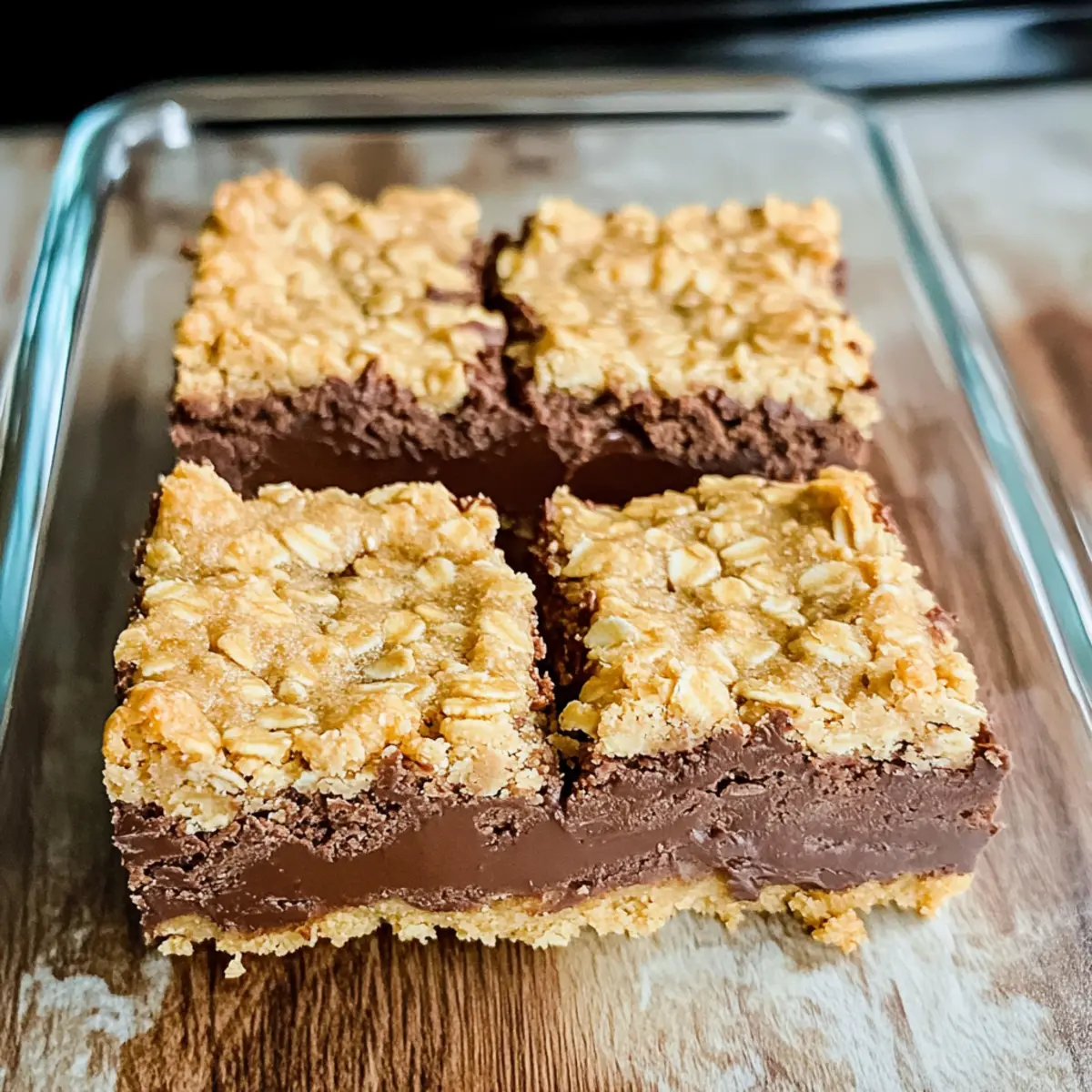 Diese Haferflocken Fudge Riegel vereinen eine buttrige Haferkruste mit einer reichhaltigen Fudge-Füllung – perfekt für süße Momente.
