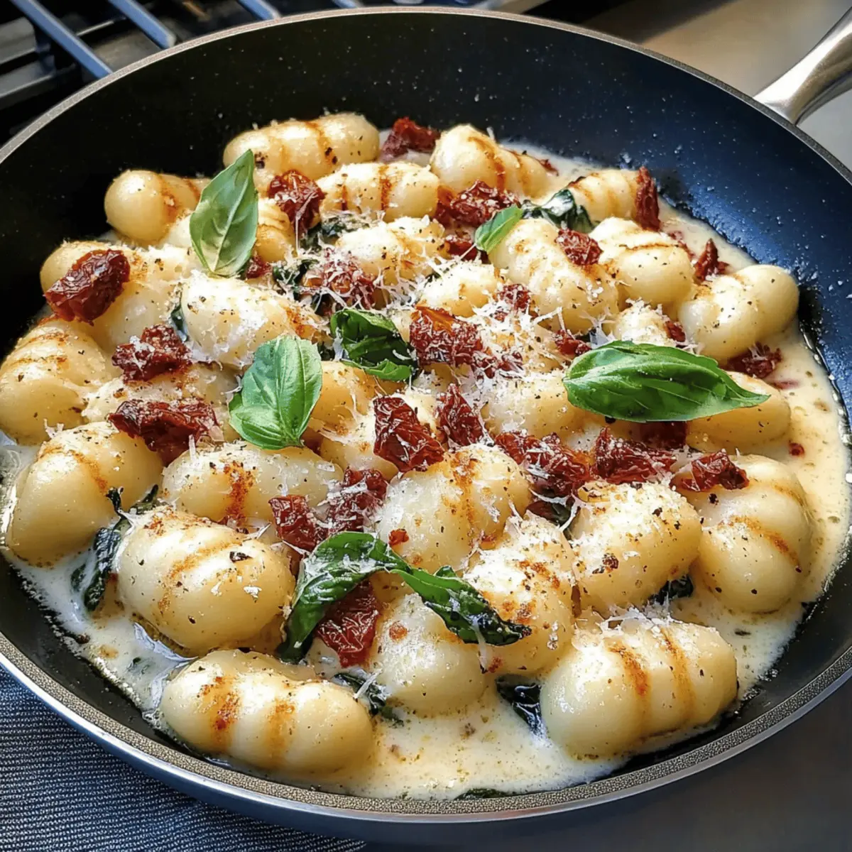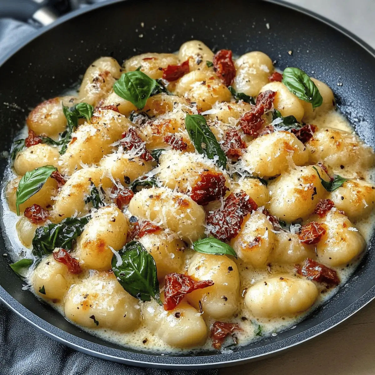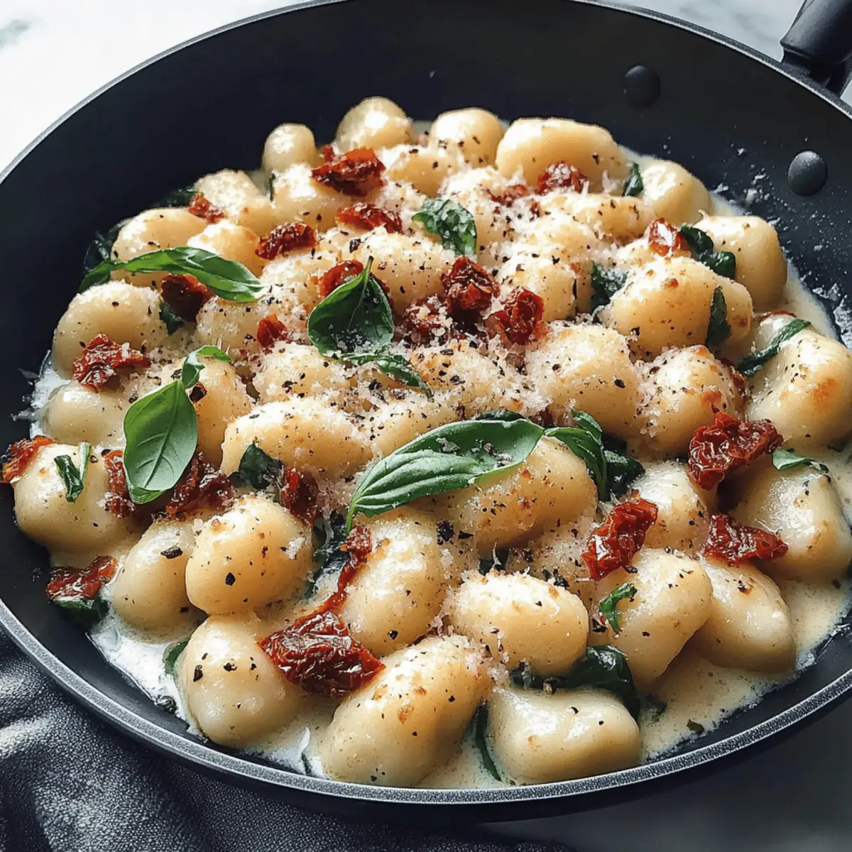 In einem kleinen, gemütlichen Restaurant an der Ecke saß ich an einem Tisch, als ich den verführerischen Duft von frisch zubereiteten Gnocchi wahrnahm. Es war der Moment, der mich dazu inspirierte, mein eigenes Rezept für Heirate mich Gnocchi zu kreieren. Diese cremige, aromatische Mischung aus Parmesan, knusprigem Knoblauch und sonnengetrockneten Tomaten umhüllt zarte Kartoffelgnocchi und bringt ein Gefühl von Geborgenheit auf den Tisch. Was ich an diesem Gericht am meisten liebe, ist, wie schnell es zubereitet werden kann – in nur 20 Minuten hast du eine beeindruckende Mahlzeit, die ideal für Wochenabende oder romantische Anlässe ist. Außerdem ist es so anpassbar, dass du es je nach Vorliebe leicht mit Protein oder saisonalem Gemüse variieren kannst. Bist du bereit, deine Liebsten mit dieser köstlichen Kreation zu begeistern? Warum wirst du Heirate mich Gnocchi lieben? Einfachheit, die begeistert: Die Zubereitung ist so schnell und unkompliziert, dass du in nur 20 Minuten eine köstliche Mahlzeit auf den Tisch bringst. Vielfalt, die inspiriert: Ob mit Hühnchen, Garnelen oder ganz vegetarisch – du kannst dein persönliches Highlight ganz einfach anpassen. Reicher Geschmack: Die Kombination aus cremigem Parmesan und aromatischen sonnengetrockneten Tomaten sorgt für ein Geschmackserlebnis, das deine Gäste begeistern wird. Wohlfühlfaktor: Dieses Gericht bringt nicht nur Gaumenfreuden, sondern auch ein Gefühl von Geborgenheit. Perfekt für deine nächste verabredete Dinner-Night oder einfach, um sich selbst zu verwöhnen. Du wirst nie wieder auf Fertiggerichte zurückgreifen wollen! Heirate mich Gnocchi Zutaten • Mit diesen Zutaten bist du auf dem besten Weg zu einem köstlichen Gericht, das nicht nur schnell, sondern auch anpassbar ist! Für die Sauce • Olivenöl – sorgt für reichhaltigen Geschmack. • Ungesalzene Butter – verbessert die cremige Textur; du kannst auch vegane Butter verwenden. • Knoblauch – unverzichtbar für das aromatische Fundament; frischer Knoblauch ist am besten. • Getrocknete Chiliflocken – optional für etwas Schärfe; nach Geschmack anpassen. • Hühnerbrühe – sorgt für herzhaften Tiefgang; ersetze sie durch Gemüsebrühe für eine vegetarische Option. • Schlagsahne – die cremige Basis, die dieses Gericht definiert; Kokosnusscreme ist eine gute, milchfreie Alternative. • Geriebener Parmesan – fügt Reichhaltigkeit und Umami hinzu; Nährhefe als vegane Option ist ebenfalls möglich. • Salz – verbessert den Gesamtgeschmack; je nach persönlichem Geschmack anpassen. • Schwarzer Pfeffer – bringt subtile Schärfe; frisch gemahlen für besseres Aroma. • Sonnengetrocknete Tomaten – liefern einen herzhaften Geschmacks-Kick; verwende ölverpackte für zusätzlichen Geschmack. Für die Gnocchi • Kartoffelgnocchi – die Hauptkohlenhydratquelle, sorgt für eine komfortable Textur; süßkartoffelige oder Blumenkohl-Gnocchi sind ebenfalls tolle Alternativen. • Babyspinat – bringt Frische und Farbe auf den Teller; auch Grünkohl oder Mangold sind gute Ersatzoptionen. • Frisches Basilikum – für einen aromatischen Akzent; die Menge nach Belieben variieren. Zur Garnierung • Extra Parmesan/Basilikum – vollendet das Gericht und sorgt für eine ansprechende Präsentation. Step-by-Step Instructions für Heirate mich Gnocchi Step 1: Erhitzen des Öls und der Butter In einer großen Pfanne Olivenöl und ungesalzene Butter bei mittlerer Hitze erhitzen, bis die Butter geschmolzen ist und leicht schäumt. Achte darauf, dass die Butter nicht zu braun wird. Dies dauert etwa 2 Minuten und sorgt für eine aromatische Basis für die Sauce. Step 2: Knoblauch und Gewürze hinzufügen Füge den fein gehackten Knoblauch und die optionalen Chiliflocken hinzu. Sauté für etwa 30 Sekunden, bis der Knoblauch duftet und leicht goldbraun ist. Dies bringt die köstlichen Aromen zum Vorschein und bildet die Grundlage für die cremige Sauce der Heirate mich Gnocchi. Step 3: Brühe und Sahne einrühren Gieße die Hühnerbrühe und die Schlagsahne in die Pfanne. Rühre den geriebenen Parmesan ein und lasse die Mischung 2-3 Minuten köcheln, bis der Käse geschmolzen und die Sauce leicht eingedickt ist. Halte die Hitze konstant, um die Cremigkeit der Sauce zu bewahren, ohne sie zum Kochen zu bringen. Step 4: Würzen der Sauce Schmecke die Sauce mit Salz und frisch gemahlenem schwarzem Pfeffer ab, um die Aromen der Heirate mich Gnocchi zu intensivieren. Achte darauf, dass du die Zutaten gut vermischst, damit sich die Gewürze gleichmäßig verteilen und der Geschmack abgerundet wird. Step 5: Gnocchi und Tomaten hinzufügen Gib die sonnengetrockneten Tomaten und die Kartoffelgnocchi in die Pfanne. Lasse das Ganze 4-5 Minuten köcheln, während du regelmäßig umrührst. Die Gnocchi sollten weich und zart sein, die Sauce wird dicker und umhüllt die Gnocchi perfekt. Step 6: Spinat einrühren Füge nun den Babyspinat hinzu und rühre alles gut durch, bis der Spinat zusammengefallen ist. Dies geschieht in etwa 1-2 Minuten und sorgt für eine frische, grüne Note in deinem Heirate mich Gnocchi-Gericht. Step 7: Basilikum und Servieren Incorporiere das gehackte frische Basilikum kurz vor dem Servieren und mische alles gut durch. Dies fügt ein zusätzliches Aroma hinzu und sorgt dafür, dass das Gericht noch ansprechender aussieht. Garniere die Heirate mich Gnocchi mit extra Parmesan und frischem Basilikum und serviere sofort heiß. Heirate mich Gnocchi Variationen Mach dieses köstliche Rezept zu deinem eigenen Meisterwerk! Lass deiner Kreativität freien Lauf und entdecke, wie du mit kleinen Anpassungen neue Geschmackserlebnisse schaffen kannst. Protein hinzufügen: Ergänze gekochtes Hähnchen, Garnelen oder Pancetta für eine gehaltvollere Mahlzeit. Herzhaft und sättigend, perfekt für größere Portionen! Vegetarische Option: Tausche die Hühnerbrühe gegen Gemüsebrühe aus und verwende pflanzliche Sahne und Käse, um ein köstliches 