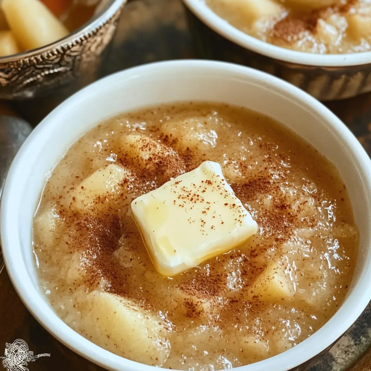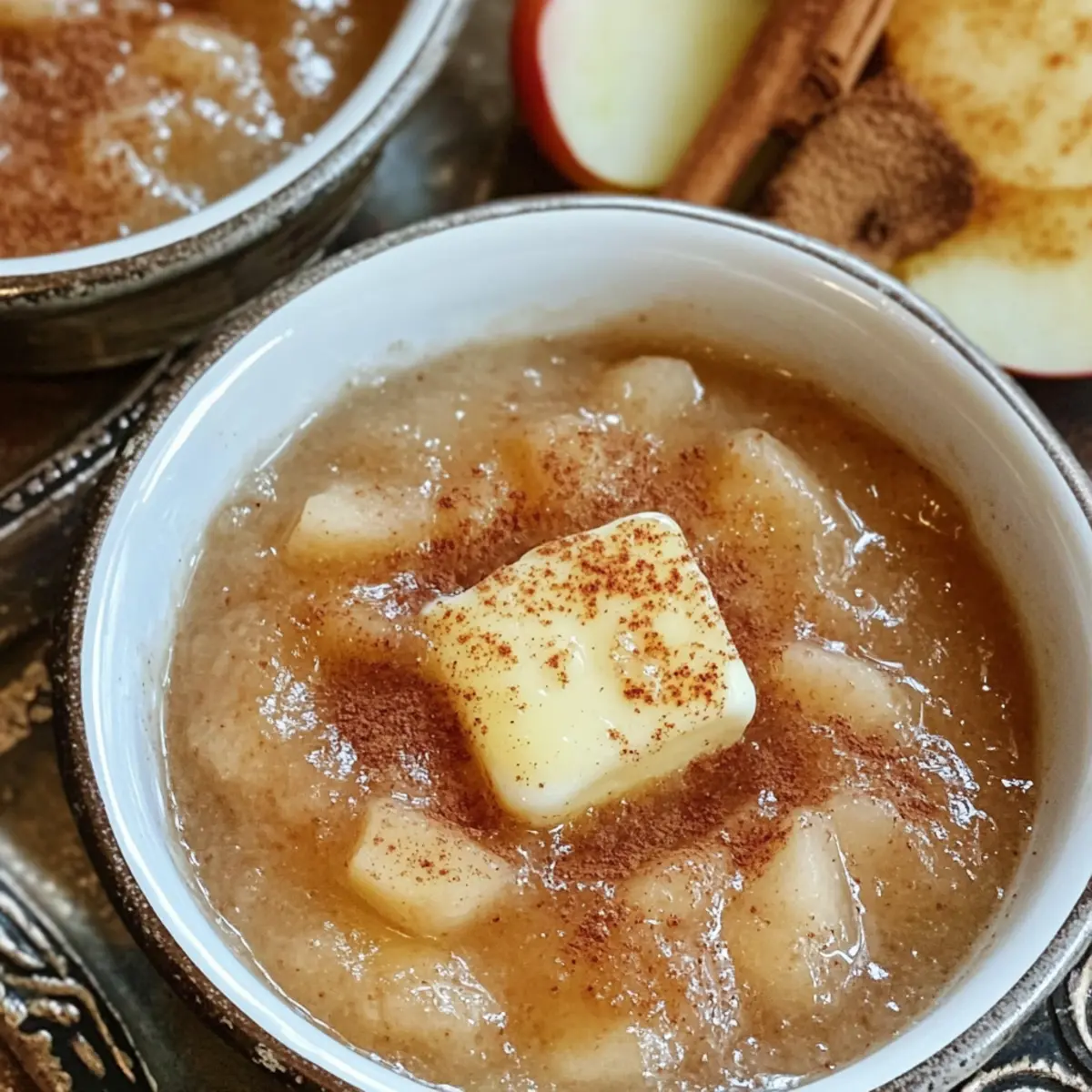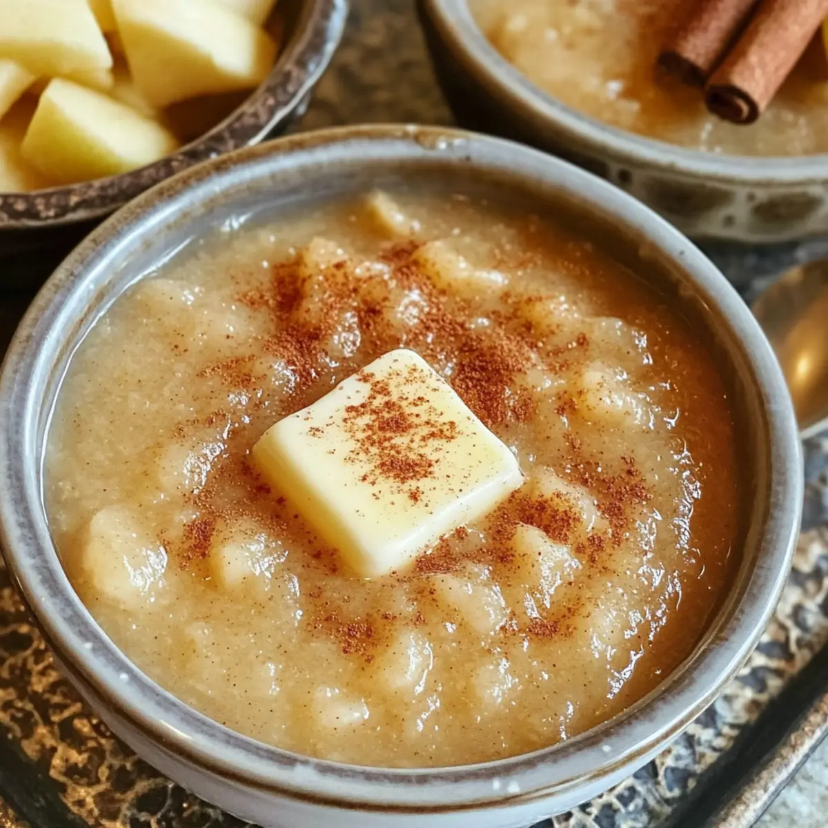 Eine köstliche heiße Butter-Apfelsauce mit Zimt und Muskatnuss, ideal für den Herbstgenuss.