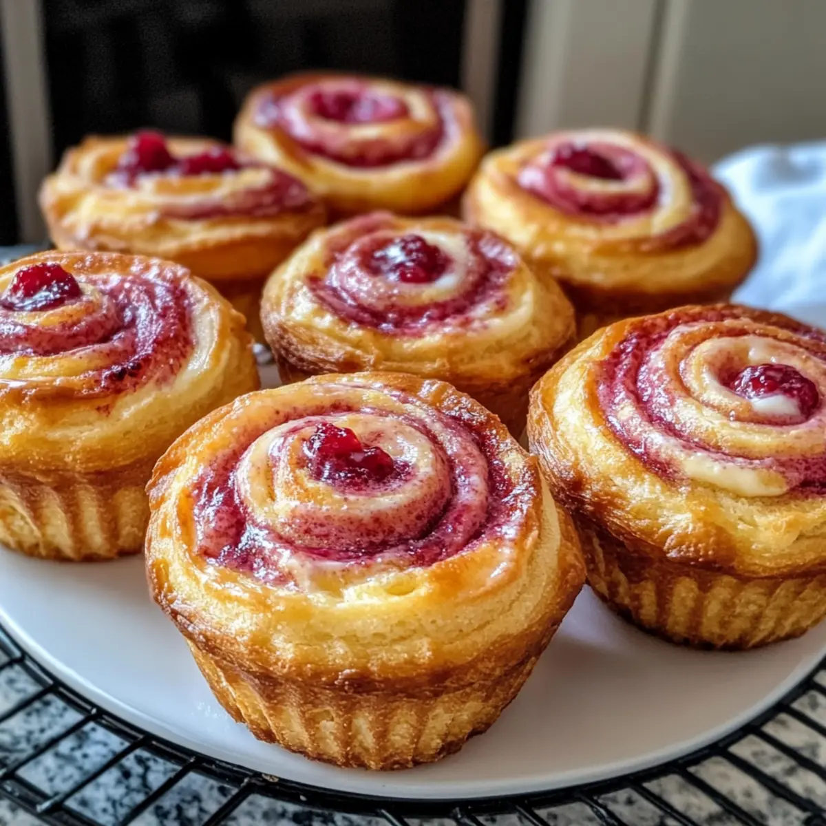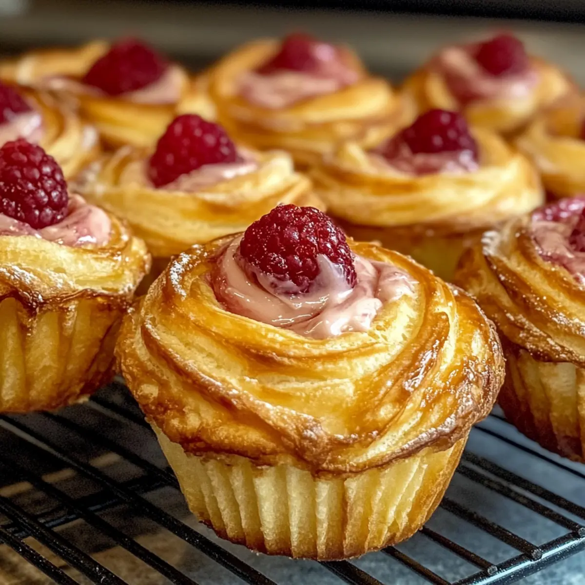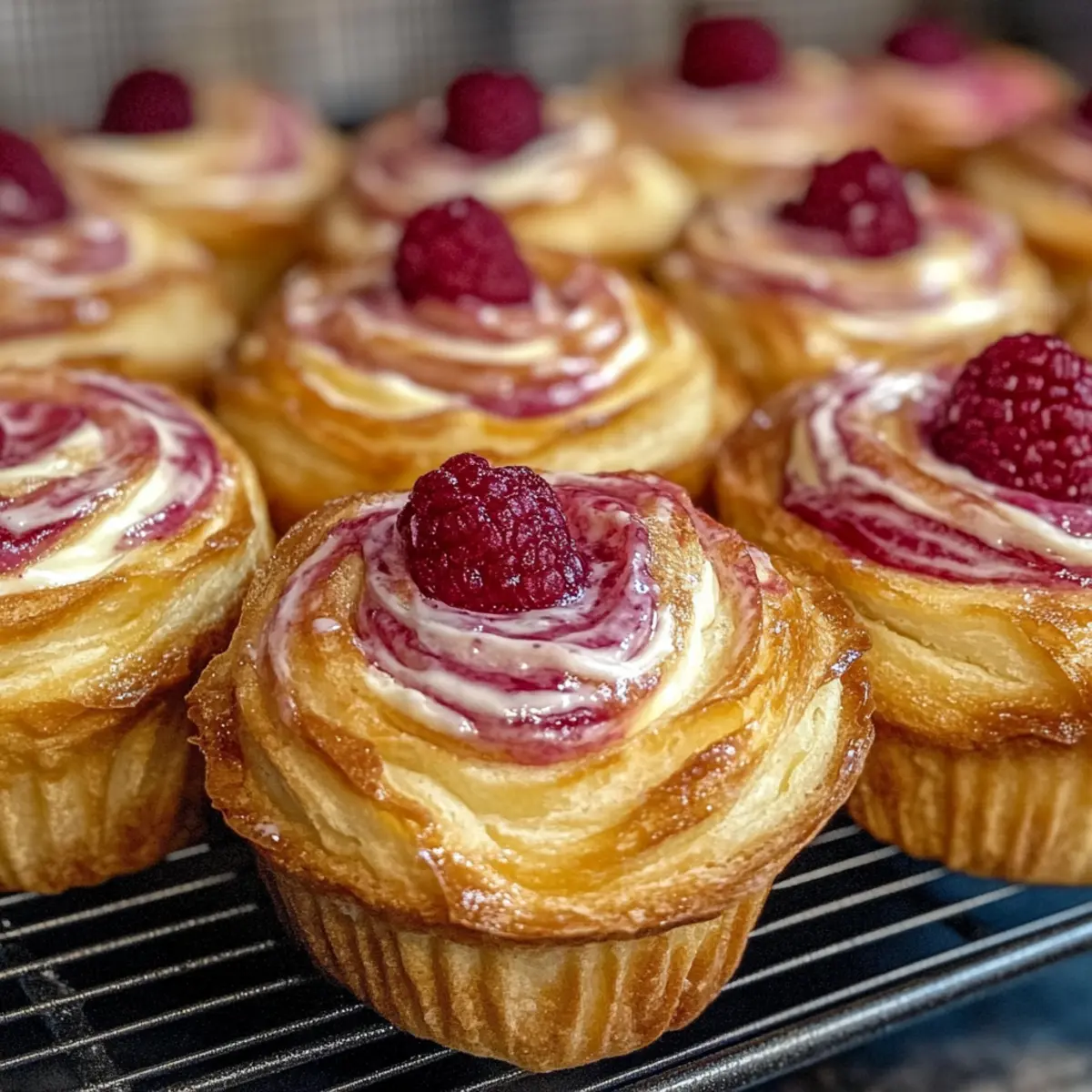 Es war ein kalter Morgen, als ich mir einen kleinen Genuss für das Frühstück wünschte. Die Idee für Himbeer-Frischkäse-Cruffins entstand in meinem Kopf – diese köstlichen, blättrigen Teilchen, die mit einer fruchtigen Füllung verzaubern! Diese Rezeptur ist nicht nur eine wahre Freude für euren Gaumen, sondern auch schnell und einfach zubereitet. Mit nur wenigen Zutaten, darunter das leicht zu verarbeitende Blätterteig, gelingt euch ein himmlisches Frühstück oder ein ausgefallenes Dessert, das eure Gäste beeindrucken wird. Stellt euch vor, wie der Duft von frisch gebackenem Gebäck eure Küche durchzieht – wer könnte da widerstehen? Seid ihr bereit zu erfahren, wie man diese kleinen Leckerbissen ganz einfach zubereitet? Warum sind Himbeer-Frischkäse-Cruffins so besonders? Einfachheit, die begeistert: Die Zubereitung ist kinderleicht; mit wenigen grundlegenden Zutaten entsteht ein himmlisches Ergebnis. Fluffige Textur: Die Kombination aus butterigem Blätterteig und cremigem Frischkäse sorgt für ein unvergessliches Mundgefühl. Süße und Säure: Die harmonierende Süße der Himbeeren trifft auf die leichte Säure des Frischkäse, was diese Teilchen zum perfekten Genuss macht. Vielseitigkeit: Ideal als Frühstück, Snack oder Dessert – sie passen einfach zu jeder Gelegenheit! Schnell zubereitet: In weniger als einer Stunde sind diese Leckerbissen fertig und bereit, serviert zu werden. Beeindruckender Auftritt: Ihre goldene Farbe und die kunstvolle Form machen sie zum Star jeder Kaffeetafel. Seid kreativ und ergänzt eure Sammlung mit anderen Rezepten, wie unseren köstlichen Himbeer-Pfannkuchen oder einer klassischen Frischkäsetorte. Himbeer-Frischkäse-Cruffins Zutaten • Diese Zutaten sind nötig, um die perfekten Himbeer-Frischkäse-Cruffins zuzubereiten! Für den Teig: Blätterteig – Die Basis, die für die flakey und butterige Textur sorgt; verwende aufgetauten Teig, wenn du gefrorenen benutzt. Für die Füllung: Frischkäse – Sorgt für Cremigkeit und eine leichte Säure; achte darauf, ihn vorher weich werden zu lassen. Puderzucker – Sorgt für süßen Geschmack in der Füllung; kann durch Kristallzucker ersetzt werden, erzielt aber eine gröbere Textur. Vanilleextrakt – Verleiht der Füllung einen zusätzlichen Geschmack; ist optional, wird aber empfohlen für mehr Tiefe. Himbeermarmelade oder -konfitüre – Gibt Süße und fruchtigen Geschmack; andere Fruchtmarmeladen sind auch eine gute Wahl. Für das Finish: Butter (optional) – Zum Bestreichen der Teilchen, um zusätzliche Bräune und Geschmack zu verleihen; kann für eine leichtere Variante weggelassen werden. Puderzucker (optional zum Bestäuben) – Für eine ansprechende Präsentation nach dem Backen. Mit diesen Zutaten wird das Zubereiten der Himbeer-Frischkäse-Cruffins einfach und macht Spaß! Schritt-für-Schritt-Anleitung für Himbeer-Frischkäse-Cruffins Step 1: Ofen vorheizen Heizen Sie Ihren Ofen auf 190°C vor. Diese Temperatur sorgt dafür, dass die Himbeer-Frischkäse-Cruffins gleichmäßig backen und eine schöne goldene Farbe erhalten. Während der Ofen aufheizt, können Sie die anderen Schritte vorbereiten, um effizient zu arbeiten. Step 2: Blätterteig vorbereiten Rollen Sie den aufgetauten Blätterteig auf einer leicht bemehlten Arbeitsfläche aus, bis er gleichmäßig dick ist. Achten Sie darauf, dass der Teig nicht zu dünn wird, damit die Flakigkeit beim Backen erhalten bleibt. Schneiden Sie den Teig in Rechtecke, die etwa 10×15 cm groß sind, um die Füllung optimal unterzubringen. Step 3: Füllung mischen In einer großen Schüssel den weich gewordenen Frischkäse, Puderzucker und Vanilleextrakt gut vermengen, bis die Mischung cremig und glatt ist. Diese Füllung sorgt für die köstliche Kombination aus Süße und leichtem Frischkäsegeschmack in den Himbeer-Frischkäse-Cruffins. Step 4: Zusammensetzen Verteilen Sie gleichmäßig die Frischkäsefüllung auf den ausgerollten Blätterteig. Achten Sie dabei, einen kleinen Rand zu lassen, damit die Füllung beim Rollen nicht herausquillt. Geben Sie anschließend eine dünne Schicht Himbeermarmelade über die Füllung, um das fruchtige Aroma zu intensivieren. Step 5: Teilchen formen Rollen Sie die Blätterteig-Rechtecke vorsichtig zu einer logartigen Form auf. Schneiden Sie die Rolle in gleichmäßige Stücke von etwa 3-4 cm. Drehen Sie jedes Stück leicht und legen Sie es in eine gefettete Muffinform, um die charakteristische Form der Himbeer-Frischkäse-Cruffins zu erreichen. Step 6: Backen Platzieren Sie die Muffinform im vorgeheizten Ofen und backen Sie die Himbeer-Frischkäse-Cruffins für 22 bis 25 Minuten, bis sie goldbraun und knusprig sind. Achten Sie darauf, dass die Oberseite schön aufgeht und eine appetitliche Farbe annimmt. Step 7: Abkühlen und Bestäuben Lassen Sie die frisch gebackenen Himbeer-Frischkäse-Cruffins einige Minuten in der Form abkühlen. Nehmen Sie sie dann heraus und bestäuben Sie sie leicht mit Puderzucker, um eine ansprechende Präsentation zu schaffen. Genießen Sie diese leckeren Teilchen warm zu Ihrem Kaffee oder Tee! Expertentipps für Himbeer-Frischkäse-Cruffins Zutaten kühlen: Achten Sie darauf, dass Blätterteig und Frischkäse gut gekühlt sind. Das sorgt für die beste Flakigkeit beim Backen. Zu warme Zutaten können das Ergebis beeinträchtigen. Füllung vorbereiten: Bereiten Sie die Frischkäsefüllung am Vorabend vor, um die Aromen zu intensivieren und Zeit zu sparen. Drehtechnik: Eine sanfte Drehung der Teigstücke vor dem Backen hilft, die Form und das Aussehen der Himbeer-Frischkäse-Cruffins zu verbessern. Aufbewahrung: Am besten frisch genießen, aber die Cruffins können in einem luftdichten Behälter bis zu 2 Tage aufbewahrt oder bis zu einem Monat eingefroren werden. Aufbewahrungstipps für Himbeer-Frischkäse-Cruffins Raumtemperatur: Die Himbeer-Frischkäse-Cruffins sollten am besten frisch genossen werden. Bei Zimmertemperatur sind sie bis zu 2 Tage haltbar, wenn 